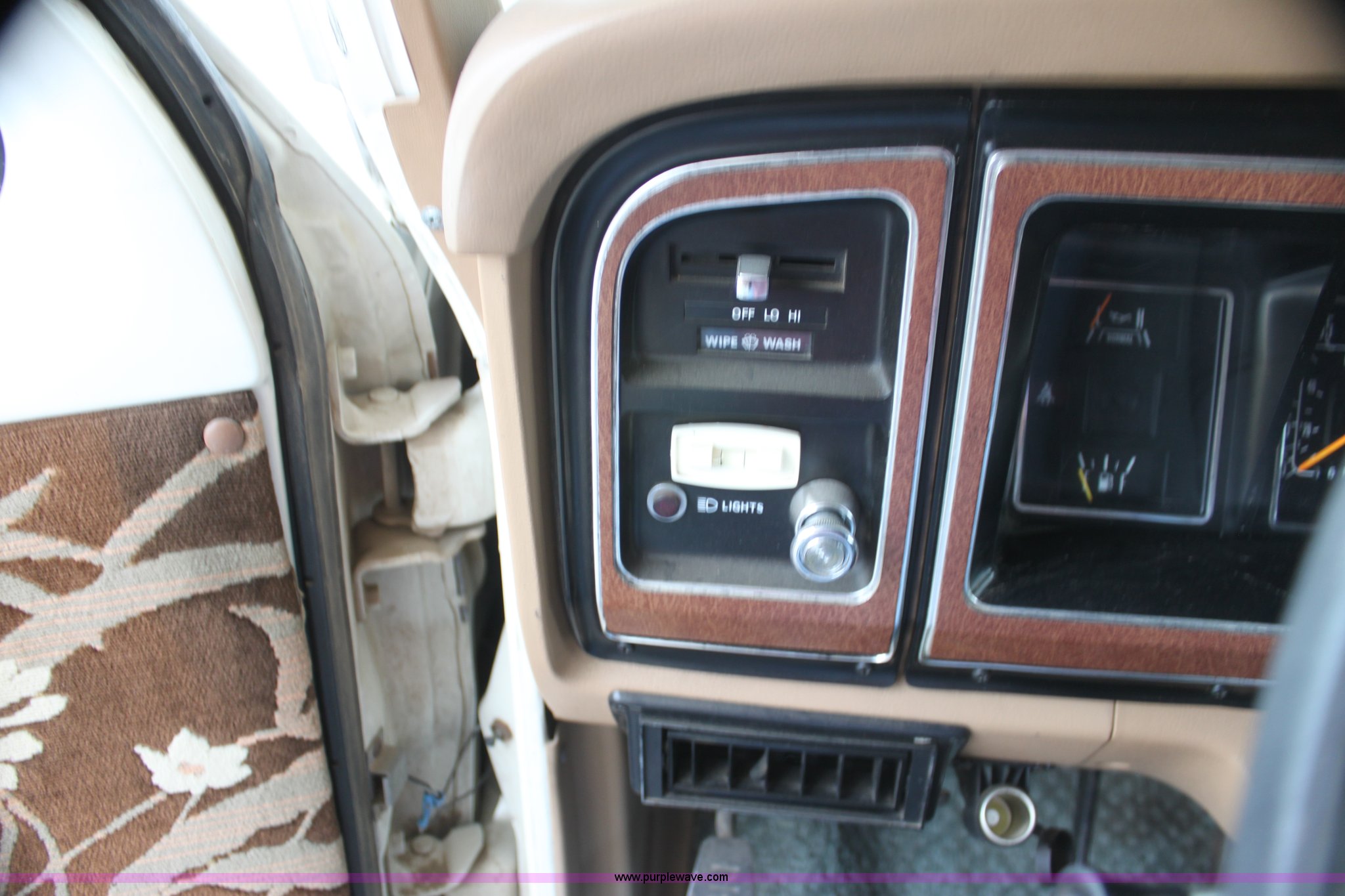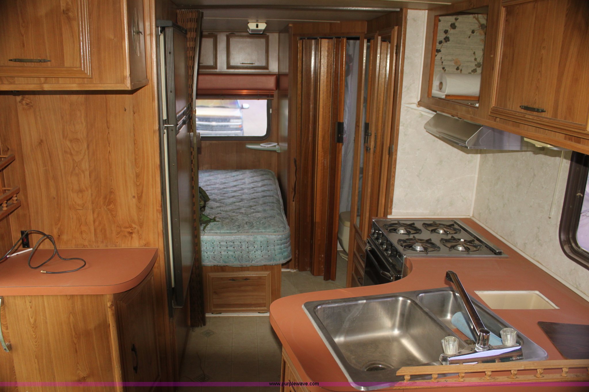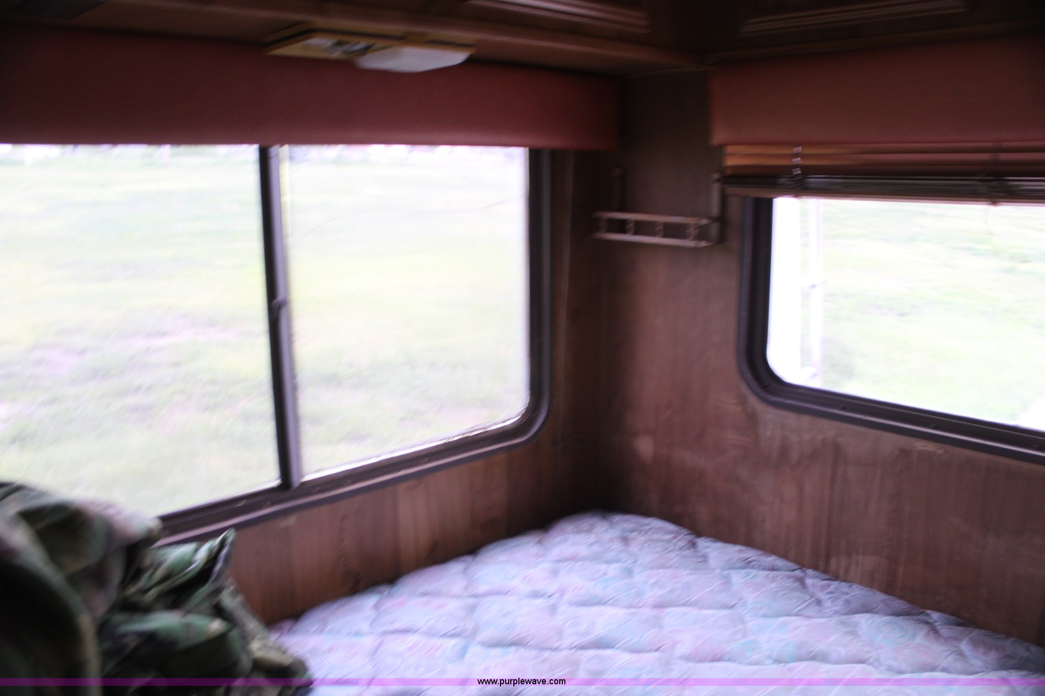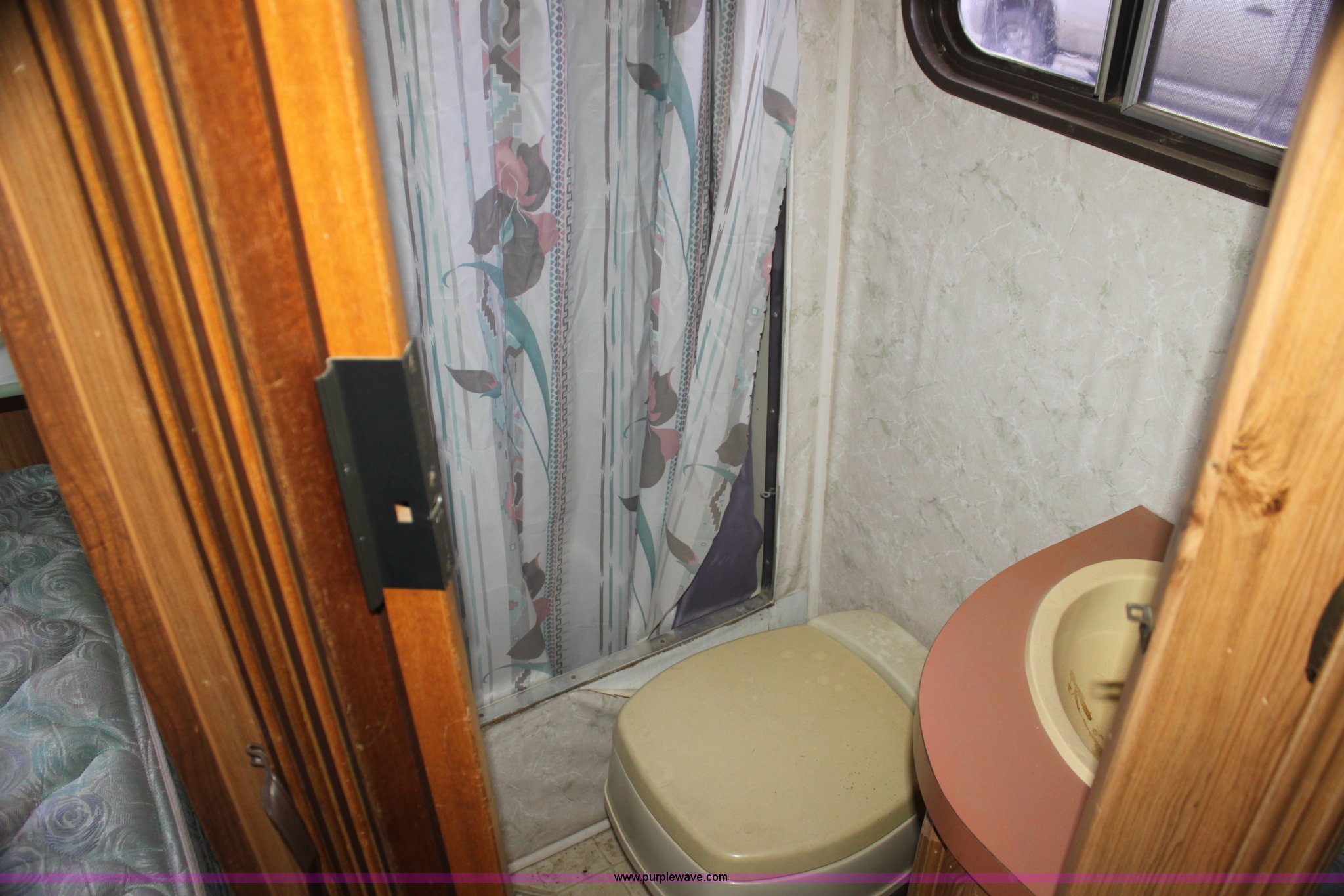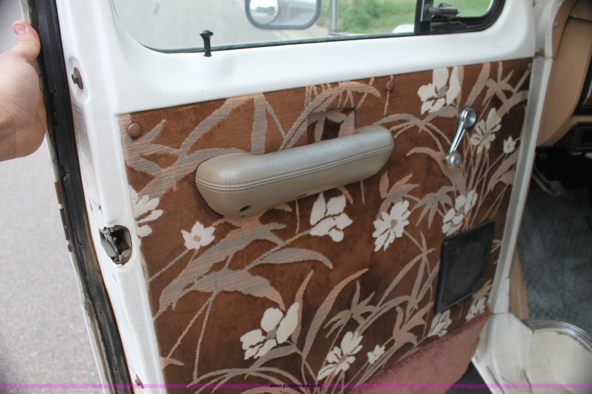 Purple Wave is selling a used RV in Kansas. This item is a 1984 Ford Econoline E350 RV with the following: 66,833 miles on odometer, 7.5L V8 OHV 16V gas engine, Automatic transmission, AC and heat, AM/FM, Manual windows and locks, Front bunk bed, Pull out couch, Master bed in rear, Stove and cook top, Electric/gas refrigerator/freezer, Unknown operating condition, Roof top AC, Onan GenSet generator, 4 kW, Electric start, 8.75/16.5 tires, Interior/exterior cosmetic damage, Sky light in shower broken