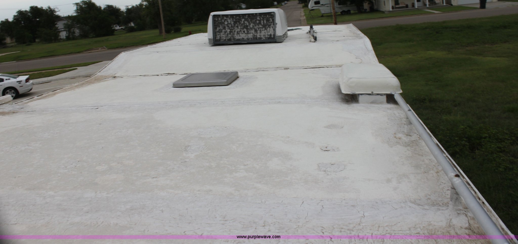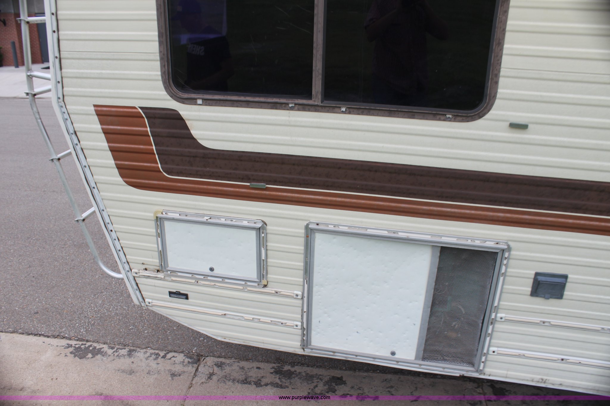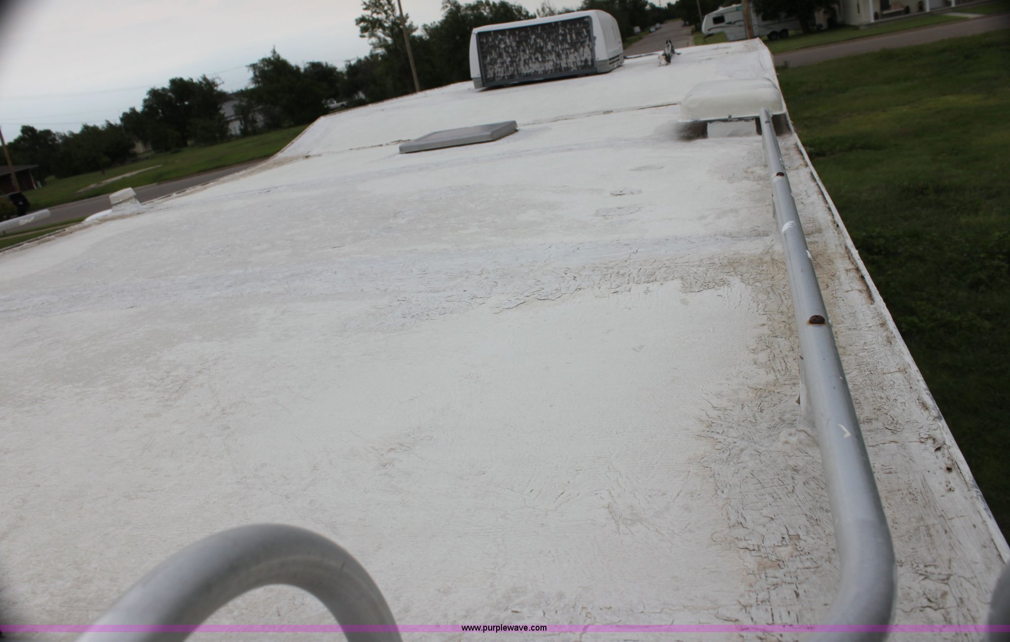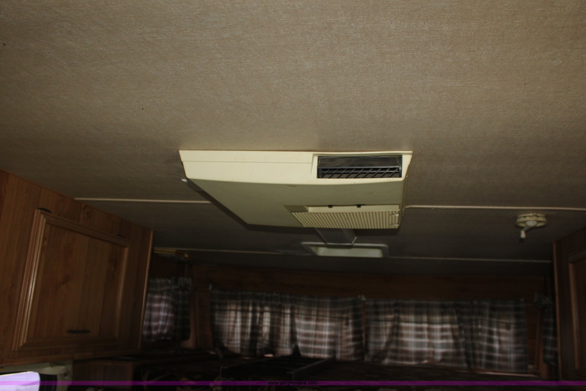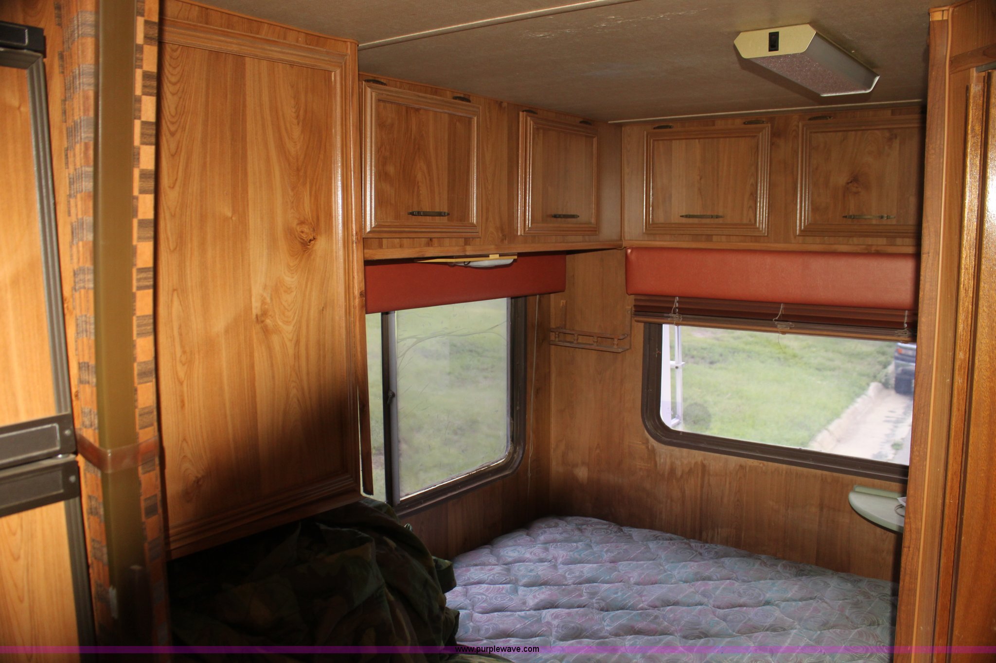 Purple Wave is selling a used RV in Kansas. This item is a 1984 Ford Econoline E350 RV with the following: 66,833 miles on odometer, 7.5L V8 OHV 16V gas engine, Automatic transmission, AC and heat, AM/FM, Manual windows and locks, Front bunk bed, Pull out couch, Master bed in rear, Stove and cook top, Electric/gas refrigerator/freezer, Unknown operating condition, Roof top AC, Onan GenSet generator, 4 kW, Electric start, 8.75/16.5 tires, Interior/exterior cosmetic damage, Sky light in shower broken
