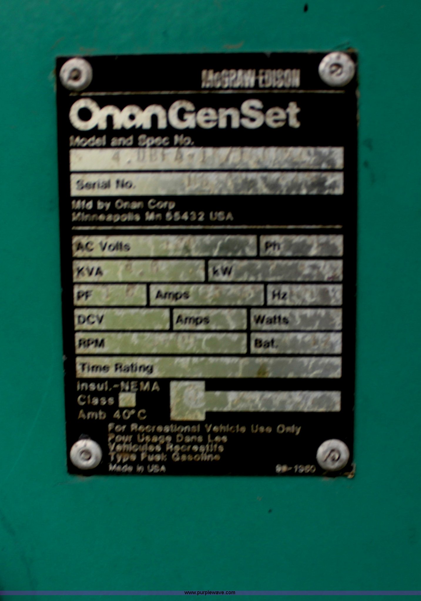 - Onan GenSet generator
