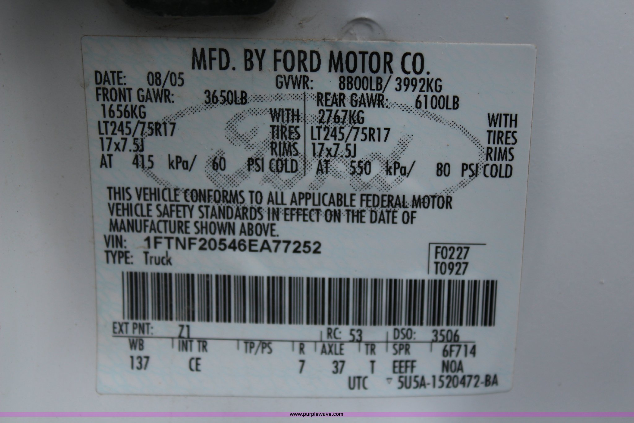 Purple Wave is selling a used 3/4 or 1 Ton Pickup or Van in Kansas. This item is a 2006 Ford F250 Super Duty XL pickup truck with the following: 99,496 miles on odometer, 5.4L V8 SOHC 16V gas engine, Automatic transmission, AC and heat, Tilt, AM/FM, Manual windows and locks, Cloth interior, Long bed, Receiver hitch, 245/75R17 tires