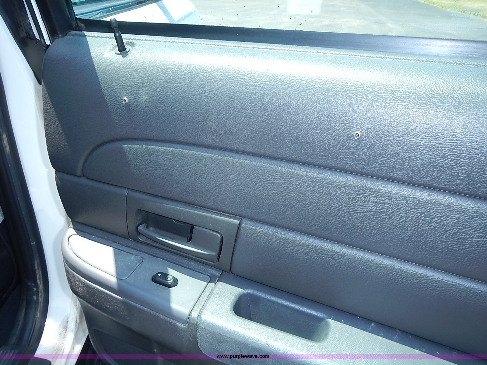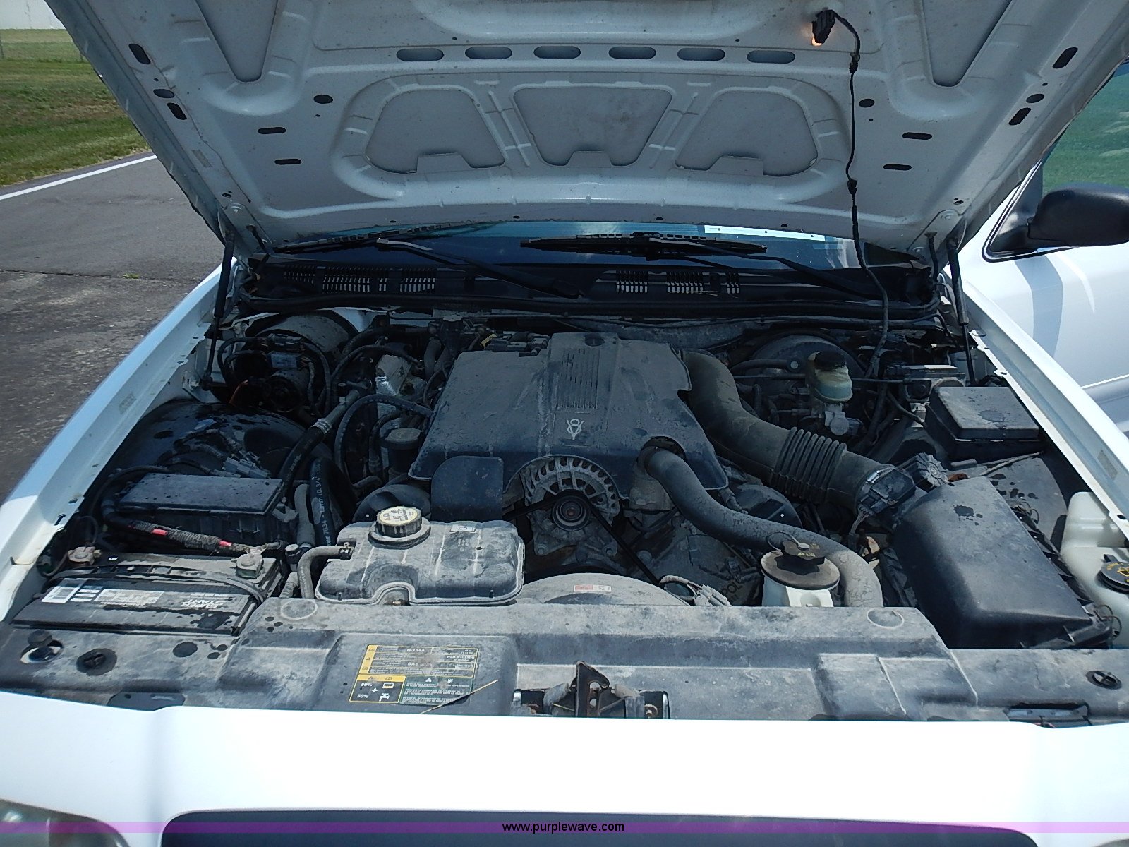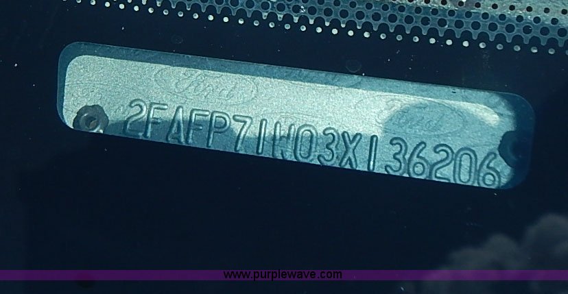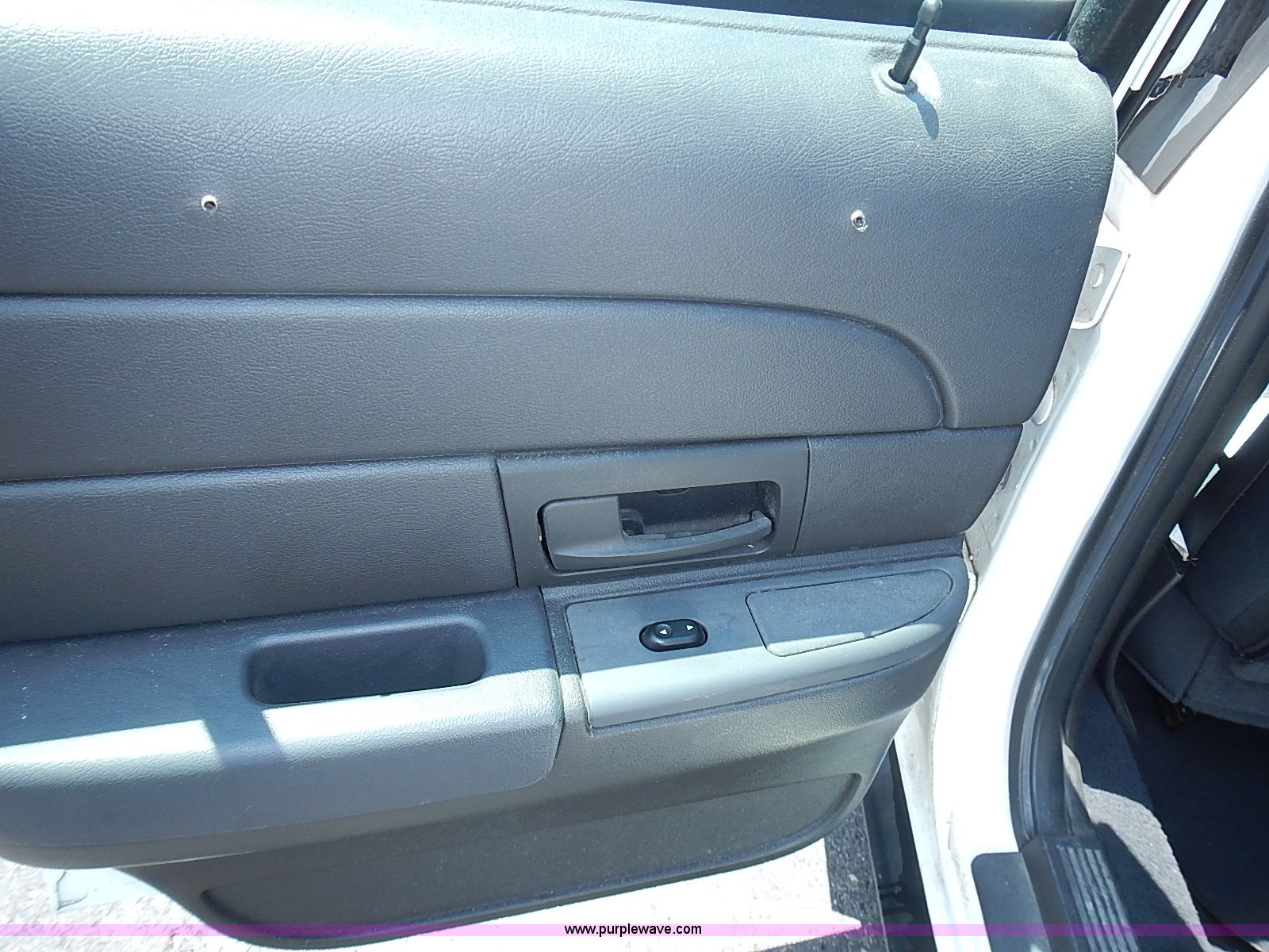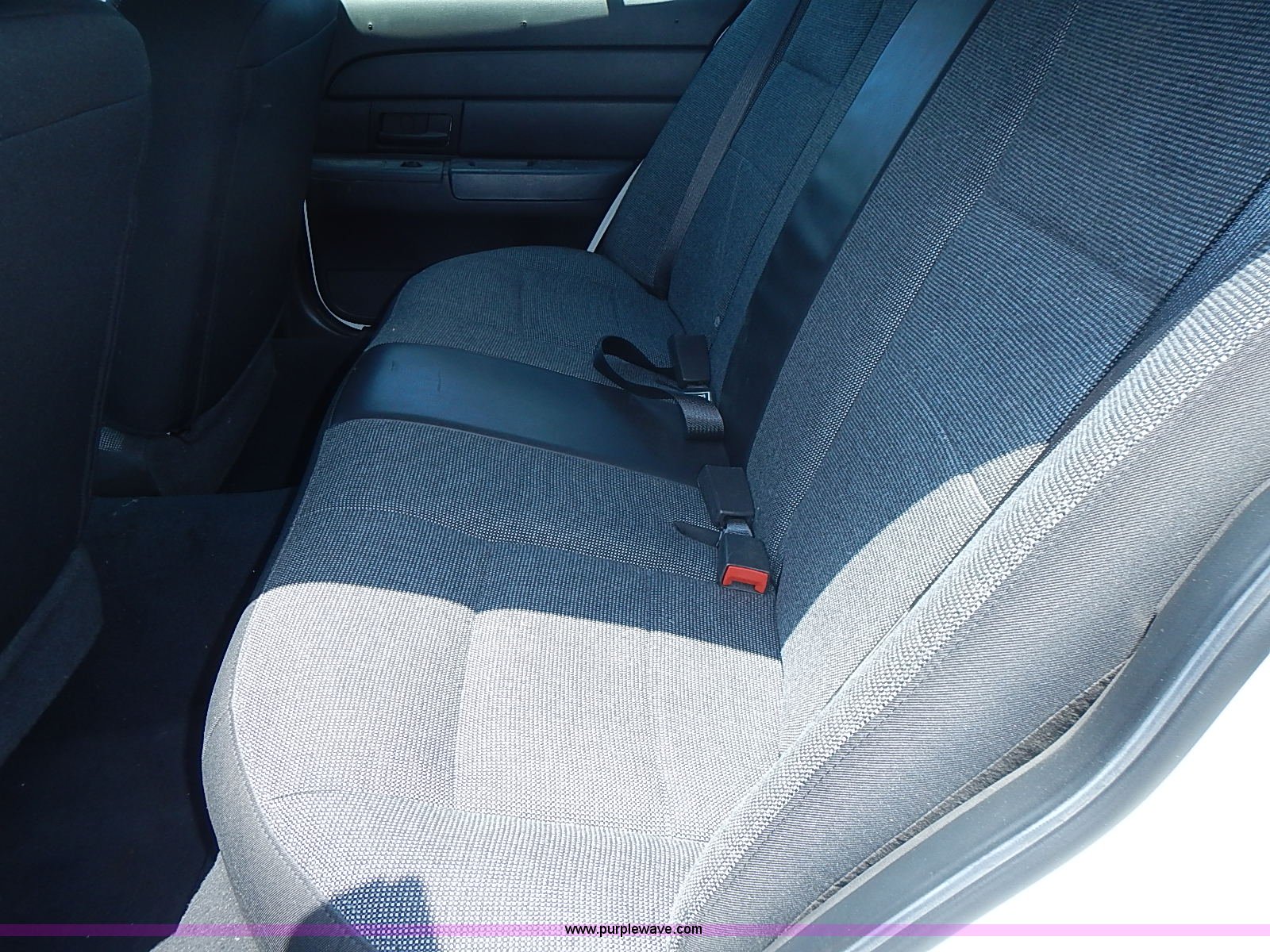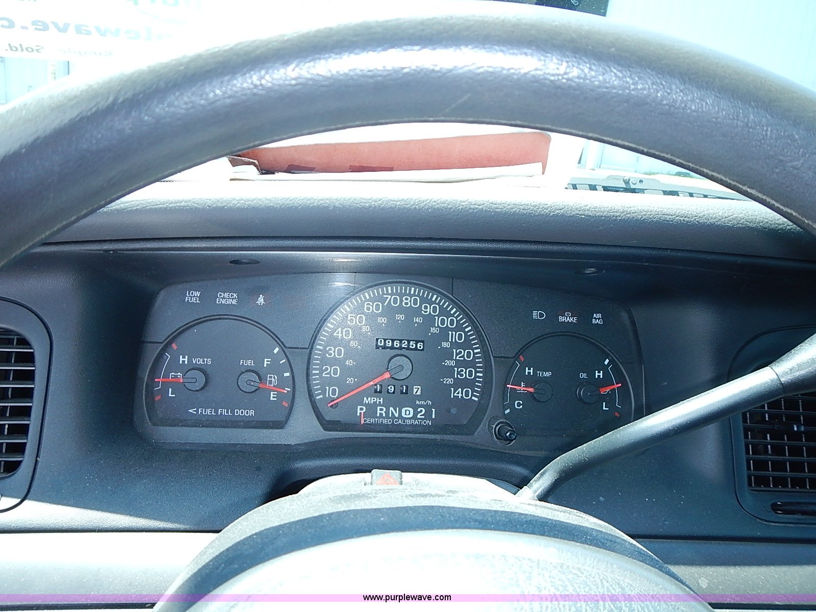 Purple Wave is selling a used Passenger Vehicle in Kansas. This item is a 2003 Ford Crown Victoria Police Interceptor with the following: 96,256 miles on odometer, 4.6L V8 SOHC 16V gas engine, Automatic transmission, AC and heat, Tilt, Cruise, AM/FM/cassette, Power windows, locks, mirrors, and seats, Cloth interior, Heated mirrors, Spot light, Push bar, 22560R16 tires, Weak battery, Paint peeling, Unit# 03-107