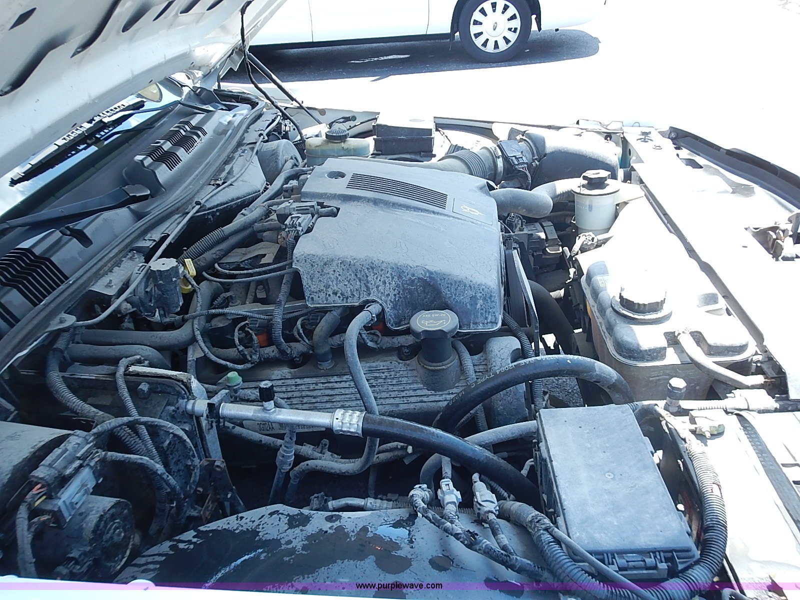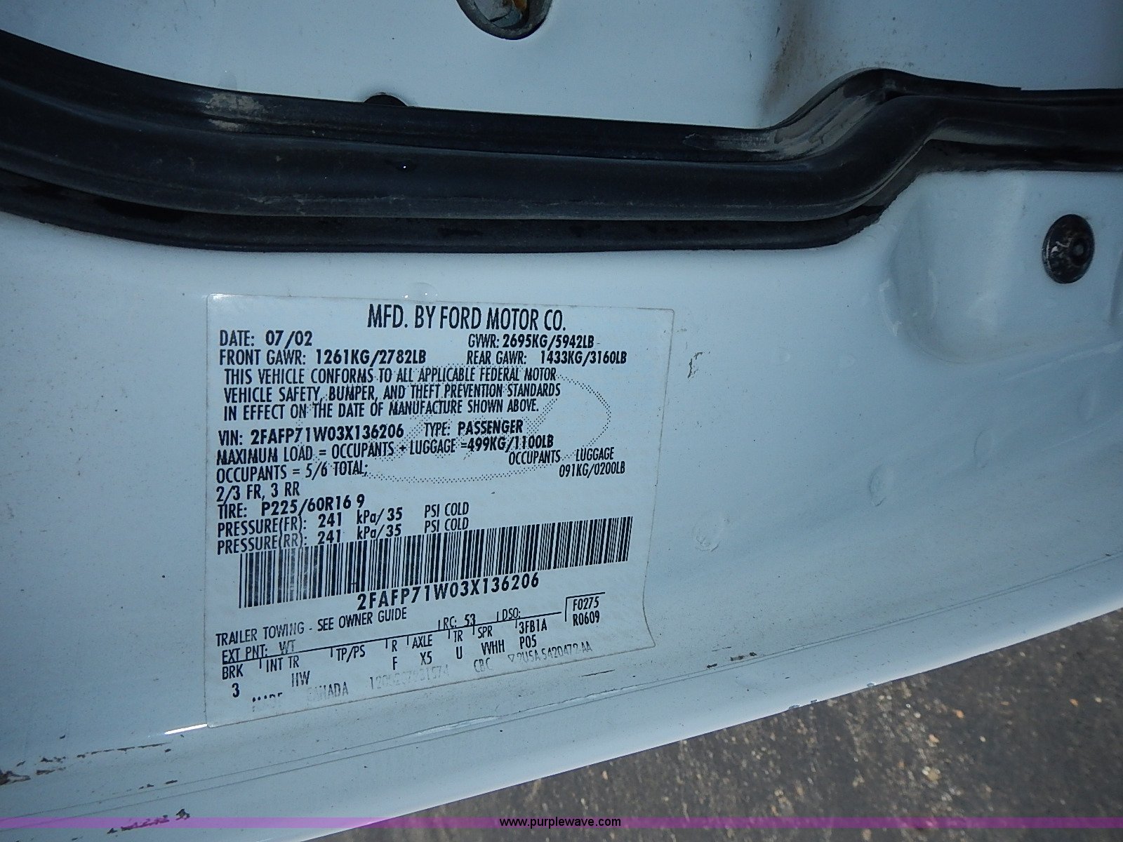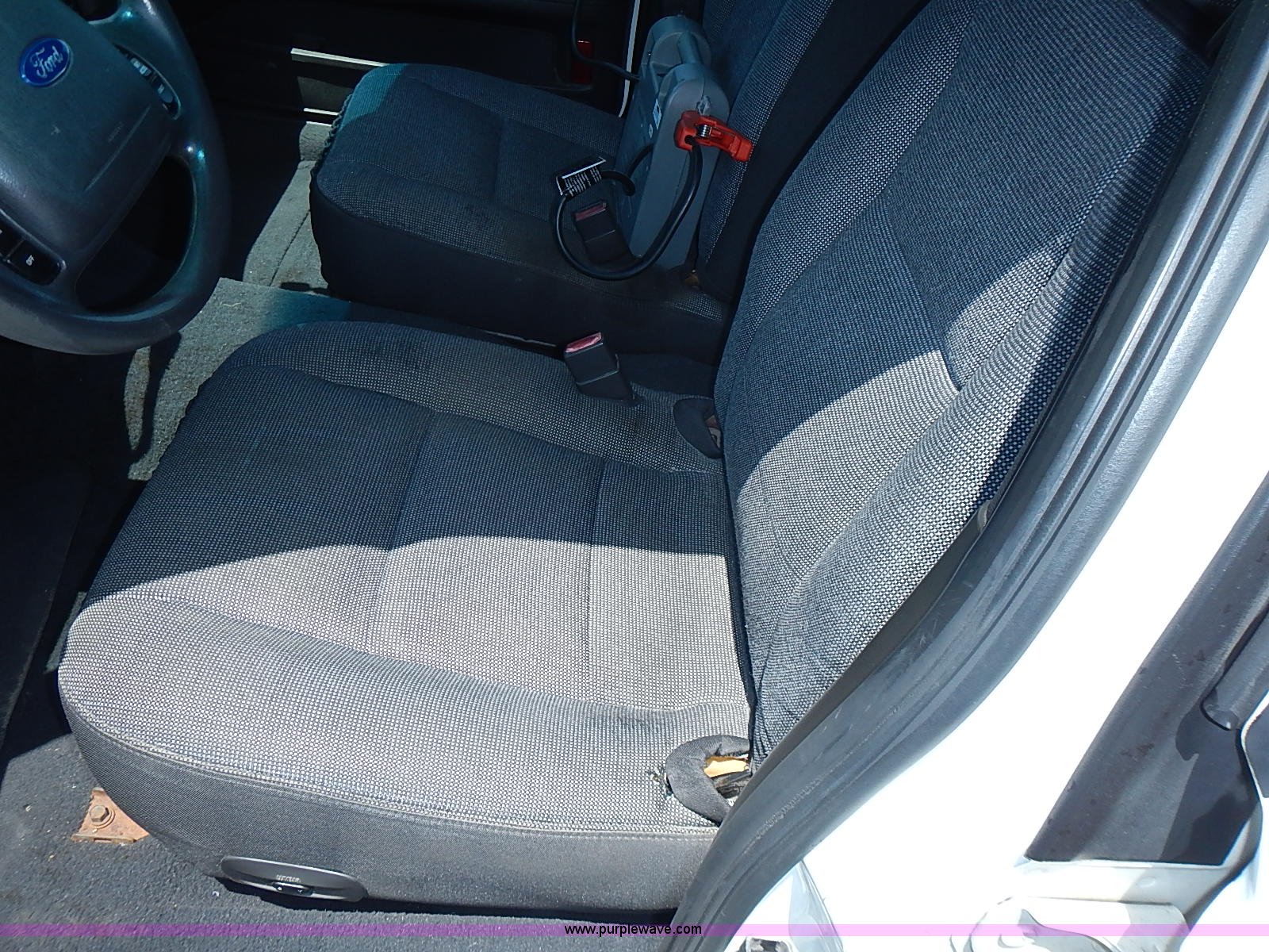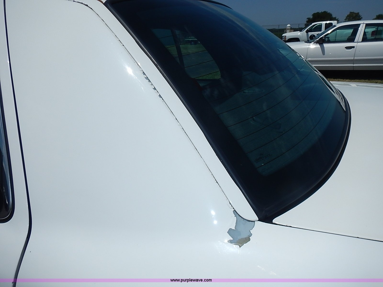 Purple Wave is selling a used Passenger Vehicle in Kansas. This item is a 2003 Ford Crown Victoria Police Interceptor with the following: 96,256 miles on odometer, 4.6L V8 SOHC 16V gas engine, Automatic transmission, AC and heat, Tilt, Cruise, AM/FM/cassette, Power windows, locks, mirrors, and seats, Cloth interior, Heated mirrors, Spot light, Push bar, 22560R16 tires, Weak battery, Paint peeling, Unit# 03-107