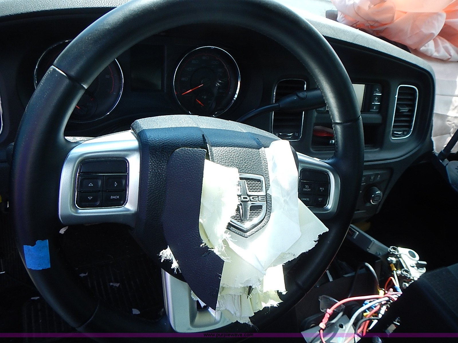Purple Wave is selling a used Passenger Vehicle in Kansas. This item is a 2012 Dodge Charger Police with the following: 41,819 miles on odometer, 5.7L V8 OHV 16V gas engine, Automatic transmission, AC and heat, AM/FM/CD, Power windows, locks, mirrors, and seats, Cloth interior, Autostick, 225/60R18 tires, Battery dead, Police equipment will be removed prior to auction, Decals will be removed prior to auction, Windshield cracked, Air bags deployed, Frame bent, Damage due to accident, Driver's rear quarter panel and bumper replaced, Unit# 919