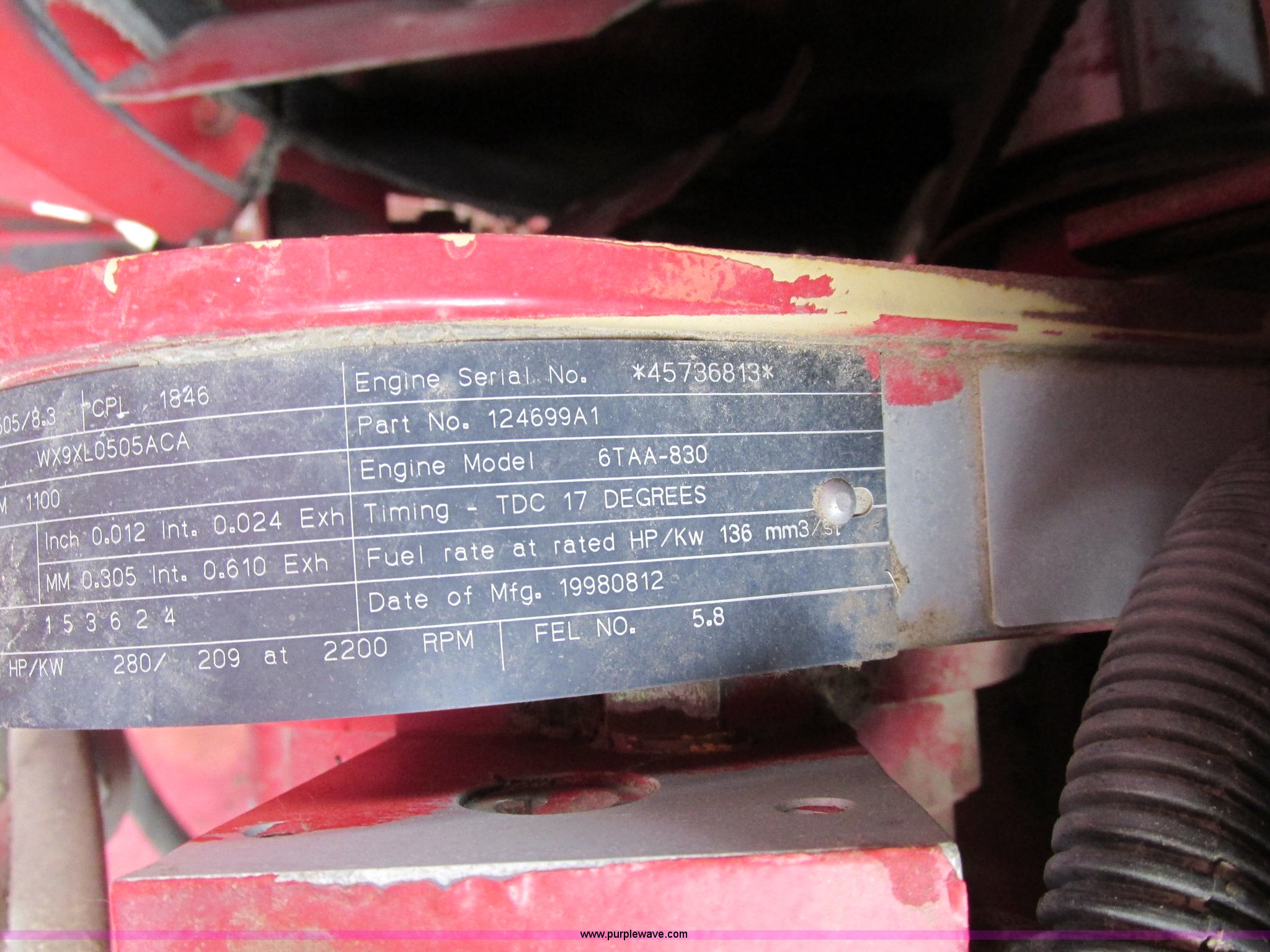1998 Case IH 2388 RWA combine. 884 engine hours on meter 3,510 estimated engine hours, 3,150 estimated separator hours, Case 6TAA-830 8.3L six cylinder diesel engine 280 HP, Serial 45736813, Hydrostatic transmission 3F-3R gears, AC and heat, AM/FM/weatherband, Air suspension seat, Instructor's seat, Tilt steering wheel, Shades and visors, Case AFS GPS and grain monitor, Feeder house reverser, Clary Big Top bin extension, Work lights, Straw spreader, Operators manual, 18.4R42 dual front tires, 18.4R26 rear tires, Serial JJC0199954. Financing available on Case assets with prior approval from the location manager. Must be approved by July 28. View all items from this seller. View equipment video. Northern Plains Equipment Co., Inc.. 2933 Twin City Dr. Mandan, ND 58554