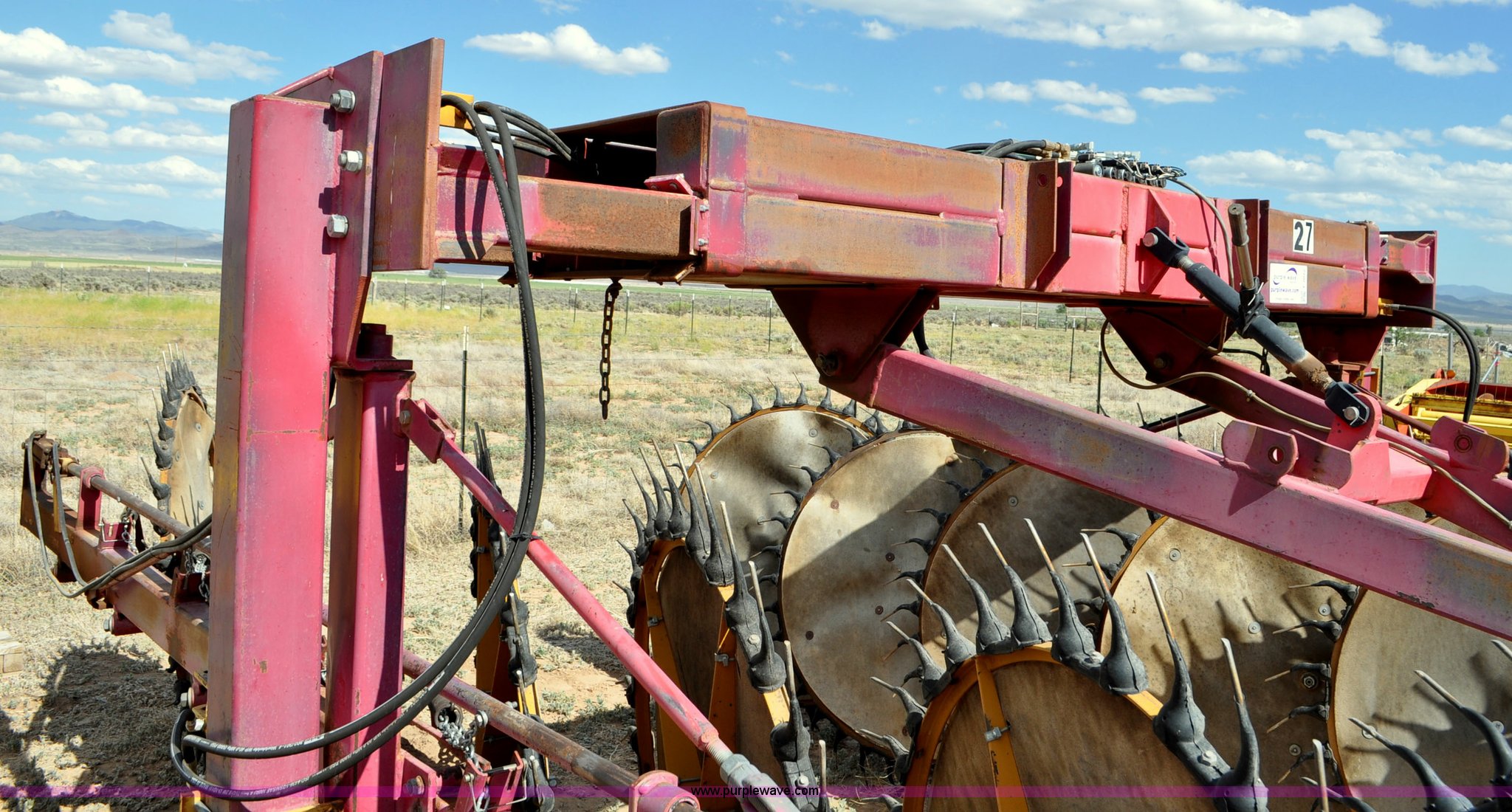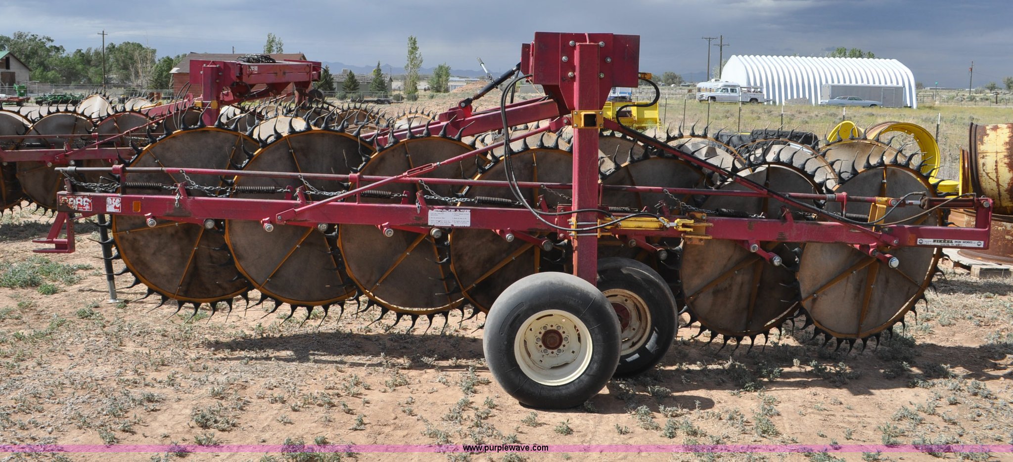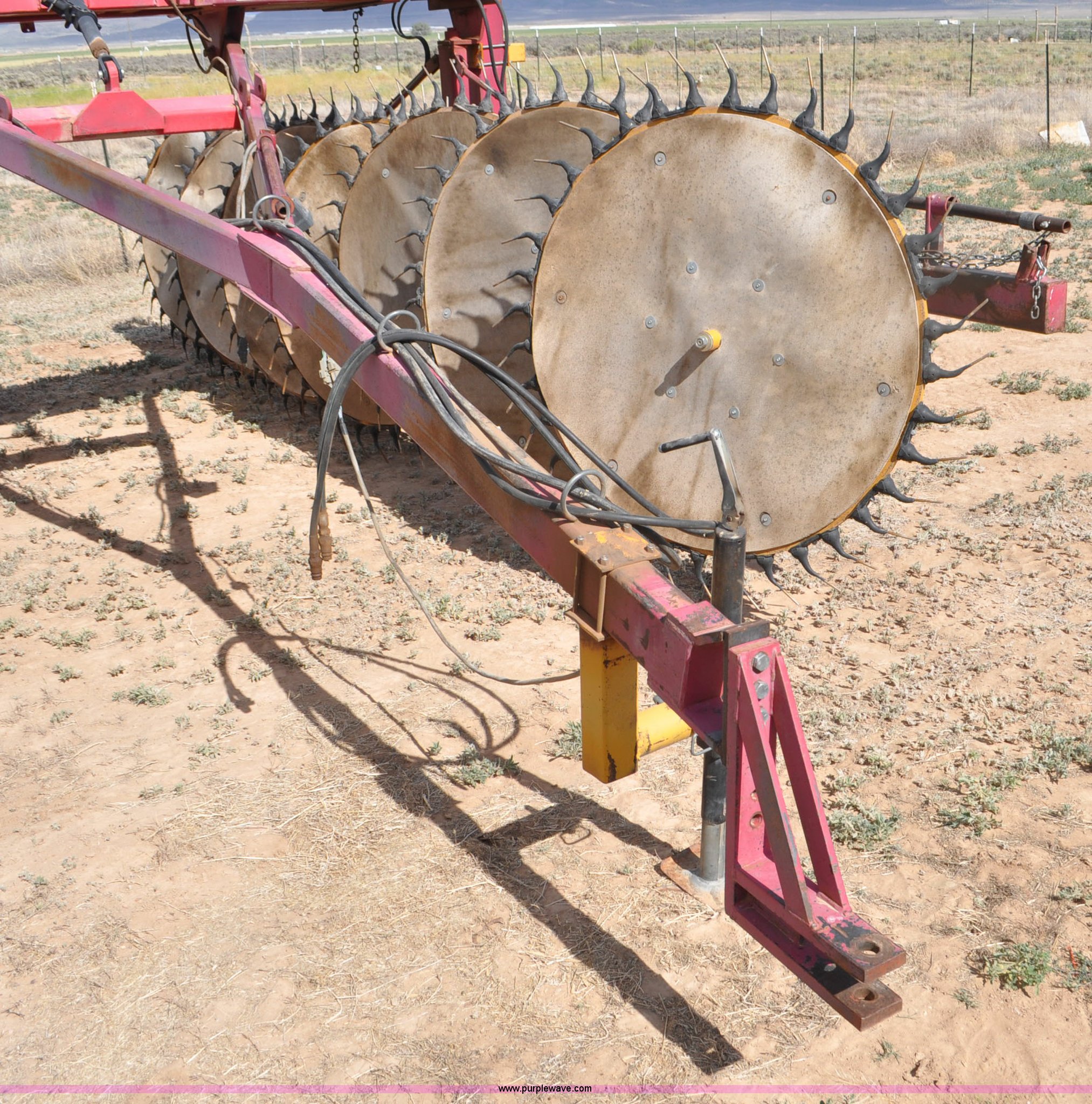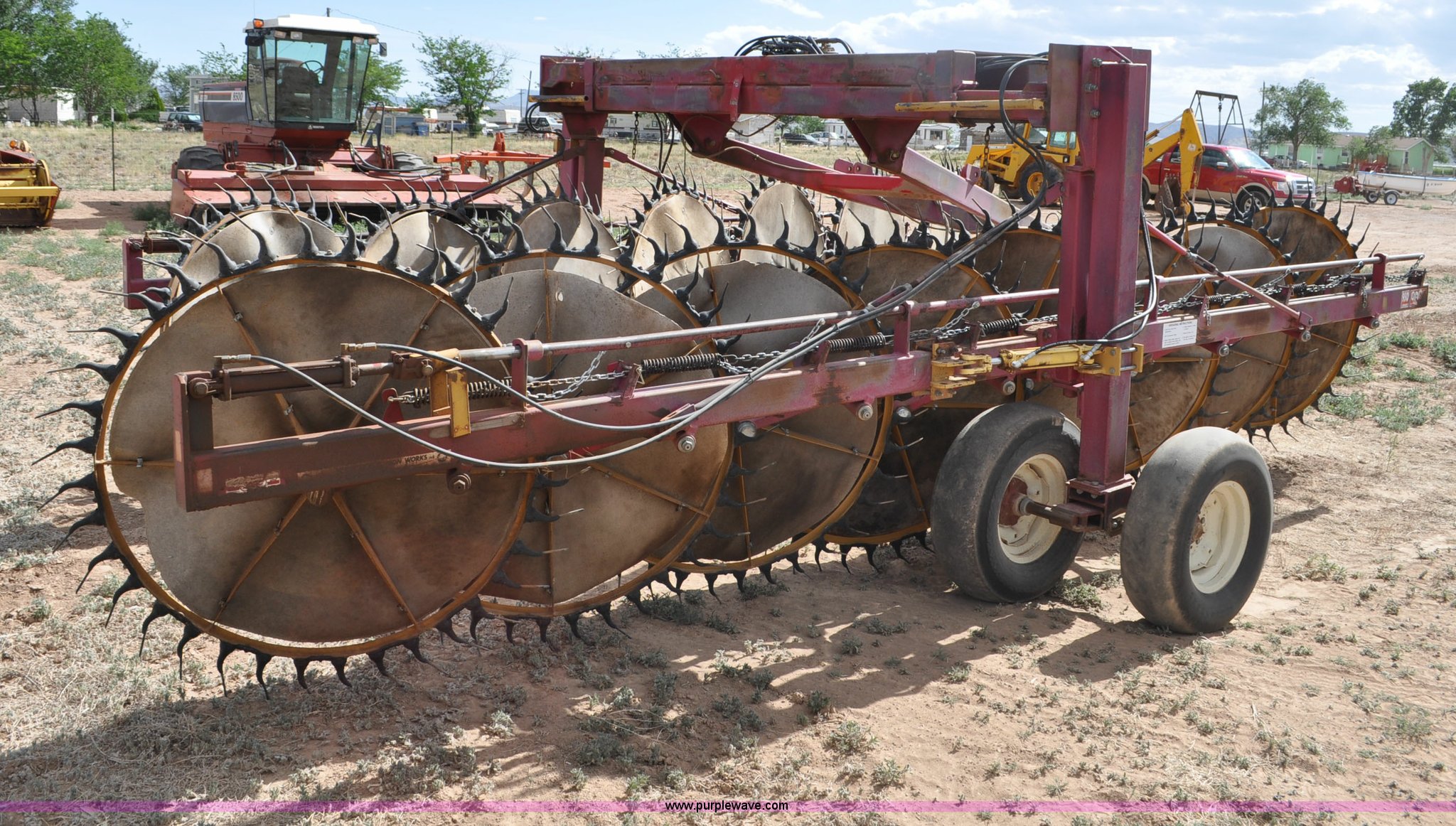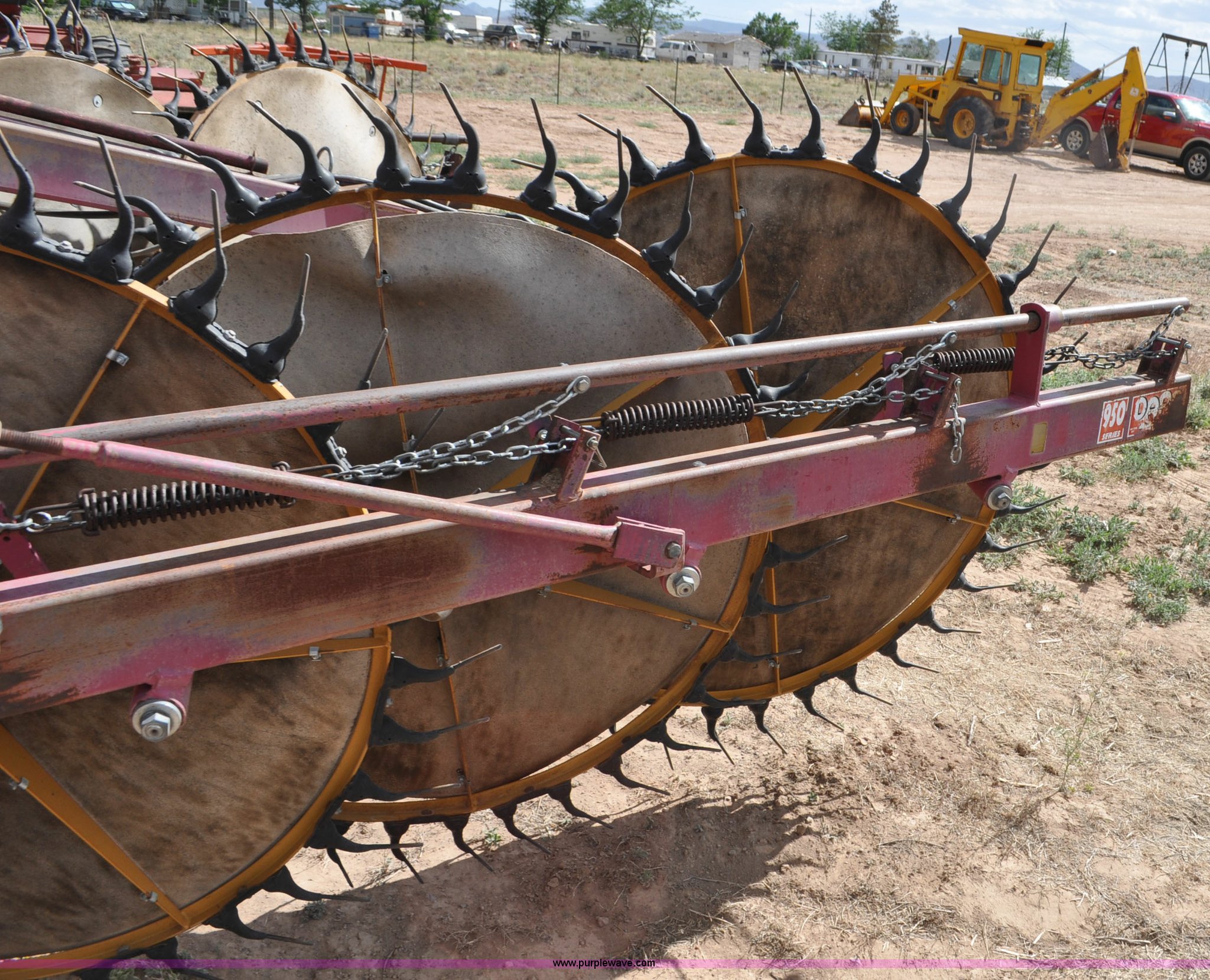 Purple Wave is selling a used Hay Rake in Utah. This item is a Darf 950 hay rake with the following: 15 wheels, 5' diameter wheels, Hydraulic fold and raise, Pin hitch, Tandem rocker axles, 11L-15 tires, Serial 55428, Unit# U13G1896