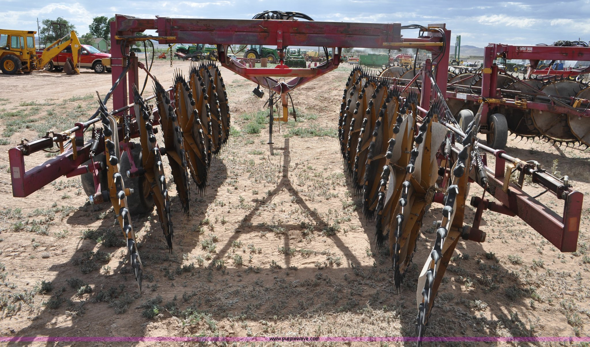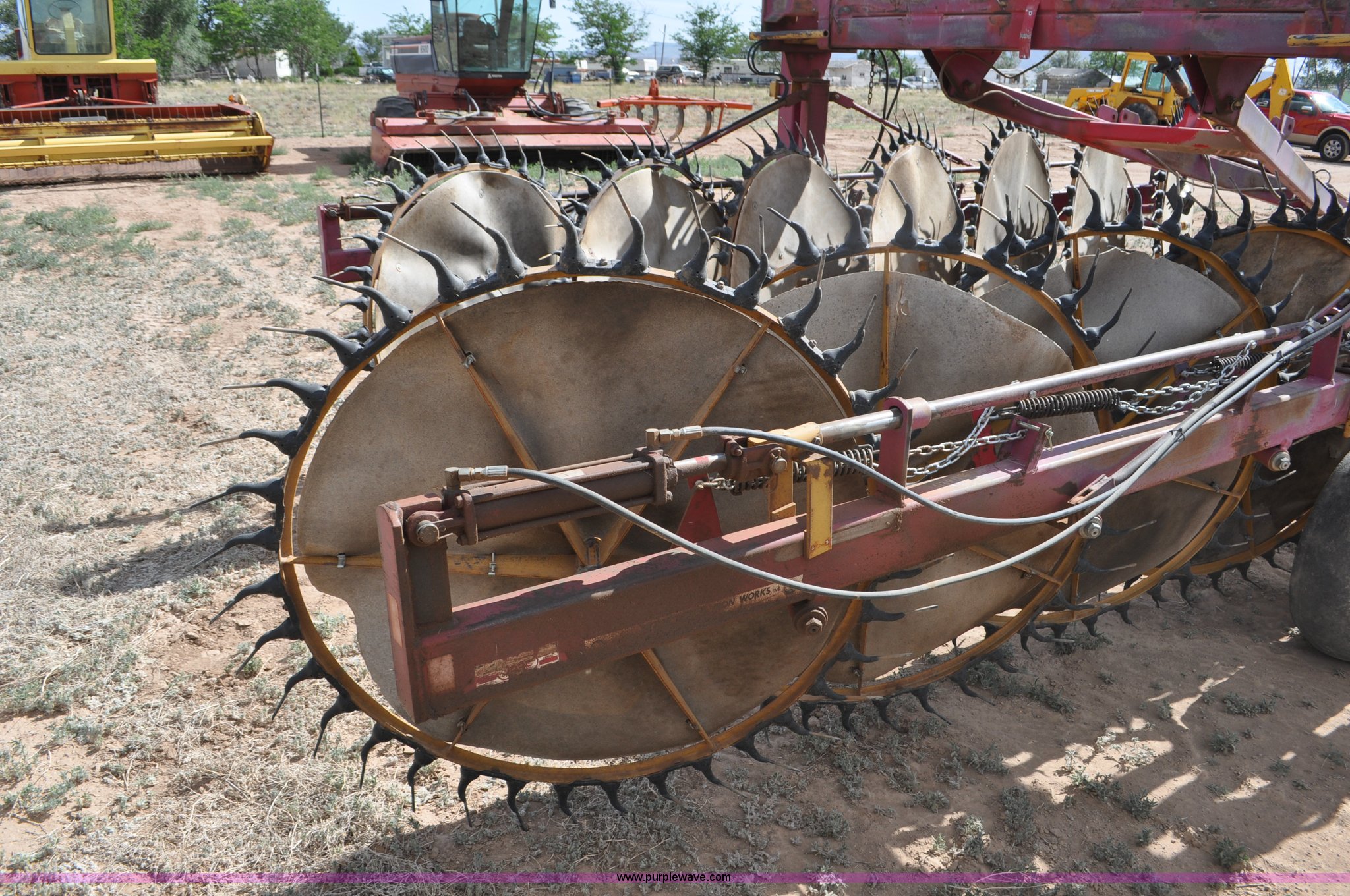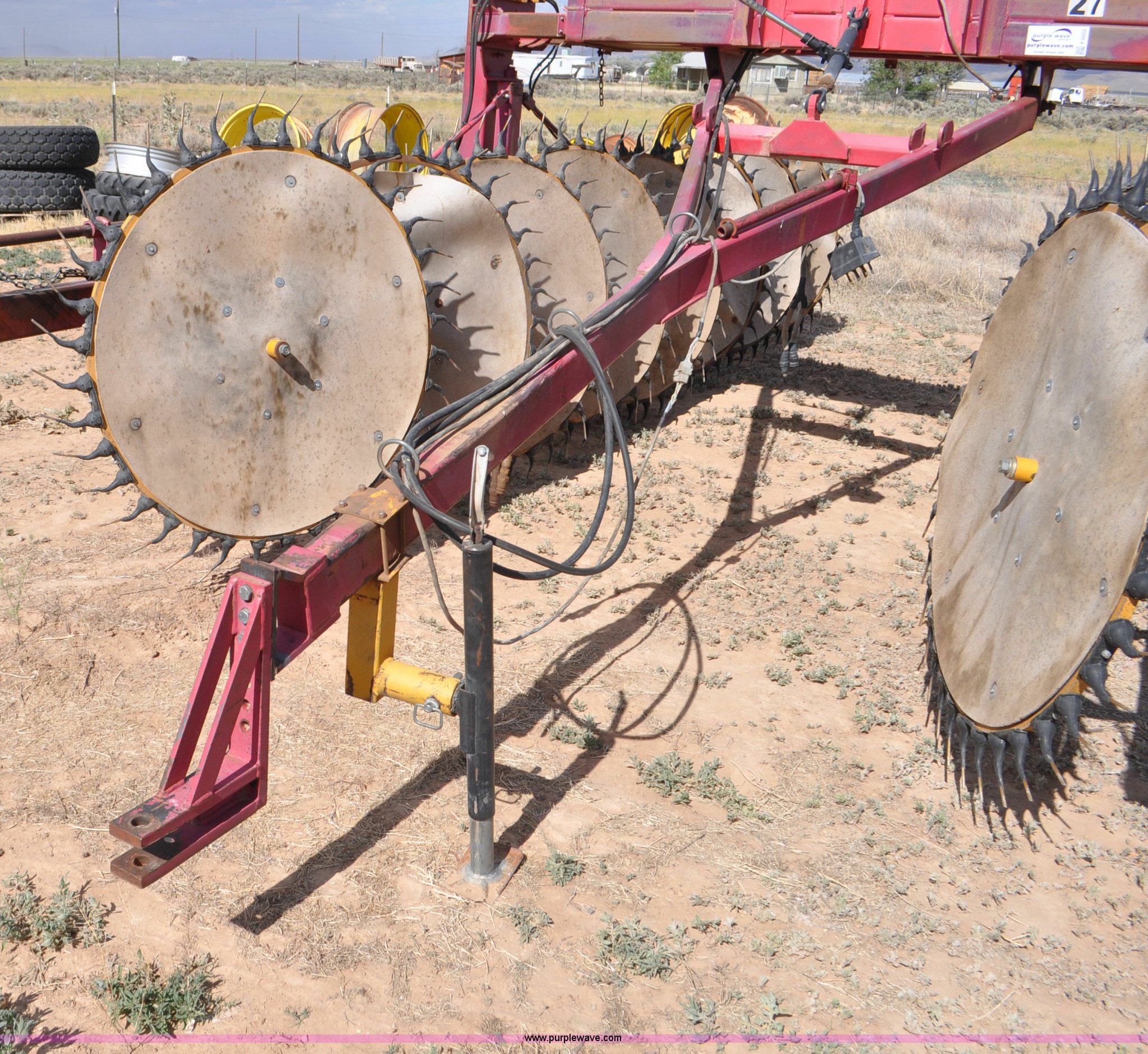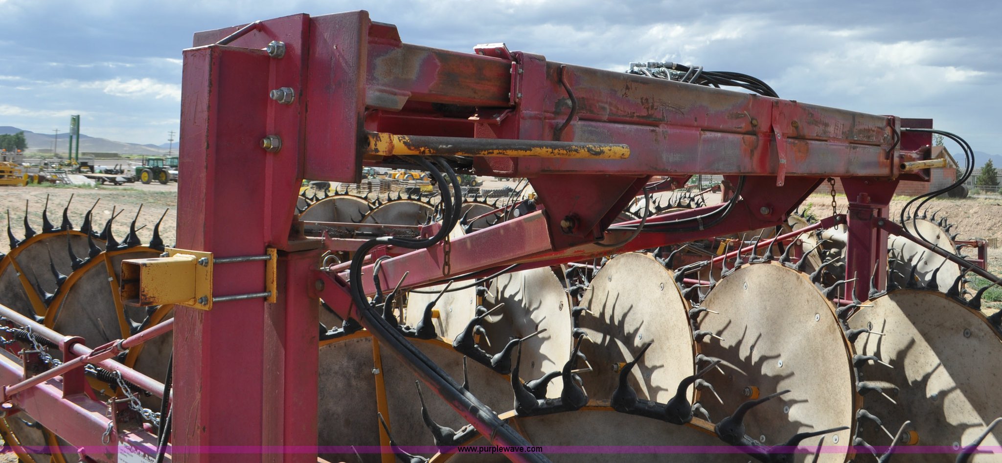 Purple Wave is selling a used Hay Rake in Utah. This item is a Darf 950 hay rake with the following: 15 wheels, 5' diameter wheels, Hydraulic fold and raise, Pin hitch, Tandem rocker axles, 11L-15 tires, Serial 55428, Unit# U13G1896