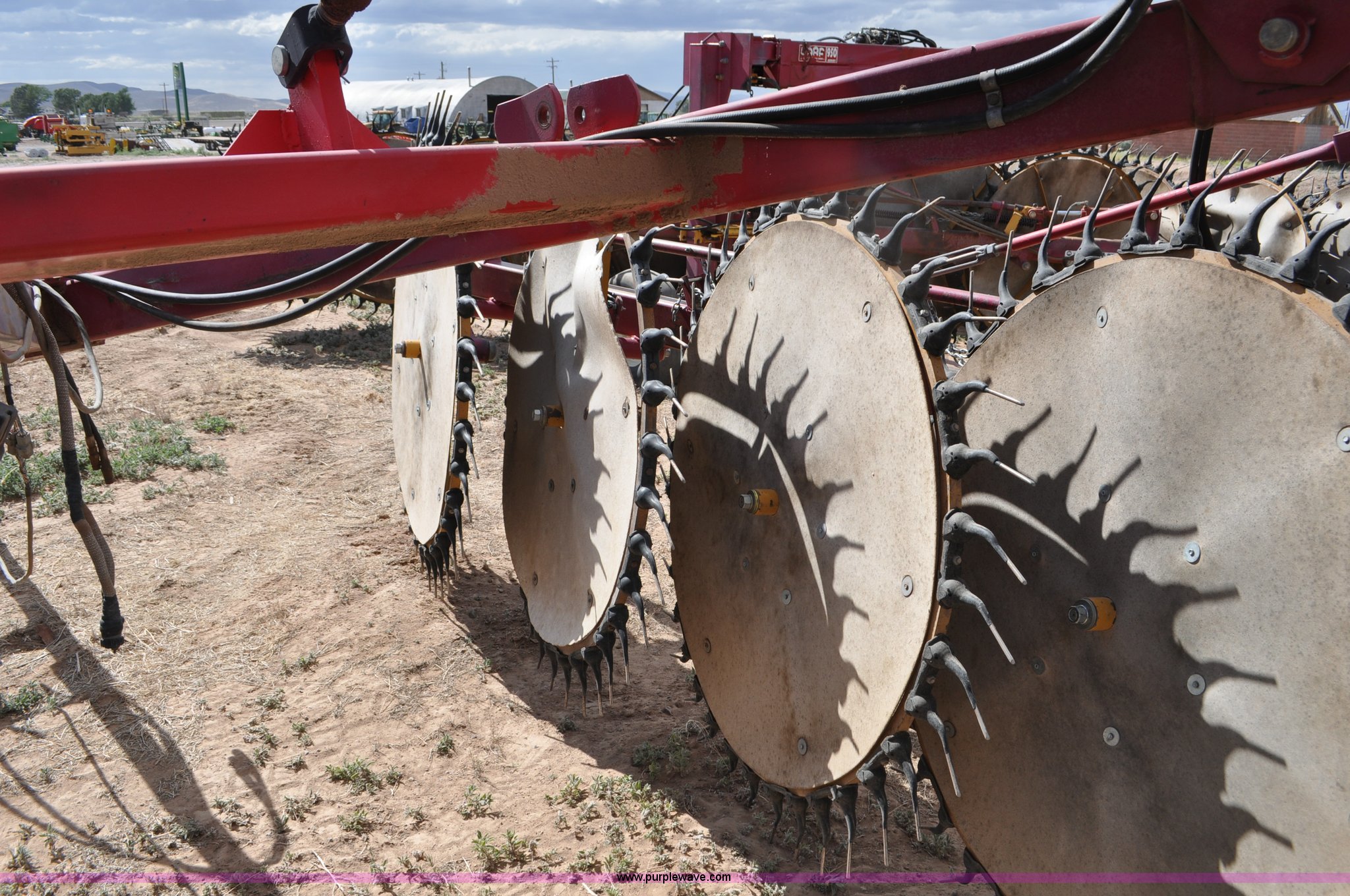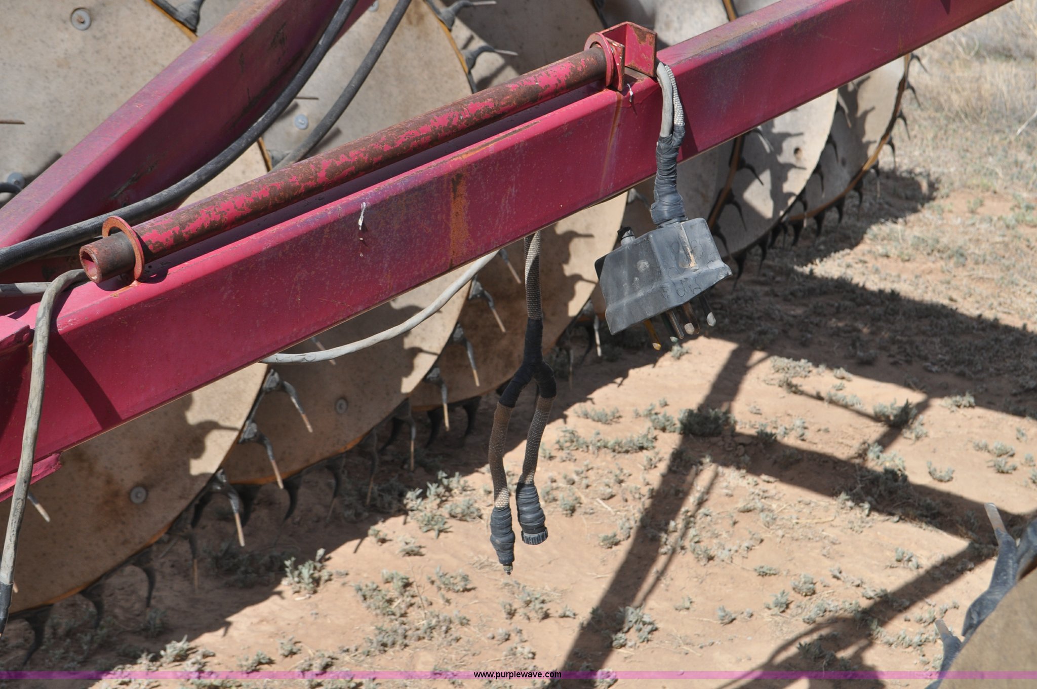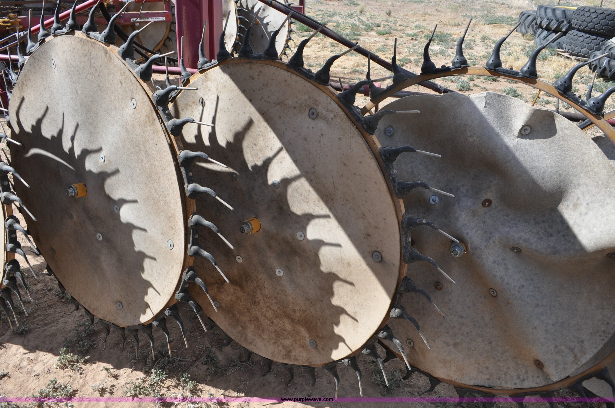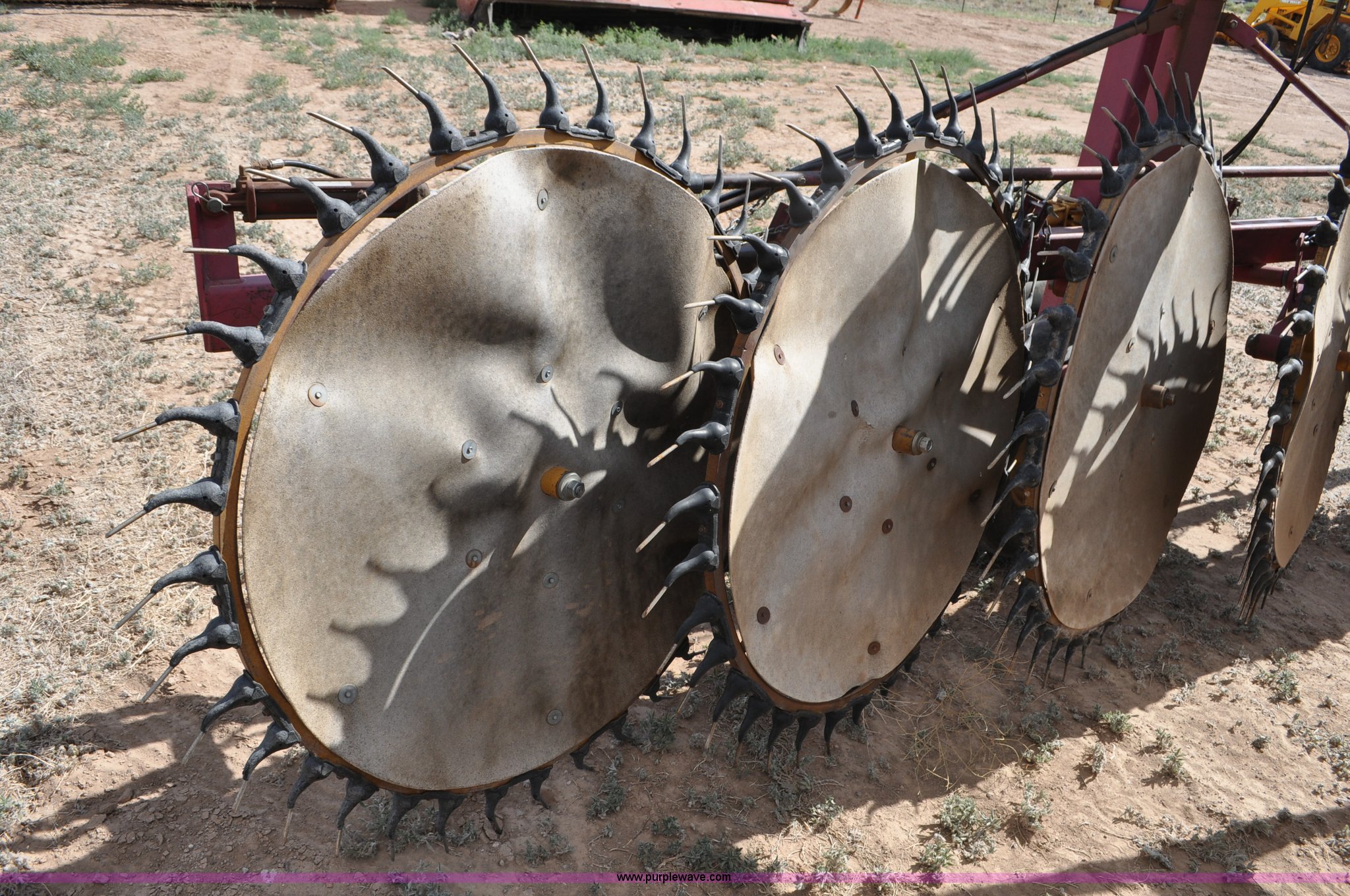 Purple Wave is selling a used Hay Rake in Utah. This item is a Darf 950 hay rake with the following: 15 wheels, 5' diameter wheels, Hydraulic fold and raise, Pin hitch, Tandem rocker axles, 11L-15 tires, Serial 55428, Unit# U13G1896