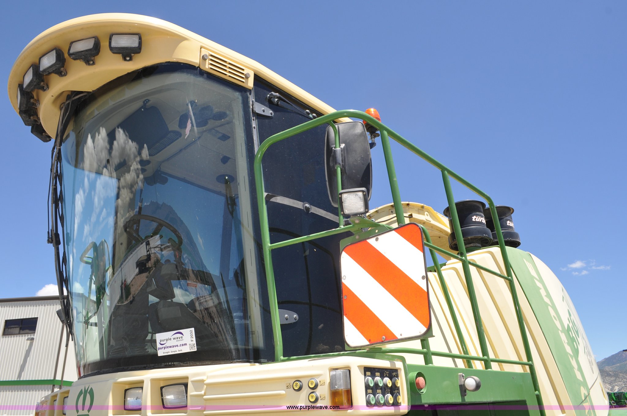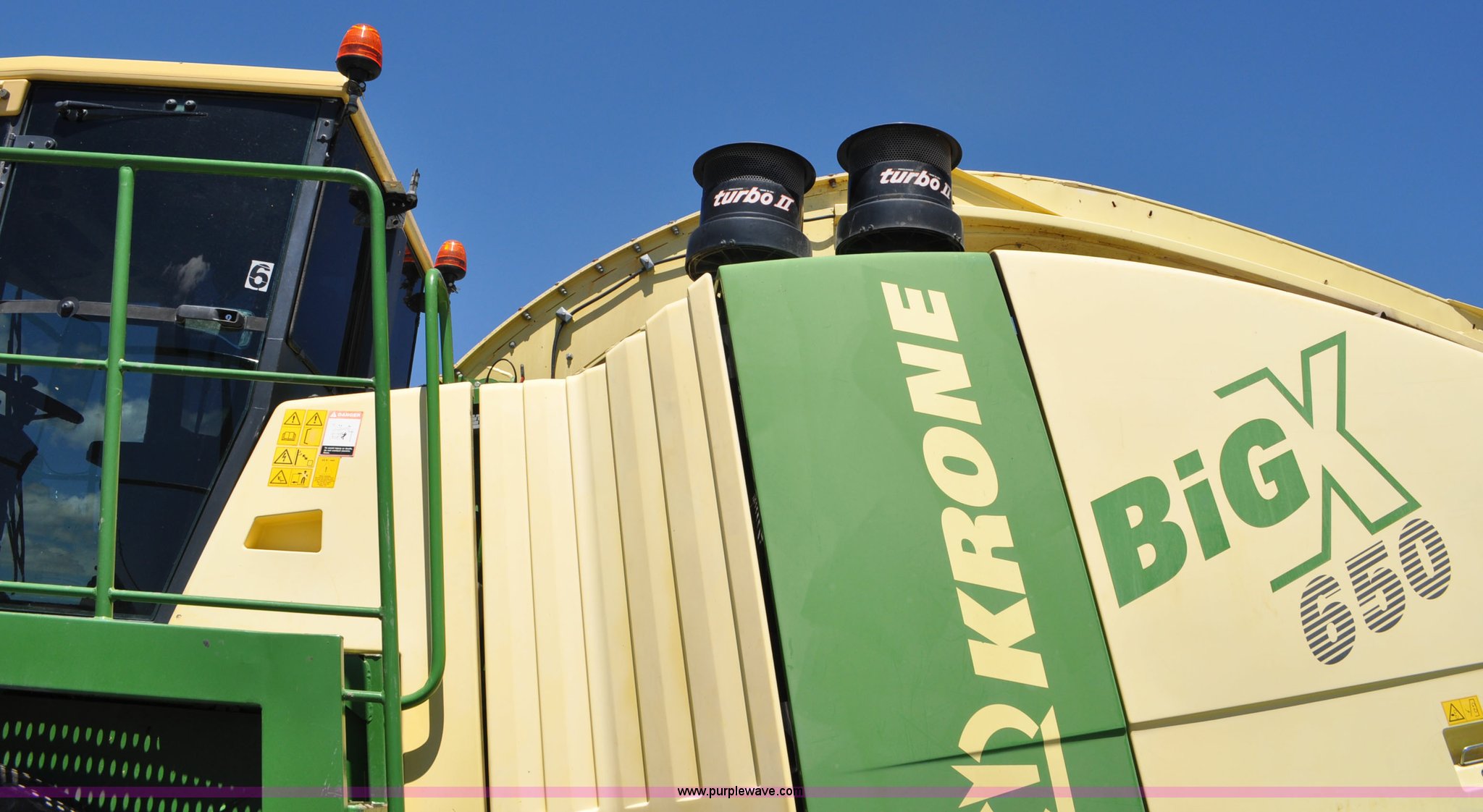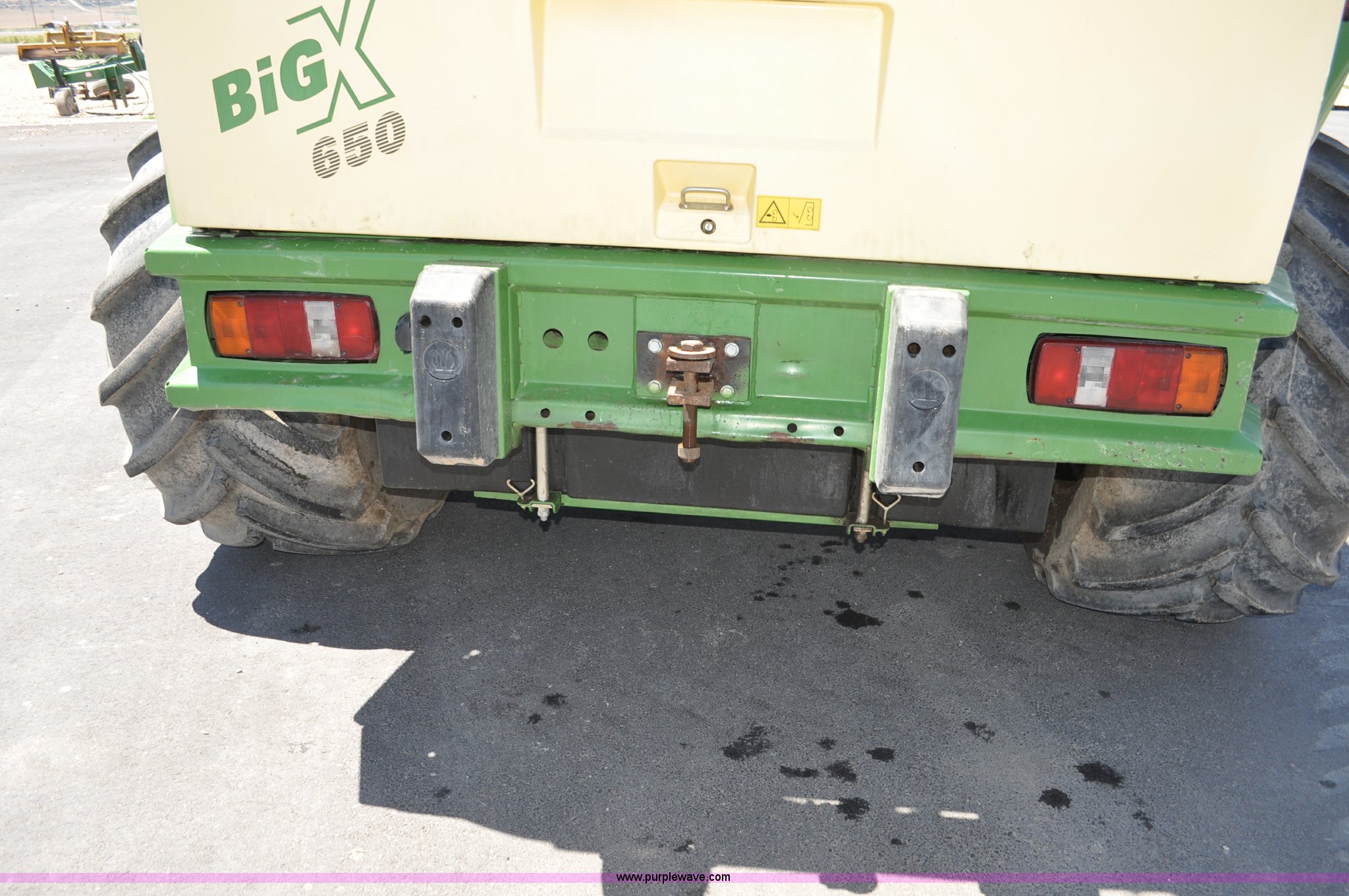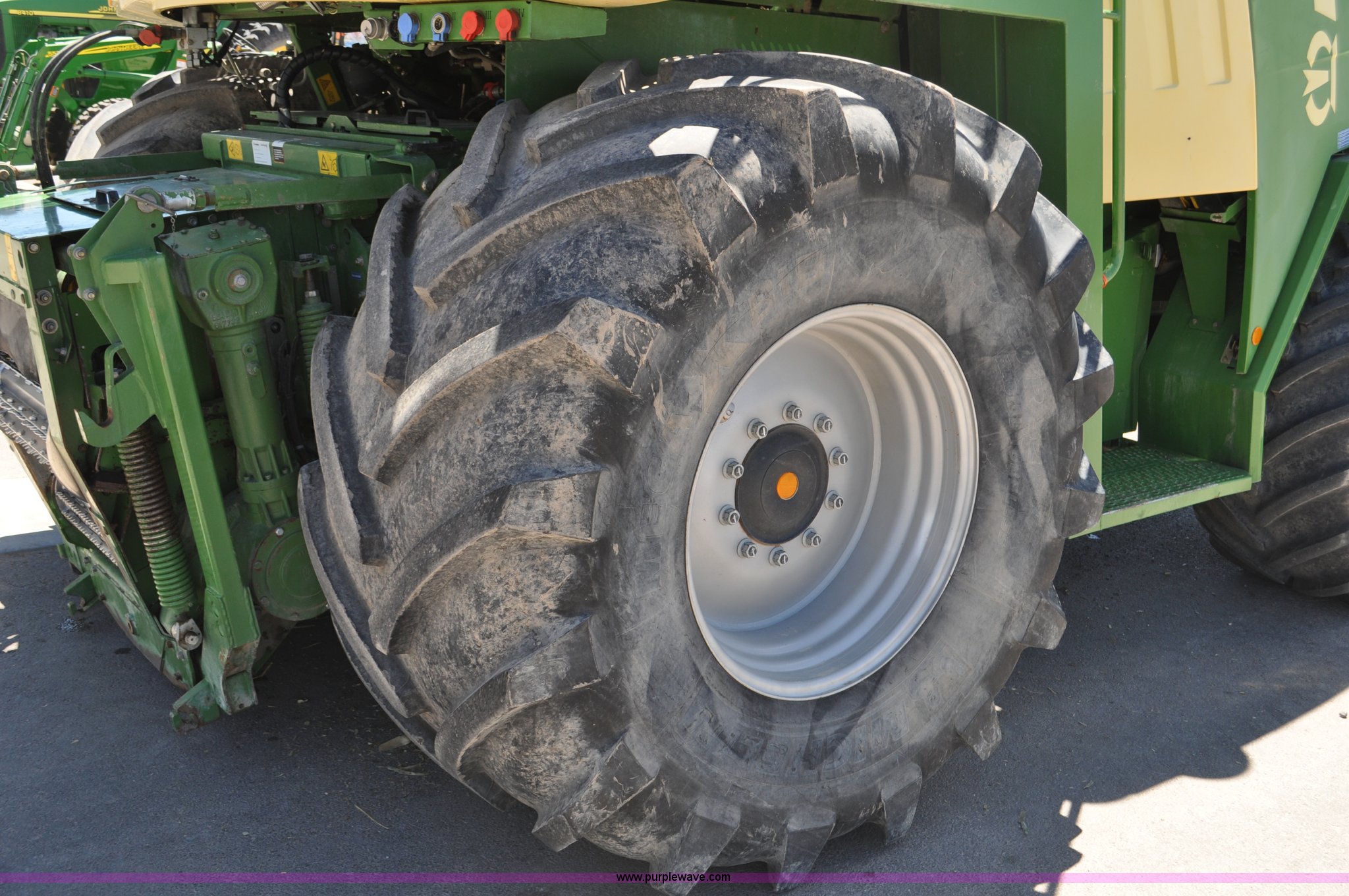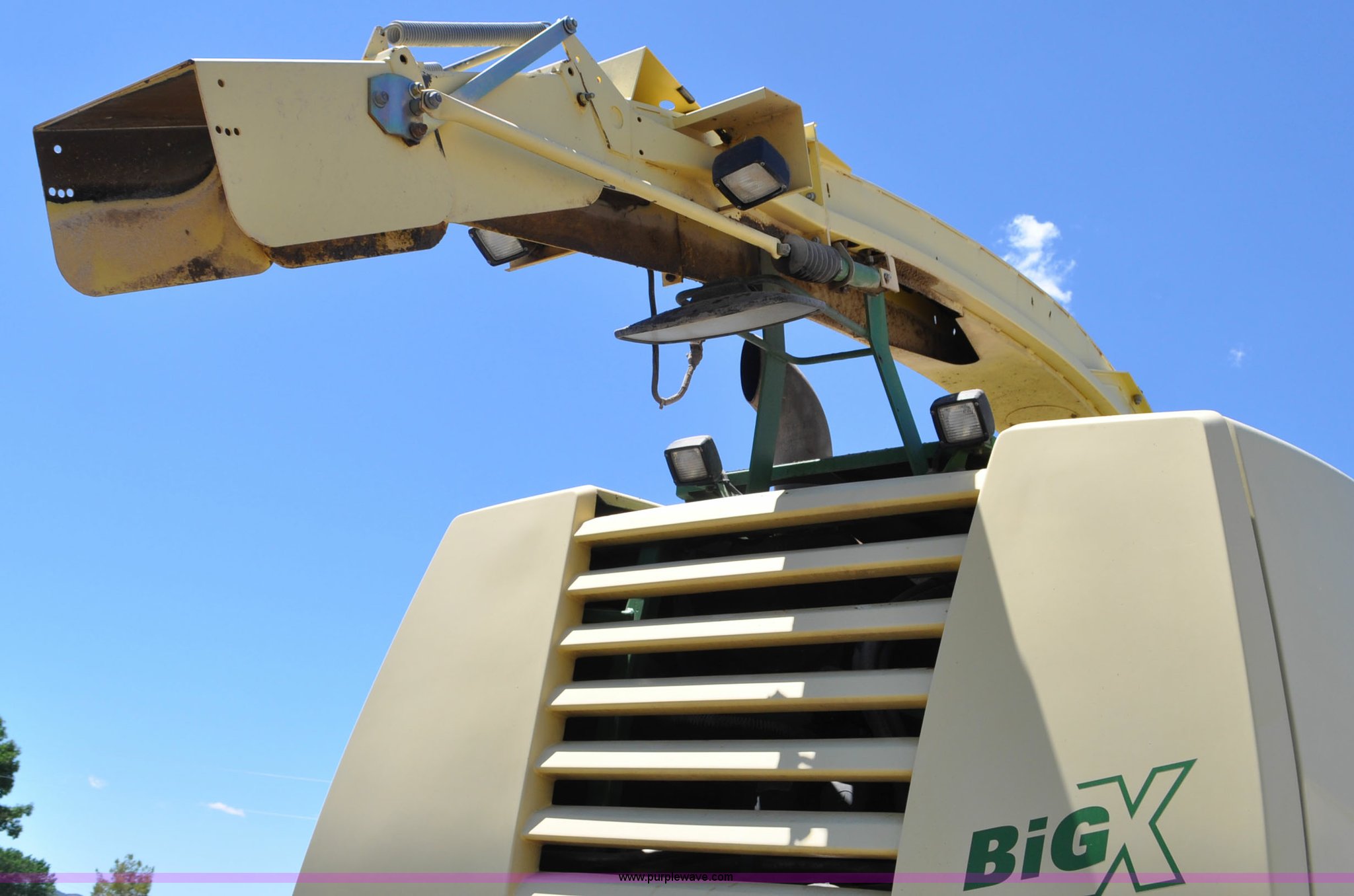 Purple Wave is selling a used Forage Harvester in Utah. This item is a 2008 Krone Big X 650 forage harvester with the following: 2,117 engine hours on meter, 1,579 separator hours on meter, Daimler Chrylser OM502LA 15.9L eight cylinder Tier III diesel engine, 653 HP, Infinite variable transmission with wheel motors, Four wheel drive, Auto climate control, Air suspension seat, Windshield wiper, Side window wipers, Buddy seat, EasyTouch information center, Autopilot, Kernel processor, Feed roll V-sandwich/quick attach, VariStream crop flow system, Automatic auto lube system, 210 degree swivel range of unloading chute, 254 gallon fuel tank, 900/60R32 front tires, 710/55R30 rear tires, Serial BX746938, Unit# U14P0860