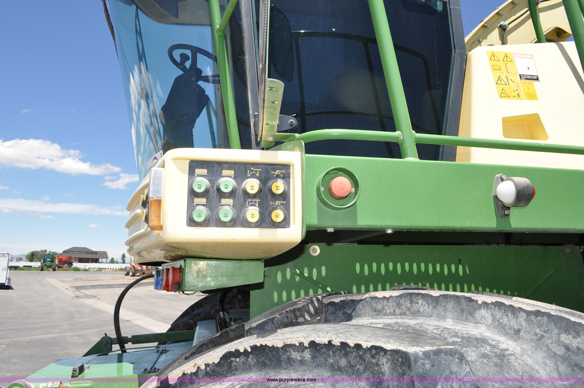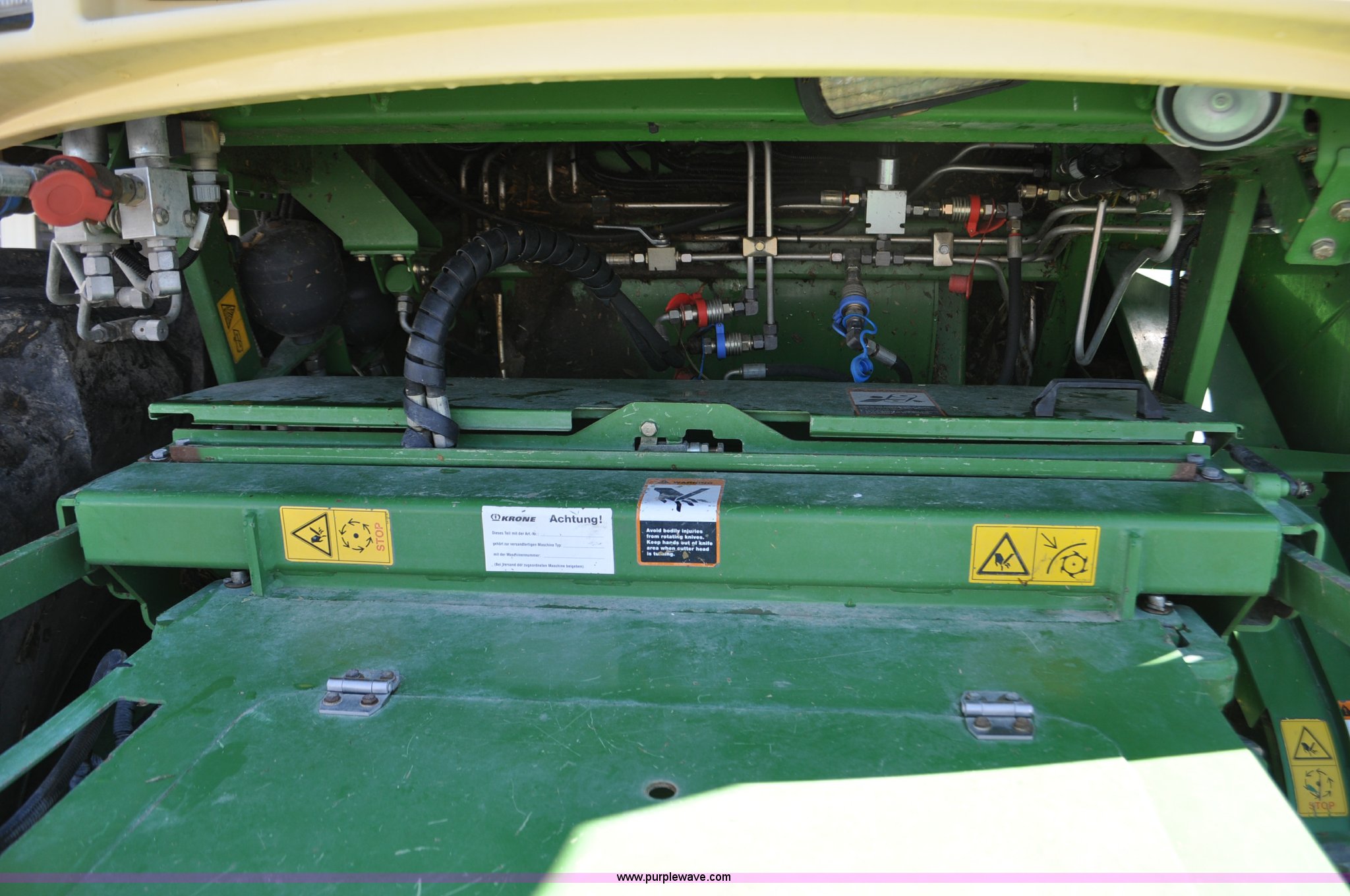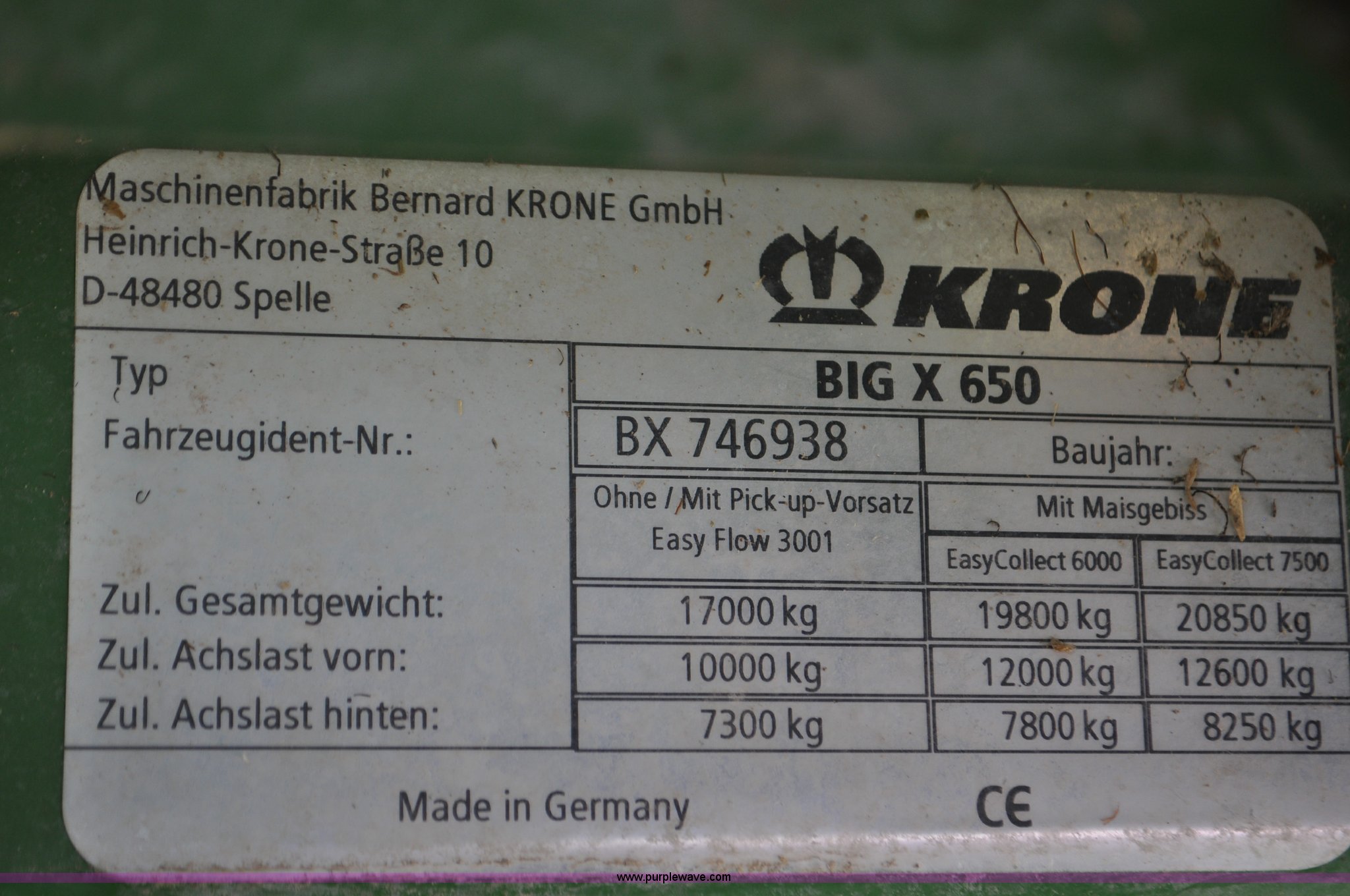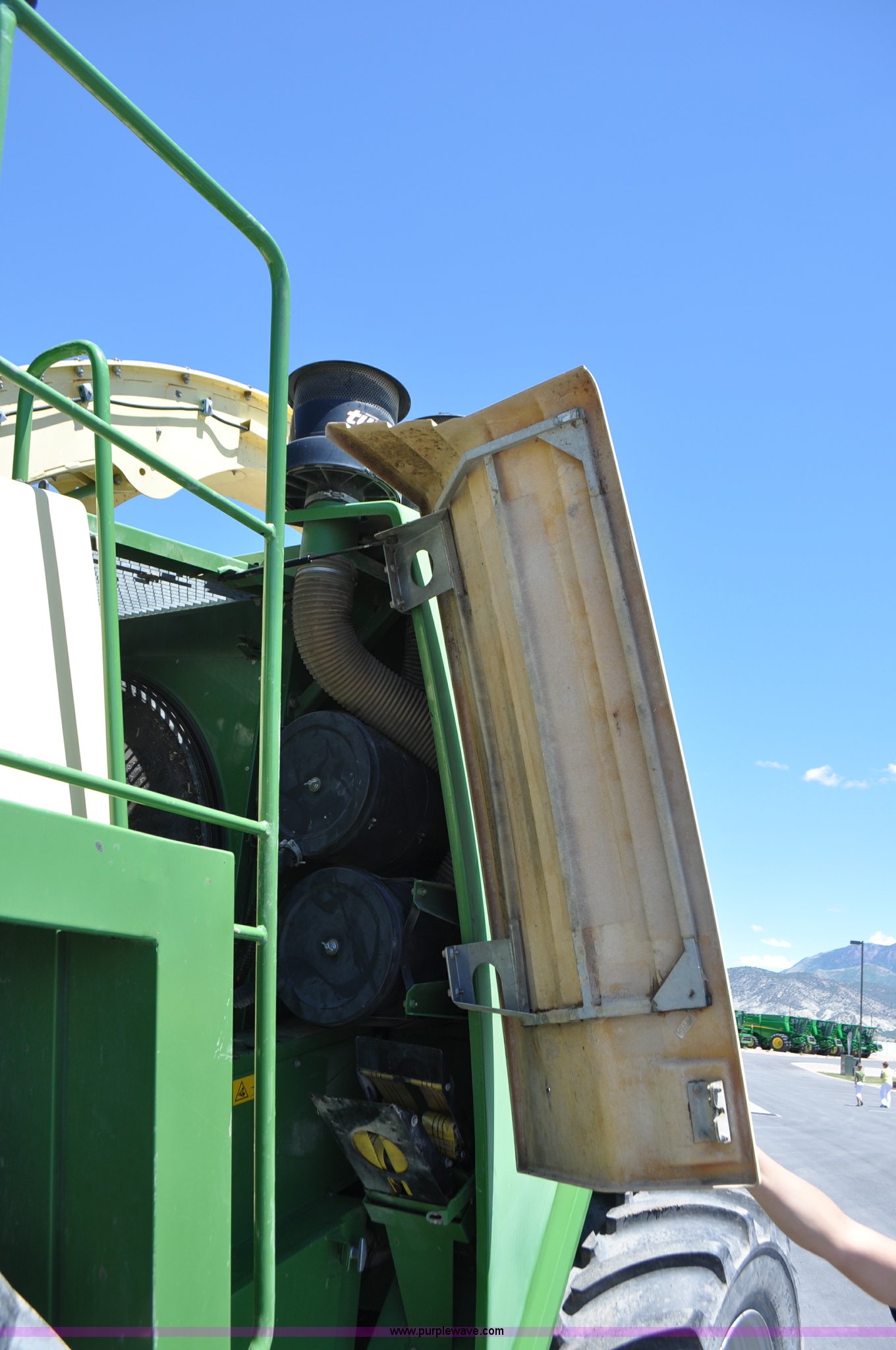 Purple Wave is selling a used Forage Harvester in Utah. This item is a 2008 Krone Big X 650 forage harvester with the following: 2,117 engine hours on meter, 1,579 separator hours on meter, Daimler Chrylser OM502LA 15.9L eight cylinder Tier III diesel engine, 653 HP, Infinite variable transmission with wheel motors, Four wheel drive, Auto climate control, Air suspension seat, Windshield wiper, Side window wipers, Buddy seat, EasyTouch information center, Autopilot, Kernel processor, Feed roll V-sandwich/quick attach, VariStream crop flow system, Automatic auto lube system, 210 degree swivel range of unloading chute, 254 gallon fuel tank, 900/60R32 front tires, 710/55R30 rear tires, Serial BX746938, Unit# U14P0860