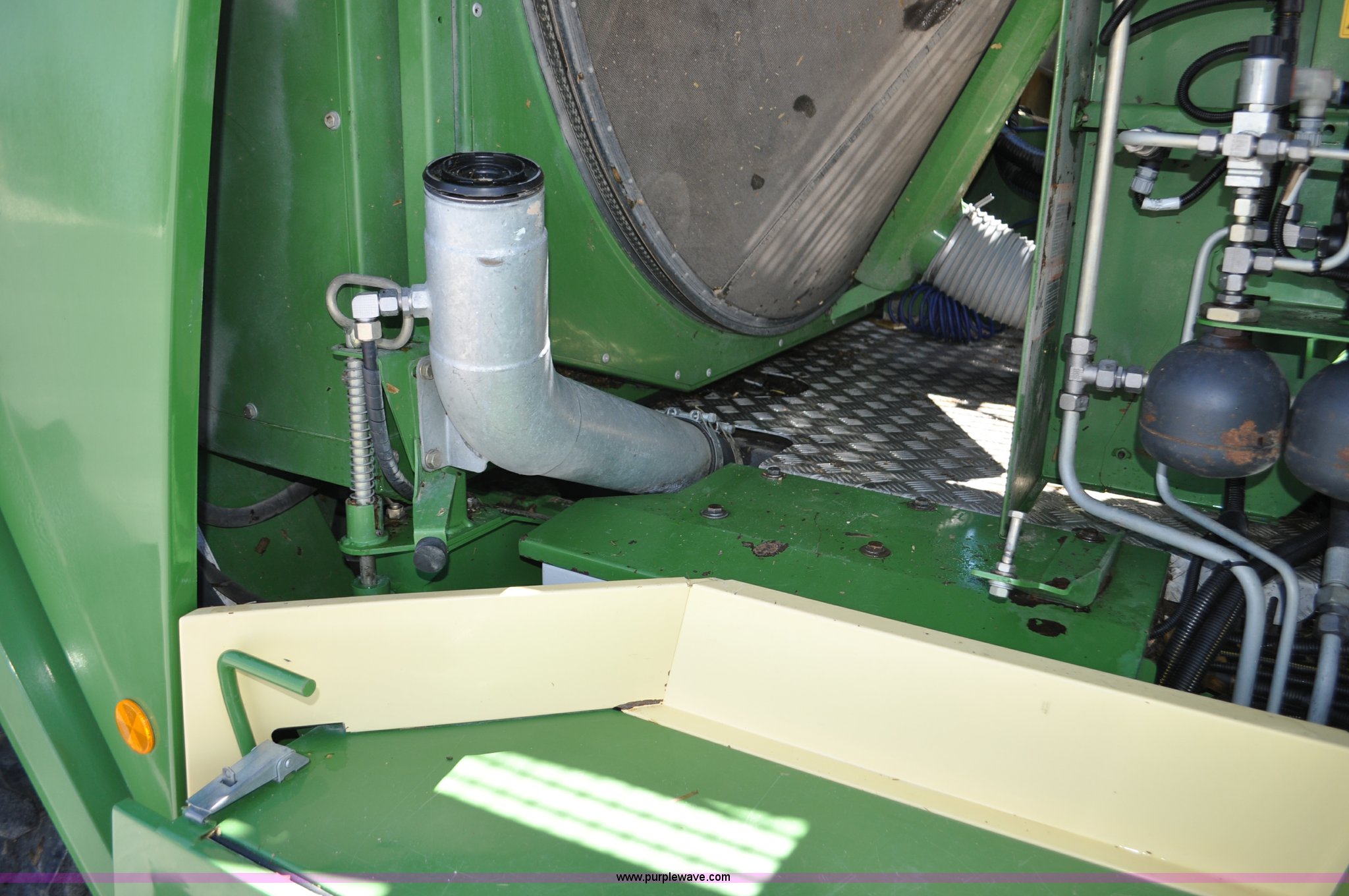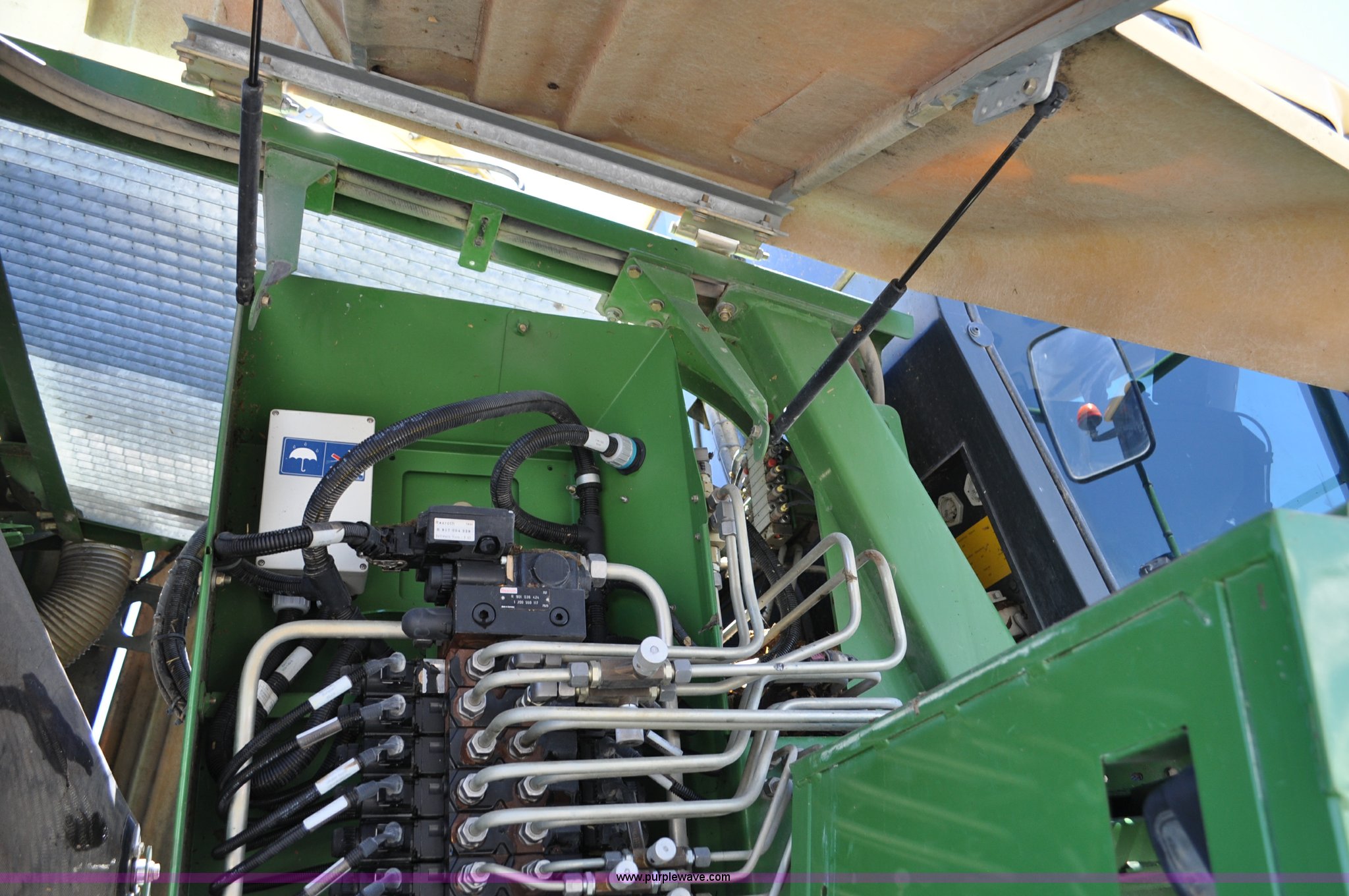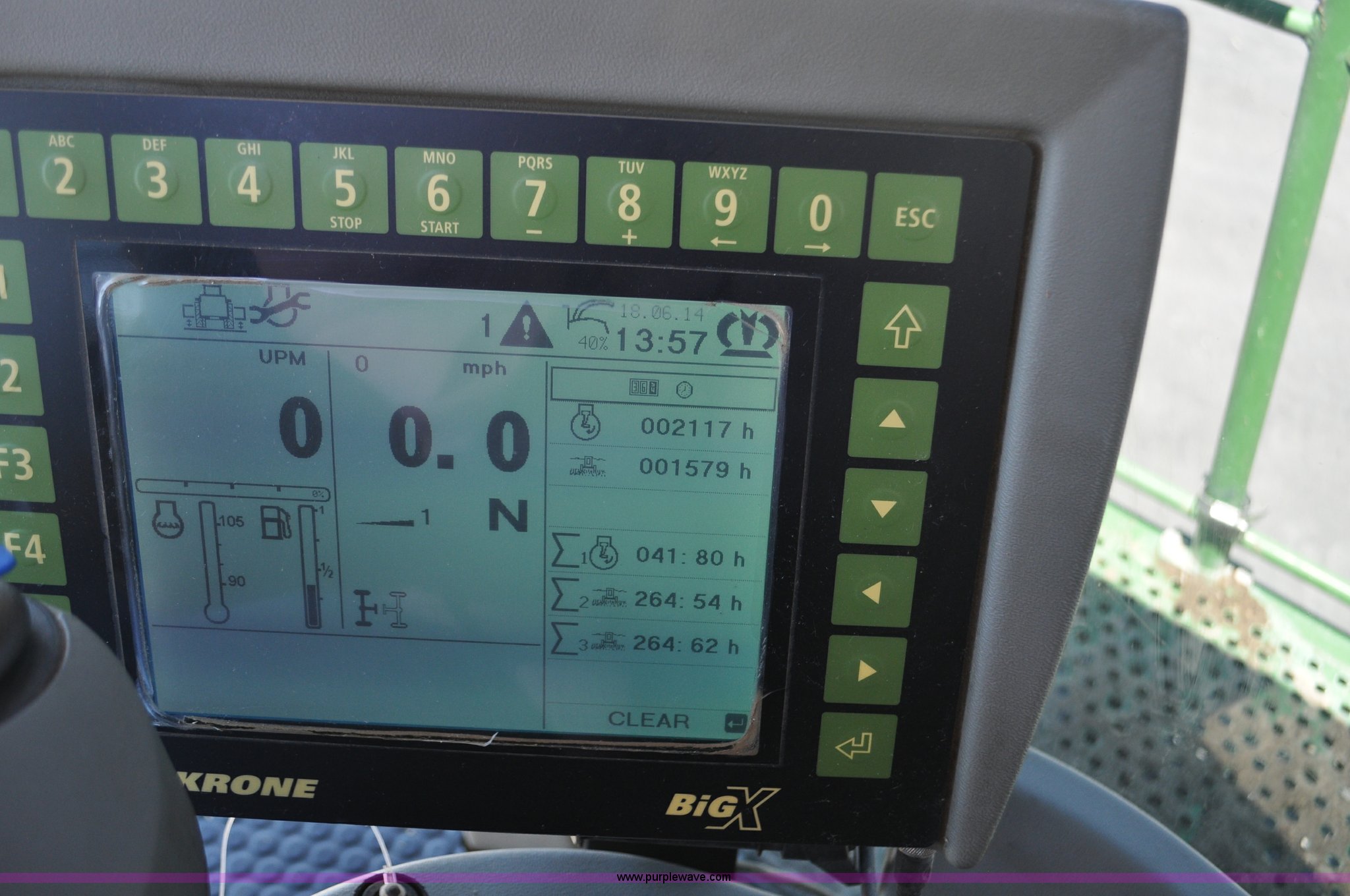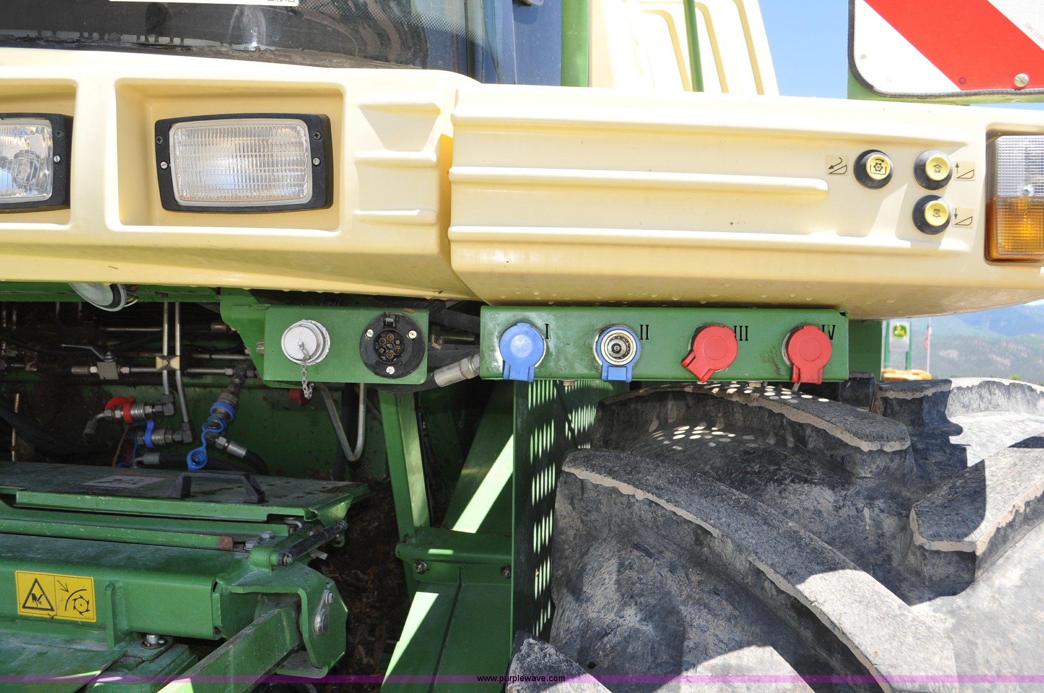 Purple Wave is selling a used Forage Harvester in Utah. This item is a 2008 Krone Big X 650 forage harvester with the following: 2,117 engine hours on meter, 1,579 separator hours on meter, Daimler Chrylser OM502LA 15.9L eight cylinder Tier III diesel engine, 653 HP, Infinite variable transmission with wheel motors, Four wheel drive, Auto climate control, Air suspension seat, Windshield wiper, Side window wipers, Buddy seat, EasyTouch information center, Autopilot, Kernel processor, Feed roll V-sandwich/quick attach, VariStream crop flow system, Automatic auto lube system, 210 degree swivel range of unloading chute, 254 gallon fuel tank, 900/60R32 front tires, 710/55R30 rear tires, Serial BX746938, Unit# U14P0860