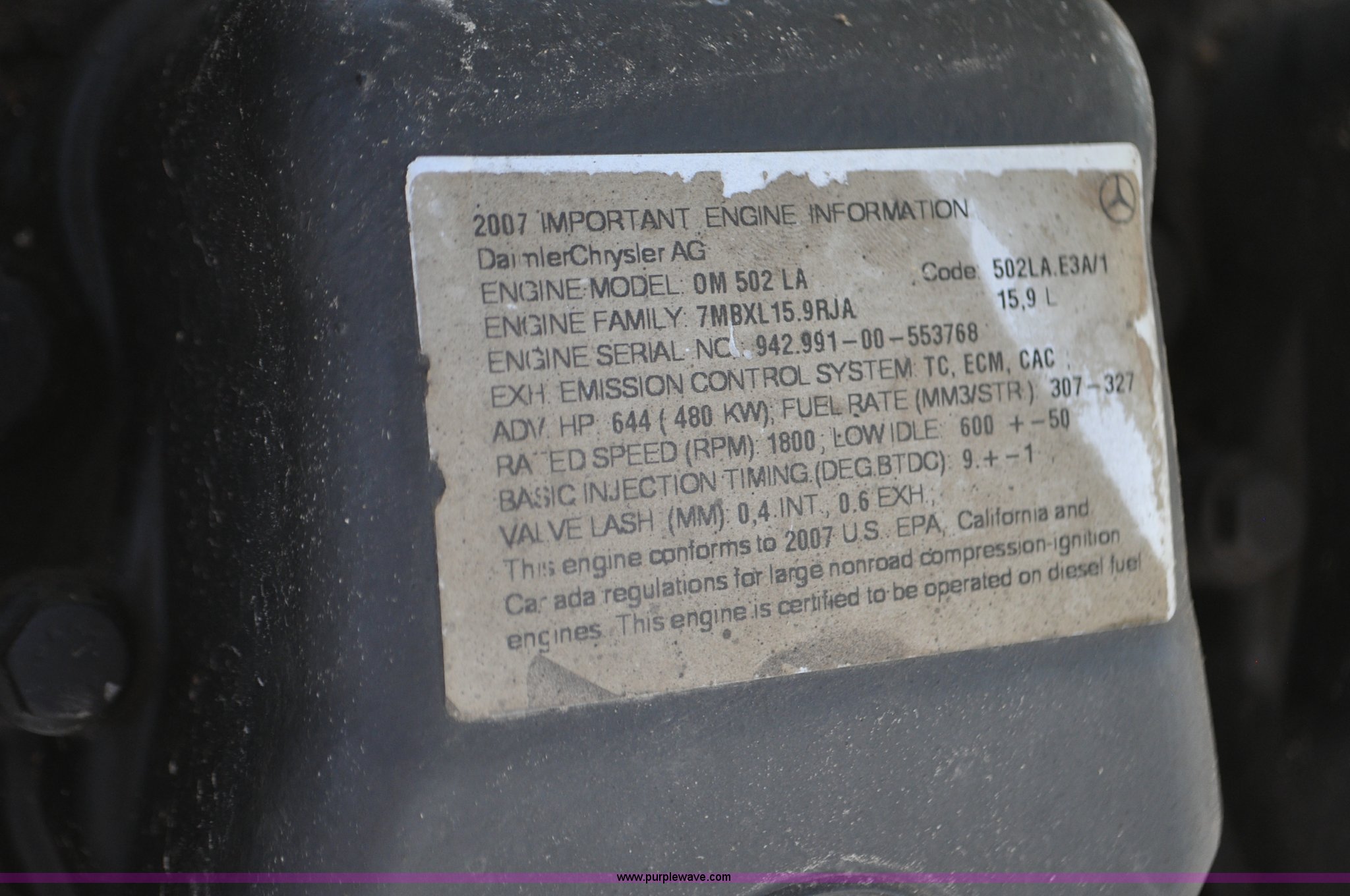 • Daimler Chrylser OM502LA 15.9L eight cylinder Tier III diesel engine
