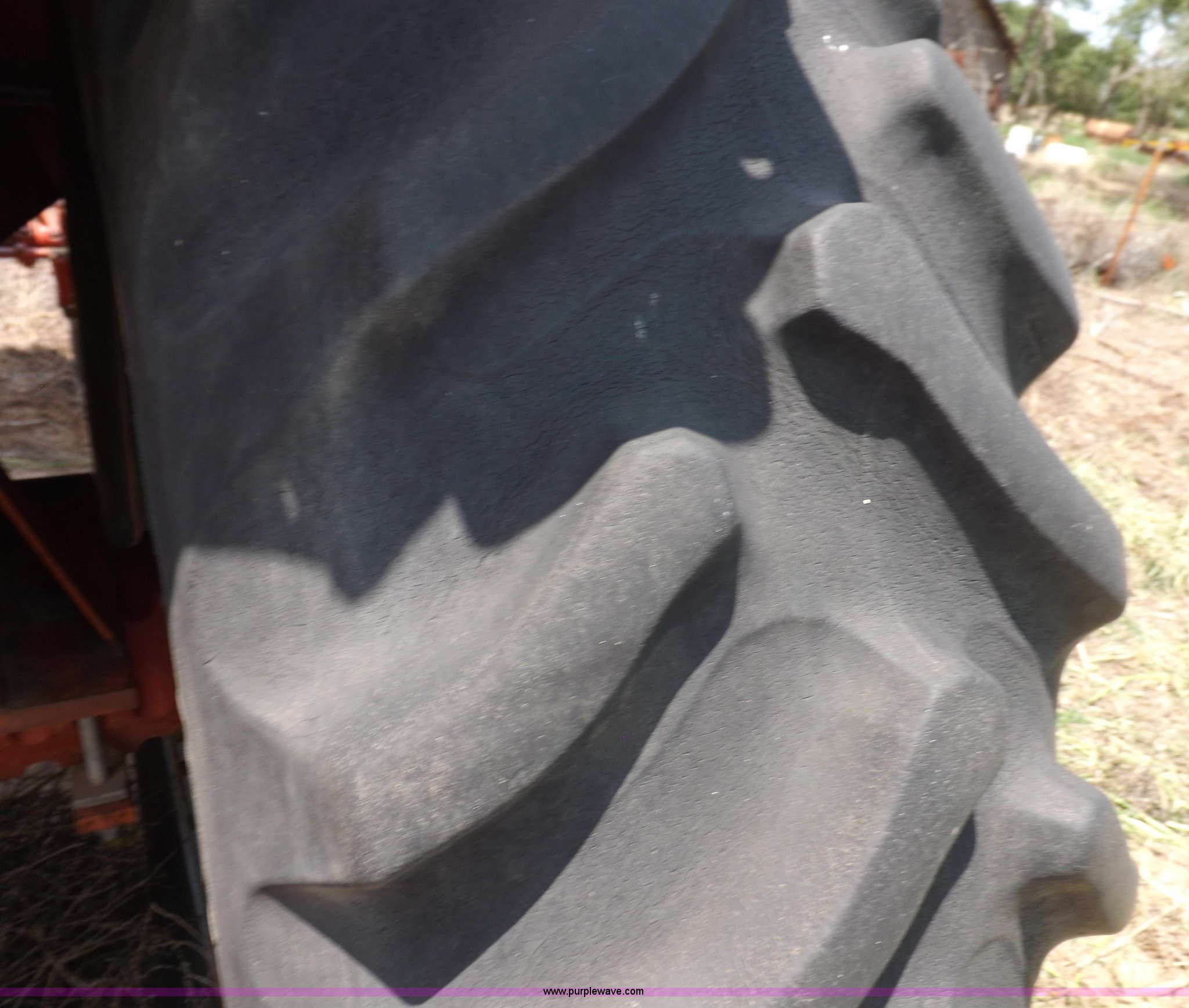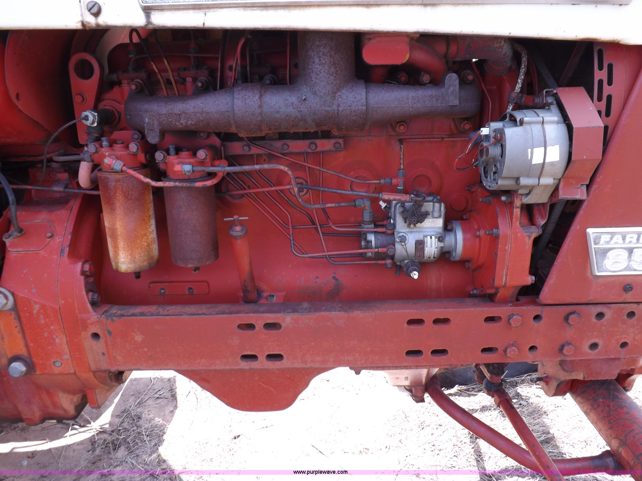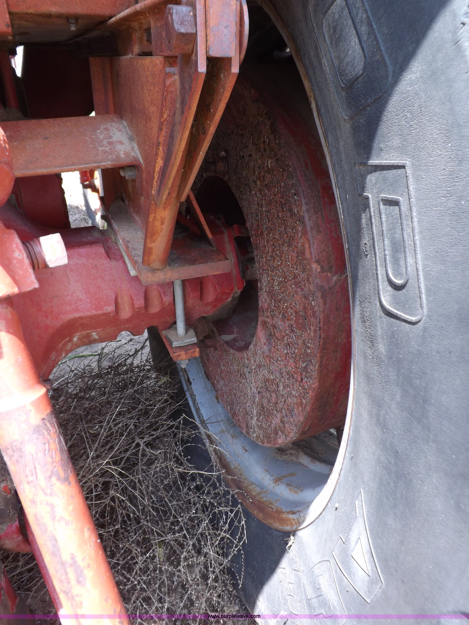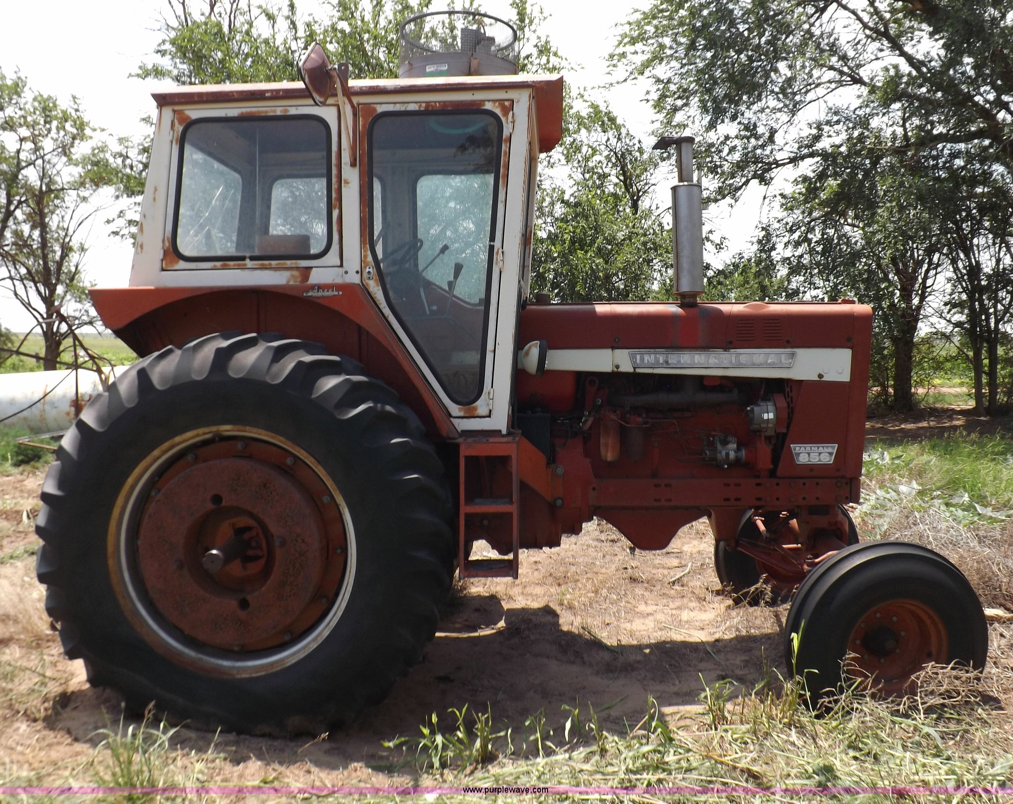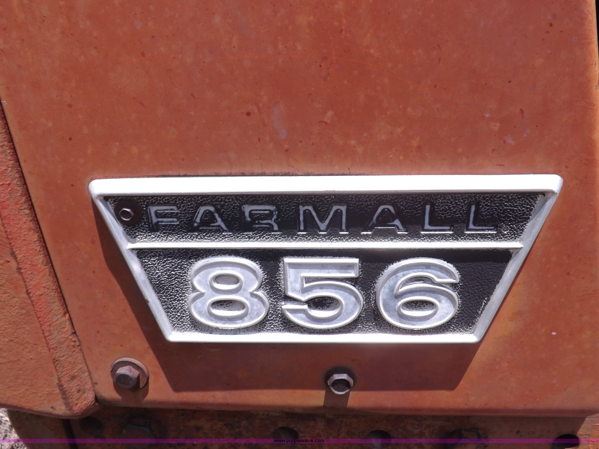 Purple Wave is selling a used Tractor in Oklahoma. This item is a International 856 tractor with the following: 5,846 hours on meter, International Harvester 6.7L six cylinder diesel engine, Torque amplifier transmission, 16F-8R gears, Angel Mfg. cab, Three point, Top link missing, Draw bar, 540/1000 PTO, (2) rear hydraulic remotes, Wheel weights, 104" wheelbase, 10.00-16 front tires, 18.4-38 rear tires, Left rear tire flat, Rear cab glass cracked, Non-operational unit, Serial 13531