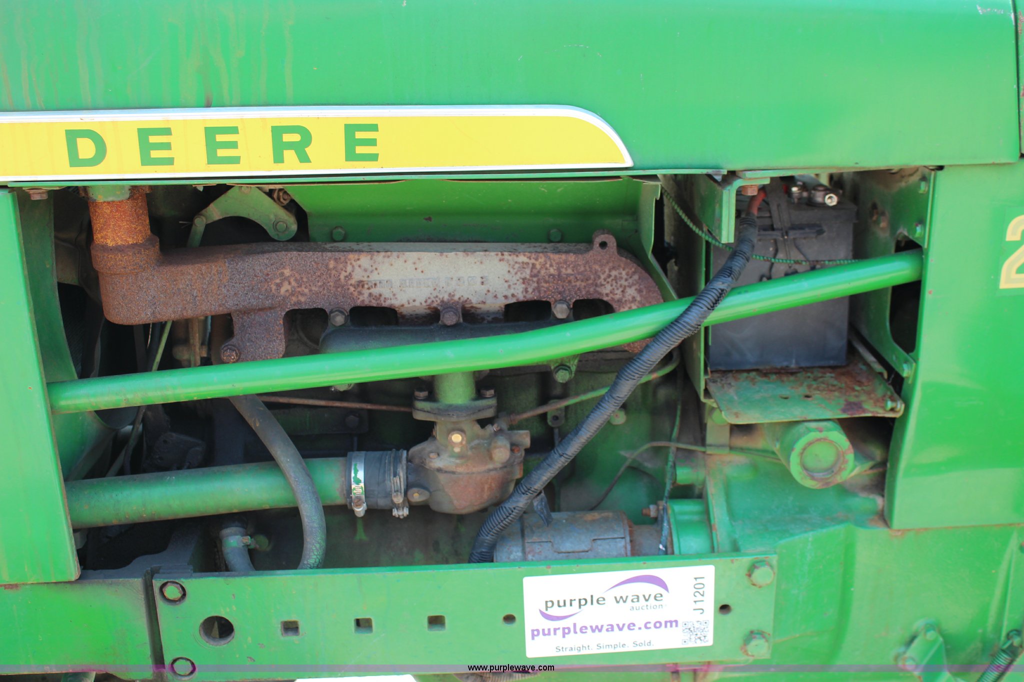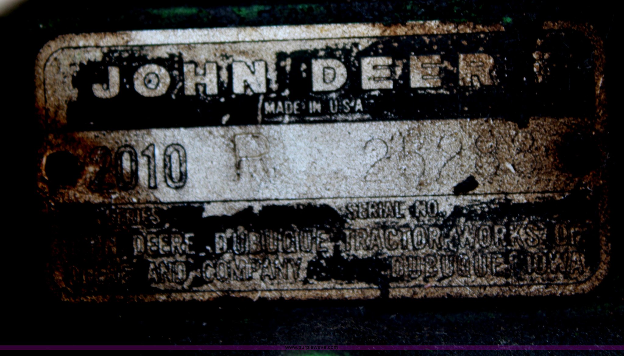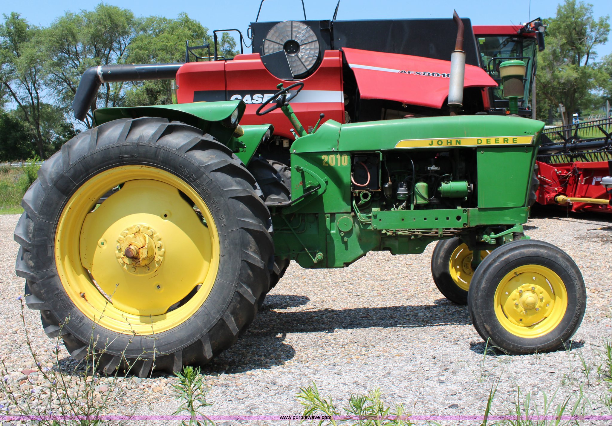 Purple Wave is selling a used Tractor in Missouri. This item is a 1962 John Deere 2010 tractor with the following: 18 hours on meter, Four cylinder gas engine, 46 HP, Syncro range transmission, 8F-3R gears, Canopy, 540 PTO, Three point, Draw bar, 6.00-16 front tires, 13.6-36 rear tires, Serial 25288