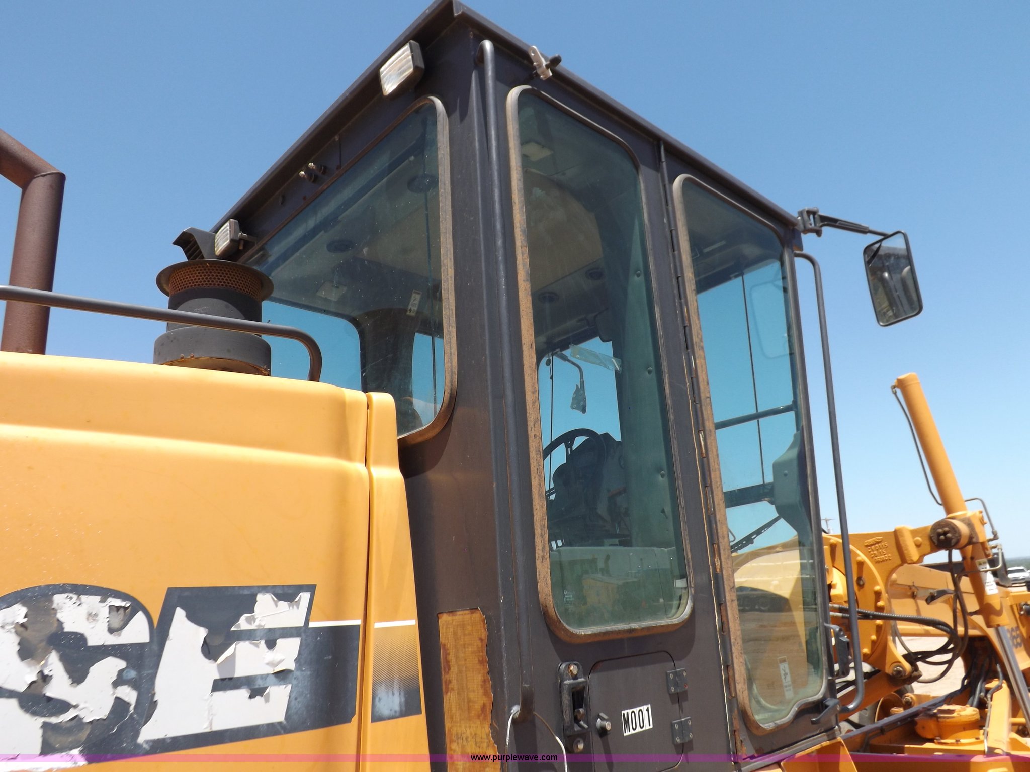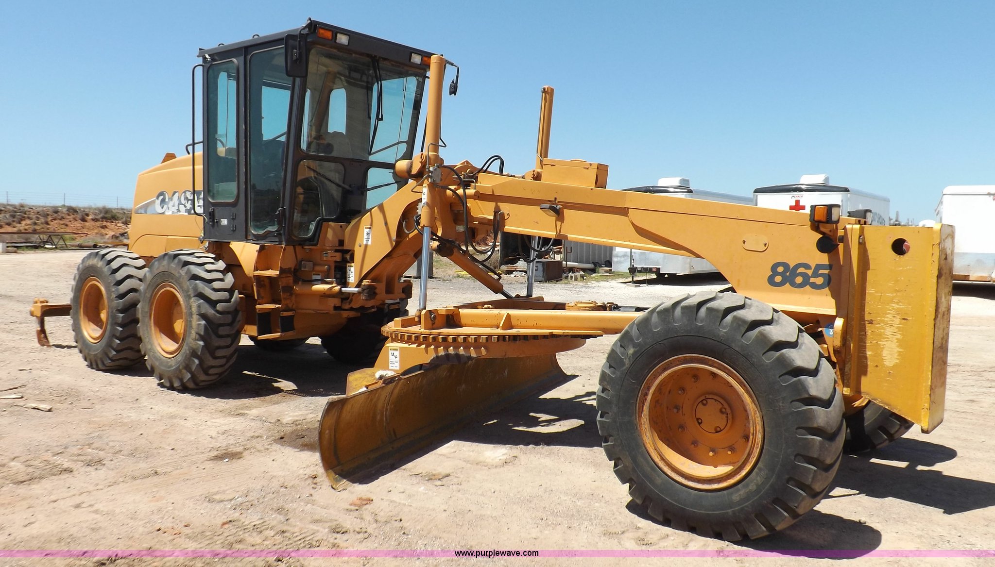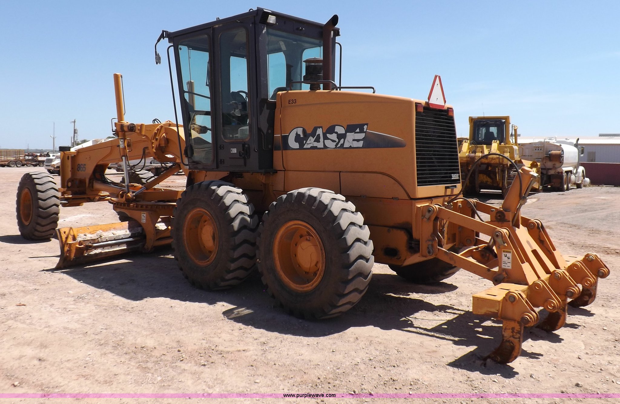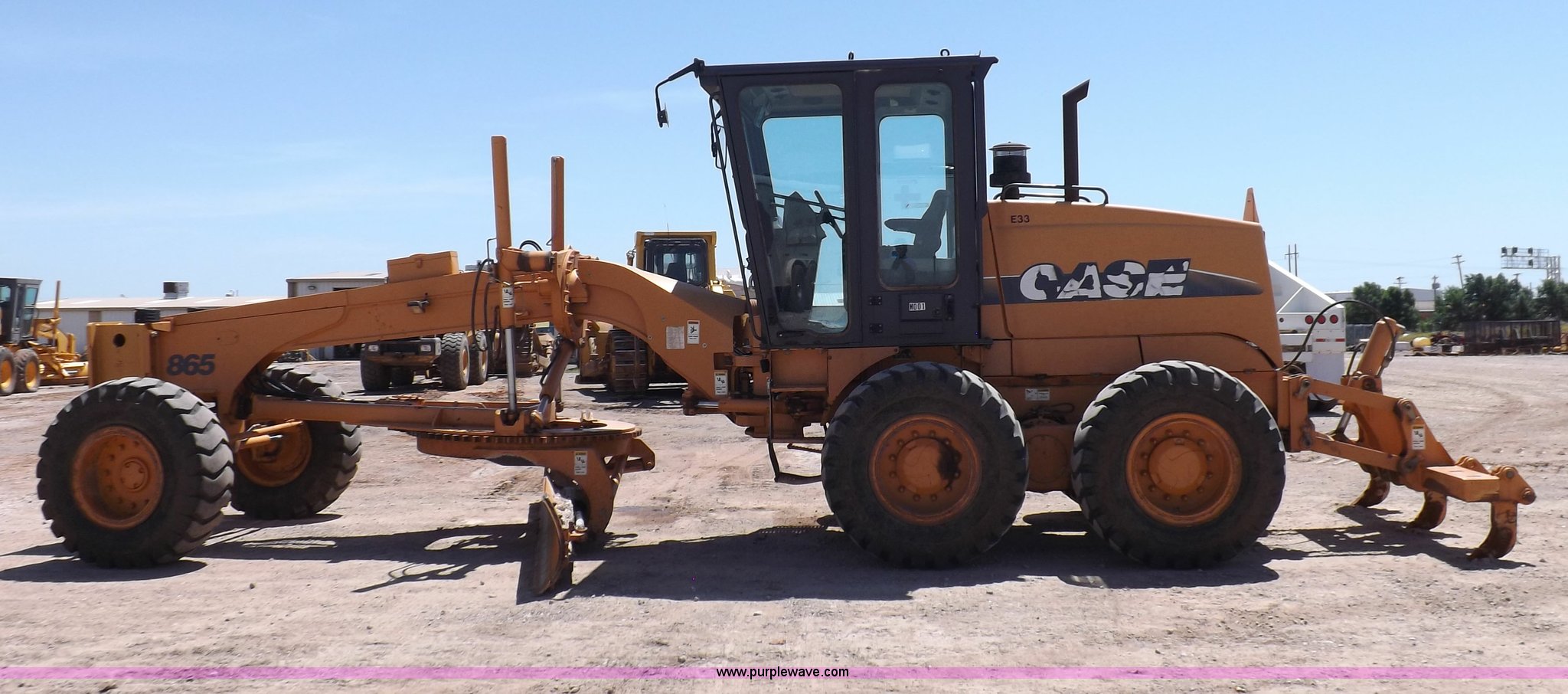 Purple Wave is selling a used Motor Grader in Oklahoma. This item is a 2002 Case 865 articulated motor grader with the following: 5,909 hours on meter, Unit in use, hours will vary, Cummins 6CT 8.3L six cylinder diesel engine, Powershift transmission, 8F-4R gears, Direct drive, Four wheel drive, Locking differential, High cab profile, EROPS, AC and heat, AM/FM/cassette, Suspension seat, Front and rear work lights, 14' moldboard, Tip control, Side shift, Right side blade extension, Front mounted push block, Front and rear shades, 17.5-25 tires, 32,265 lbs. base operating weight, Driver's side mirror missing, Work light damage, Driver's step bent, Seat cover damage, Serial HBZ022008