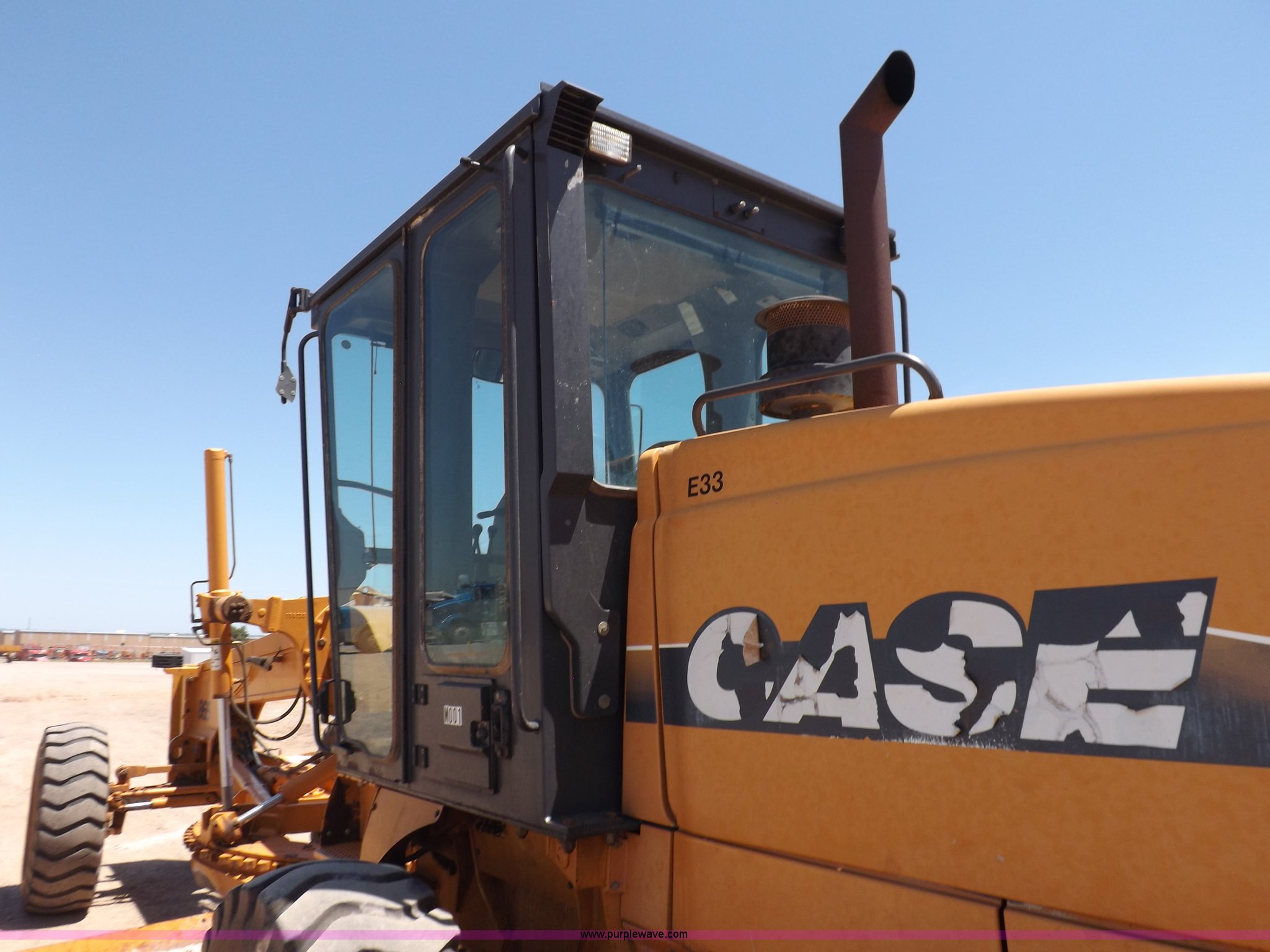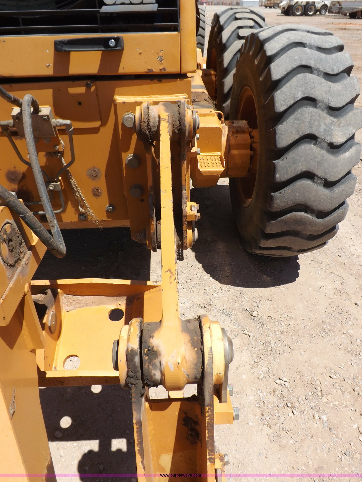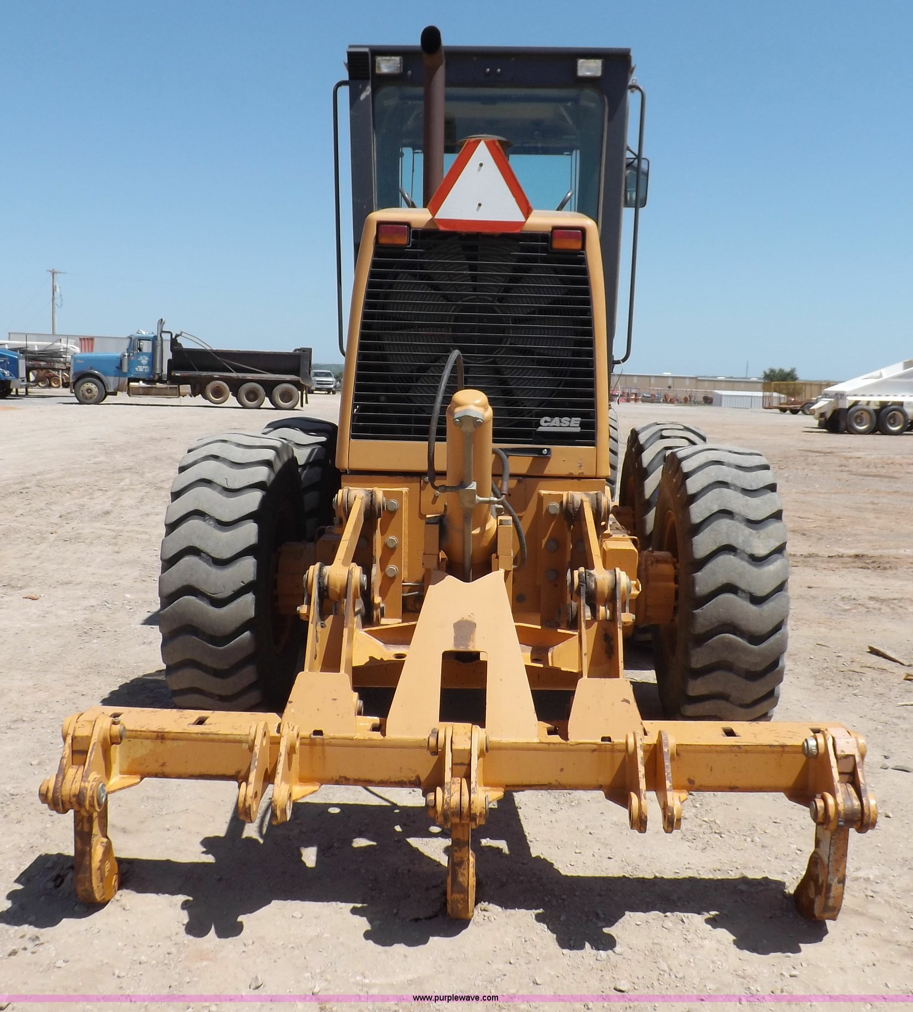 Purple Wave is selling a used Motor Grader in Oklahoma. This item is a 2002 Case 865 articulated motor grader with the following: 5,909 hours on meter, Unit in use, hours will vary, Cummins 6CT 8.3L six cylinder diesel engine, Powershift transmission, 8F-4R gears, Direct drive, Four wheel drive, Locking differential, High cab profile, EROPS, AC and heat, AM/FM/cassette, Suspension seat, Front and rear work lights, 14' moldboard, Tip control, Side shift, Right side blade extension, Front mounted push block, Front and rear shades, 17.5-25 tires, 32,265 lbs. base operating weight, Driver's side mirror missing, Work light damage, Driver's step bent, Seat cover damage, Serial HBZ022008