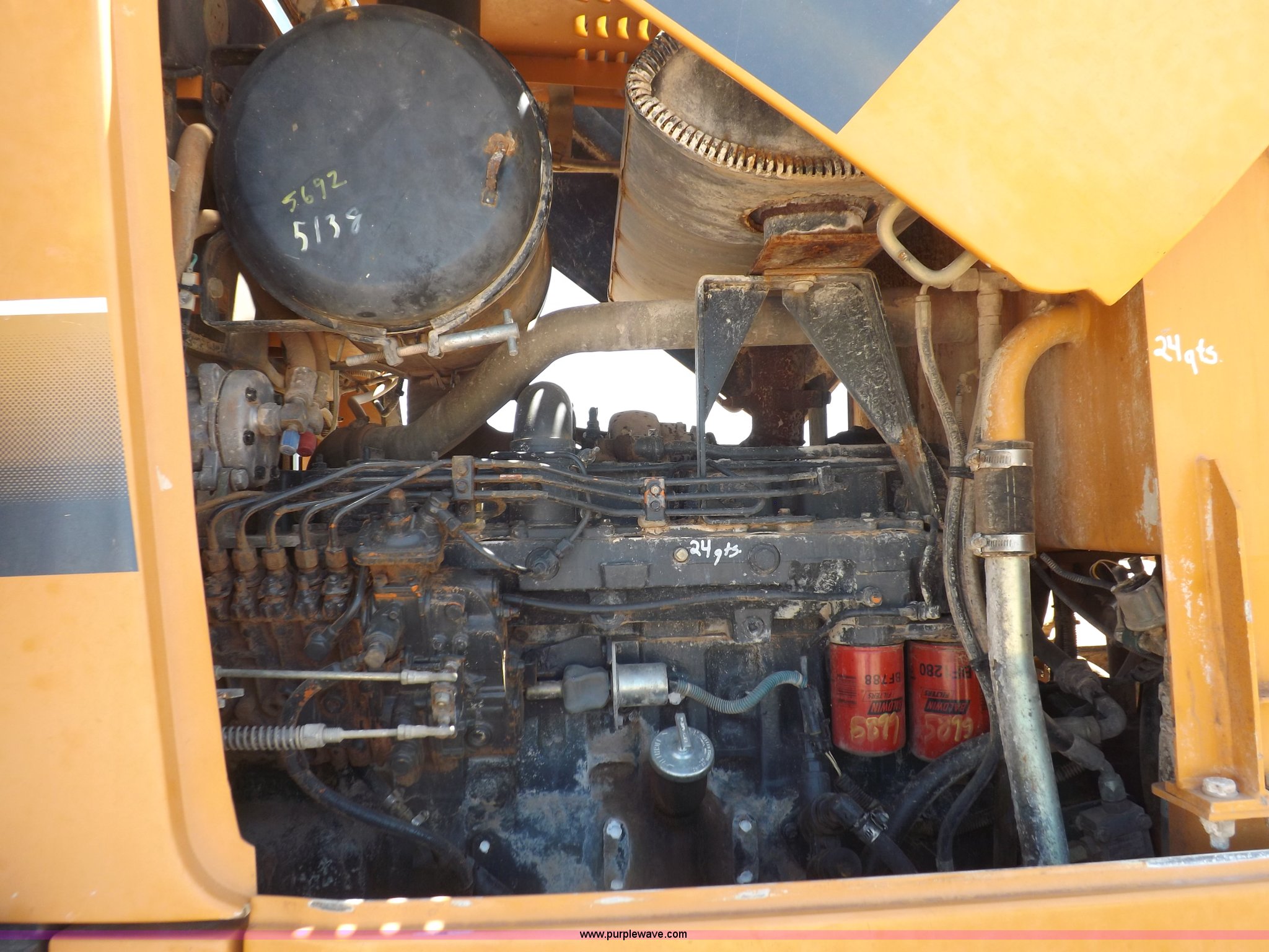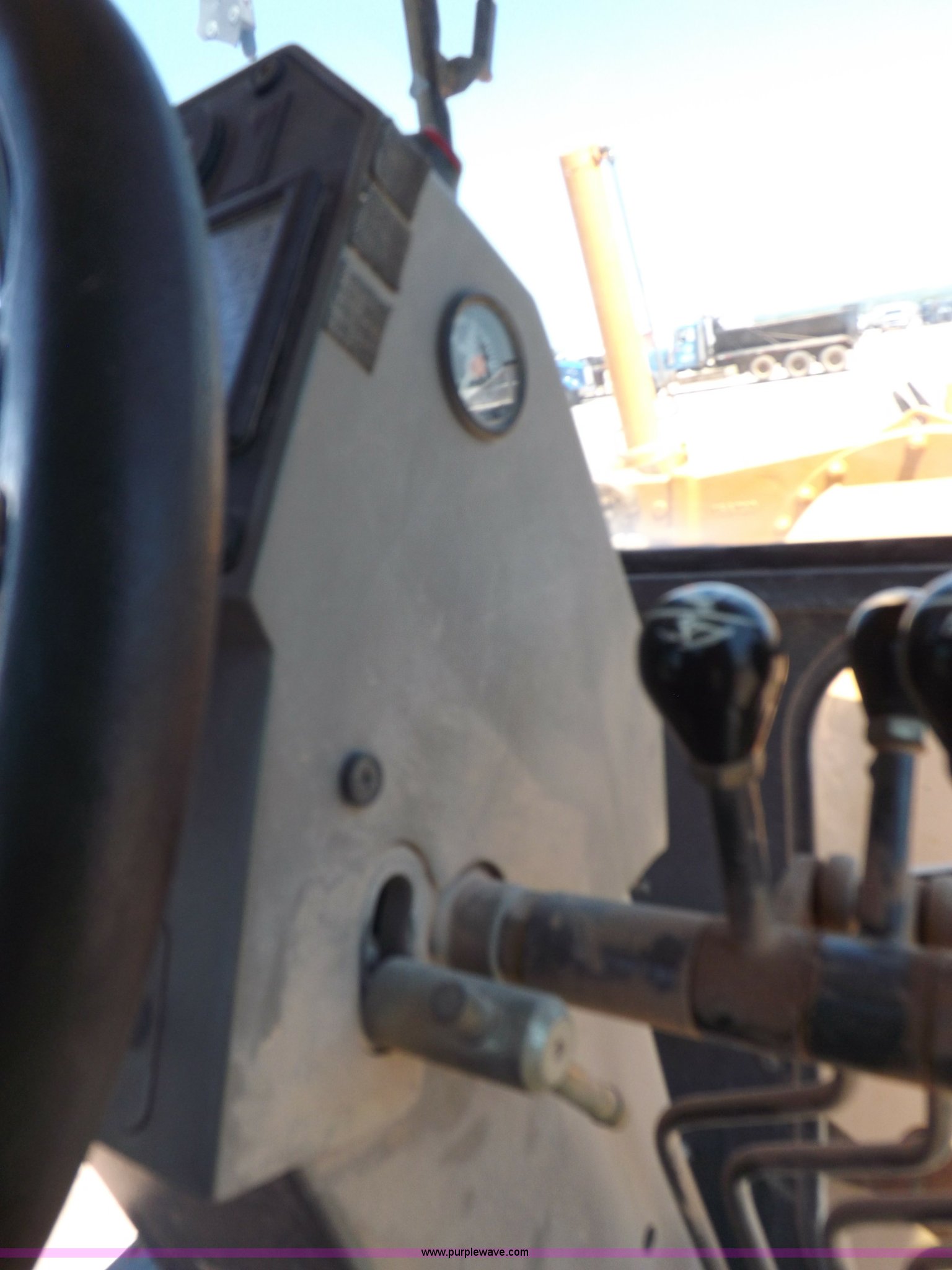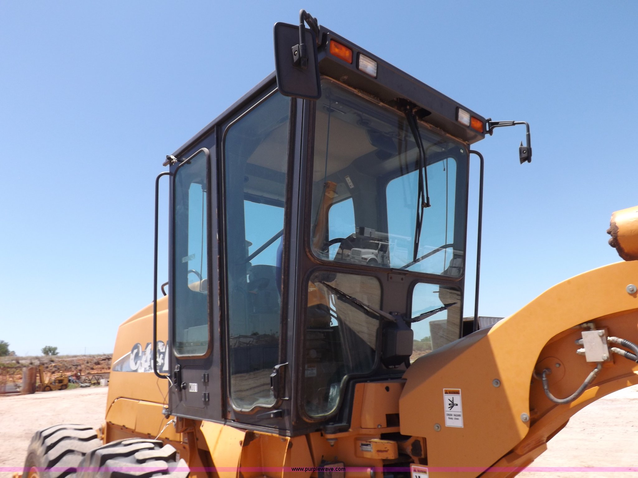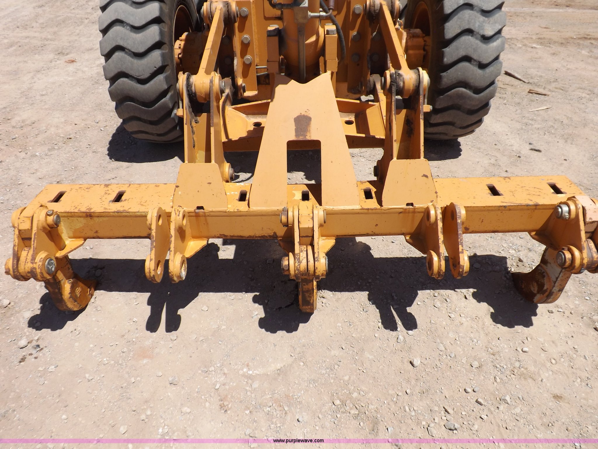 Purple Wave is selling a used Motor Grader in Oklahoma. This item is a 2002 Case 865 articulated motor grader with the following: 5,909 hours on meter, Unit in use, hours will vary, Cummins 6CT 8.3L six cylinder diesel engine, Powershift transmission, 8F-4R gears, Direct drive, Four wheel drive, Locking differential, High cab profile, EROPS, AC and heat, AM/FM/cassette, Suspension seat, Front and rear work lights, 14' moldboard, Tip control, Side shift, Right side blade extension, Front mounted push block, Front and rear shades, 17.5-25 tires, 32,265 lbs. base operating weight, Driver's side mirror missing, Work light damage, Driver's step bent, Seat cover damage, Serial HBZ022008