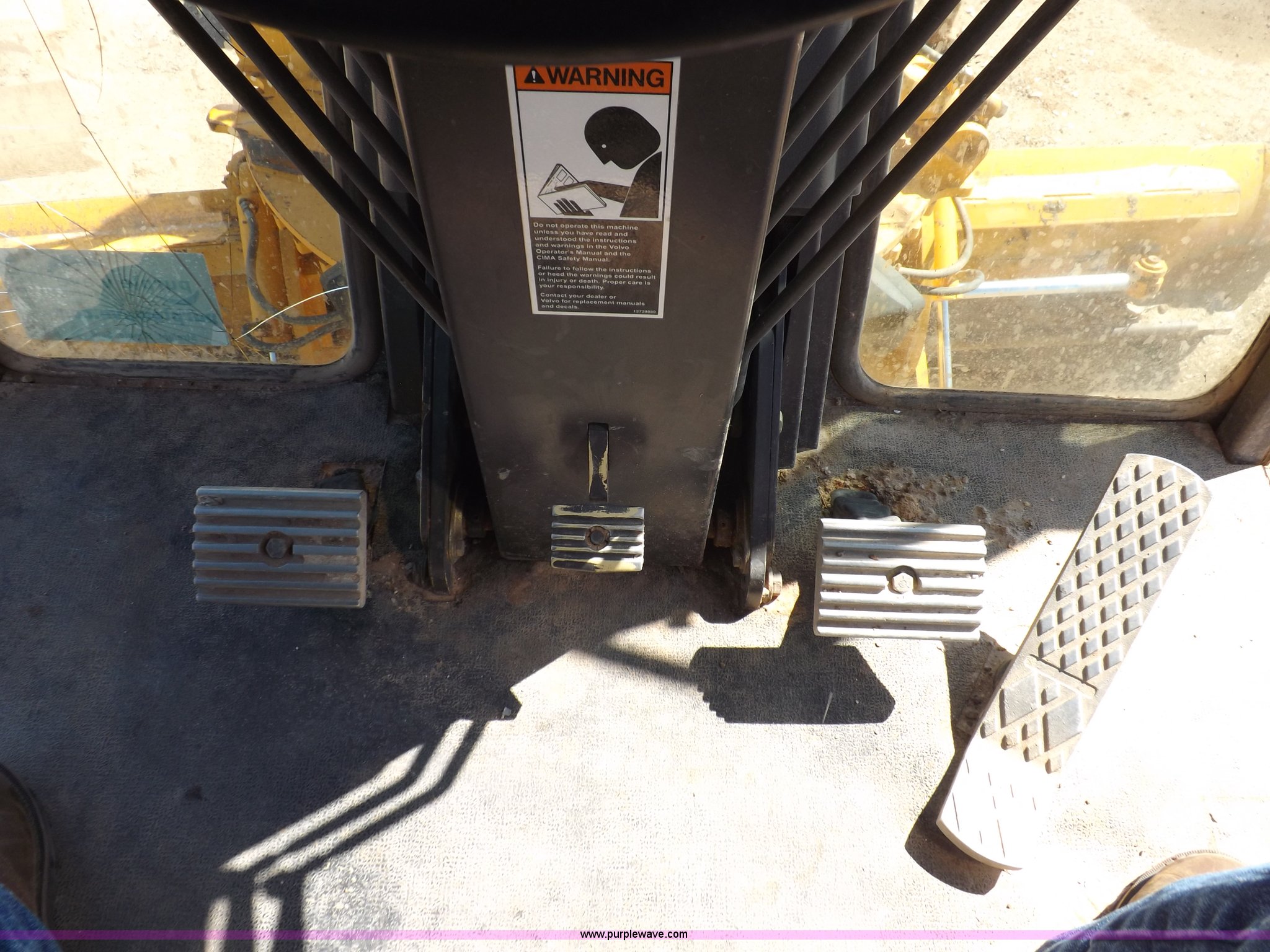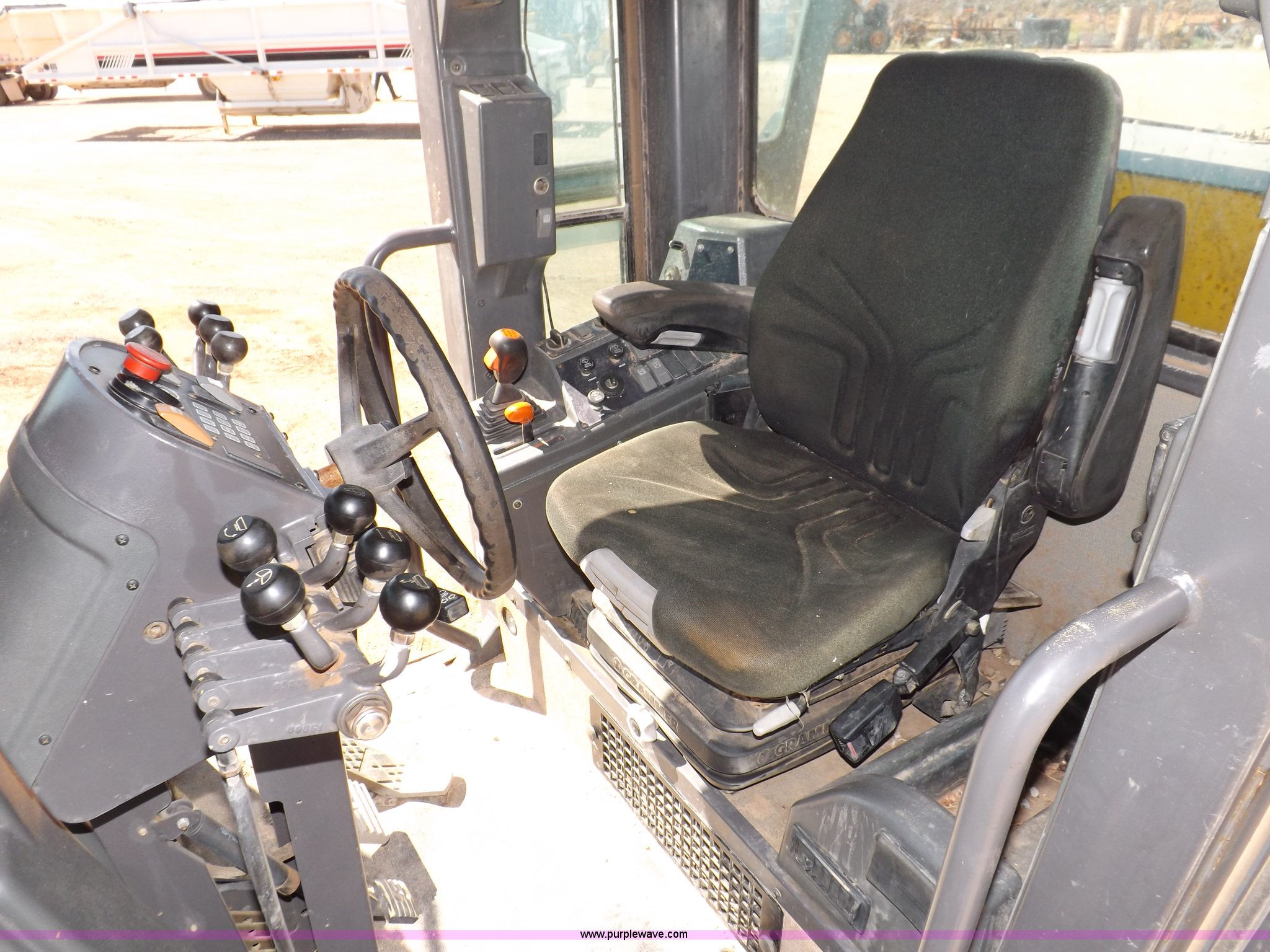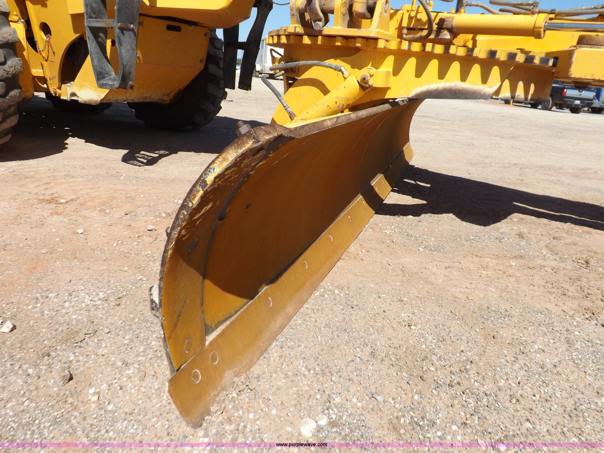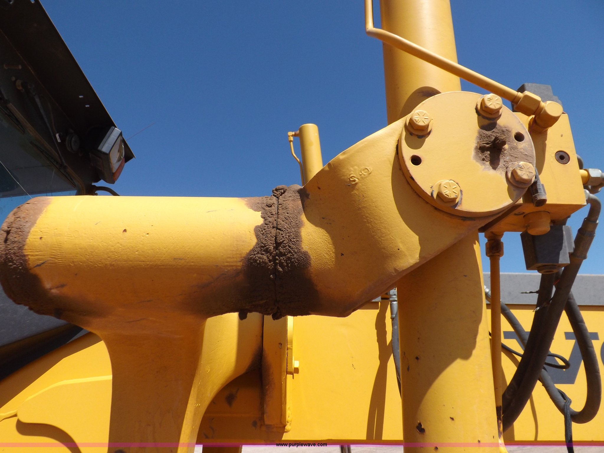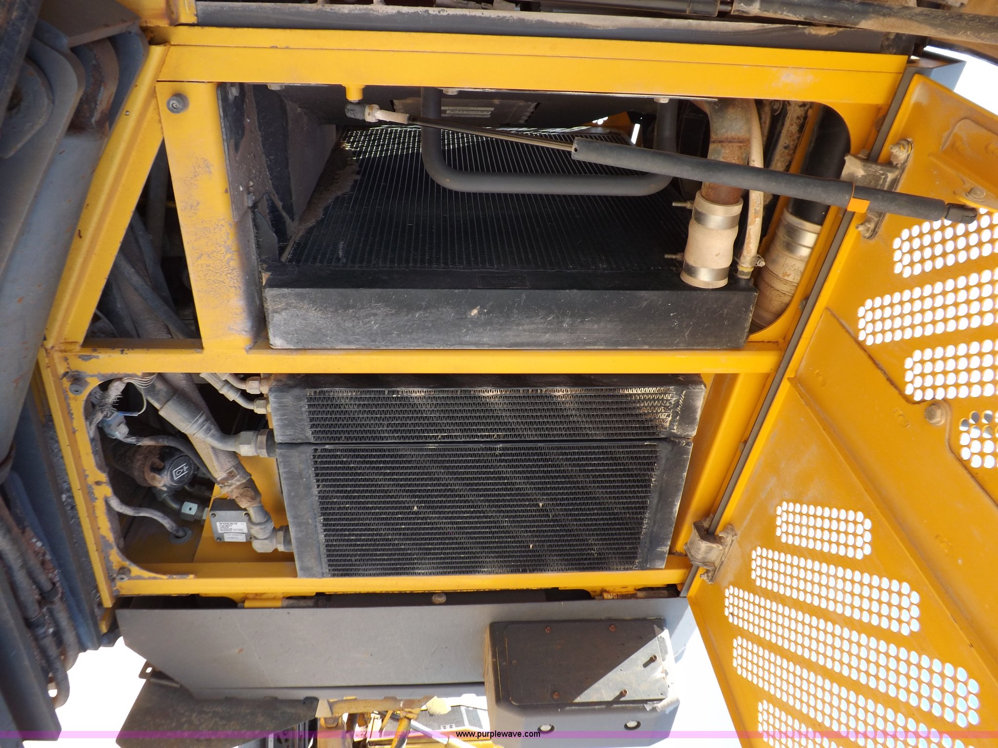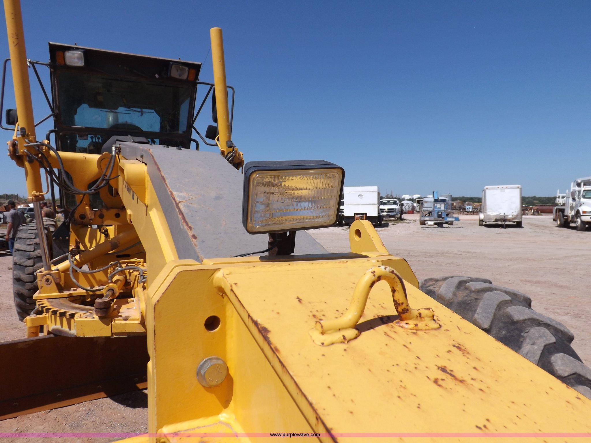 Purple Wave is selling a used Motor Grader in Oklahoma. This item is a 2003 Volvo G720B articulated motor grader with the following: 6,369 hours on meter, Unit in use, hours will vary, Volvo D7DGBE3 six cylinder diesel engine, Volvo 8400 powershift transmission, 8F-4R gears, Four wheel drive, Locking differential, Low cab profile, 62.5" interior height, EROPS, AC and heat, AM/FM/cassette, Suspension seat, Front work lights, 14' mold board, Tip control, Side shift, Front mounted push block, Volvo rear ripper, Three ripper shanks, Serial 4542-0683, 14.00-24 tires, 34,000 lbs. base operating weight, Work light damaged, Glass cracked, Passenger mirror missing, Driver's bottom step broken