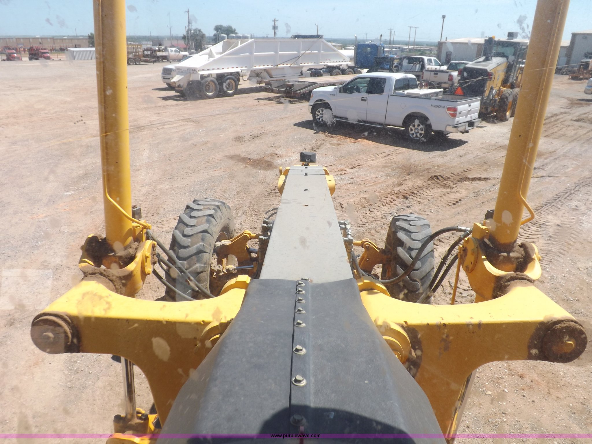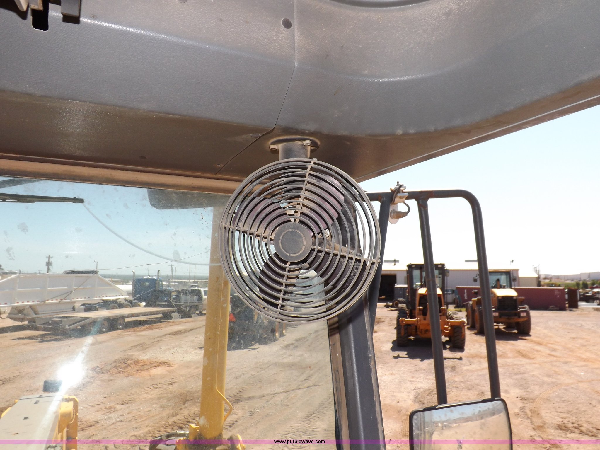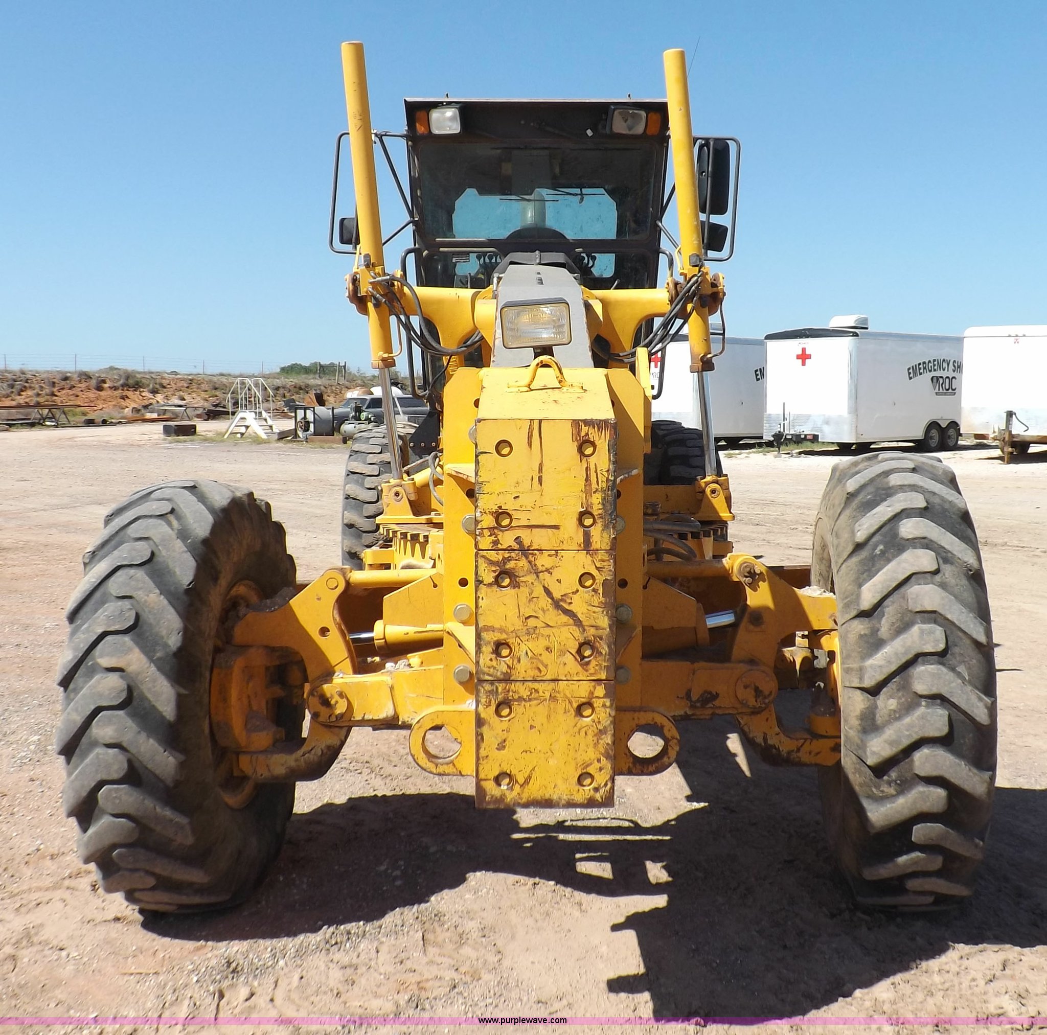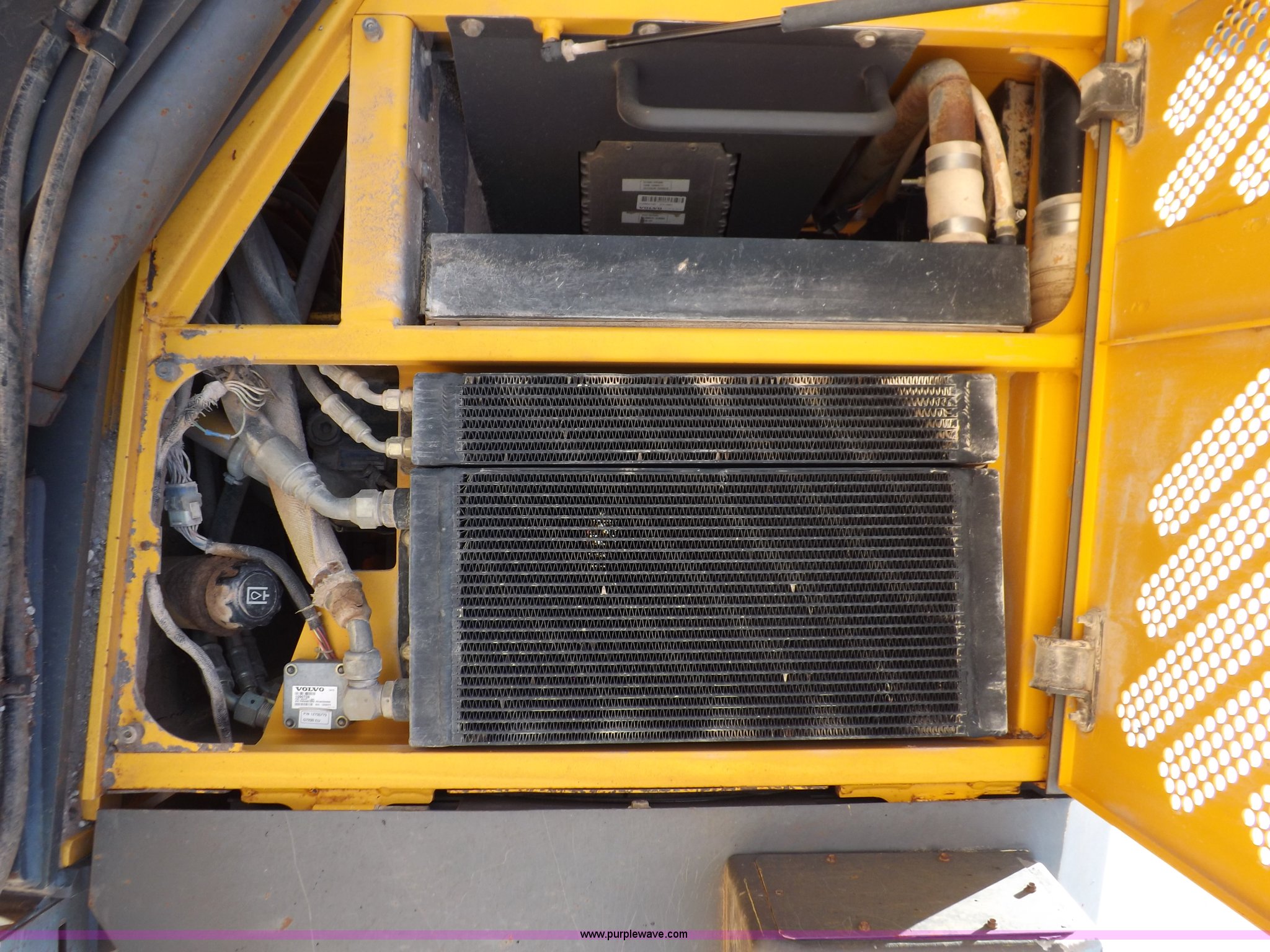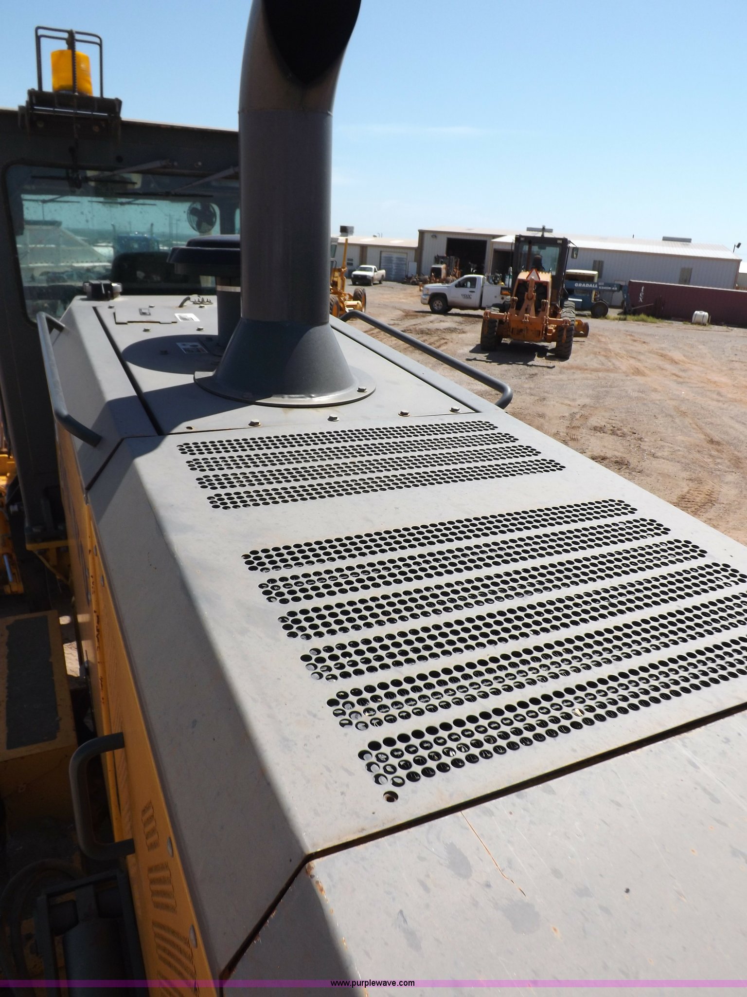 Purple Wave is selling a used Motor Grader in Oklahoma. This item is a 2003 Volvo G720B articulated motor grader with the following: 6,369 hours on meter, Unit in use, hours will vary, Volvo D7DGBE3 six cylinder diesel engine, Volvo 8400 powershift transmission, 8F-4R gears, Four wheel drive, Locking differential, Low cab profile, 62.5" interior height, EROPS, AC and heat, AM/FM/cassette, Suspension seat, Front work lights, 14' mold board, Tip control, Side shift, Front mounted push block, Volvo rear ripper, Three ripper shanks, Serial 4542-0683, 14.00-24 tires, 34,000 lbs. base operating weight, Work light damaged, Glass cracked, Passenger mirror missing, Driver's bottom step broken