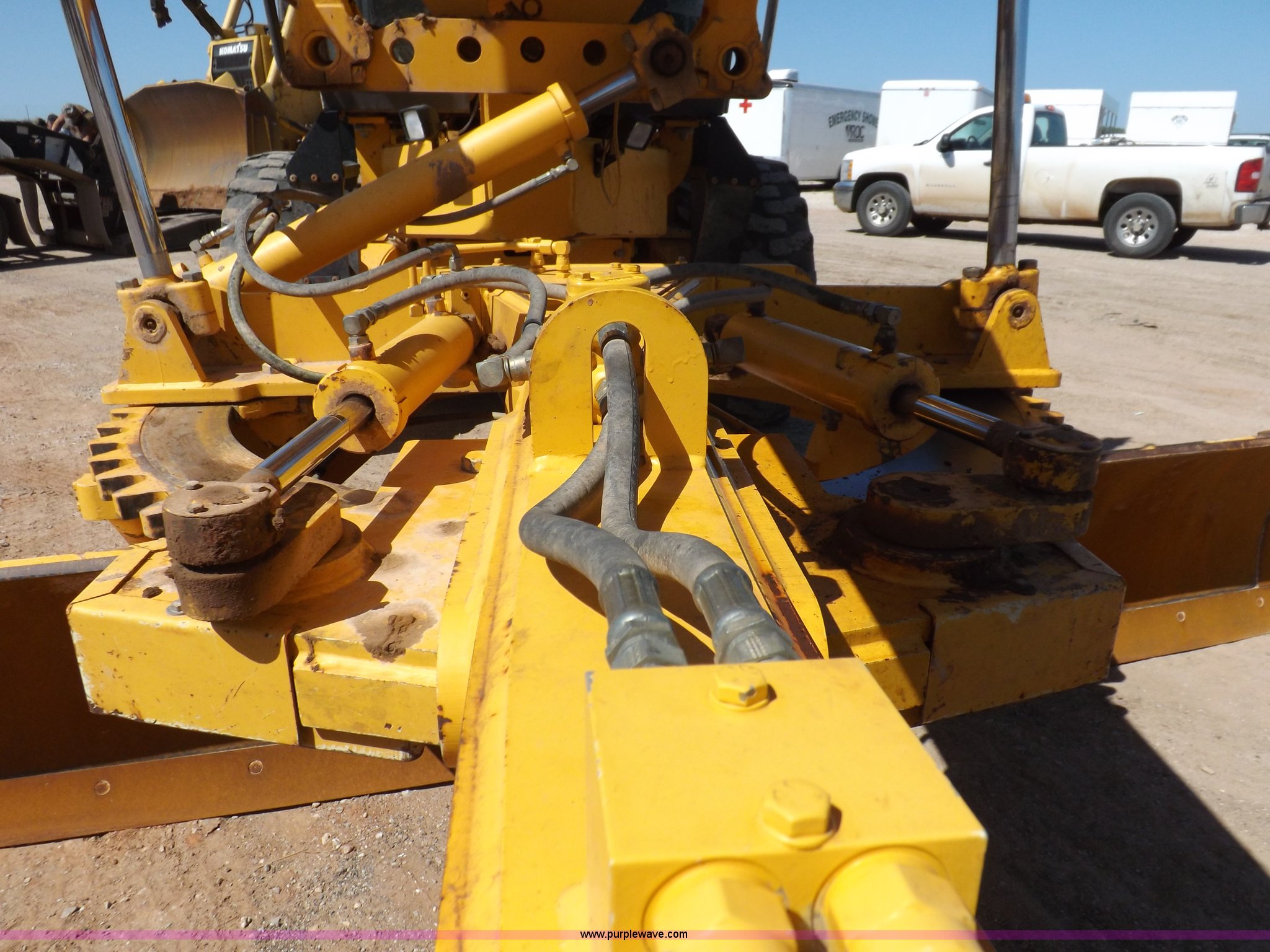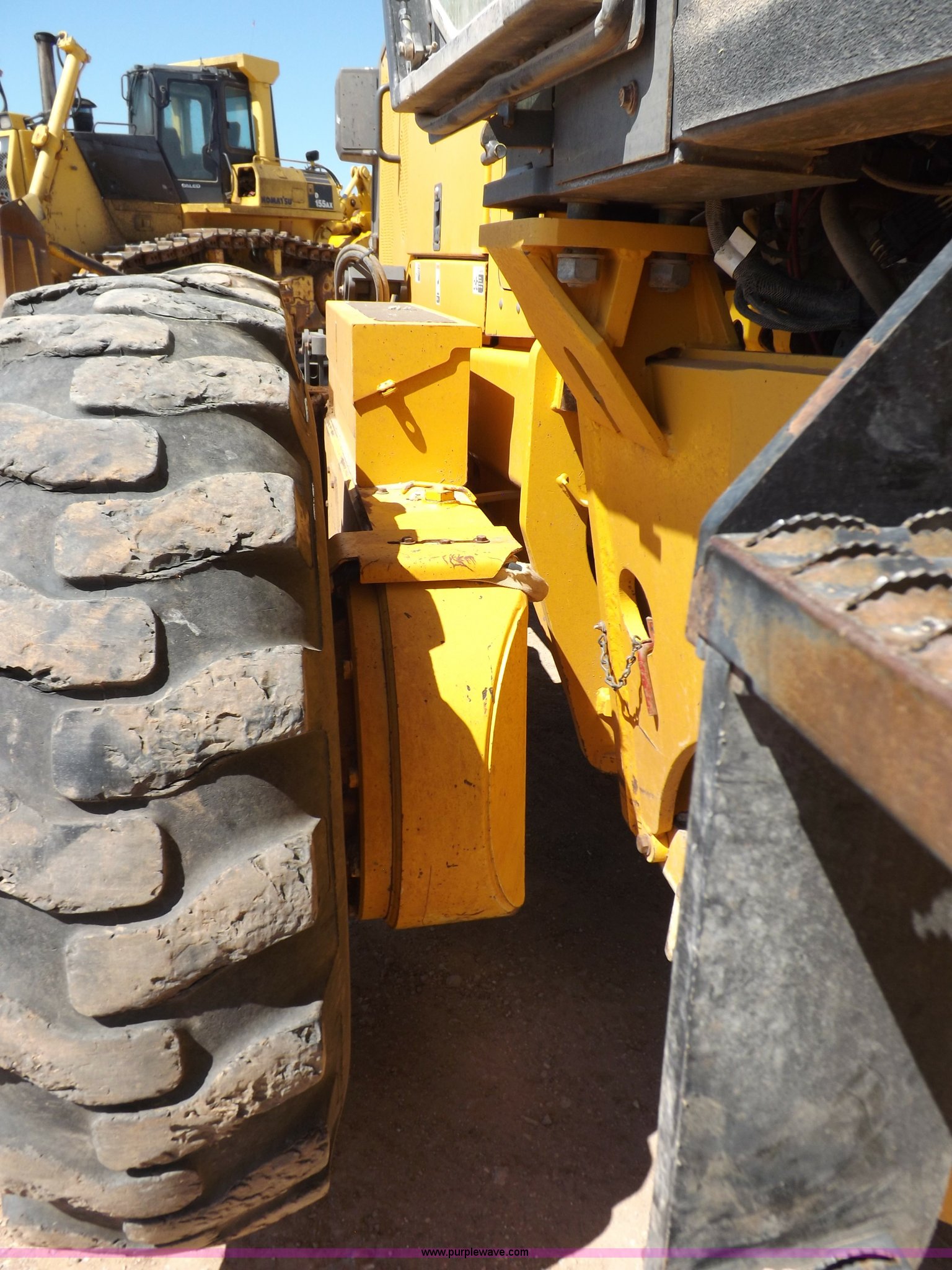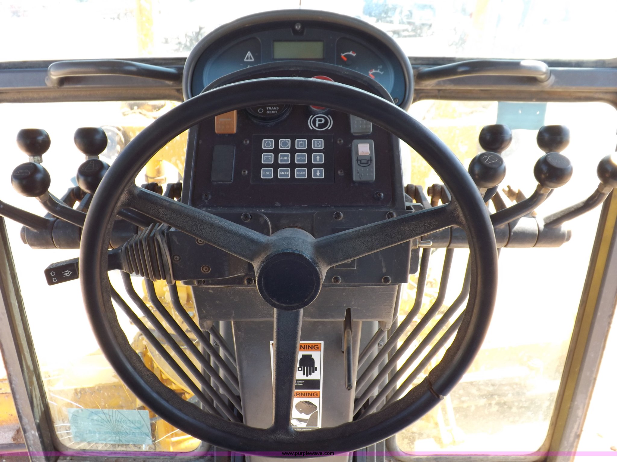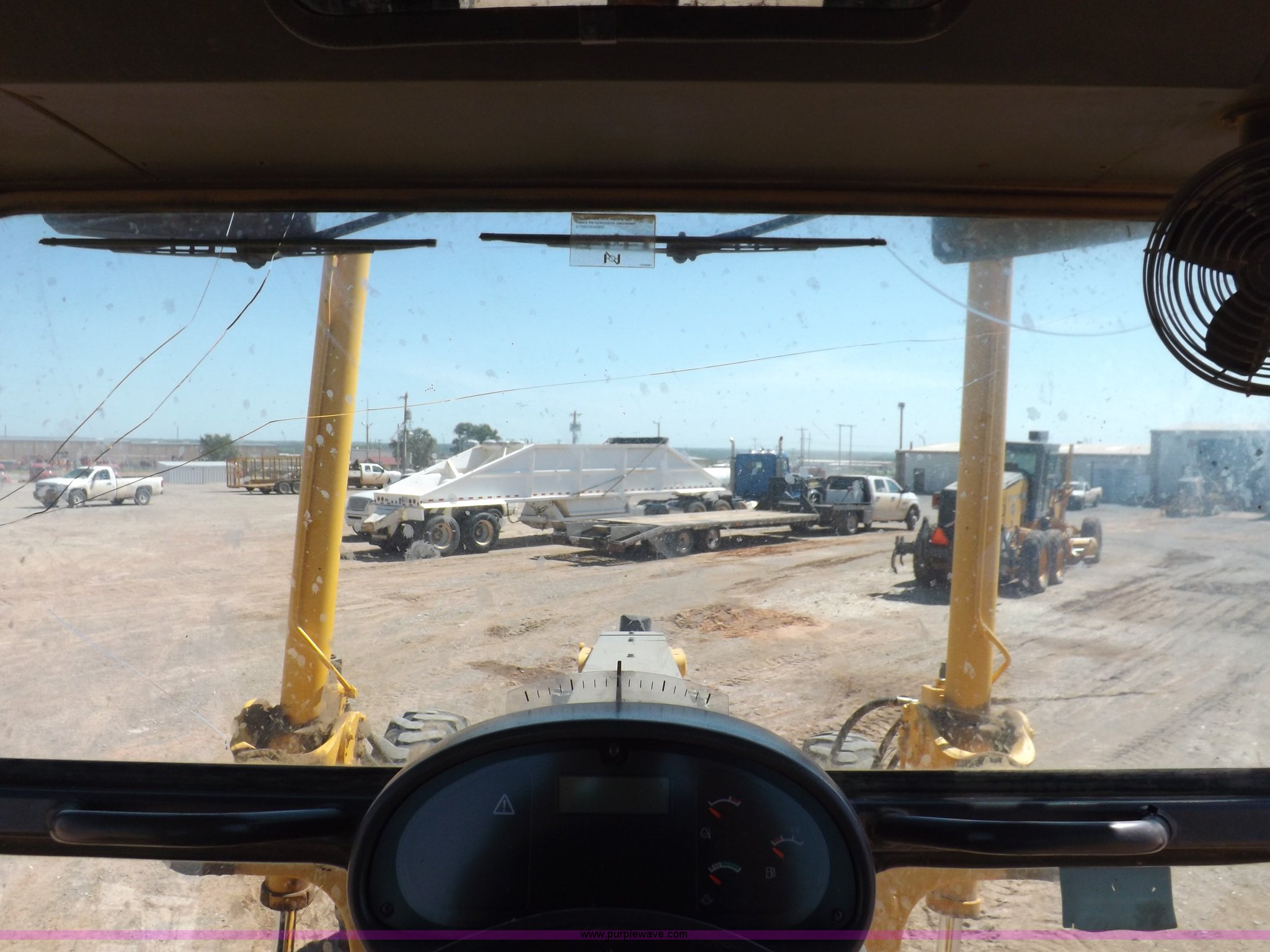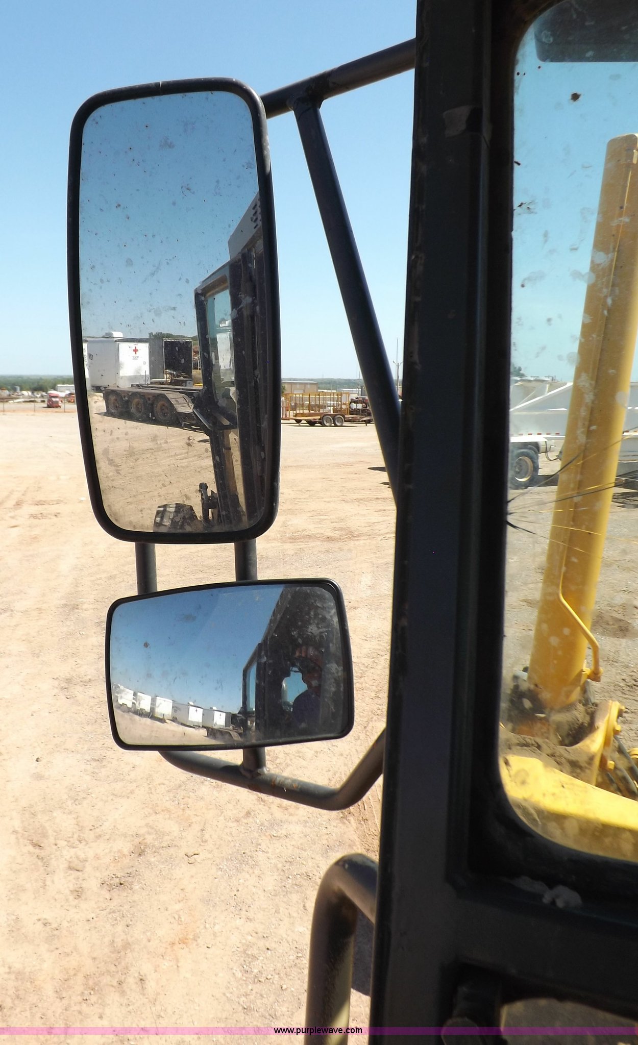 Purple Wave is selling a used Motor Grader in Oklahoma. This item is a 2003 Volvo G720B articulated motor grader with the following: 6,369 hours on meter, Unit in use, hours will vary, Volvo D7DGBE3 six cylinder diesel engine, Volvo 8400 powershift transmission, 8F-4R gears, Four wheel drive, Locking differential, Low cab profile, 62.5" interior height, EROPS, AC and heat, AM/FM/cassette, Suspension seat, Front work lights, 14' mold board, Tip control, Side shift, Front mounted push block, Volvo rear ripper, Three ripper shanks, Serial 4542-0683, 14.00-24 tires, 34,000 lbs. base operating weight, Work light damaged, Glass cracked, Passenger mirror missing, Driver's bottom step broken