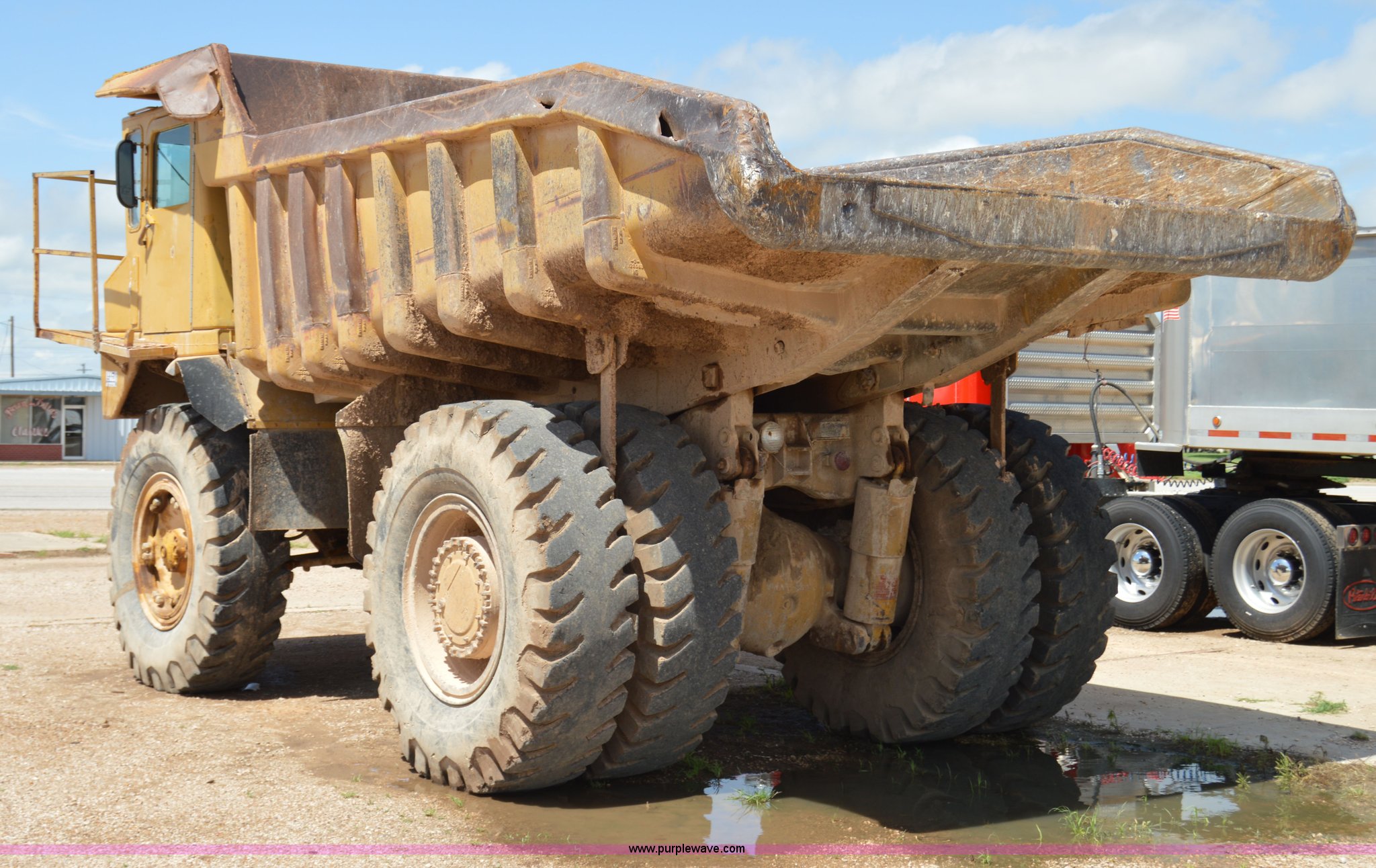 Purple Wave is selling a used Off Road Haul Truck in Texas. This item is a 1978 Caterpillar 769B haul truck with the following: 99,169 hours on meter, Caterpillar six cylinder turbo diesel engine, Manual transmission, 3F-1R gears, Enclosed cab, Front and rear work lights, 30 to 39M tons rated capacity, 18.00-33 tires, 61,000 lbs. base operating weight, Serial 99F6933
