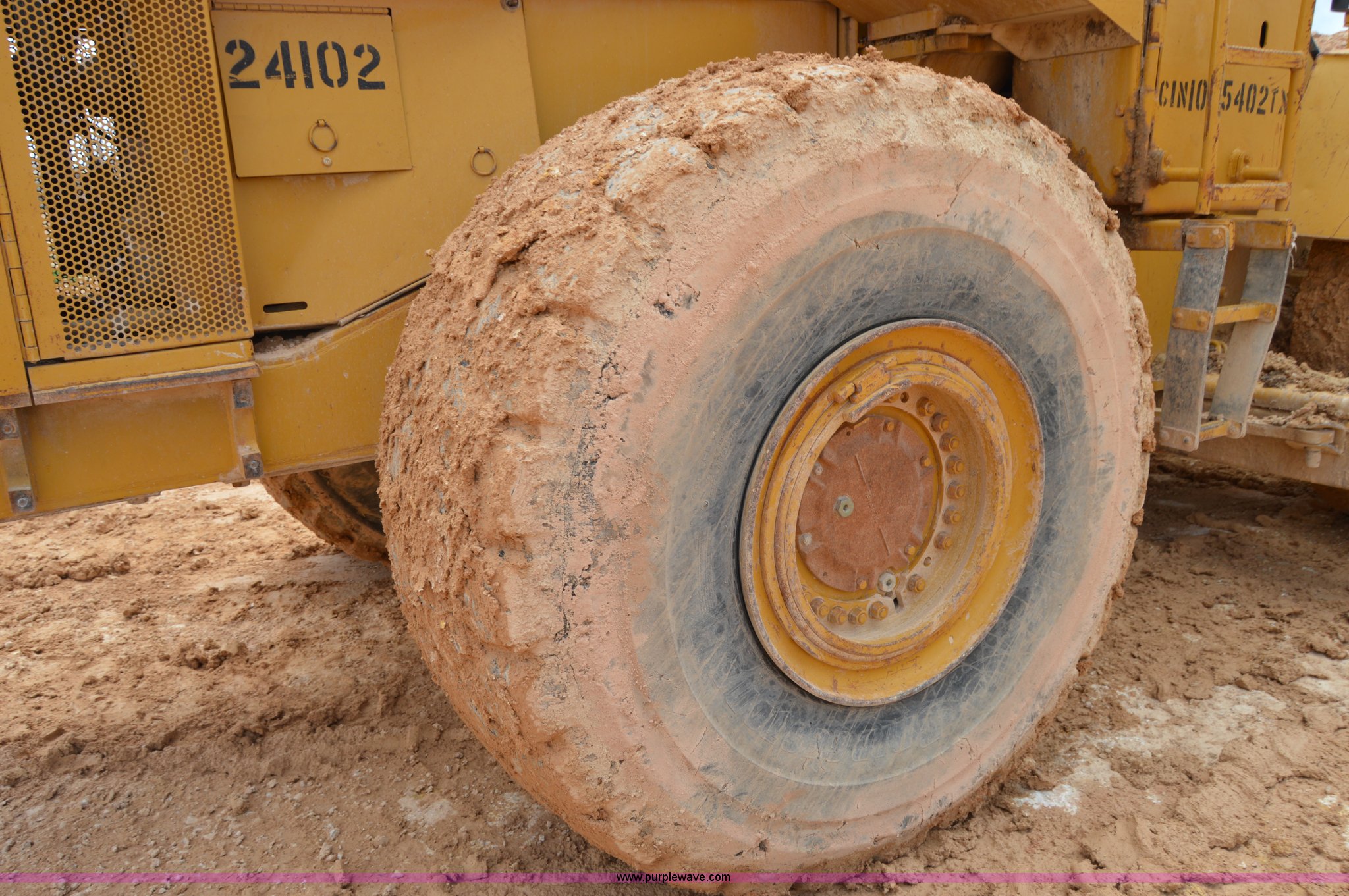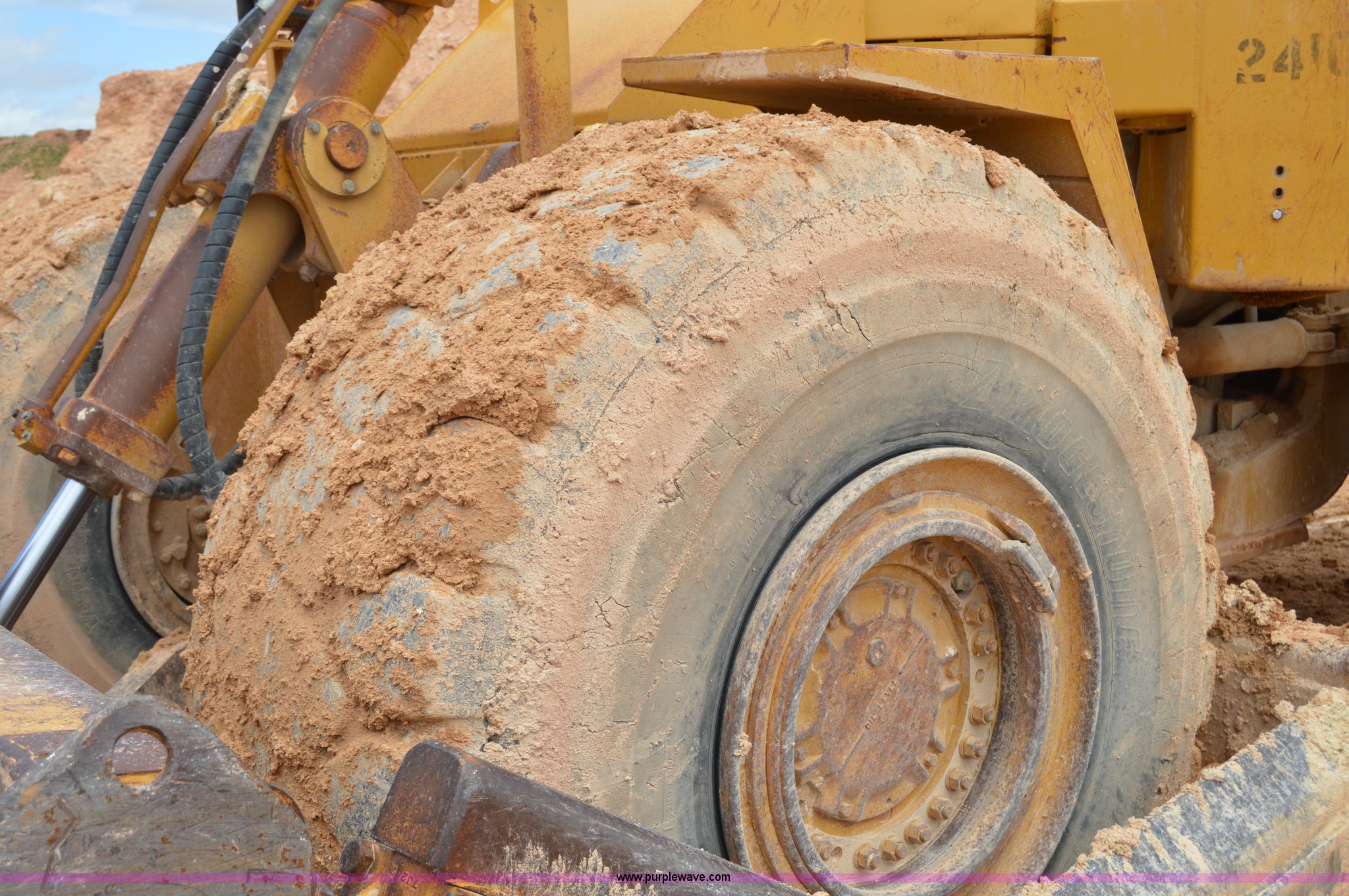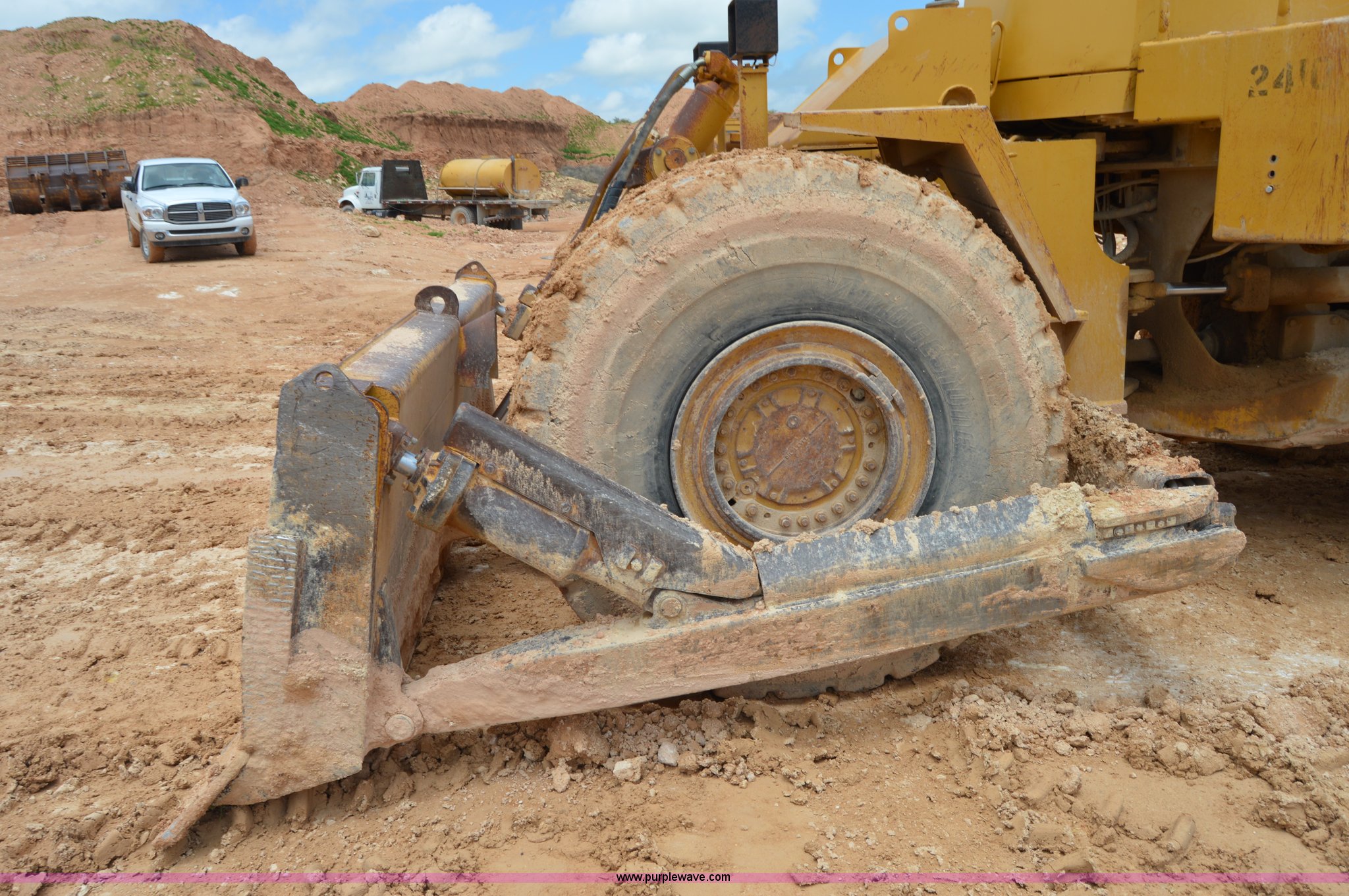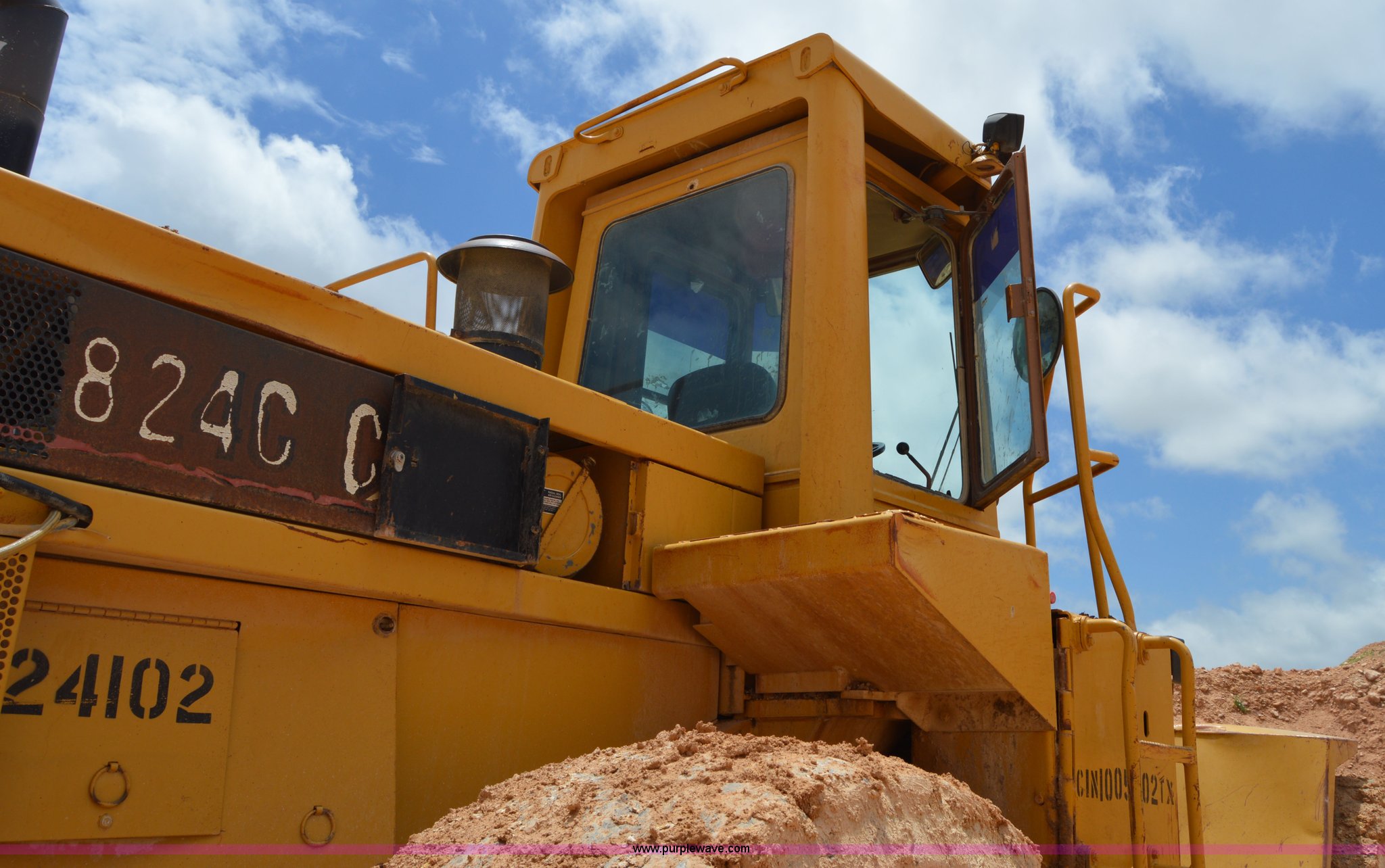 Purple Wave is selling a used Wheel Dozer in Texas. This item is a 1979 Caterpillar 824C wheel dozer with the following: Unknown hours on meter, Caterpillar six cylinder turbo diesel engine, Four speed shuttle shift transmission, Enclosed cab, Two stick blade control, Front and rear work lights, 13.5'W four way blade, 29.5R25 tires, 58,433 lbs. base operating weight, Serial 85X401, Unit# 24102