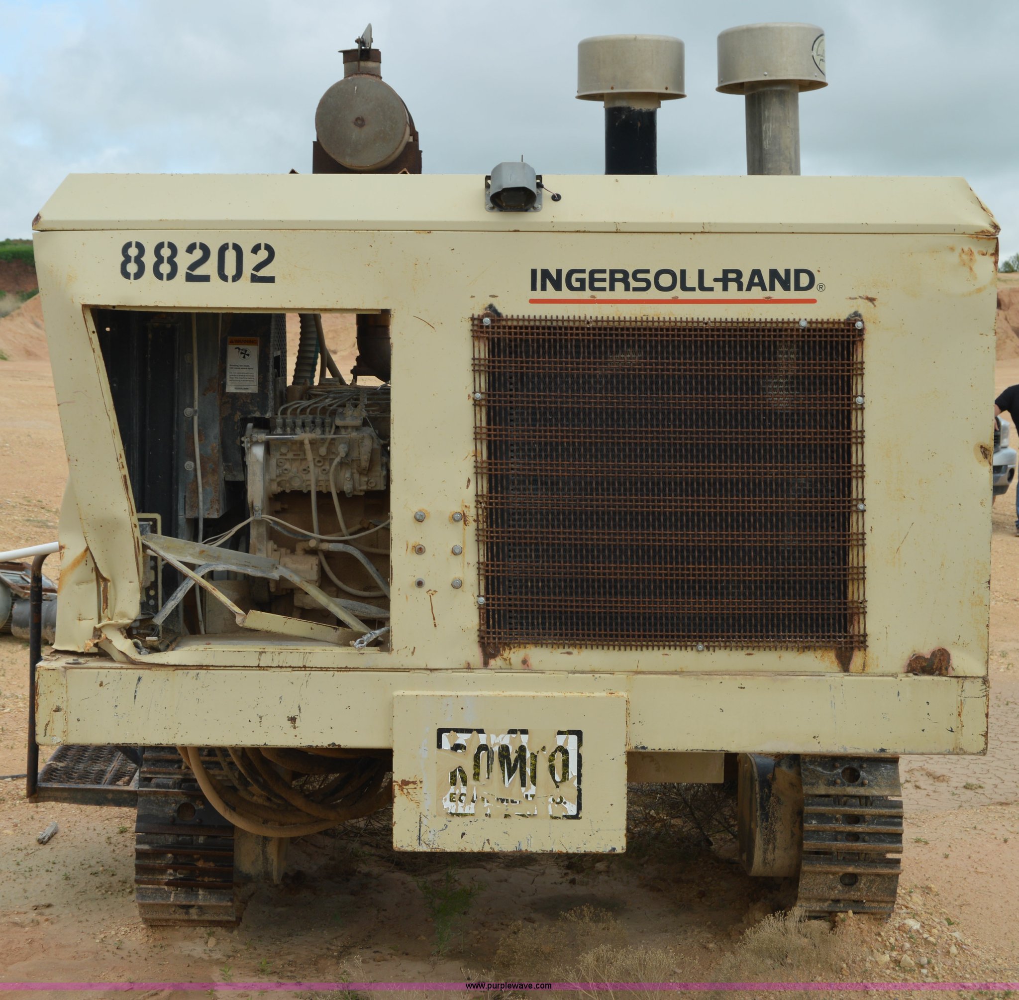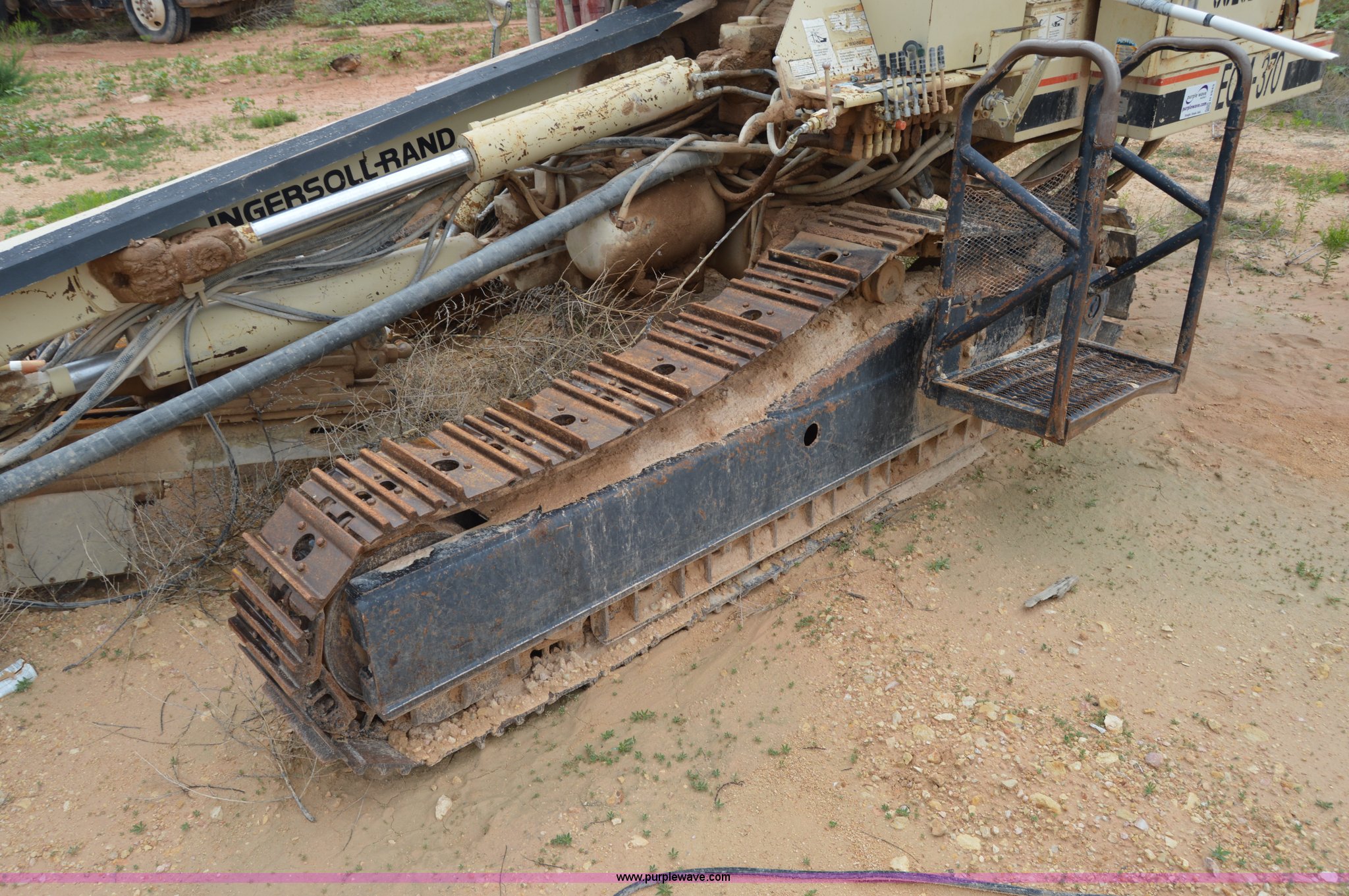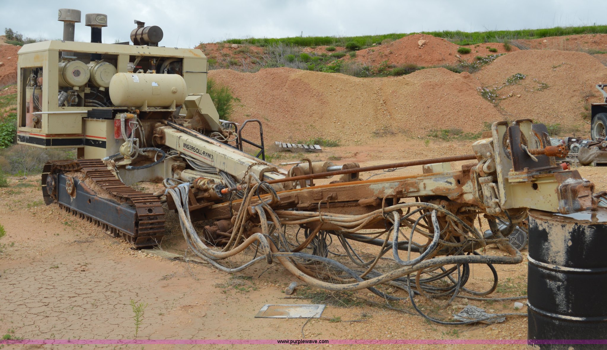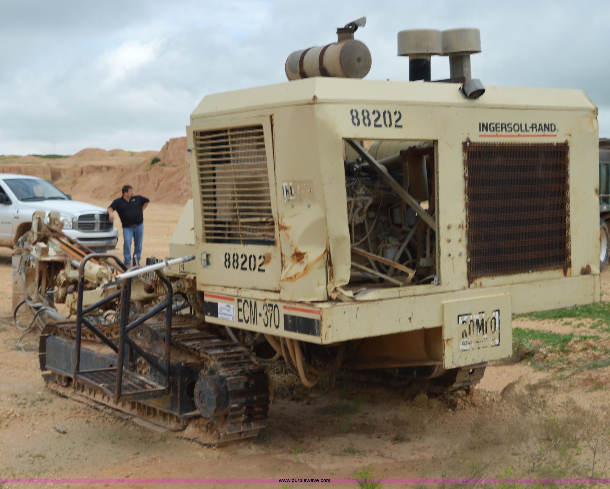 Purple Wave is selling a used Directional Boring Unit in Texas. This item is a Ingersoll Rand ECM-370 directional boring machine with the following: Cummins DA5063RX six cylinder diesel engine, 16' boring bit, 12"W track pads, 93" overall track width, Unknown operating condition, Unit# 88202