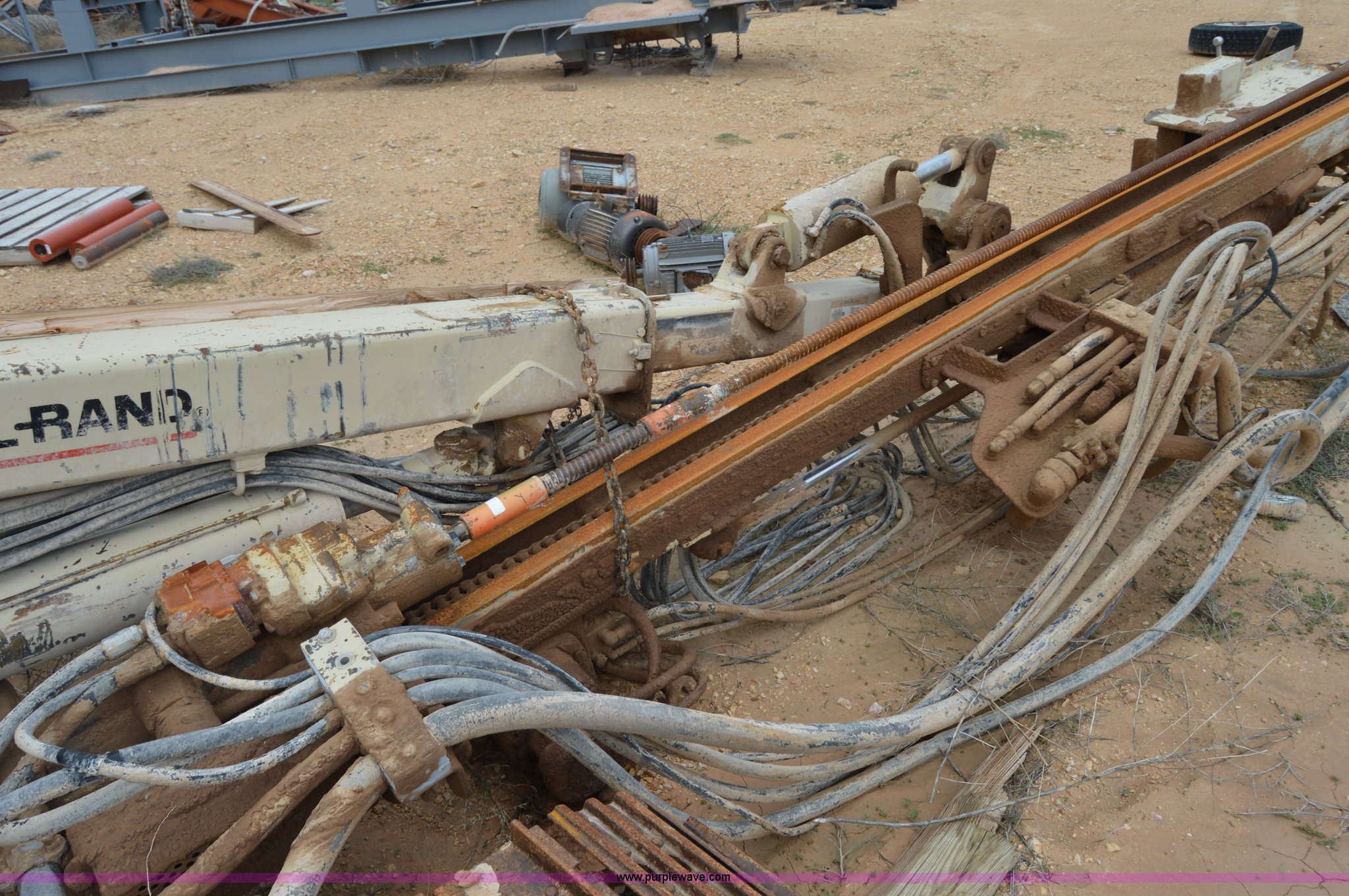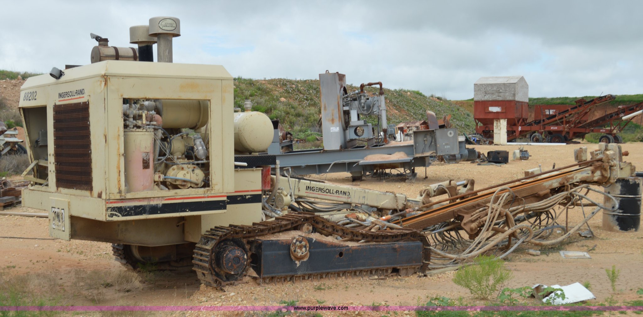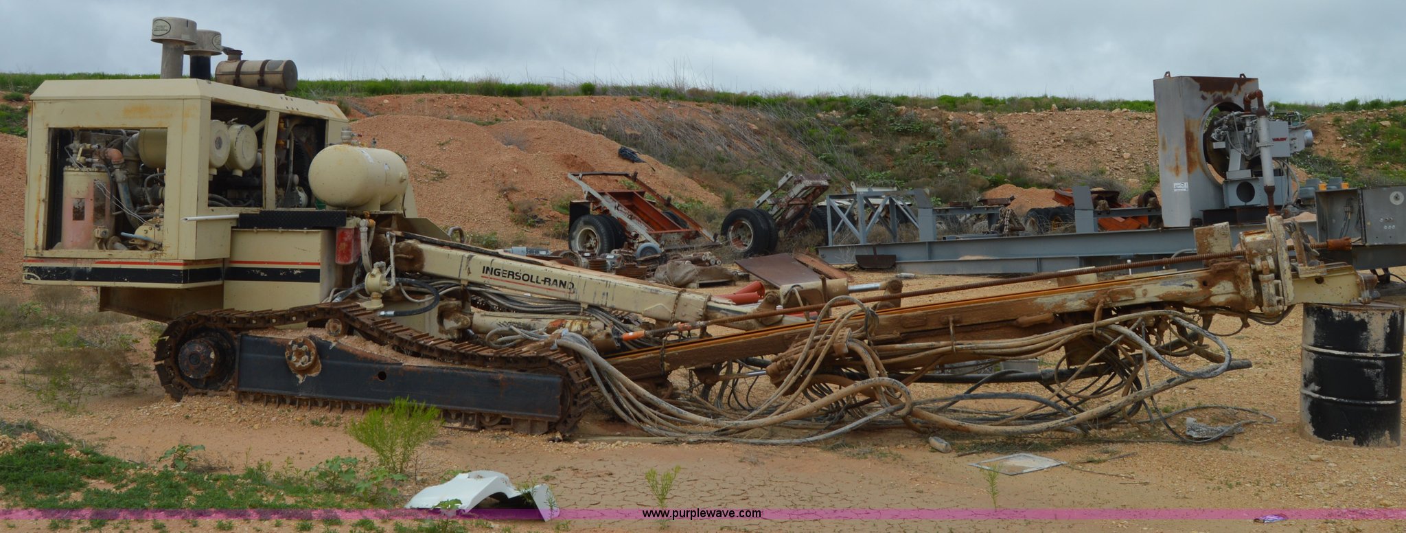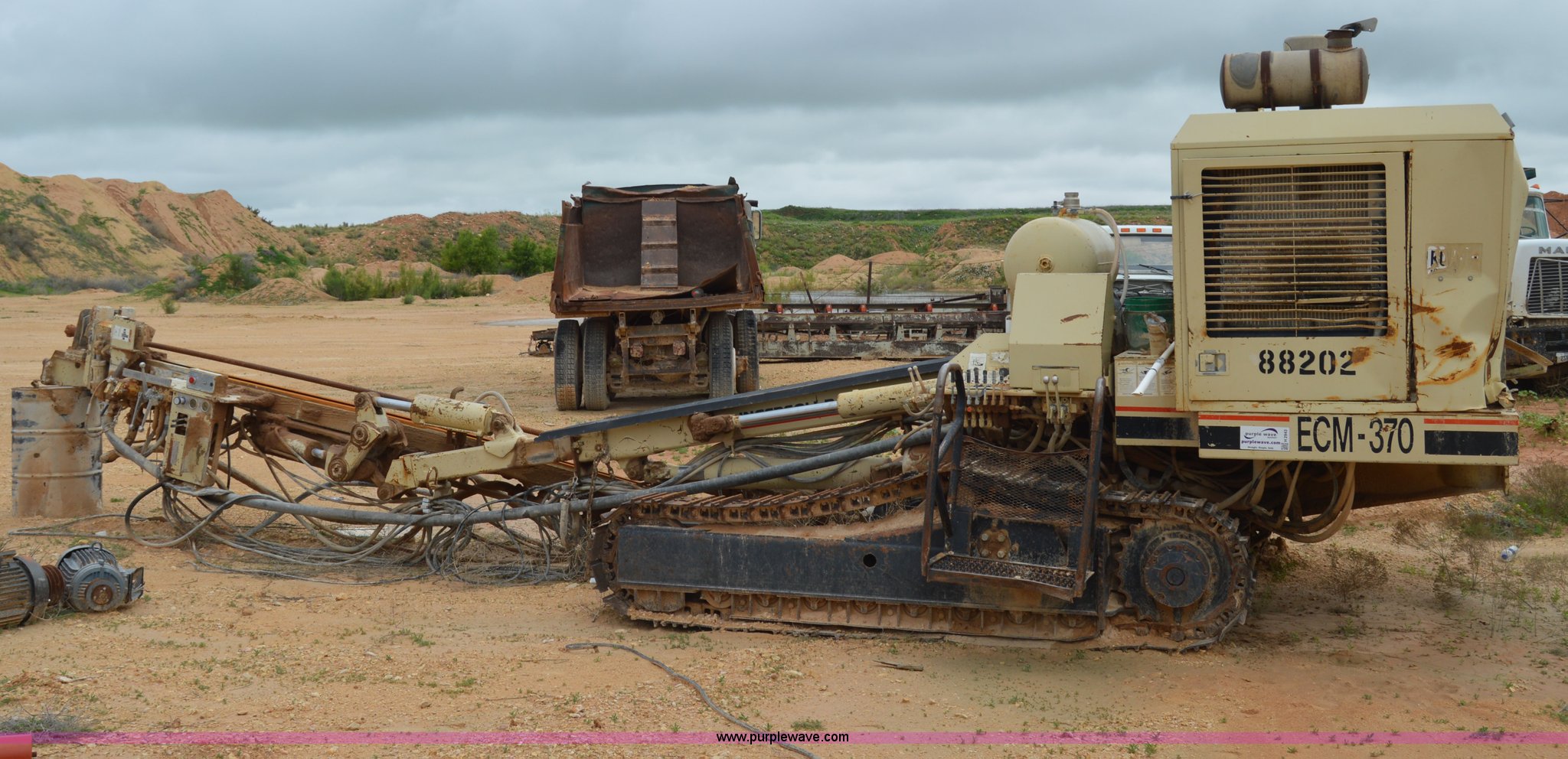 Purple Wave is selling a used Directional Boring Unit in Texas. This item is a Ingersoll Rand ECM-370 directional boring machine with the following: Cummins DA5063RX six cylinder diesel engine, 16' boring bit, 12"W track pads, 93" overall track width, Unknown operating condition, Unit# 88202