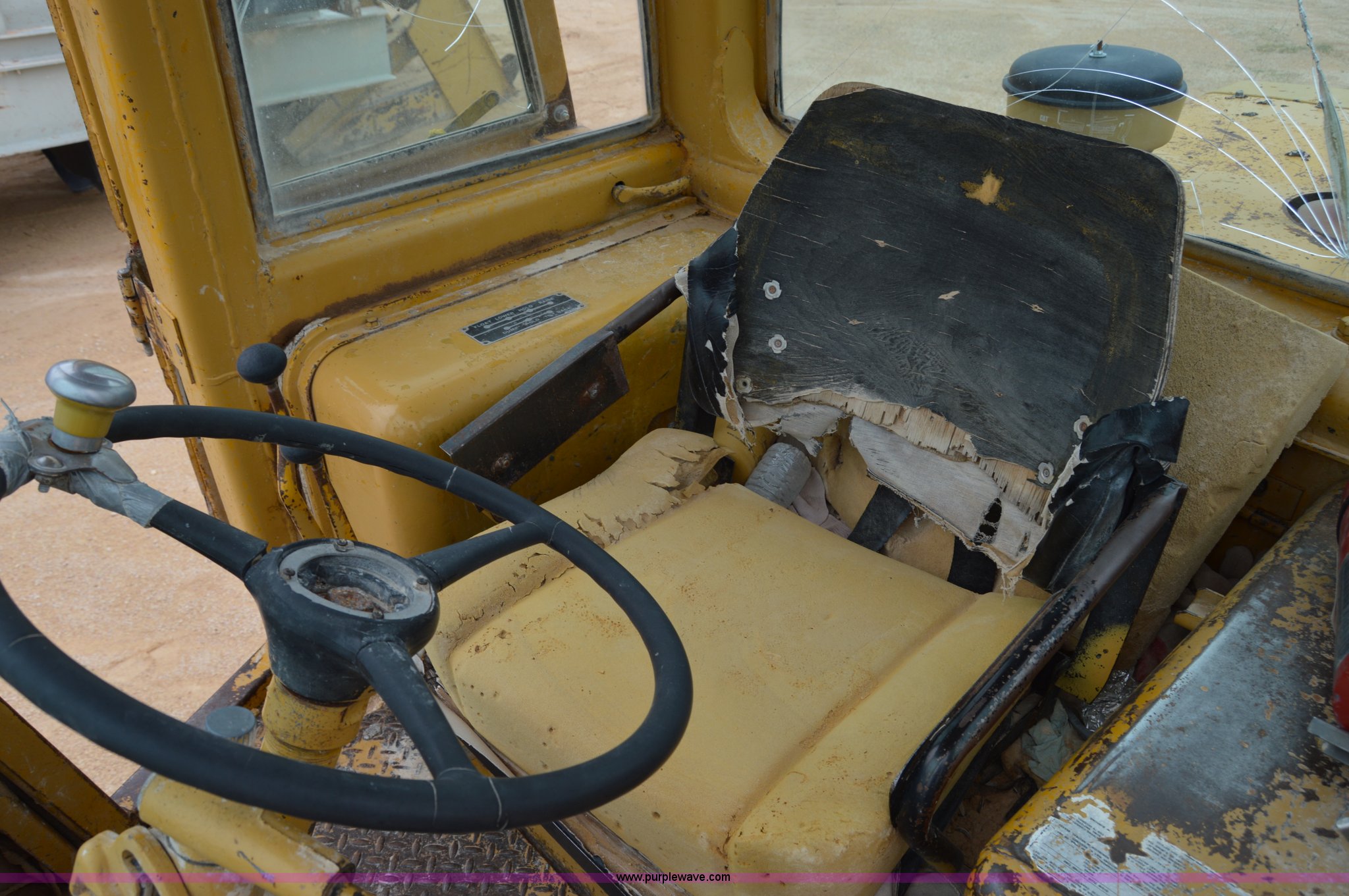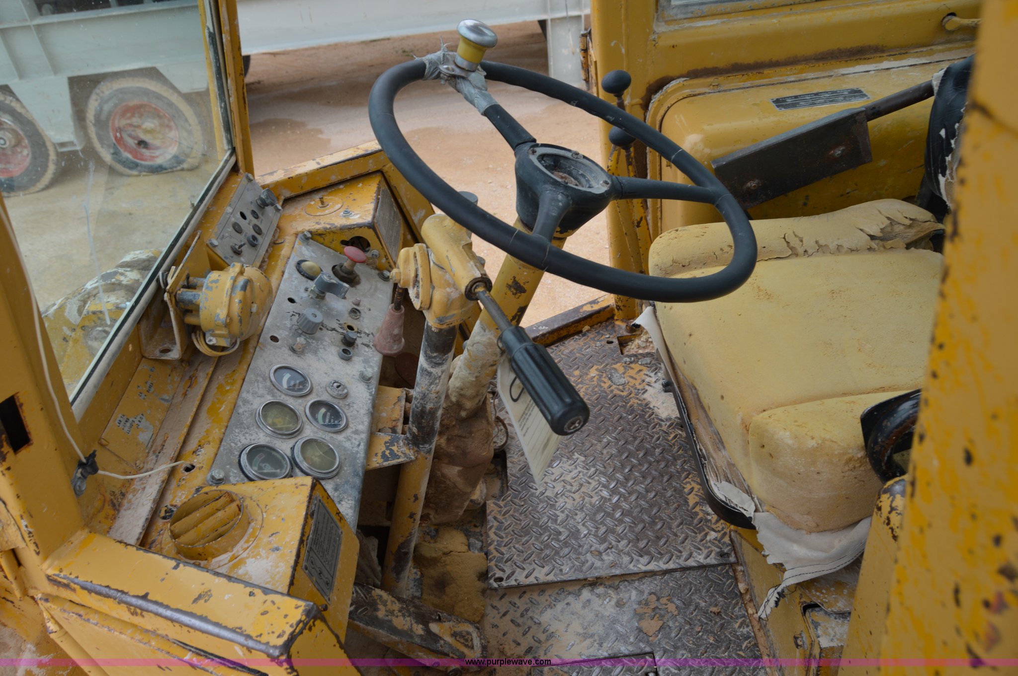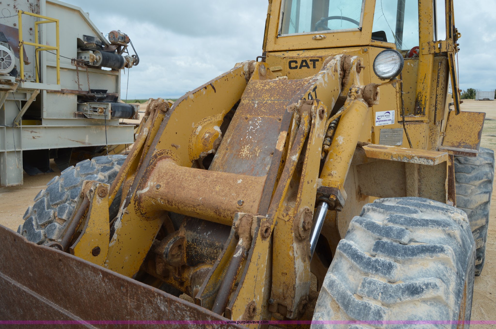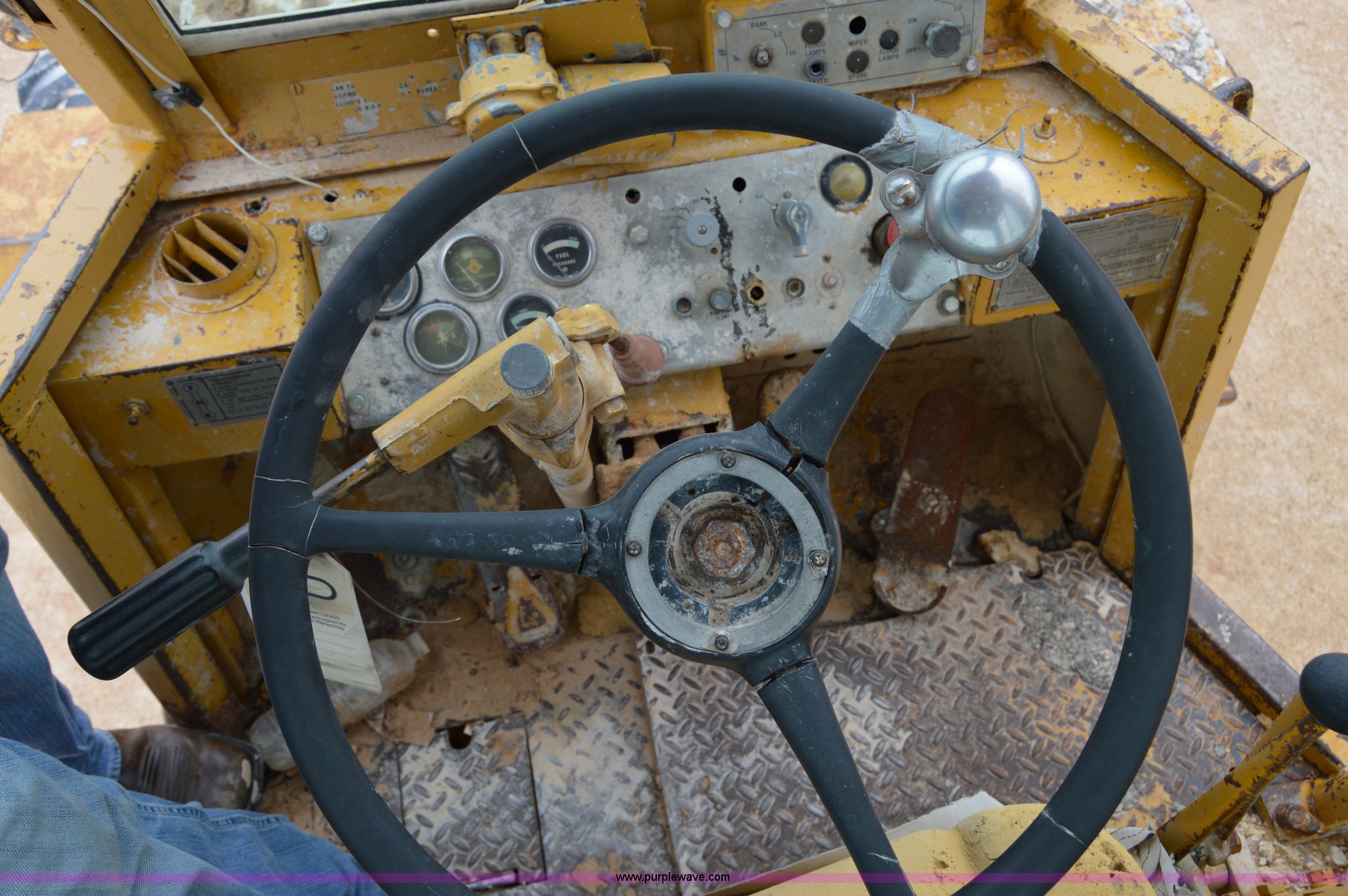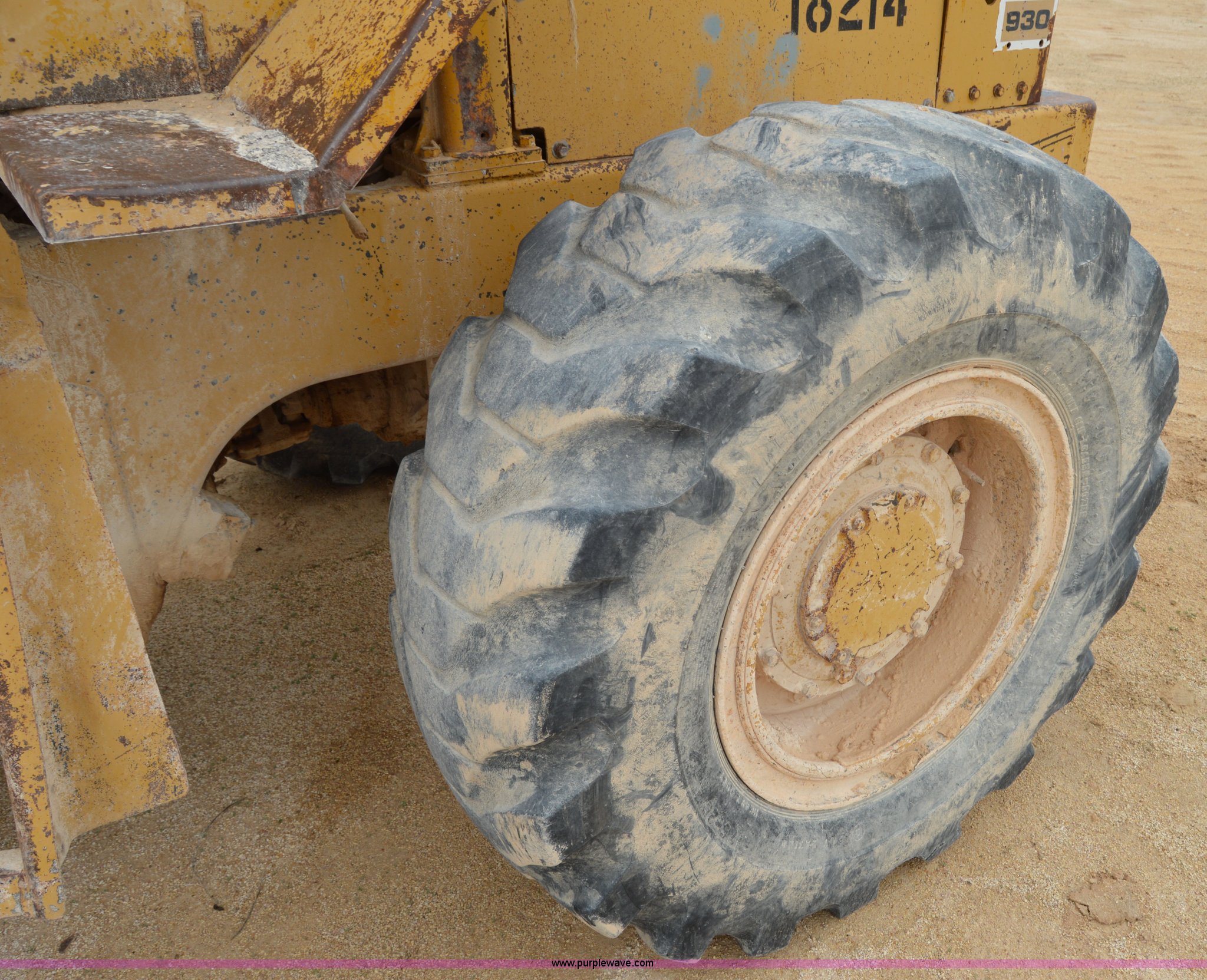 Purple Wave is selling a used Wheel Loader in Texas. This item is a 1970 Caterpillar 930 wheel loader with the following: Caterpillar four cylinder diesel engine, Four speed shuttle shift transmission, Enclosed cab, Two stick loader control, 8'W bucket, Smooth cutting edge, Pin hitch, 17.5-25 tires, 19,768 lbs. base operating weight, Cab glass broken, Battery dead, Serial 41K1002, Unit# 8214