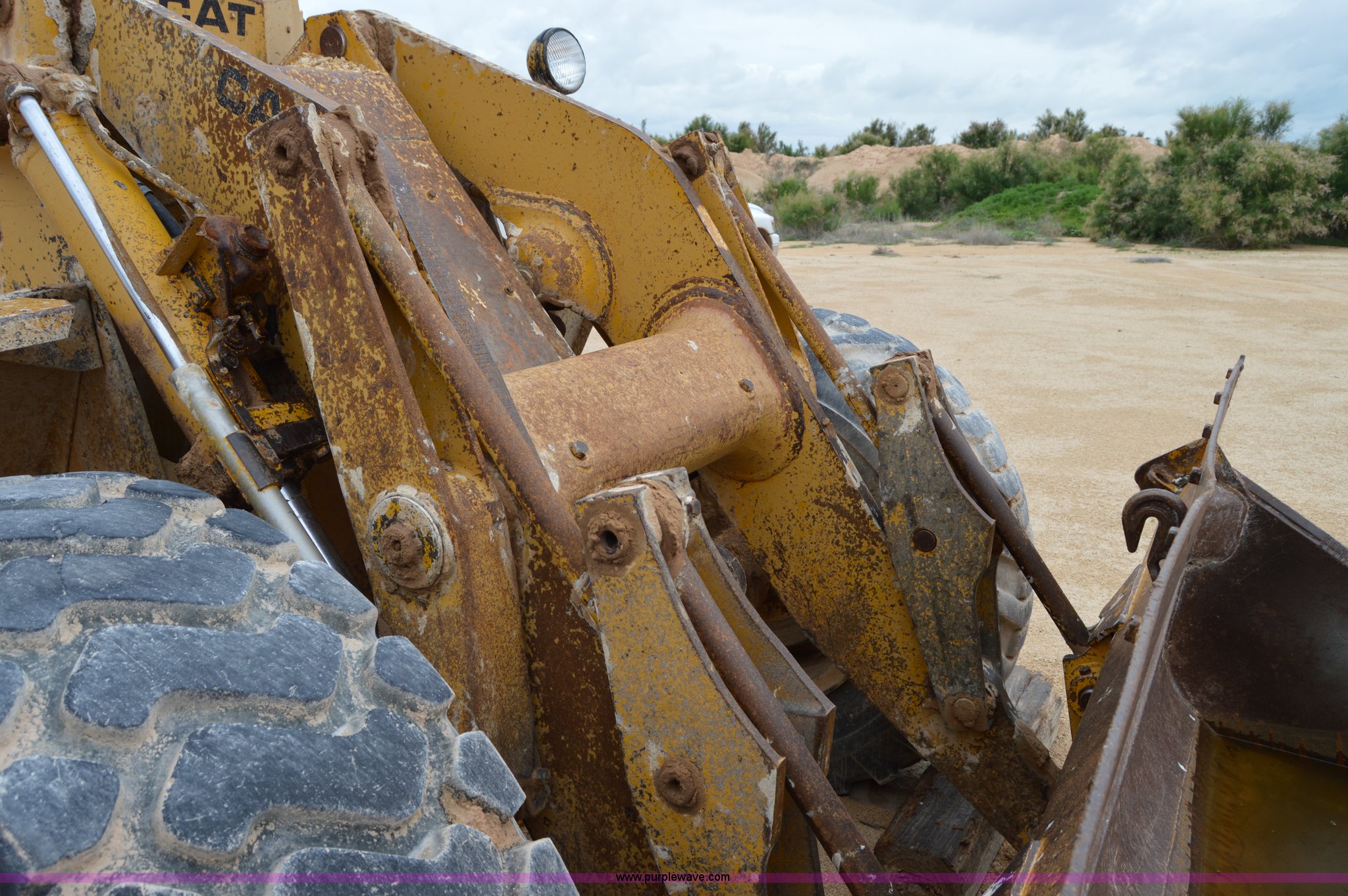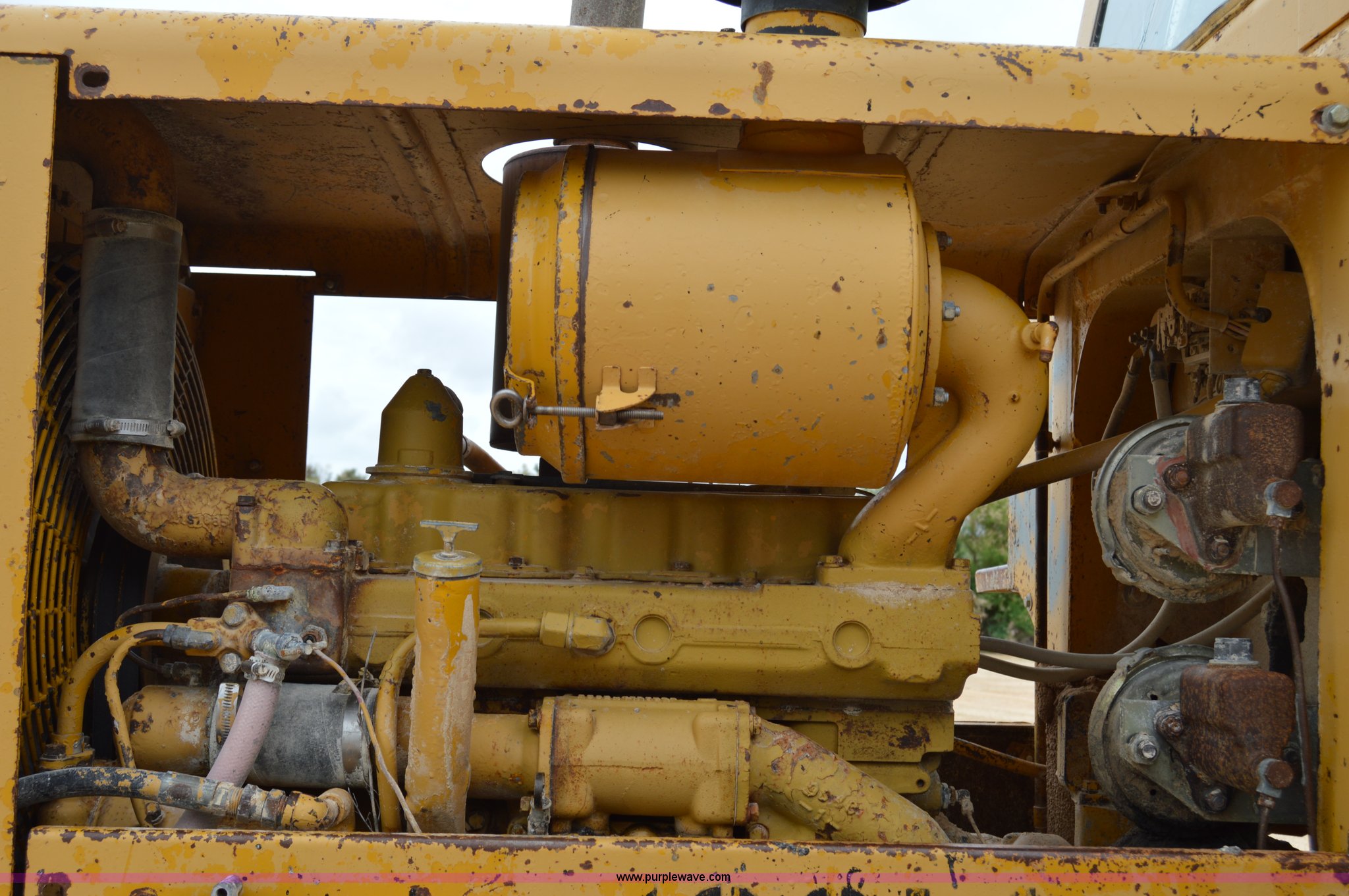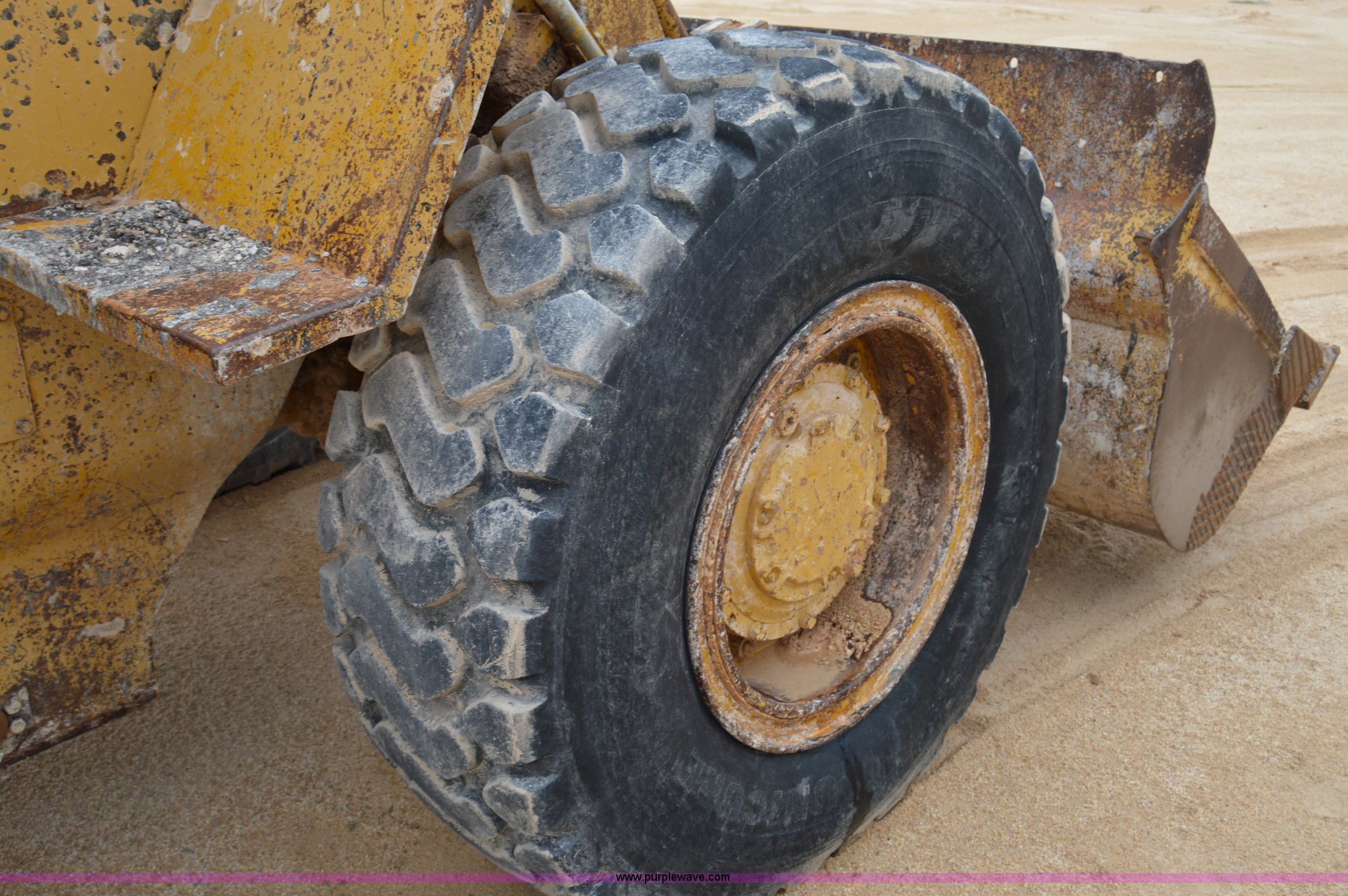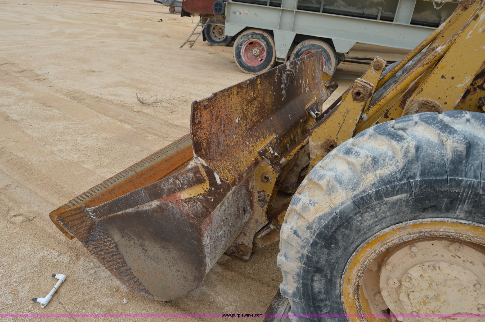 Purple Wave is selling a used Wheel Loader in Texas. This item is a 1970 Caterpillar 930 wheel loader with the following: Caterpillar four cylinder diesel engine, Four speed shuttle shift transmission, Enclosed cab, Two stick loader control, 8'W bucket, Smooth cutting edge, Pin hitch, 17.5-25 tires, 19,768 lbs. base operating weight, Cab glass broken, Battery dead, Serial 41K1002, Unit# 8214