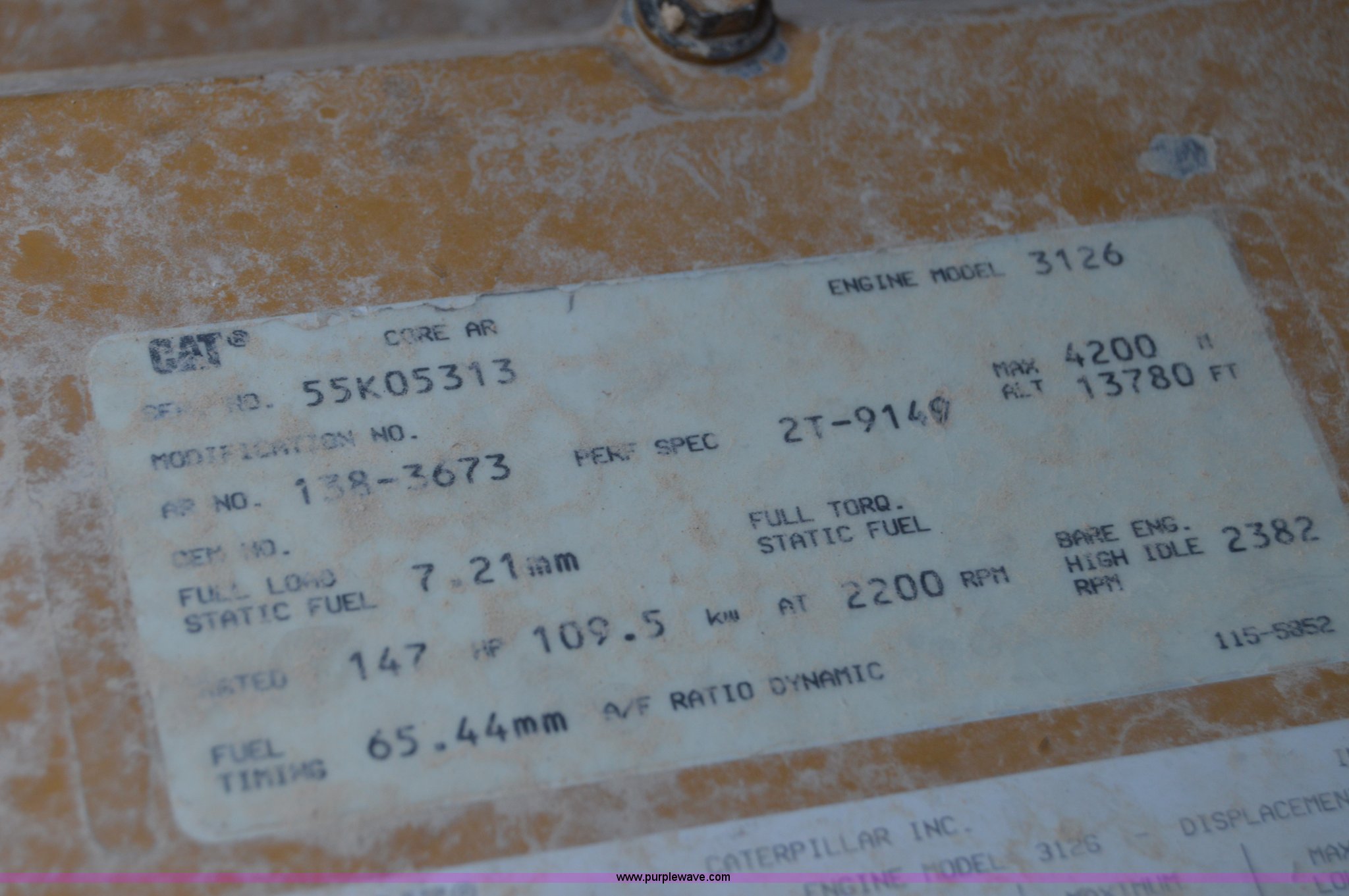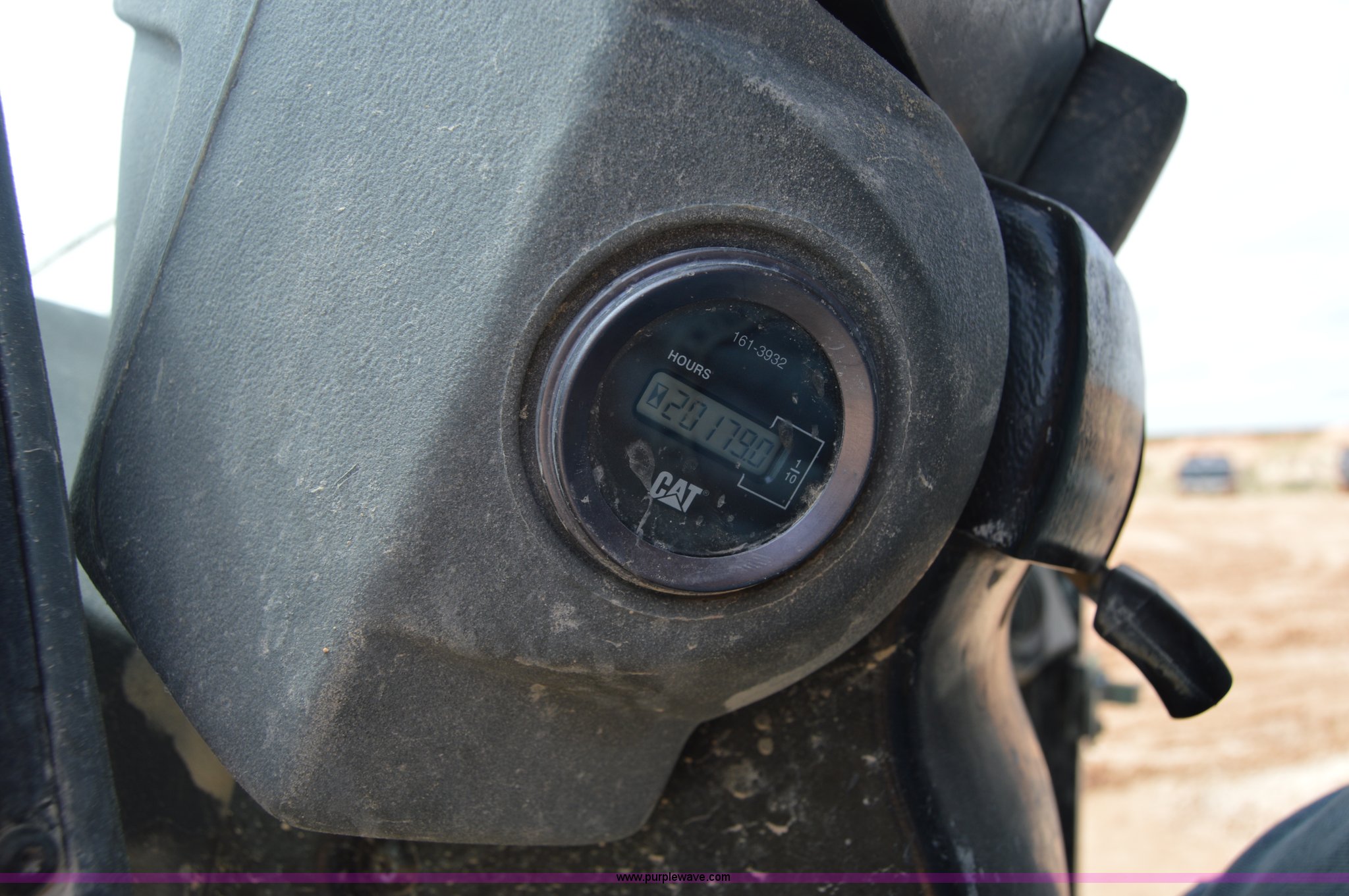 1999 Caterpillar 938G wheel loader. 20,179 hours on meter, Caterpillar 3126 six cylinder diesel engine Serial 55K05313, Four speed shuttle shift transmission, Enclosed cab, AC and heat Unknown operating condition of AC, Joystick loader control, Millenium RTS scales and monitor, 106"W bucket Smooth cutting edge, Front and rear work lights, Pin hitch, 20.5R25 tires, 28,860 lbs. base operating weight, Windshield cracked, Serial 4YS01125. View equipment video. Amarillo Road Company. County Road 149. Lockney, TX 79241
