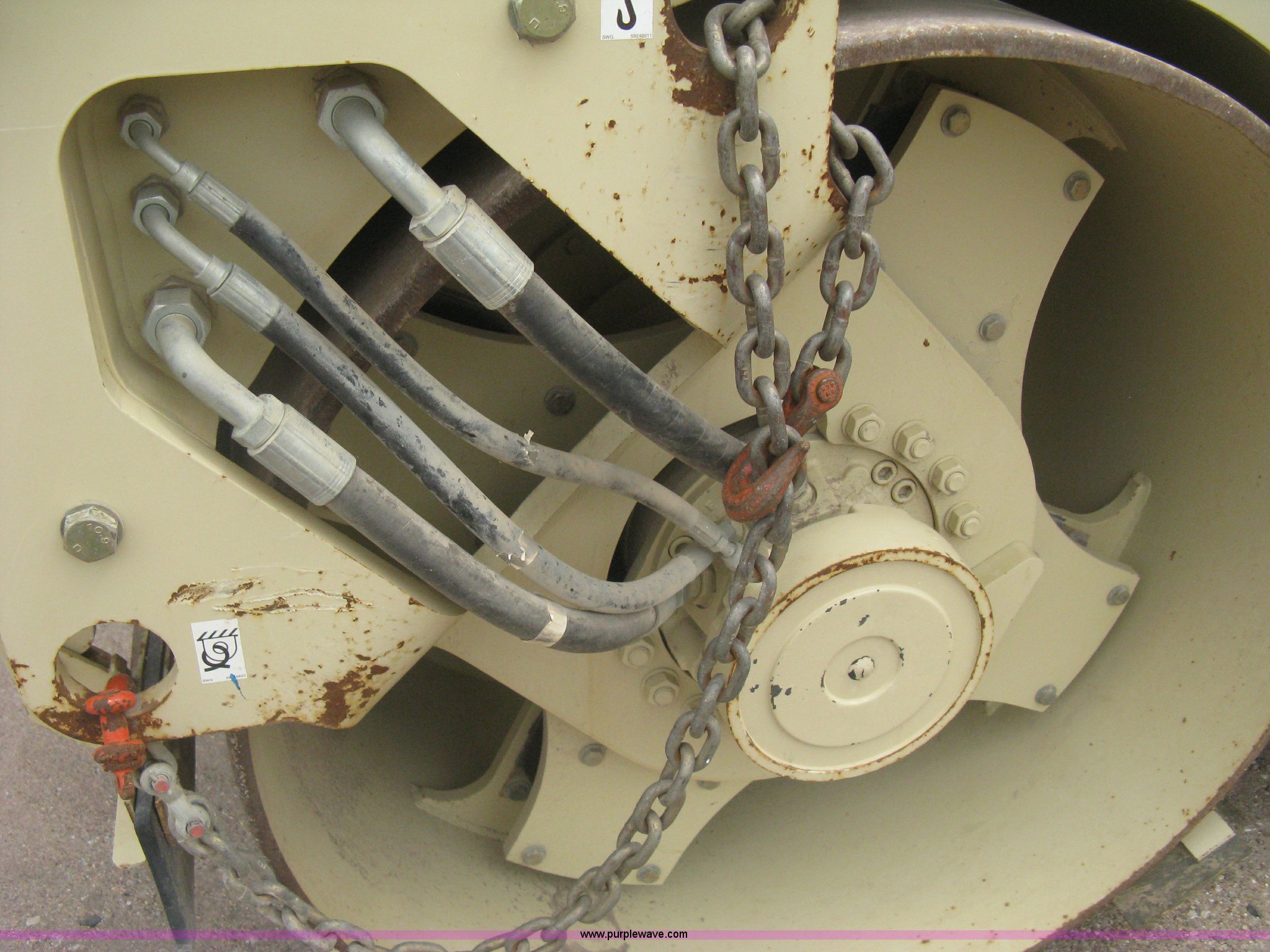 Purple Wave is selling a used Double Drum Roller Compactor in Kansas. This item is a 2002 Ingersoll Rand DD70 articulated smooth drum vibratory roller with the following: 608 hours on meter, Cummins diesel engine, Hydrostatic transmission, OROPS, Suspension seat, Independent vibratory drum controls, Work lights, Front and rear water application, Poly water tanks, 57"W drums, Drum scrapers, Vandal guard, 14,895 lbs. base operating weight, Serial 171966