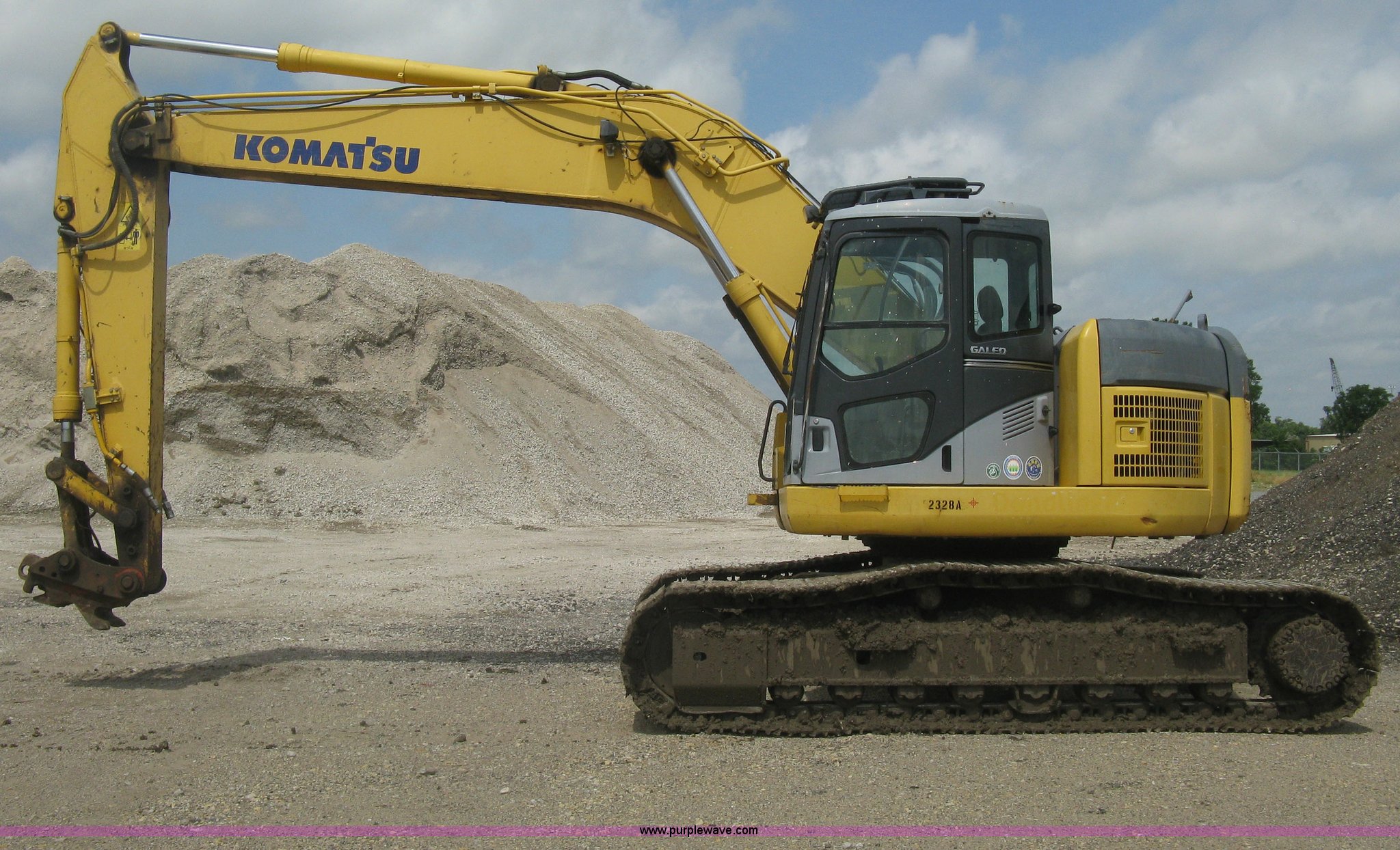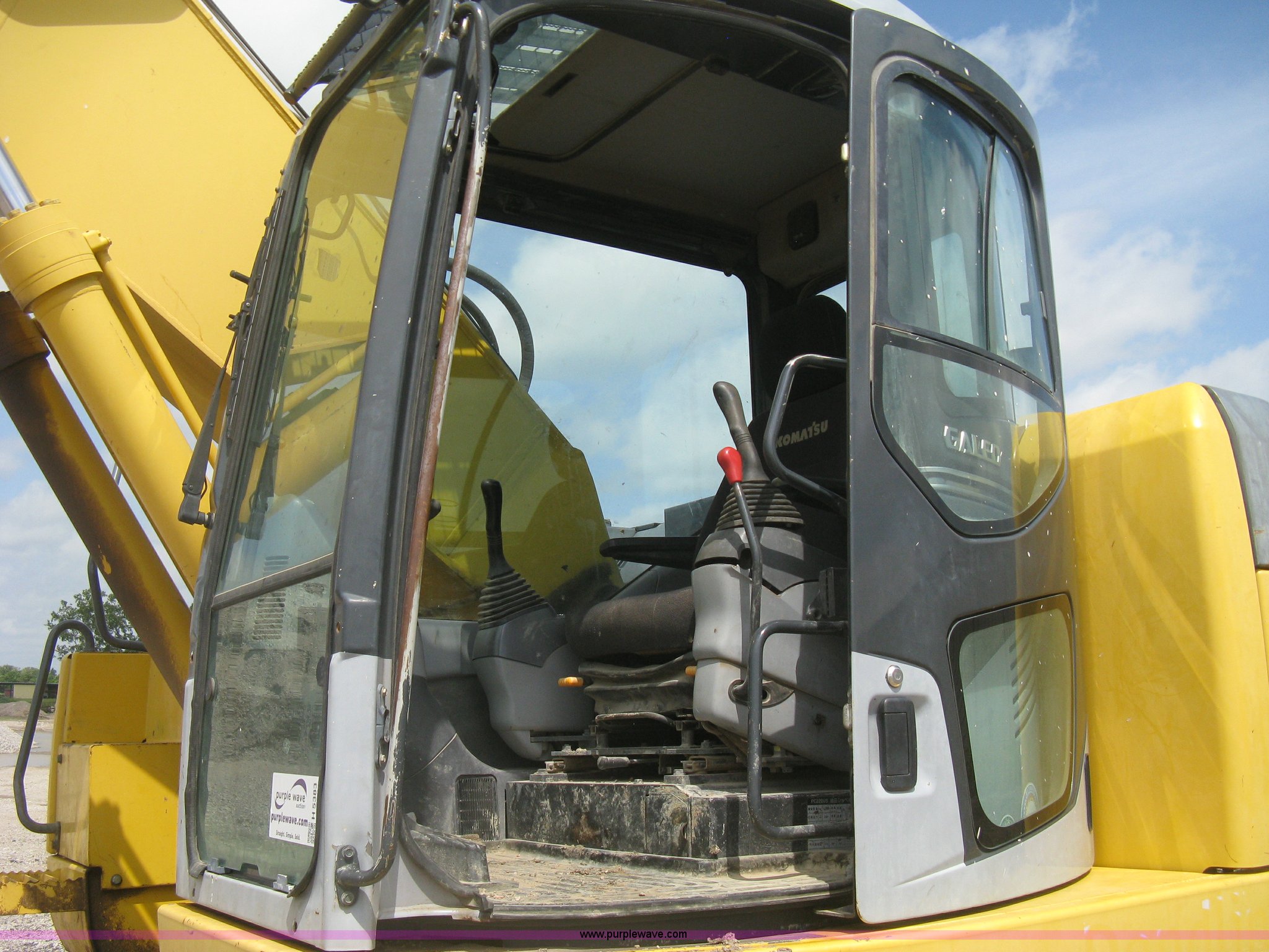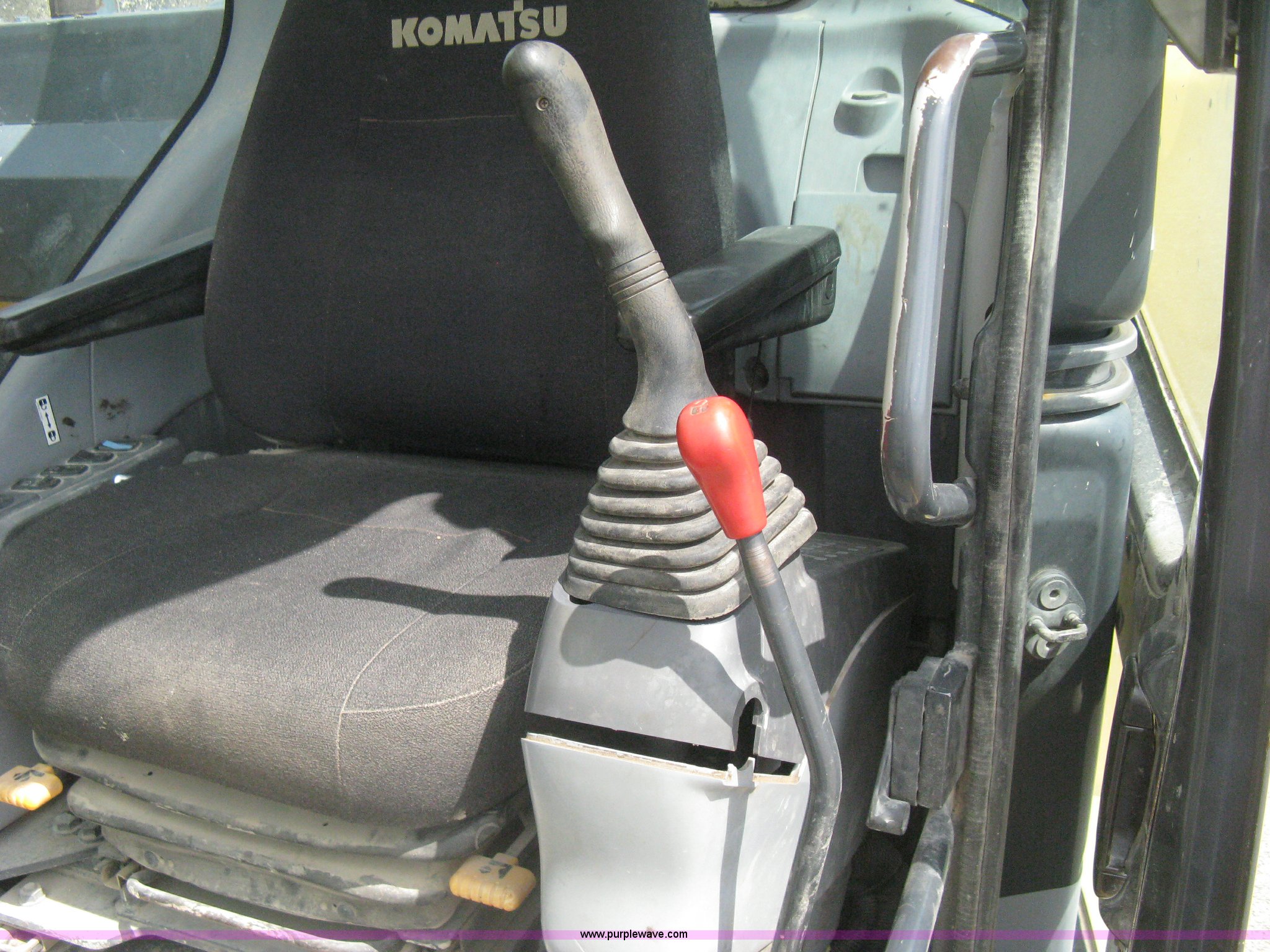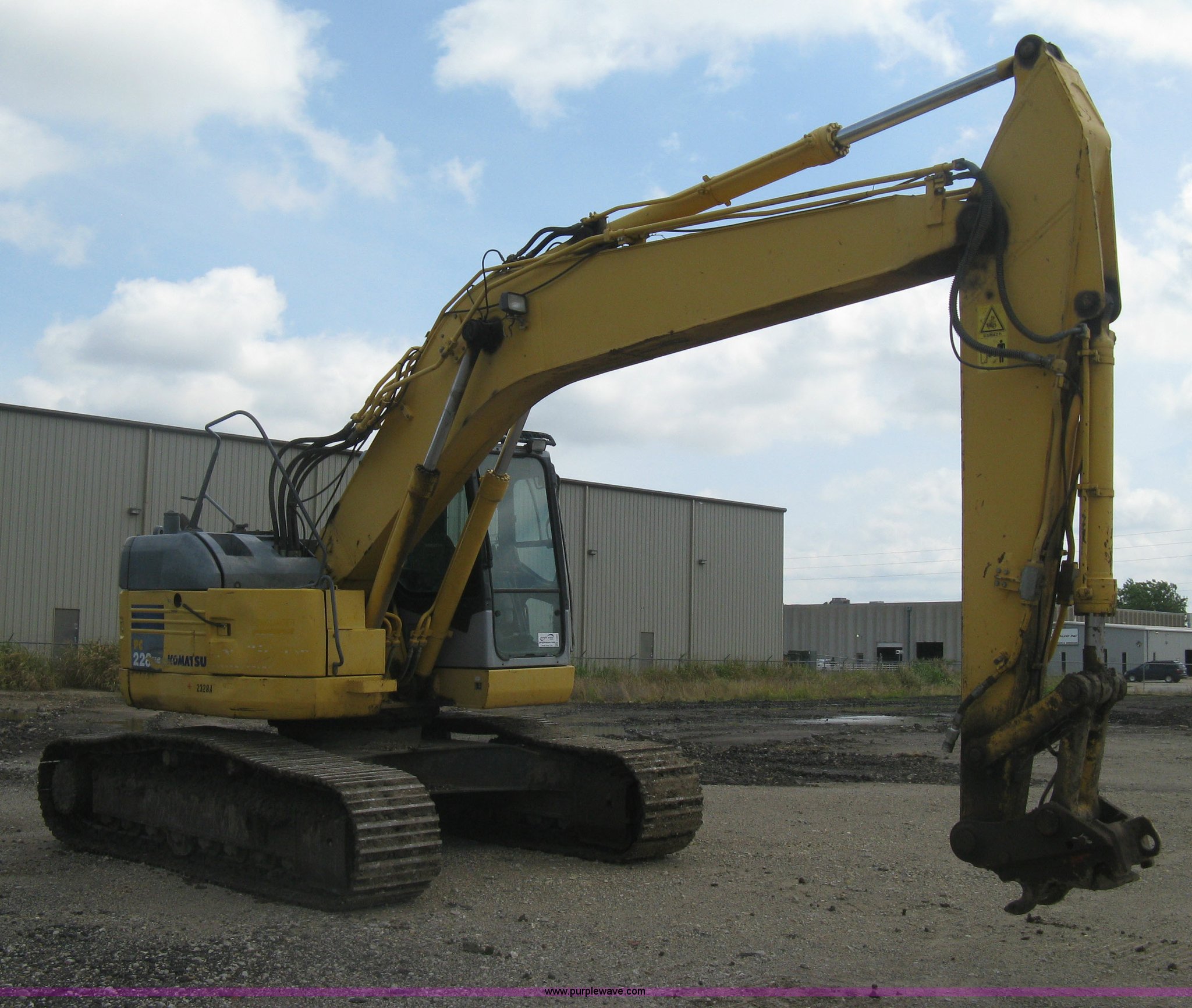Purple Wave is selling a used Hydraulic Excavator in Kansas. This item is a 2003 Komatsu PC228US-3 excavator with the following: 10,262 hours on meter, Komatsu SAA6D102E-2-A 5.9L six cylinder diesel engine, 150 HP, Serial 26287631, Hydrostatic transmission, Two speed travel, ROPS, AC and heat, AM/FM, Air suspension seat, Windshield wipers, Joystick controls, Foot controls, Front work lights, Standard boom, 9.5' stick length, Hydraulic quick coupler, Auxiliary hydraulics, High flow, Rear counter weights, Eight bottom rollers, 24"W steel triple grouser track pads, Exterior cosmetic body damage, (3) broken bolts on right side under carriage idlers, One main boom cylinder seeping, Serial 20899, Unit# 2328A