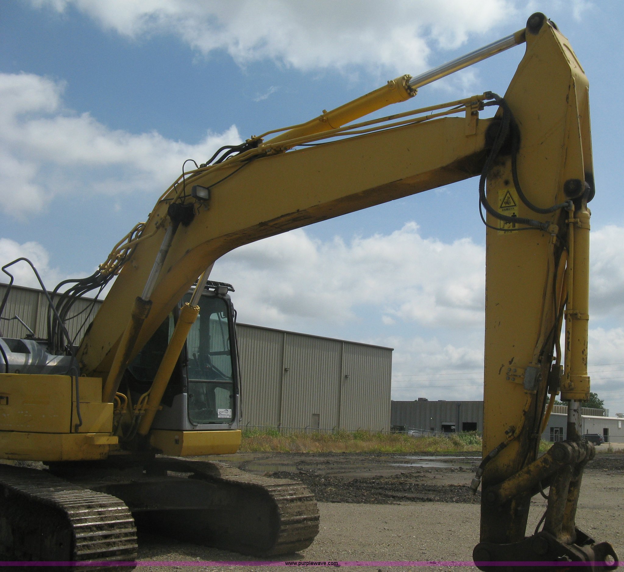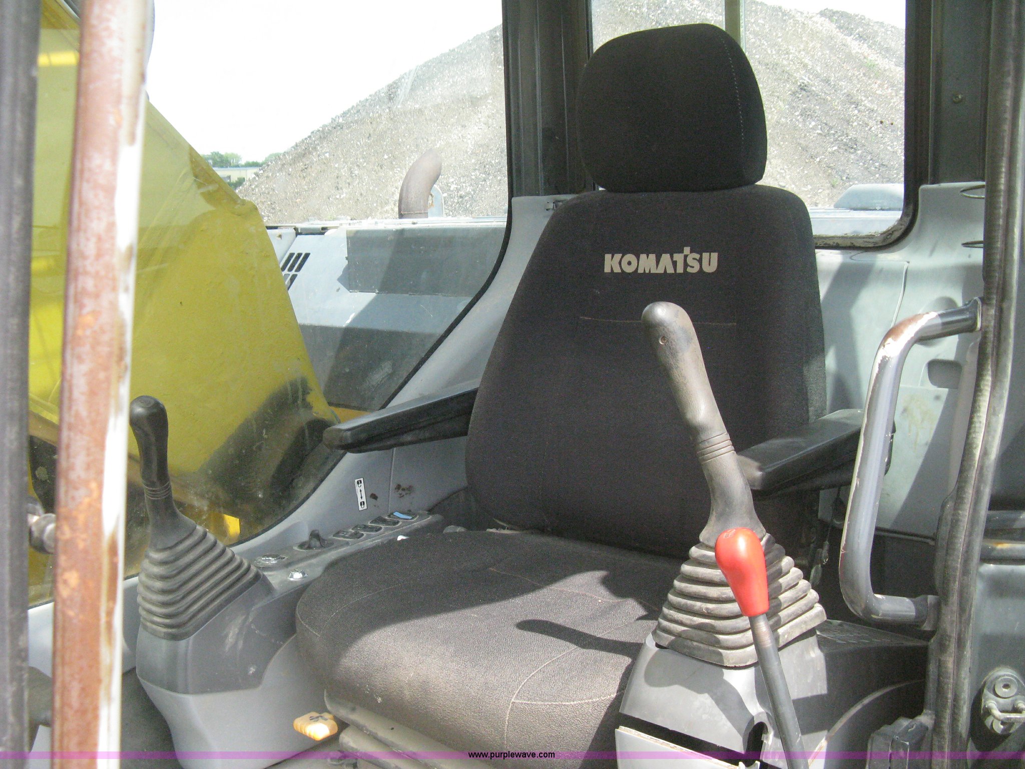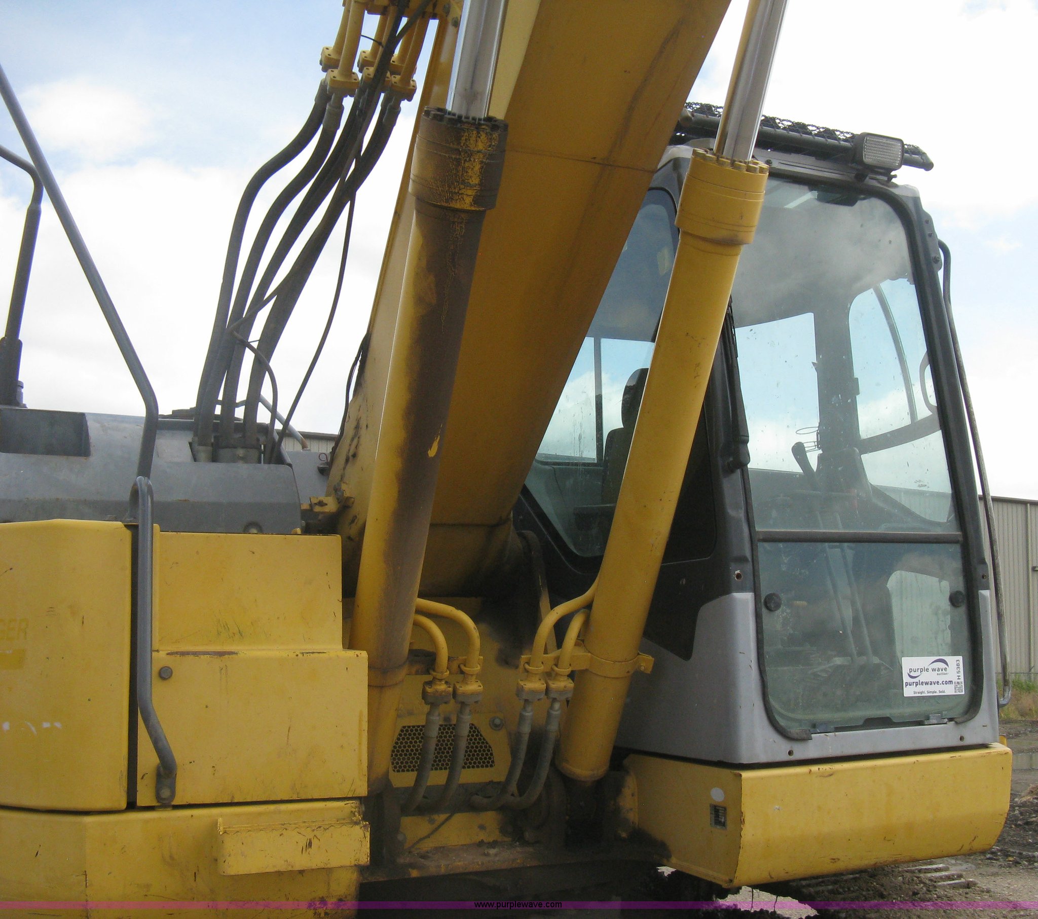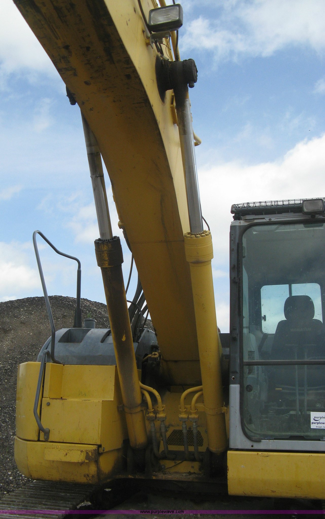 Purple Wave is selling a used Hydraulic Excavator in Kansas. This item is a 2003 Komatsu PC228US-3 excavator with the following: 10,262 hours on meter, Komatsu SAA6D102E-2-A 5.9L six cylinder diesel engine, 150 HP, Serial 26287631, Hydrostatic transmission, Two speed travel, ROPS, AC and heat, AM/FM, Air suspension seat, Windshield wipers, Joystick controls, Foot controls, Front work lights, Standard boom, 9.5' stick length, Hydraulic quick coupler, Auxiliary hydraulics, High flow, Rear counter weights, Eight bottom rollers, 24"W steel triple grouser track pads, Exterior cosmetic body damage, (3) broken bolts on right side under carriage idlers, One main boom cylinder seeping, Serial 20899, Unit# 2328A