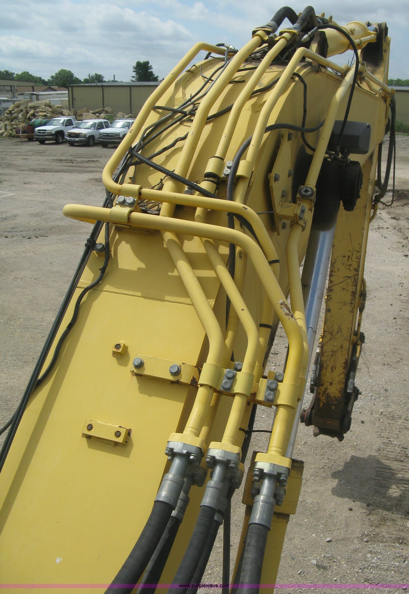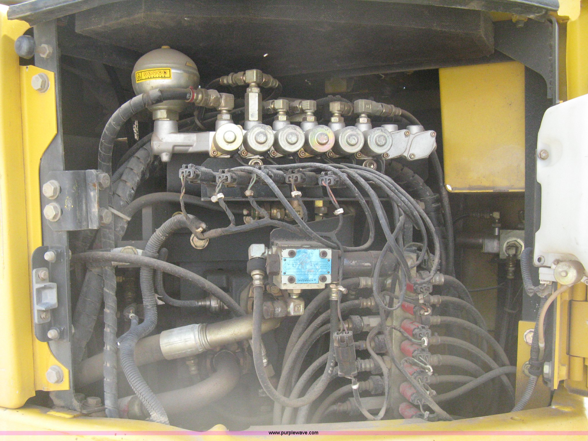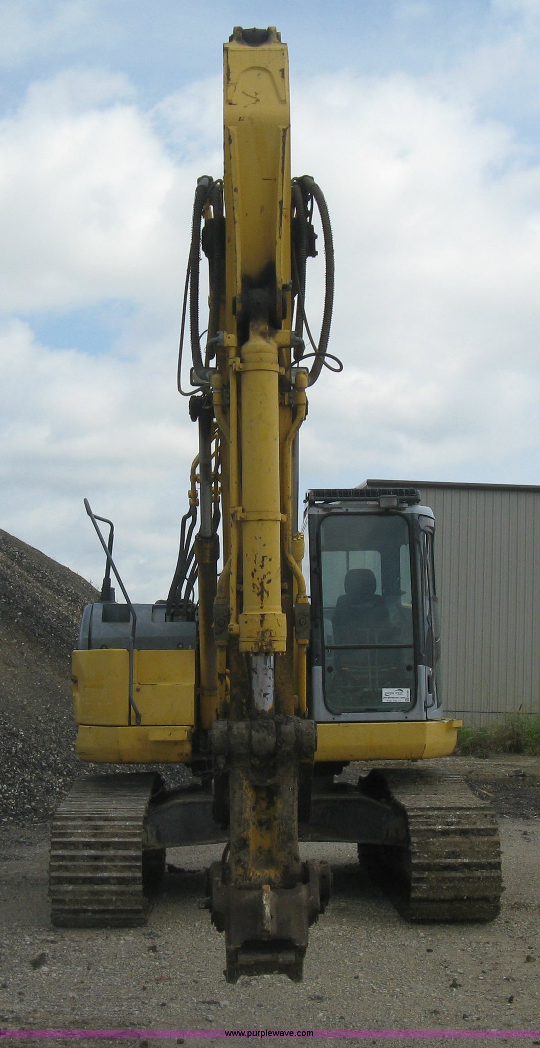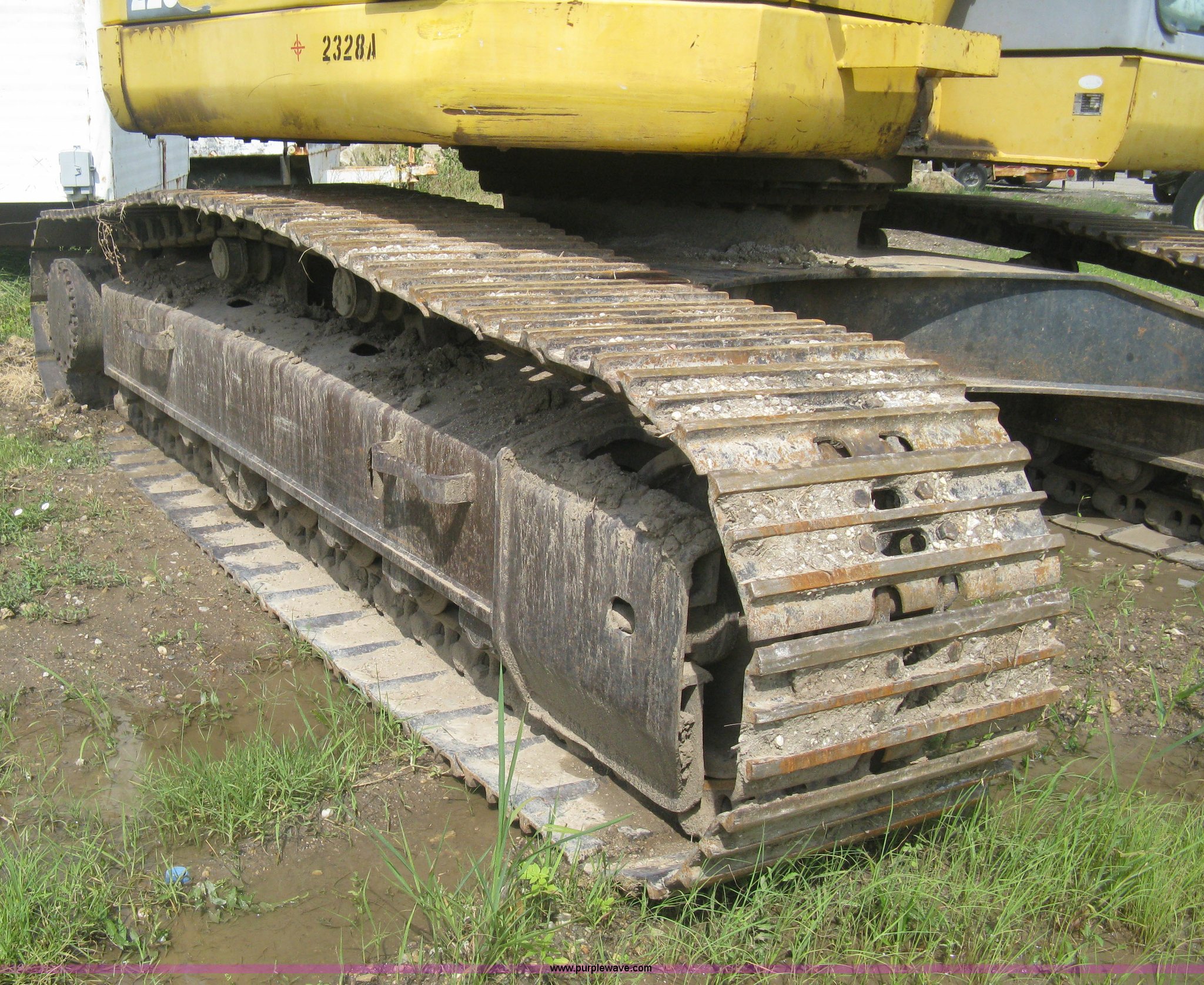 Purple Wave is selling a used Hydraulic Excavator in Kansas. This item is a 2003 Komatsu PC228US-3 excavator with the following: 10,262 hours on meter, Komatsu SAA6D102E-2-A 5.9L six cylinder diesel engine, 150 HP, Serial 26287631, Hydrostatic transmission, Two speed travel, ROPS, AC and heat, AM/FM, Air suspension seat, Windshield wipers, Joystick controls, Foot controls, Front work lights, Standard boom, 9.5' stick length, Hydraulic quick coupler, Auxiliary hydraulics, High flow, Rear counter weights, Eight bottom rollers, 24"W steel triple grouser track pads, Exterior cosmetic body damage, (3) broken bolts on right side under carriage idlers, One main boom cylinder seeping, Serial 20899, Unit# 2328A