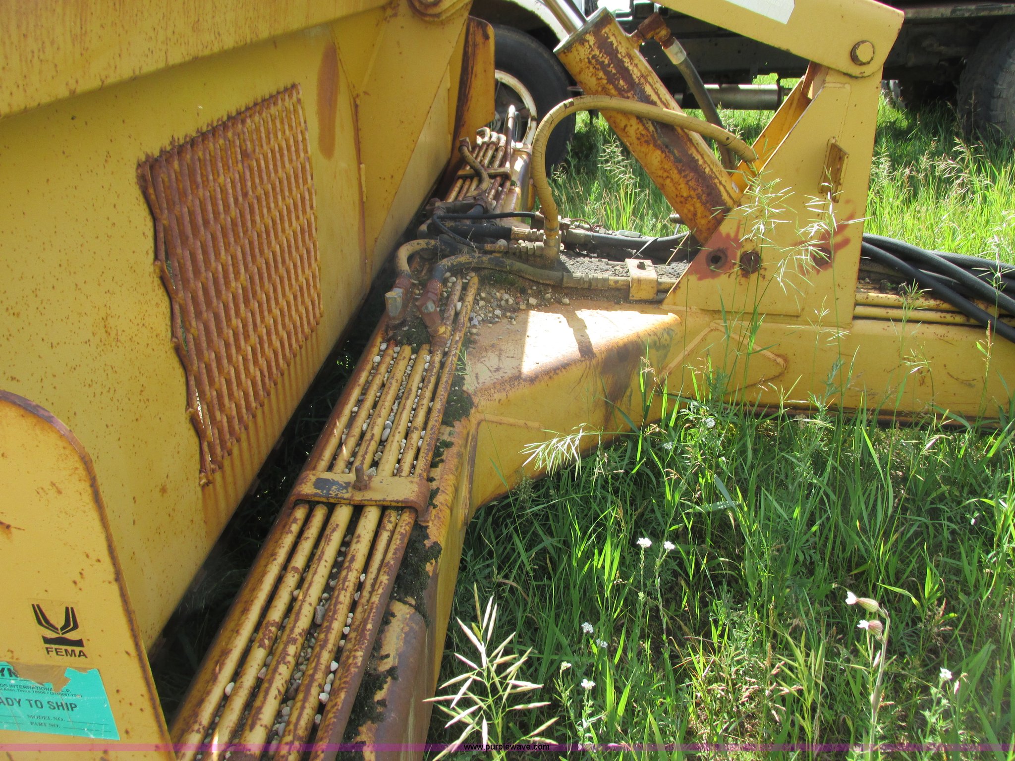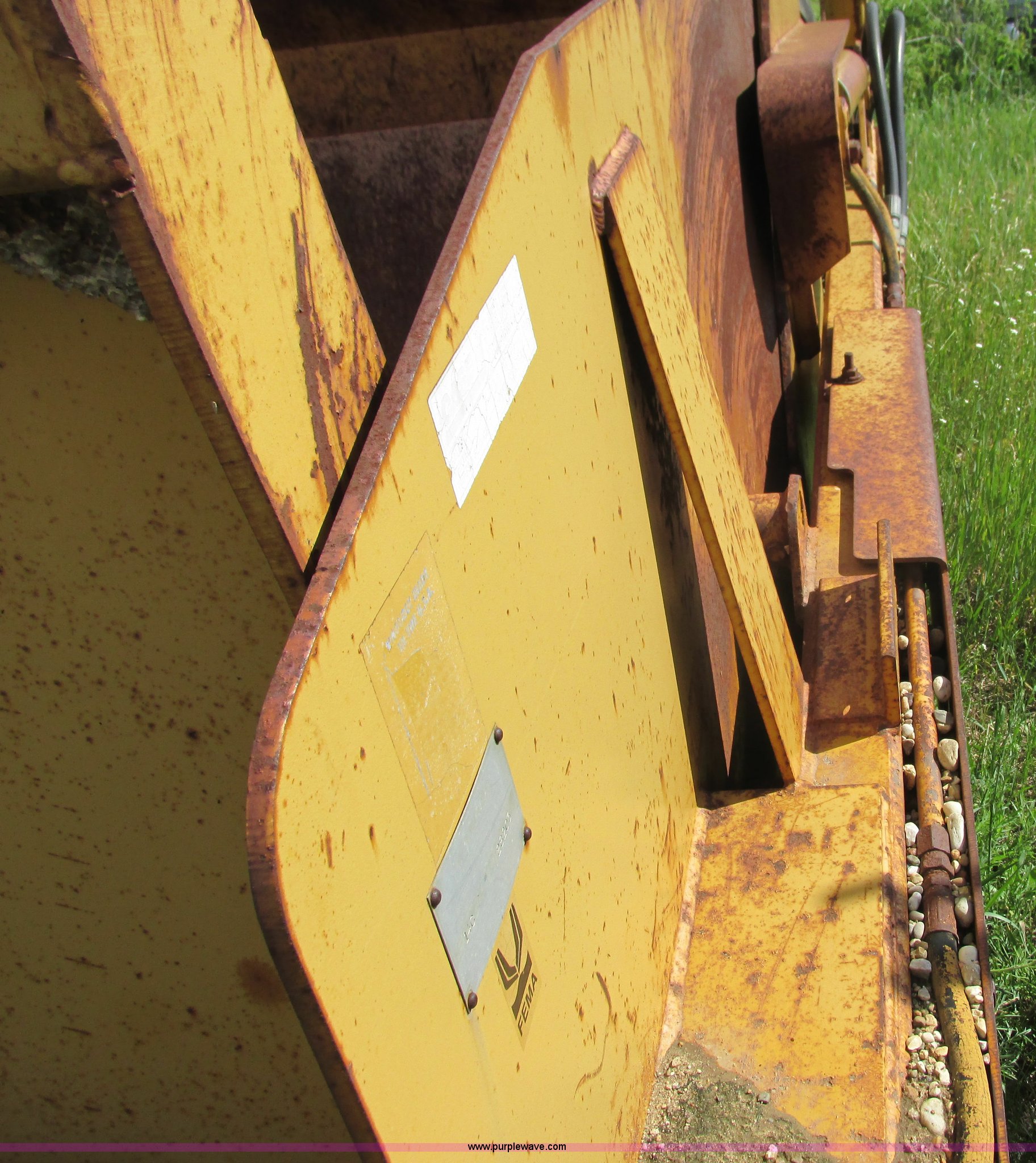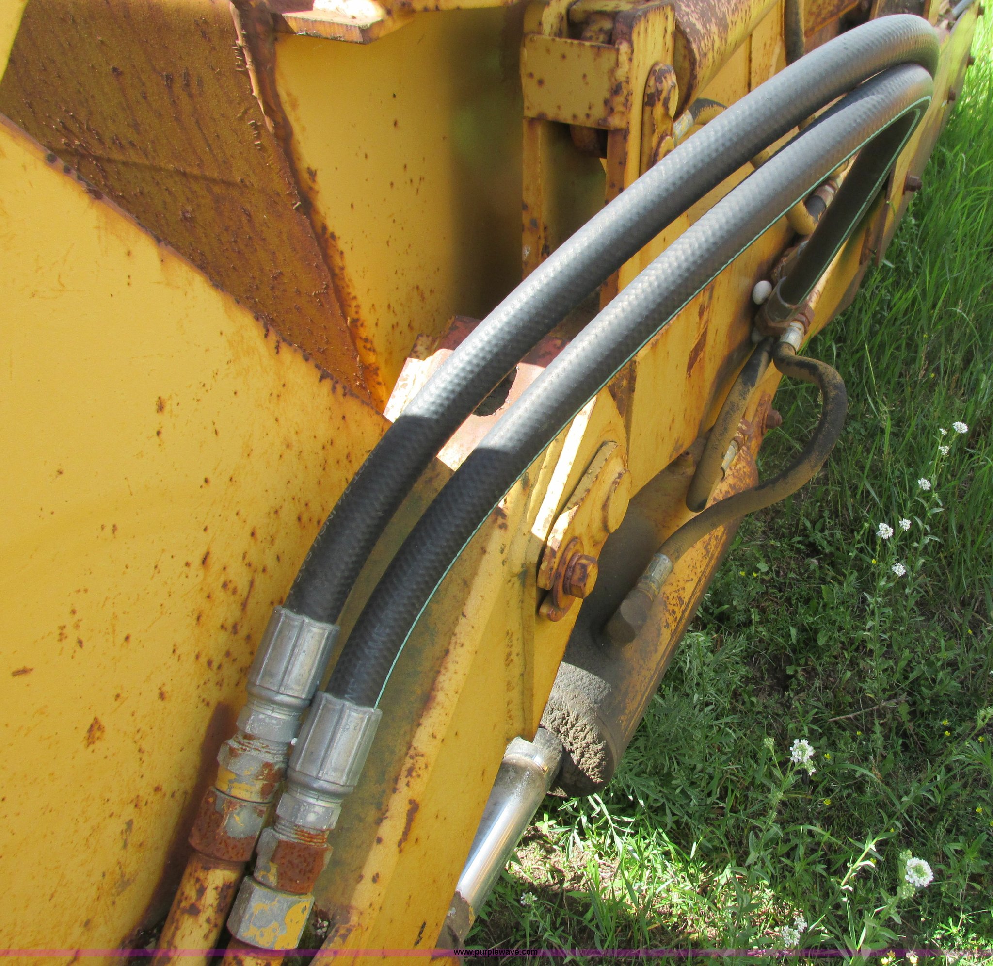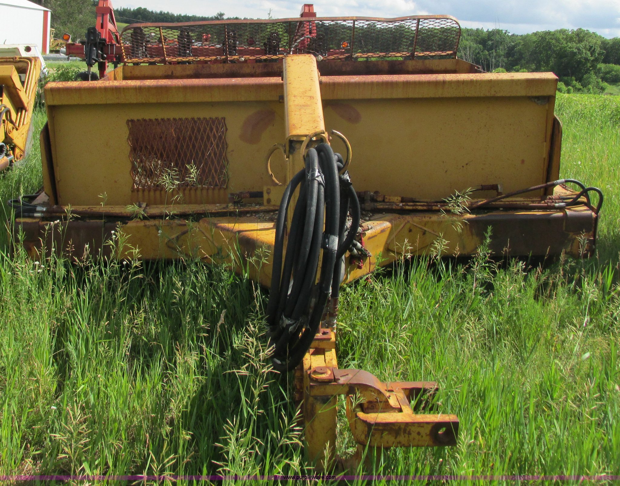 Purple Wave is selling a used Pull Type Scraper in Wisconsin. This item is a Reynolds 14C hydraulic pull scraper with the following: 14 cubic yard capacity, Bolt-on cutting edge, Plumbed to pull in tandem, Rear hitch, (6) 13.00-24TG tires, Serial 28203