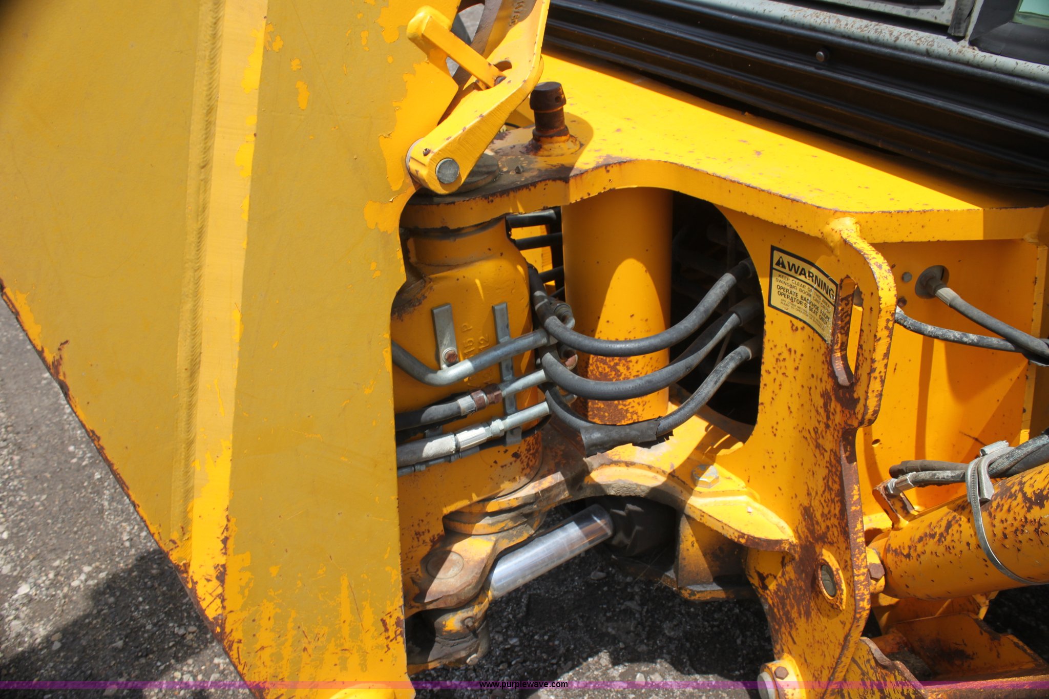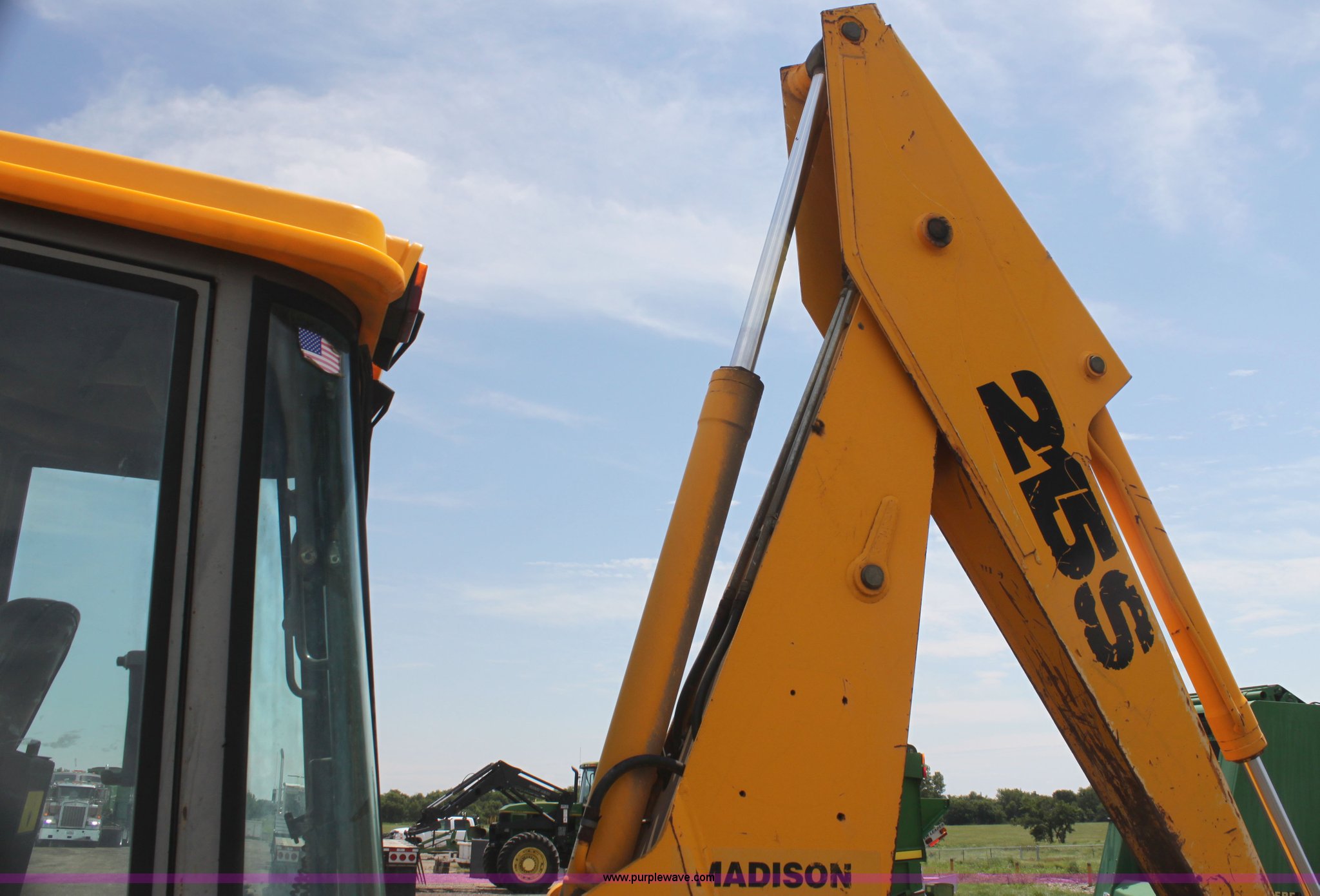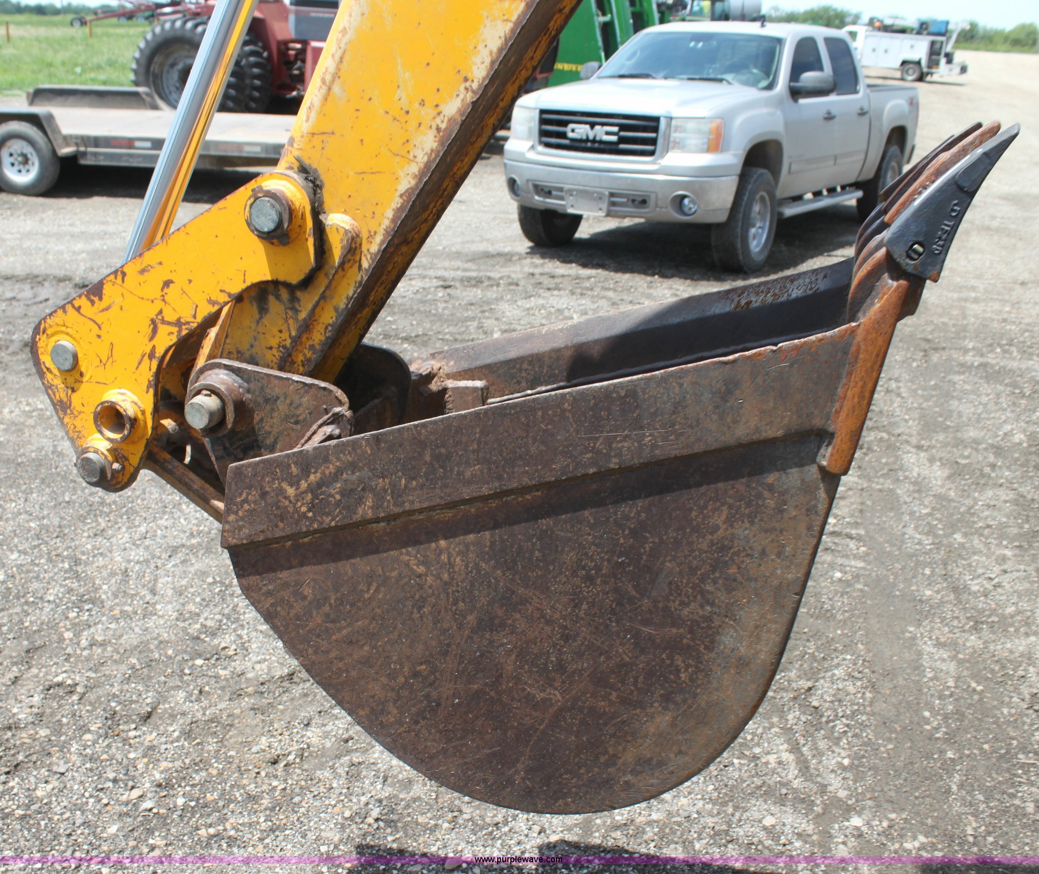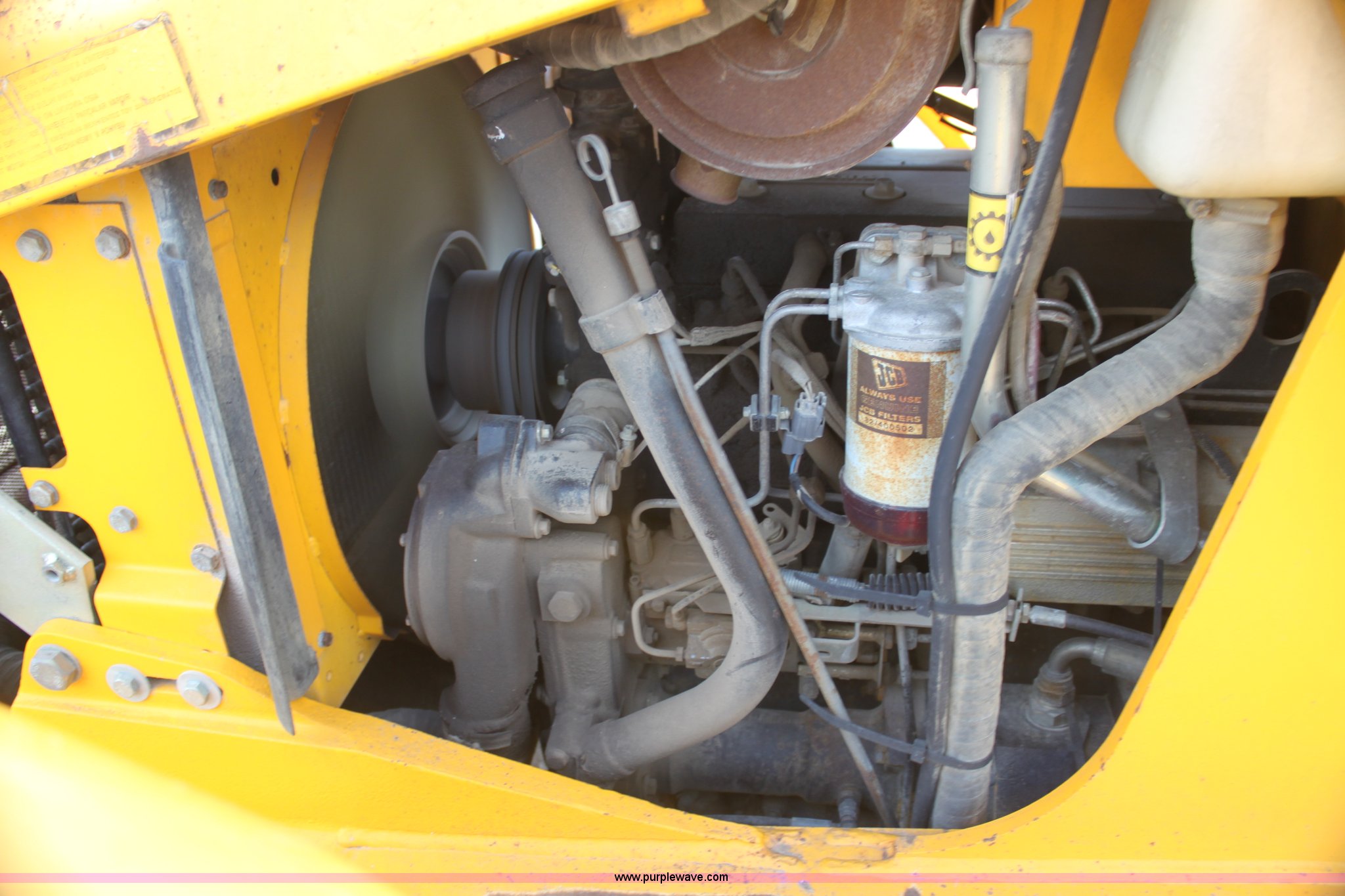Purple Wave is selling a used Tractor Loader Backhoe in Kansas. This item is a 1992 JCB 215S backhoe with the following: 3,419 hours on meter, Four cylinder diesel engine, 100 HP, Serial AB589397, Four speed shuttle shift transmission, Four wheel drive, All wheel steer, Steering selector does not function properly, Unknown issue,, Enclosed cab, AC and heat, Unknown operating condition,, Joystick loader controls, Two stick backhoe controls, Work lights, Four-in-one loader bucket, 90"W, 24" four tooth backhoe bucket, 16'2" digging depth, Hydraulic outriggers, 16.9-24 tires, Serial 215S0CNE403780, Stock# 90602