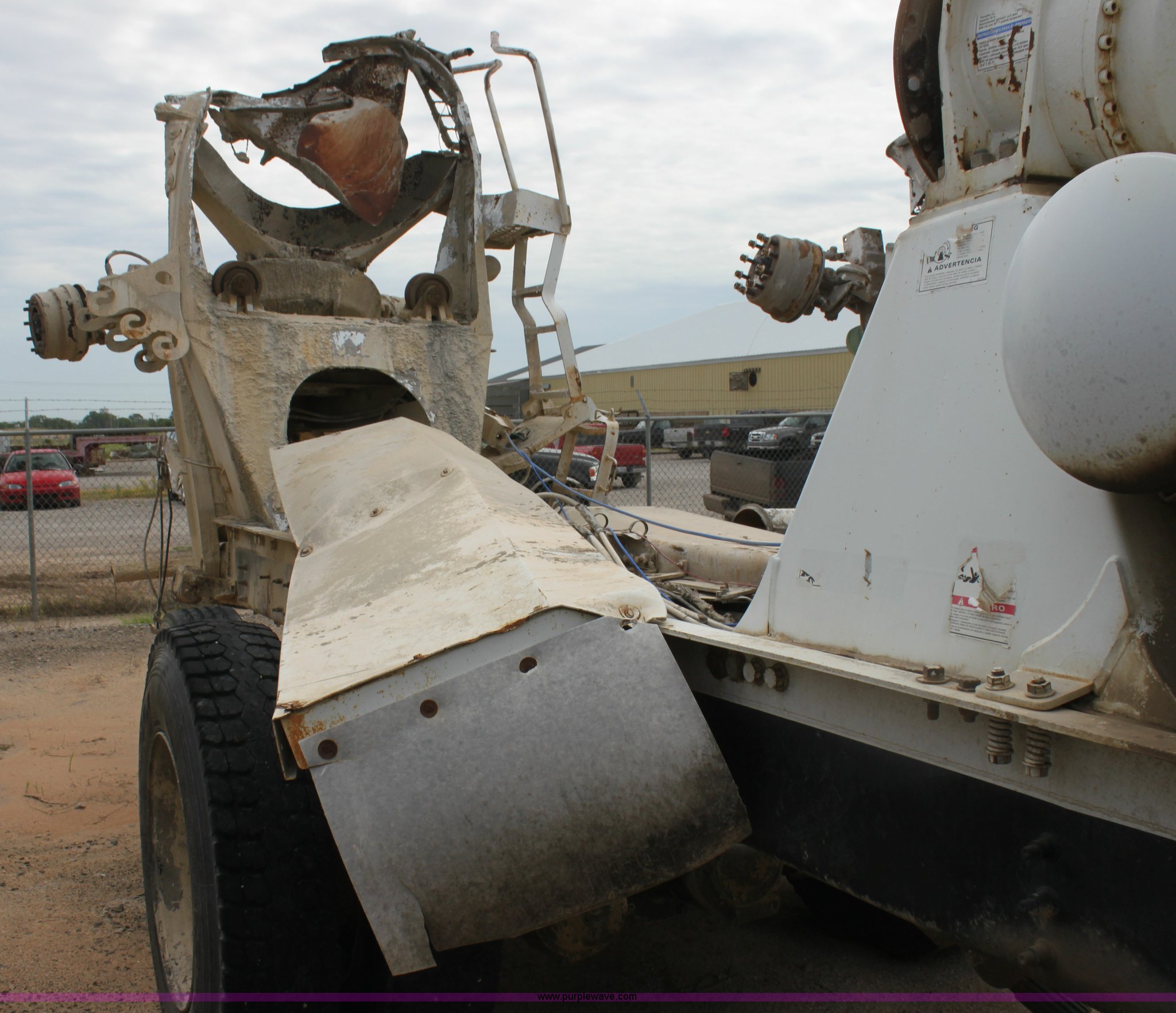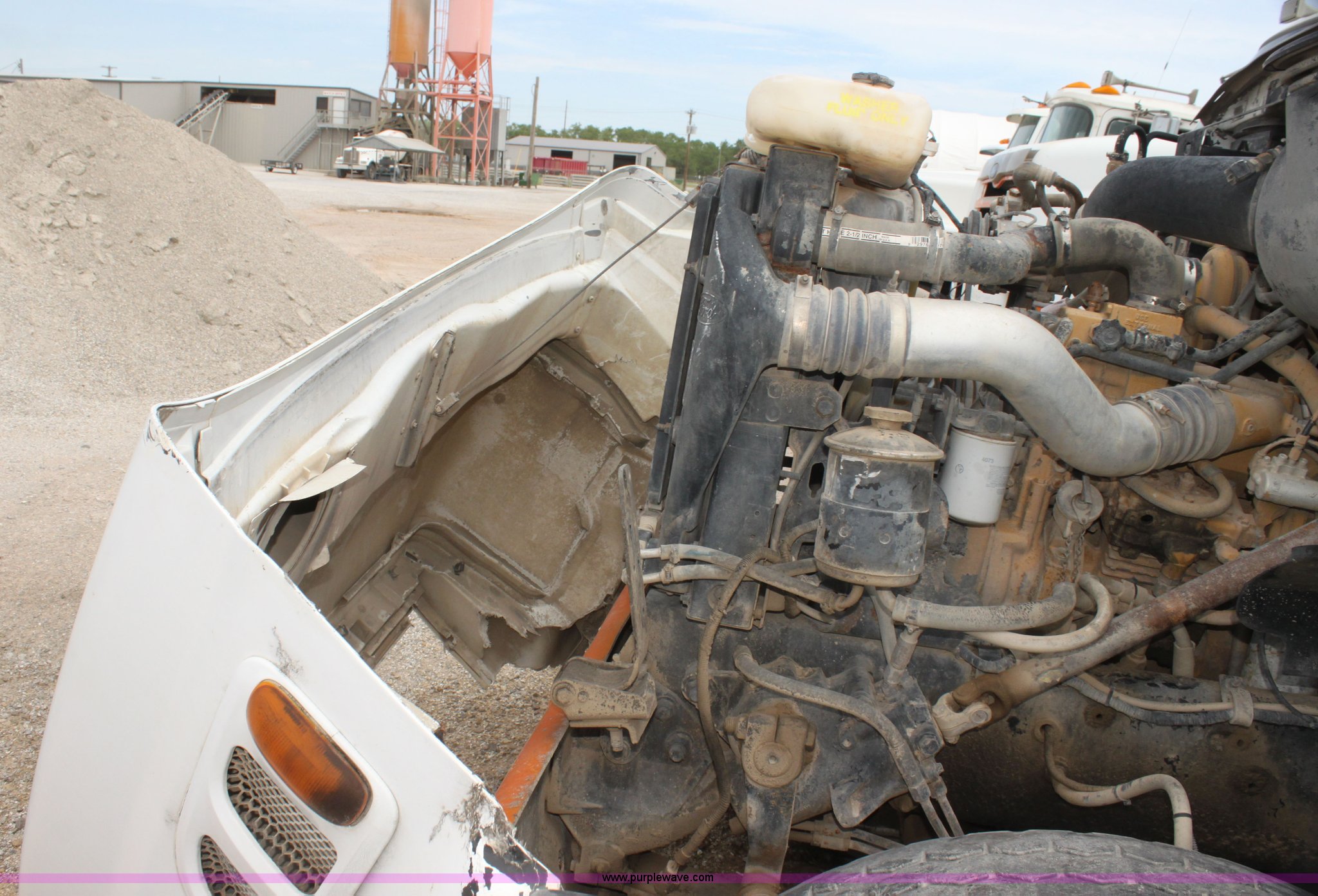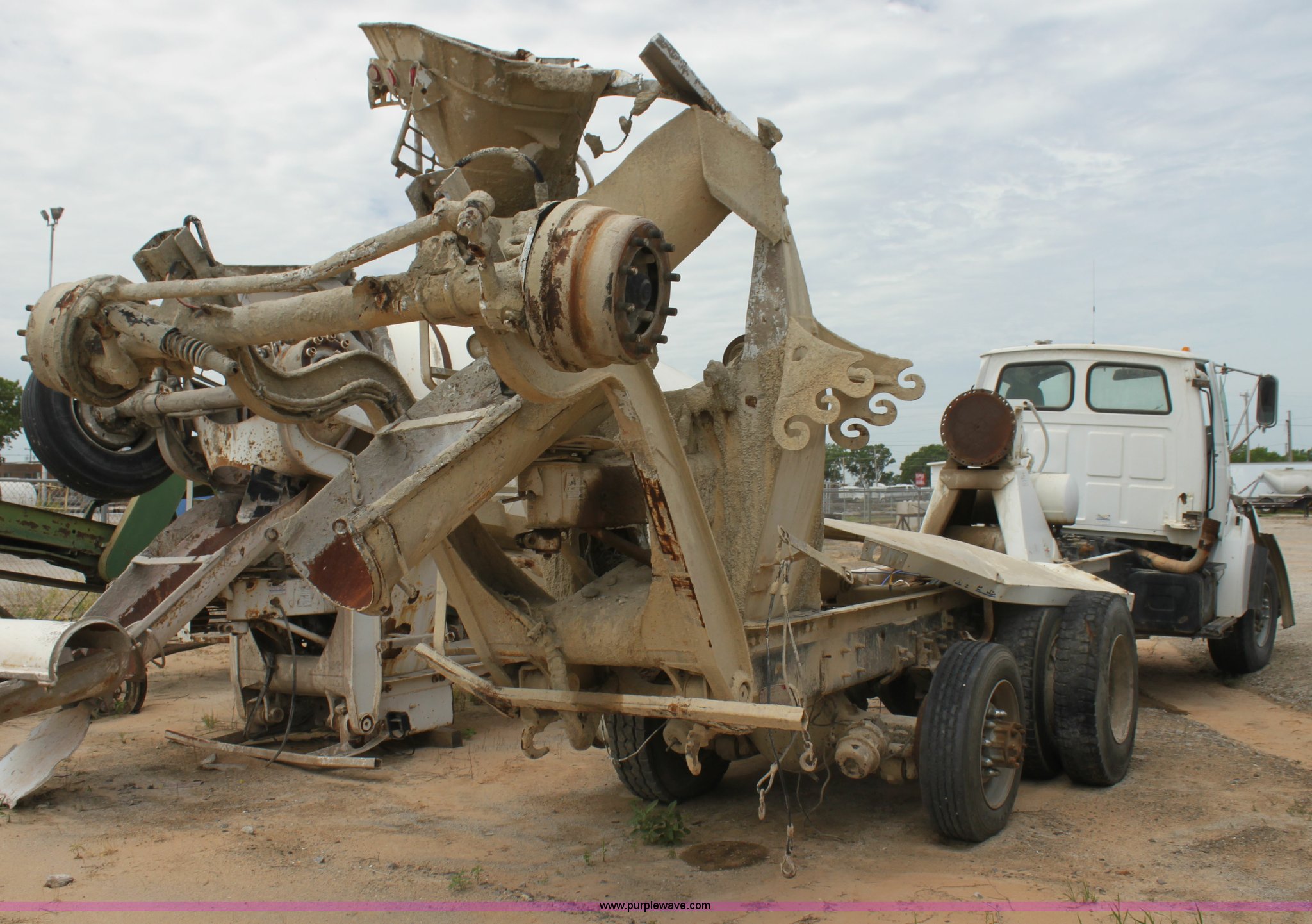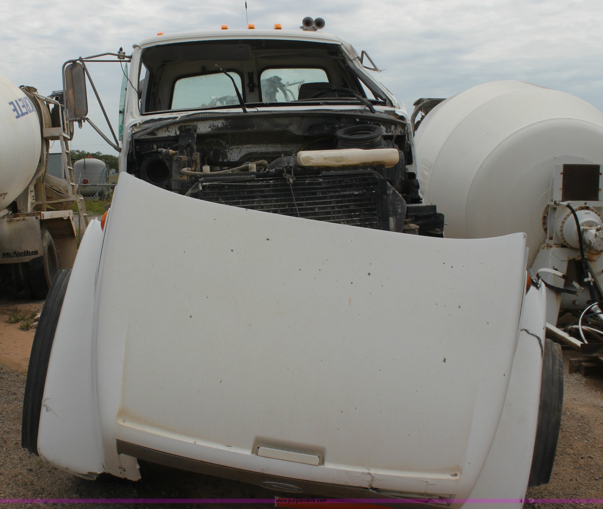 Purple Wave is selling a used Ready Mix or Pump Truck in Oklahoma. This item is a 1999 Sterling L9511 mixer truck with the following: 235,155 miles on odometer, 9,644 hours on meter, Caterpillar 3306 10.5L L6 diesel engine, Nine speed manual transmission, AC and heat, Air suspension seat, PTO, Air brakes, 425/65R22.5 front tires, 11R22.5 rear tires, Vehicle has been rolled over, Vehicle has sat for two years, Parts may be missing, Exhaust stack missing, Interior/exterior cosmetic damage, Decals will be painted over