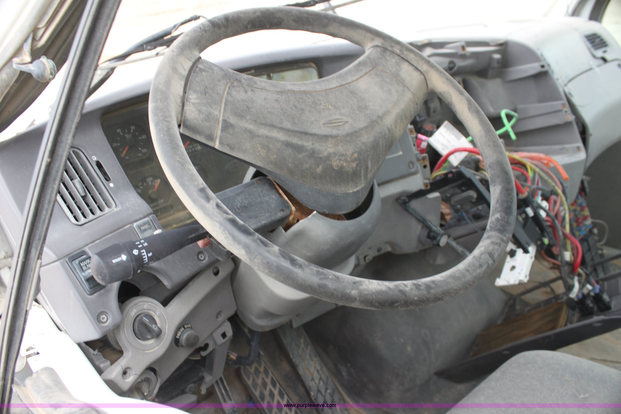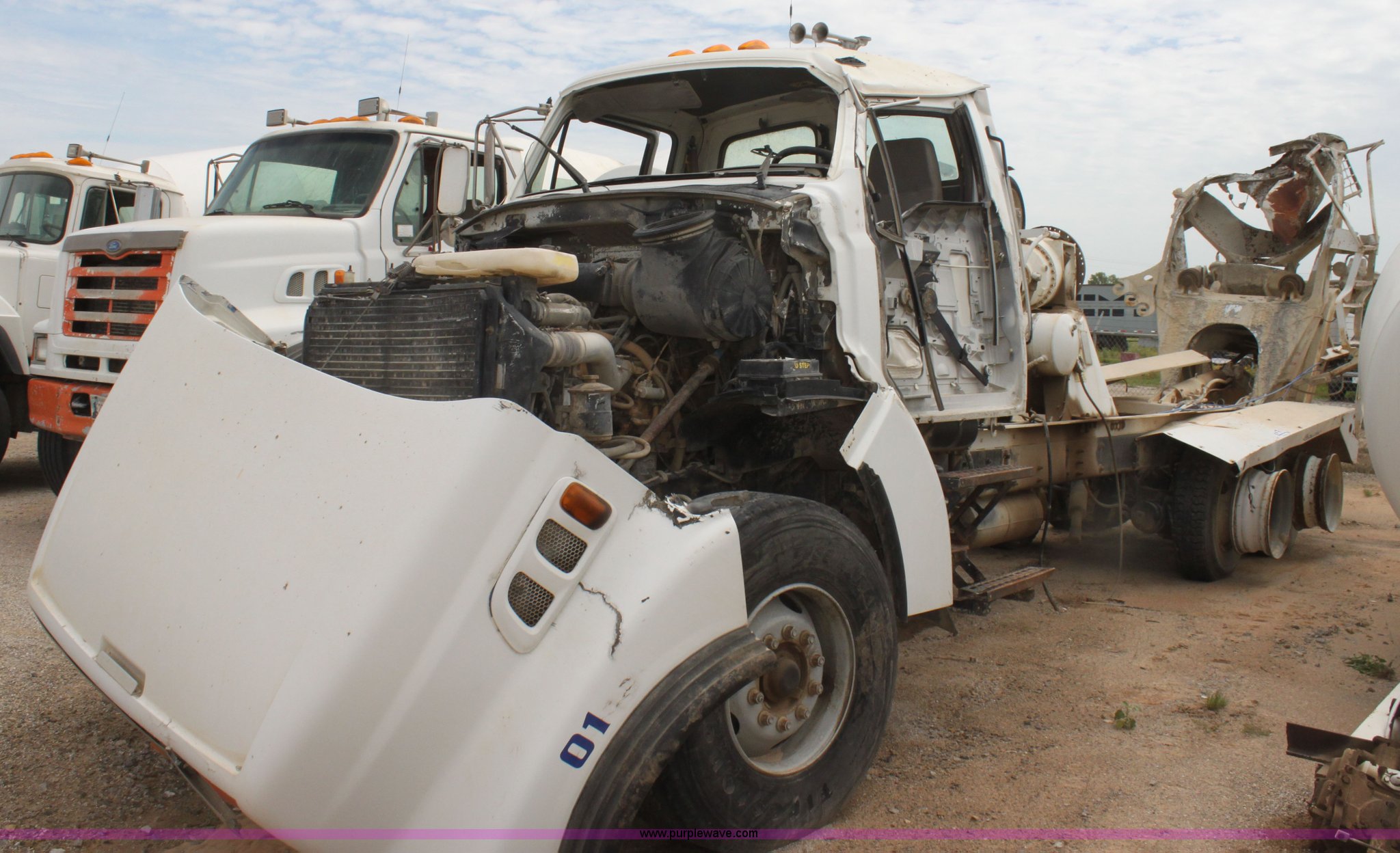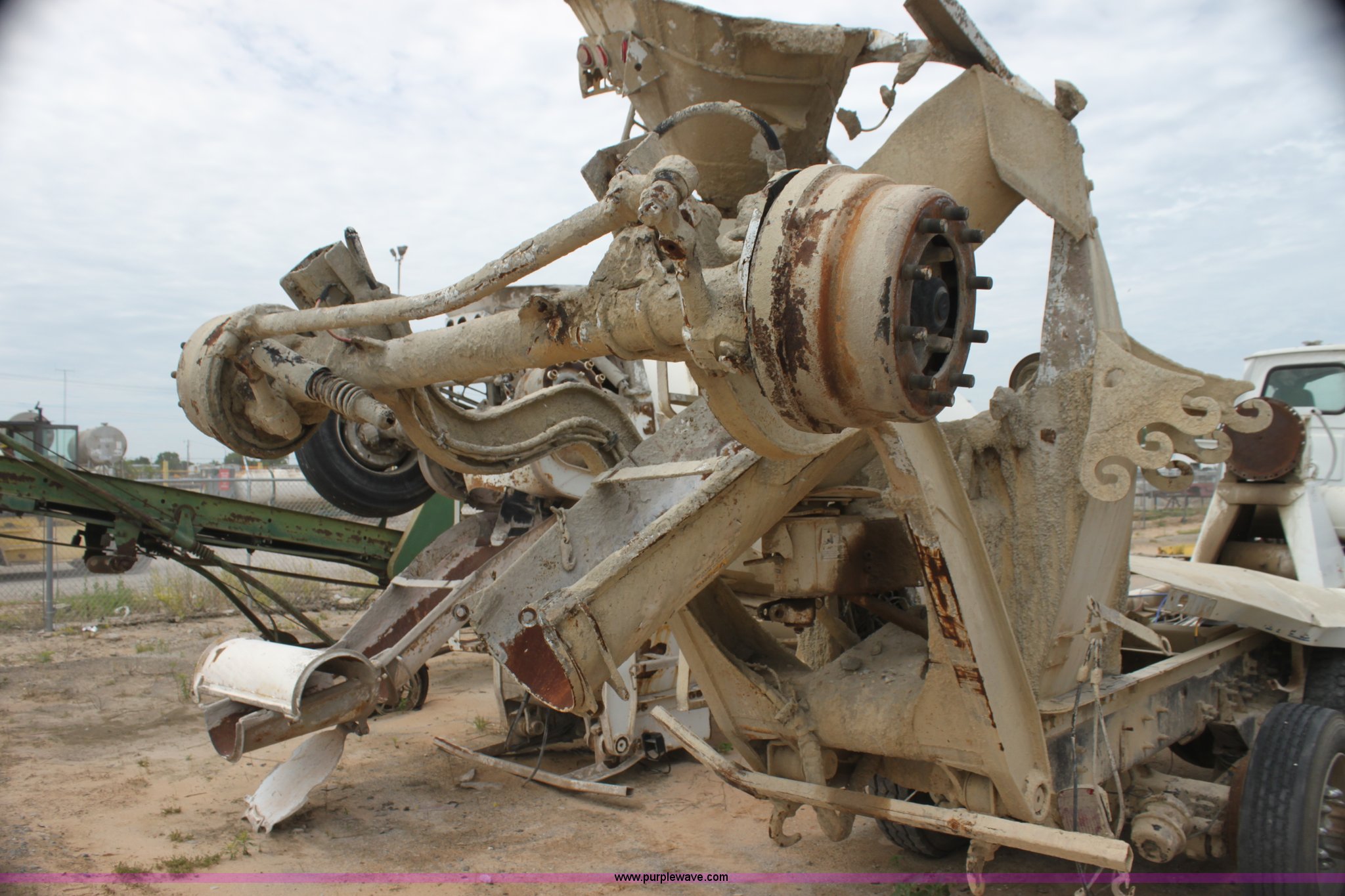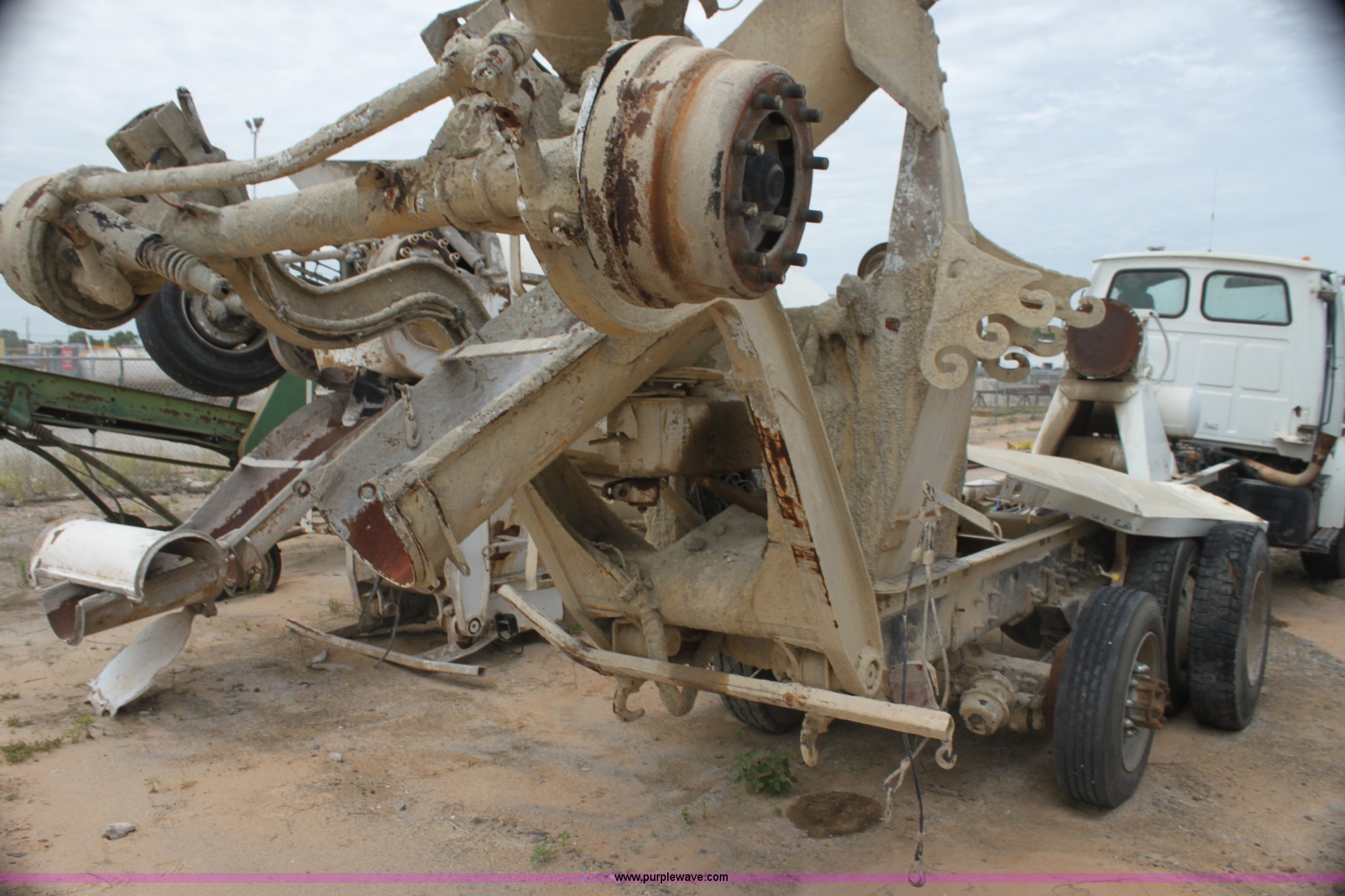 Purple Wave is selling a used Ready Mix or Pump Truck in Oklahoma. This item is a 1999 Sterling L9511 mixer truck with the following: 235,155 miles on odometer, 9,644 hours on meter, Caterpillar 3306 10.5L L6 diesel engine, Nine speed manual transmission, AC and heat, Air suspension seat, PTO, Air brakes, 425/65R22.5 front tires, 11R22.5 rear tires, Vehicle has been rolled over, Vehicle has sat for two years, Parts may be missing, Exhaust stack missing, Interior/exterior cosmetic damage, Decals will be painted over