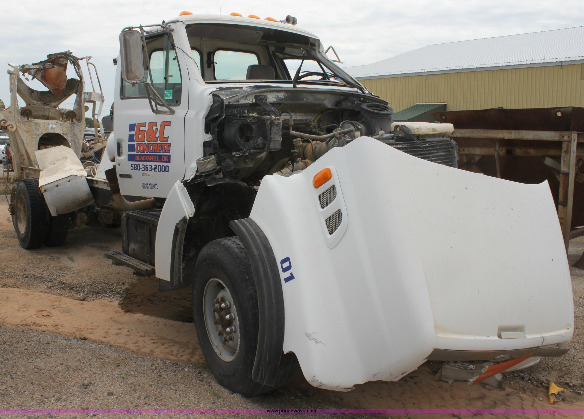 1999 Sterling L9511 mixer truck. 235,155 miles on odometer, 9,644 hours on meter, Caterpillar 3306 10.5L L6 diesel engine, Nine speed manual transmission, AC and heat, Air suspension seat, PTO, Air brakes, 425/65R22.5 front tires, 11R22.5 rear tires, Vehicle has been rolled over, Vehicle has sat for two years, Parts may be missing, Exhaust stack missing, Interior/exterior cosmetic damage, Decals will be painted over. Title distribution may be delayed up to 30 days from verification of funds. 2FZNNWYB5XAB94237. G&C Concrete. Blackwell, OK 74631