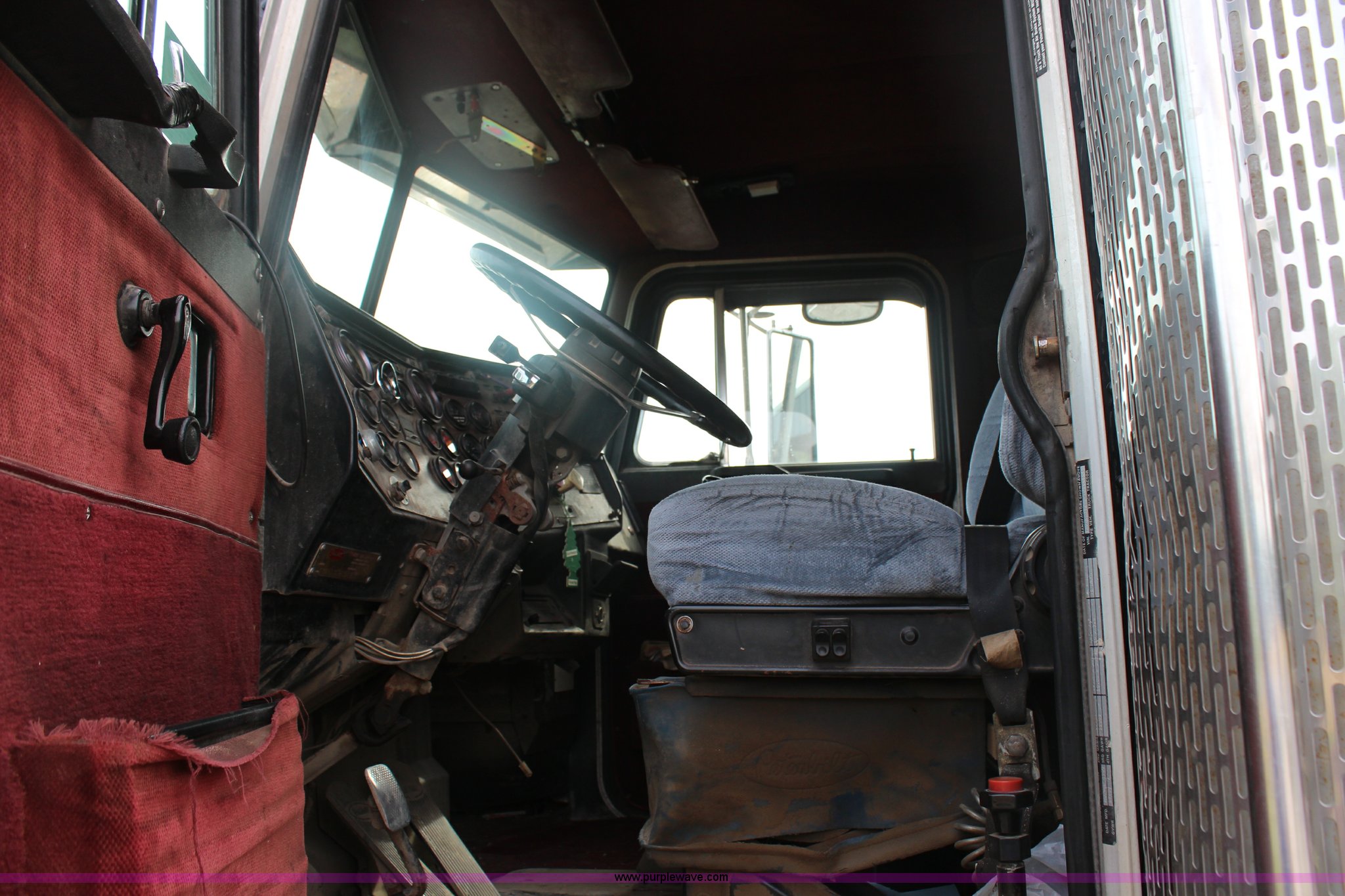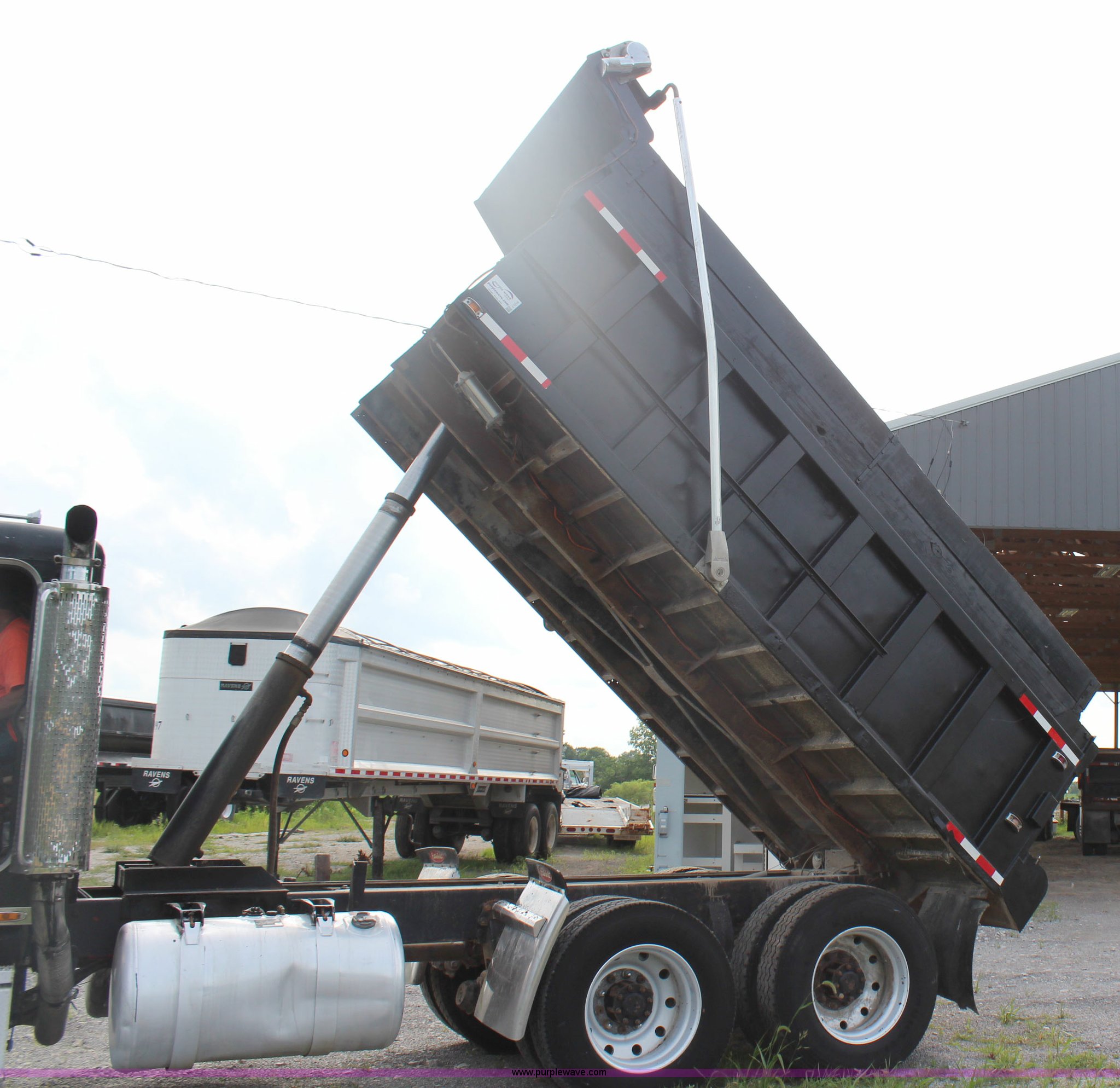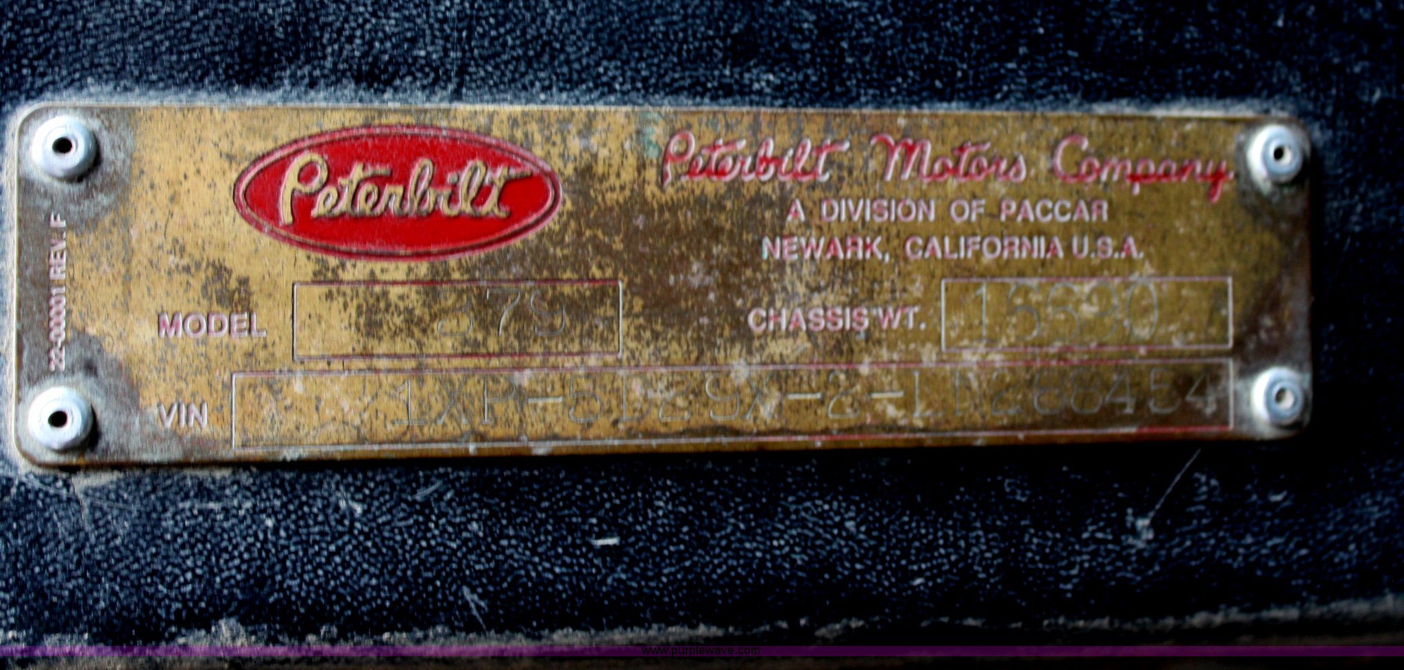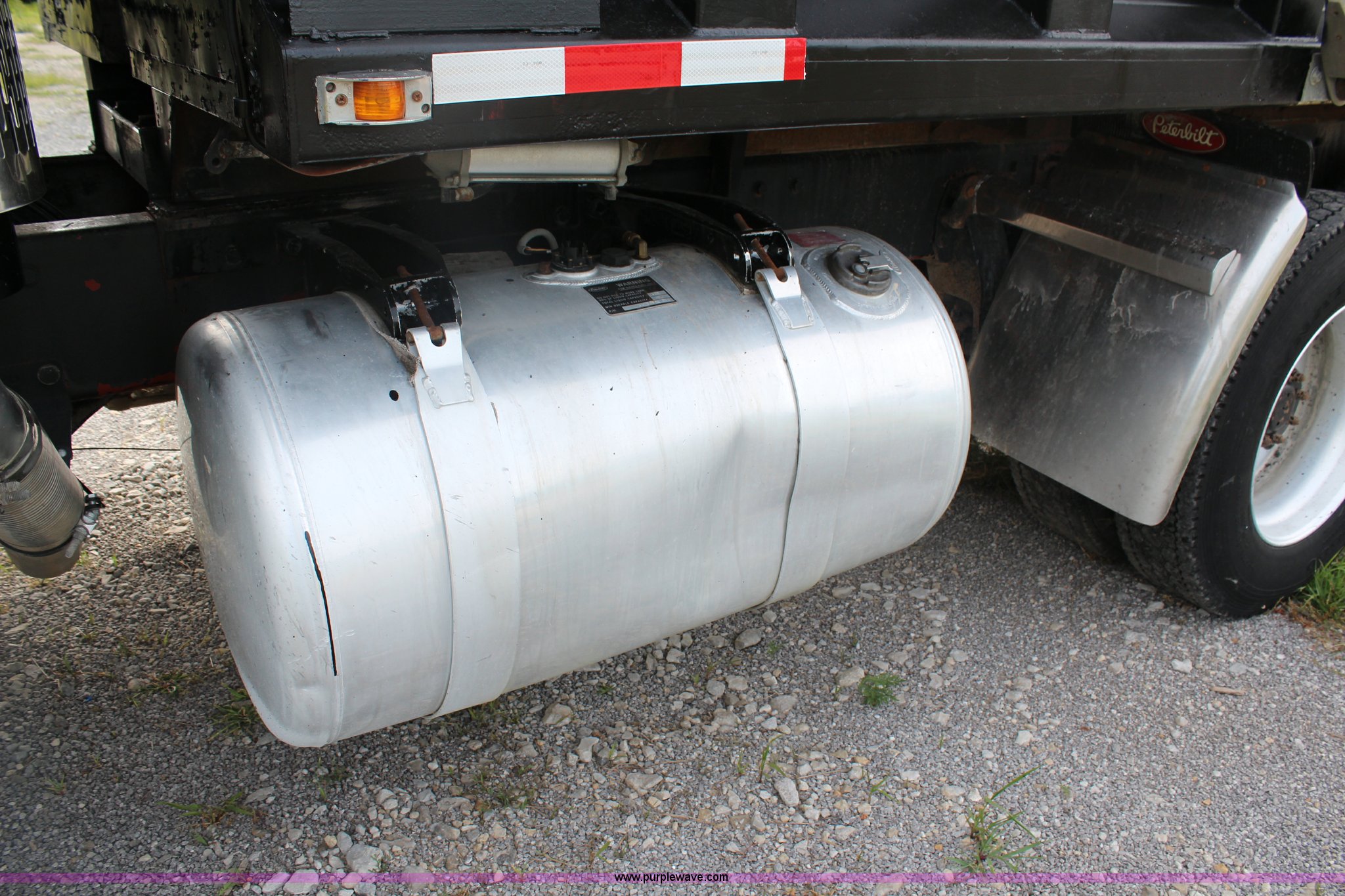 Purple Wave is selling a used Construction Dump Truck in Kansas. This item is a 1990 Peterbilt 379 dump truck with the following: 447,890 miles on odometer, Cummins Big Cam 400 14.0L L6 diesel engine, Eaton Fuller 10 speed manual transmission, Twin screw, AC and heat, Tilt, AM/FM/CD, Air suspension seat, PTO, 15'L dump bed, Air operated end gate, Single ram three stage hoist, Electric rollover tarp, Asphalt lip, Chip bar, 110 gallon fuel tank, Stainless steel fenders, Air suspension, Air brakes, Jake brake, Aluminum wheels, 315/80R22.5 front tires, 11R24.5 rear tires, GVWR 50,000 lbs, FAWR 12,000 lbs, IAWR 19,000 lbs, RAWR 19,000 lbs
