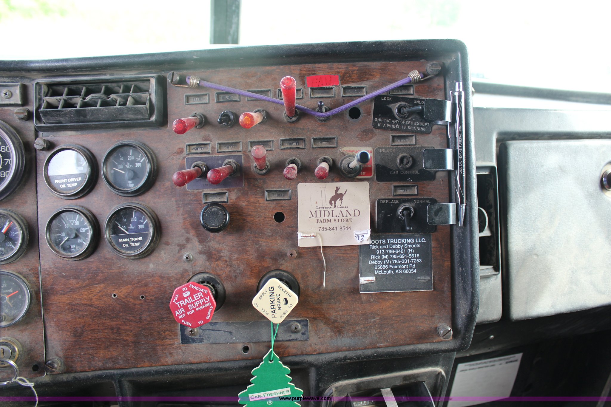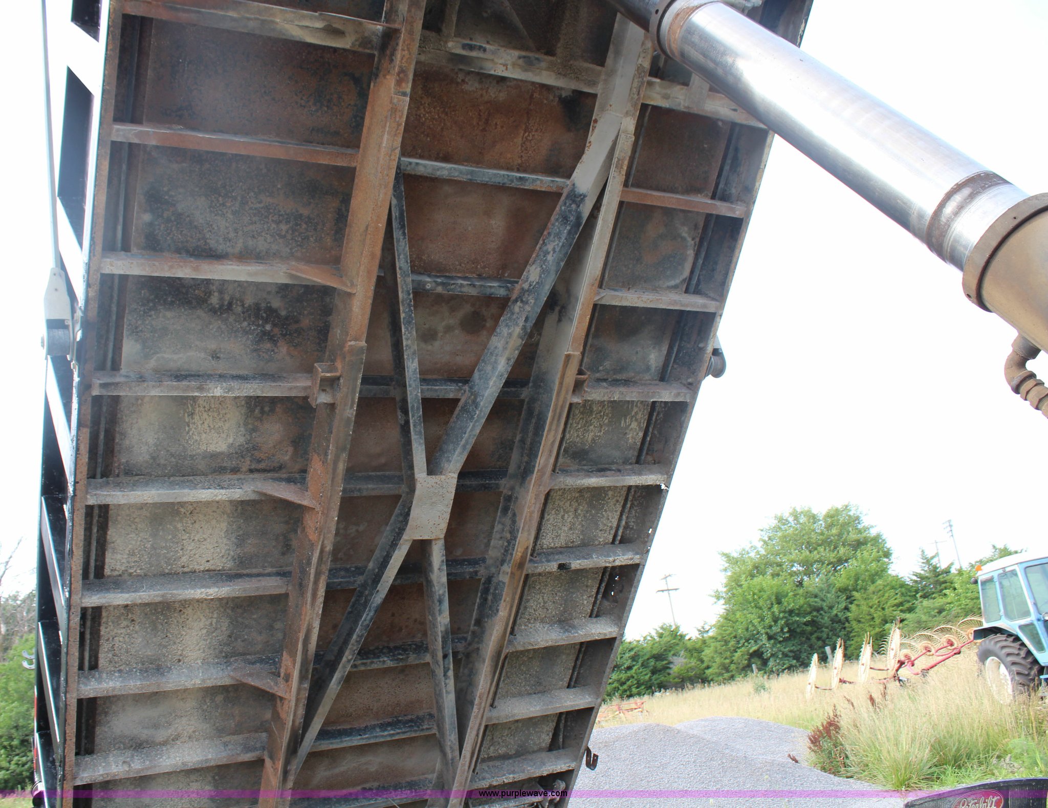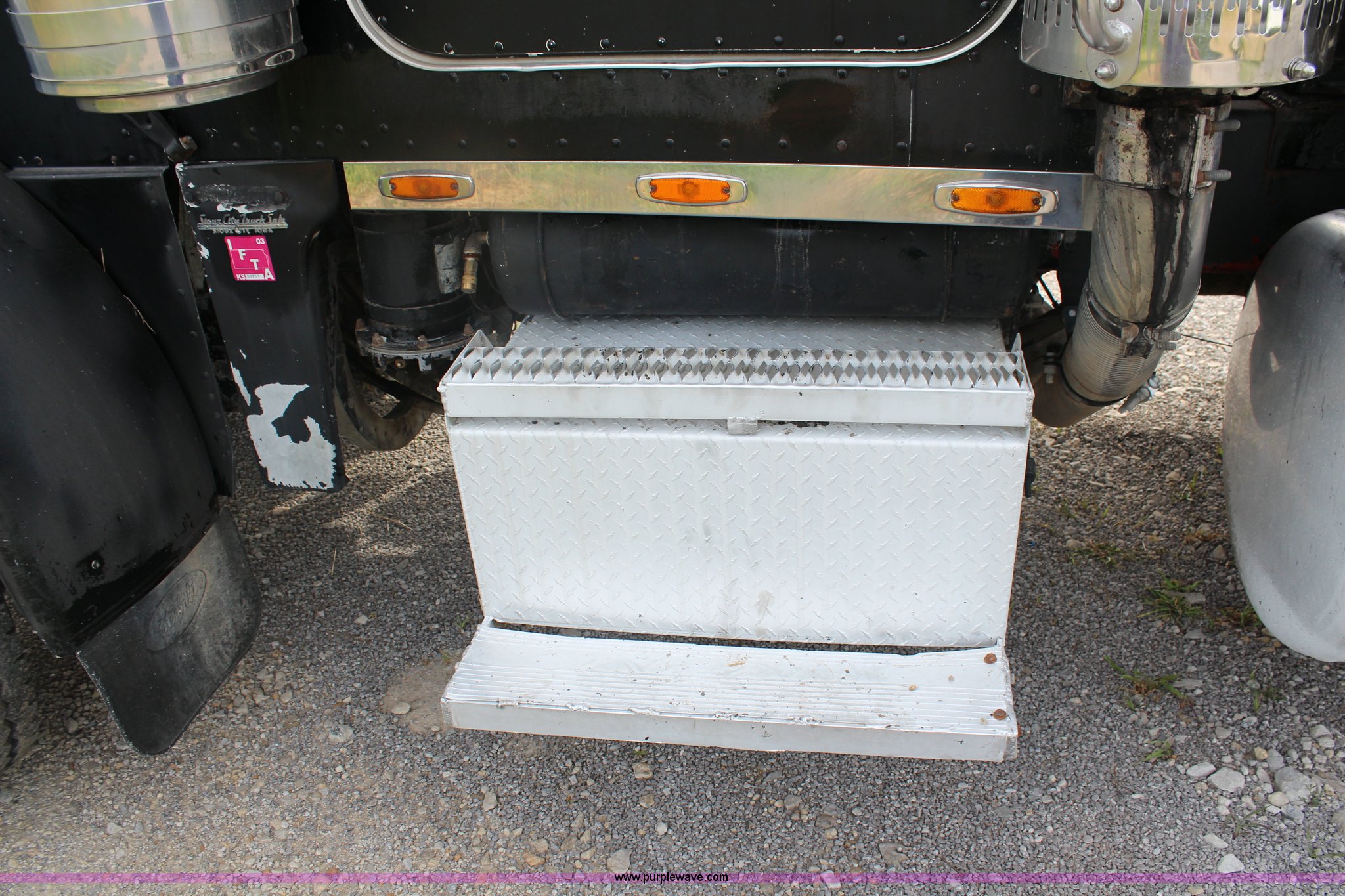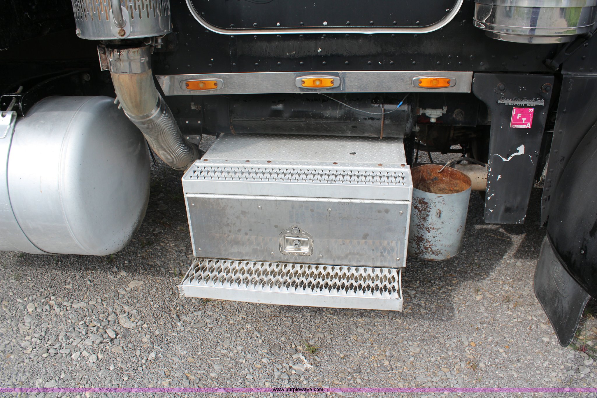 Purple Wave is selling a used Construction Dump Truck in Kansas. This item is a 1990 Peterbilt 379 dump truck with the following: 447,890 miles on odometer, Cummins Big Cam 400 14.0L L6 diesel engine, Eaton Fuller 10 speed manual transmission, Twin screw, AC and heat, Tilt, AM/FM/CD, Air suspension seat, PTO, 15'L dump bed, Air operated end gate, Single ram three stage hoist, Electric rollover tarp, Asphalt lip, Chip bar, 110 gallon fuel tank, Stainless steel fenders, Air suspension, Air brakes, Jake brake, Aluminum wheels, 315/80R22.5 front tires, 11R24.5 rear tires, GVWR 50,000 lbs, FAWR 12,000 lbs, IAWR 19,000 lbs, RAWR 19,000 lbs