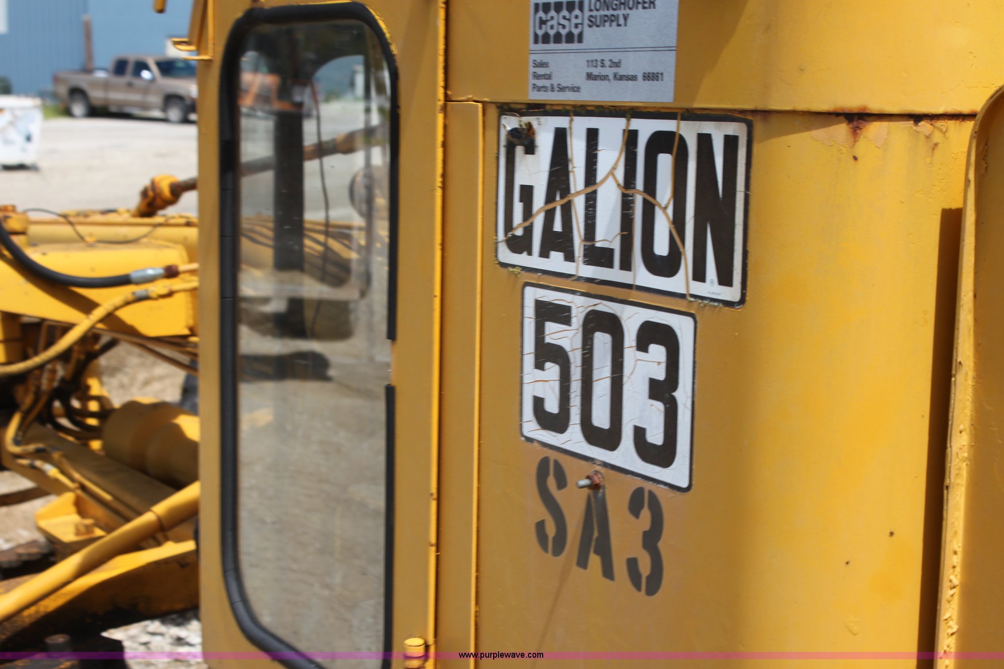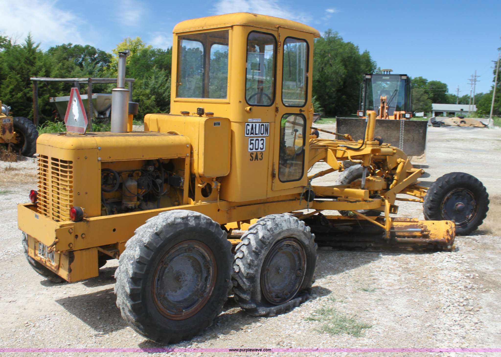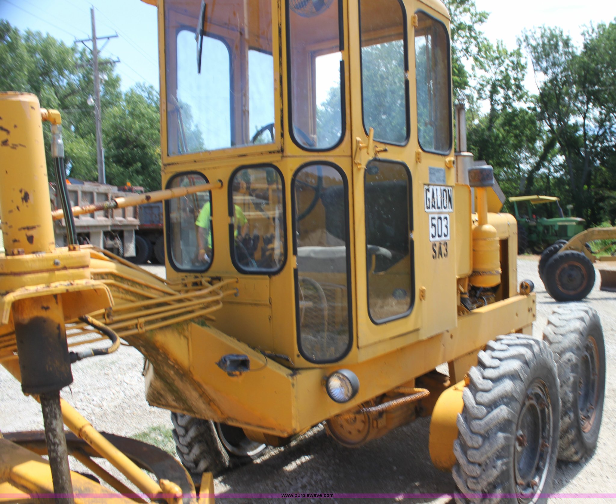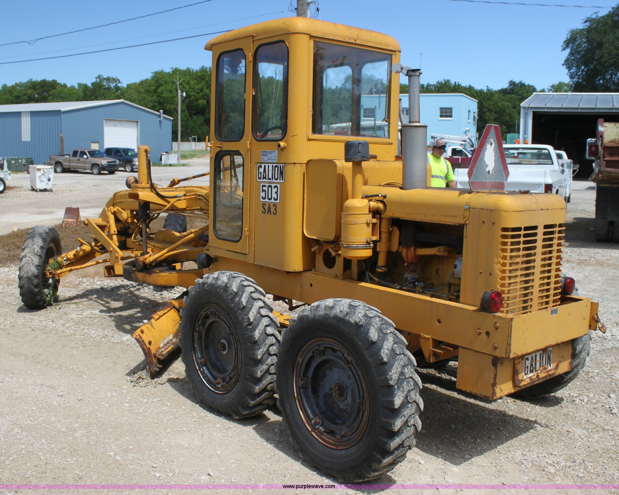 Purple Wave is selling a used Motor Grader in Kansas. This item is a Galion 503 motor grader with the following: 5,424 hours on meter, Six cylinder gas engine, Enclosed cab, 10' moldboard, Front scarifier, Front wheel tilt, 8.25-20 tires, Has sat for several years