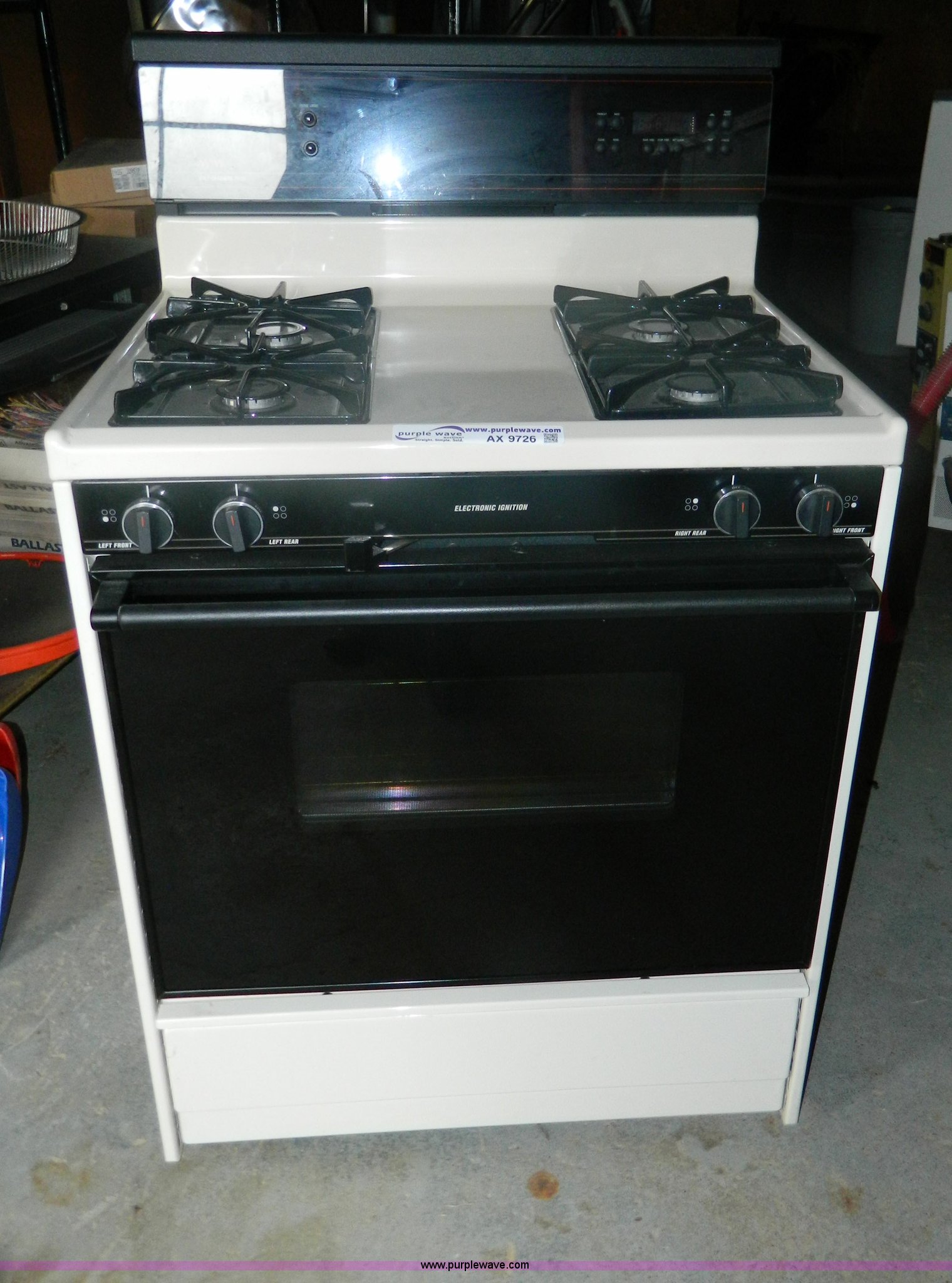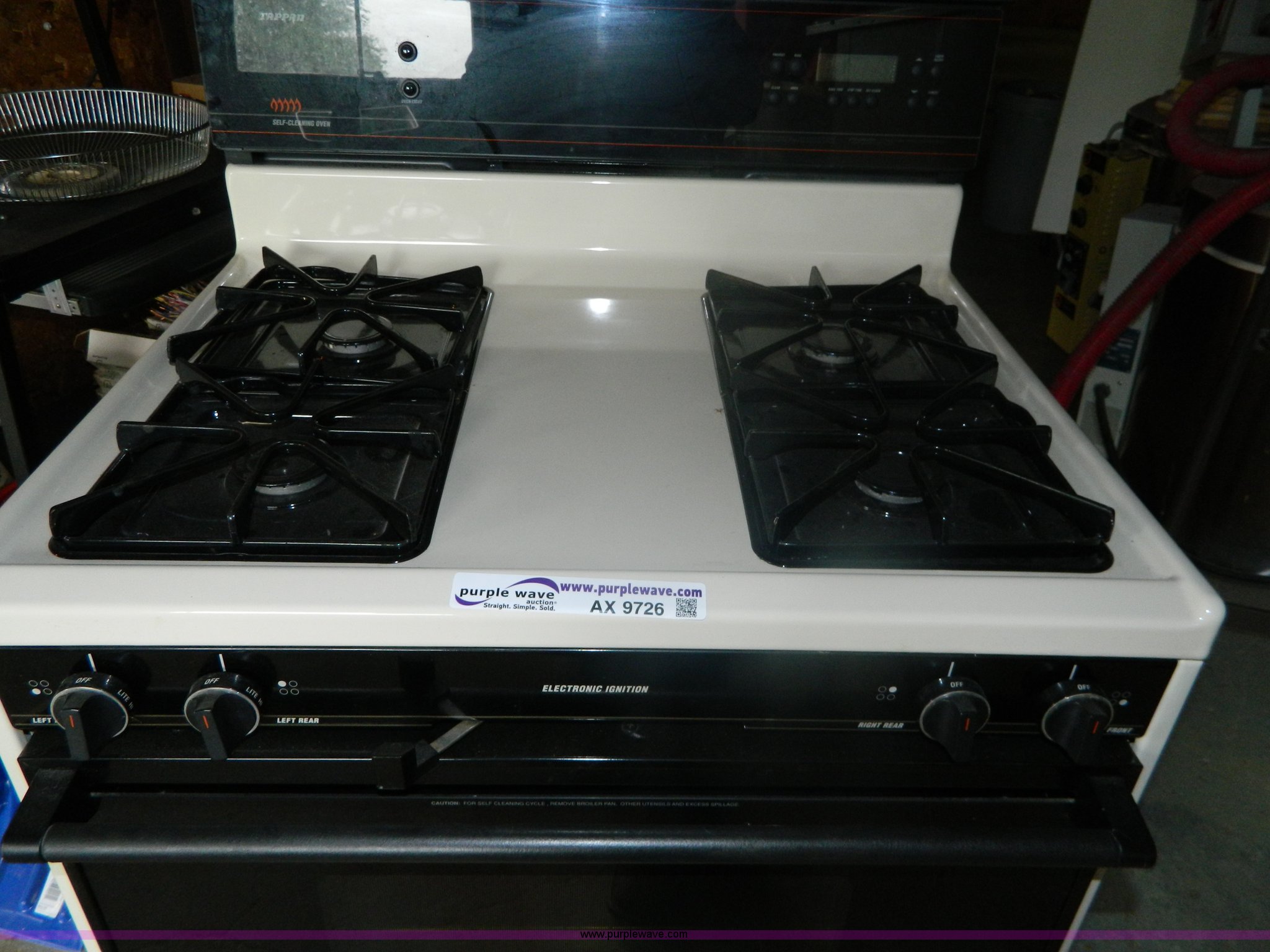 Purple Wave is selling a used Restaurant Equip. in Kansas. This item is a Tappen natural gas range with the following: Self-cleaning oven, Electronic ignition