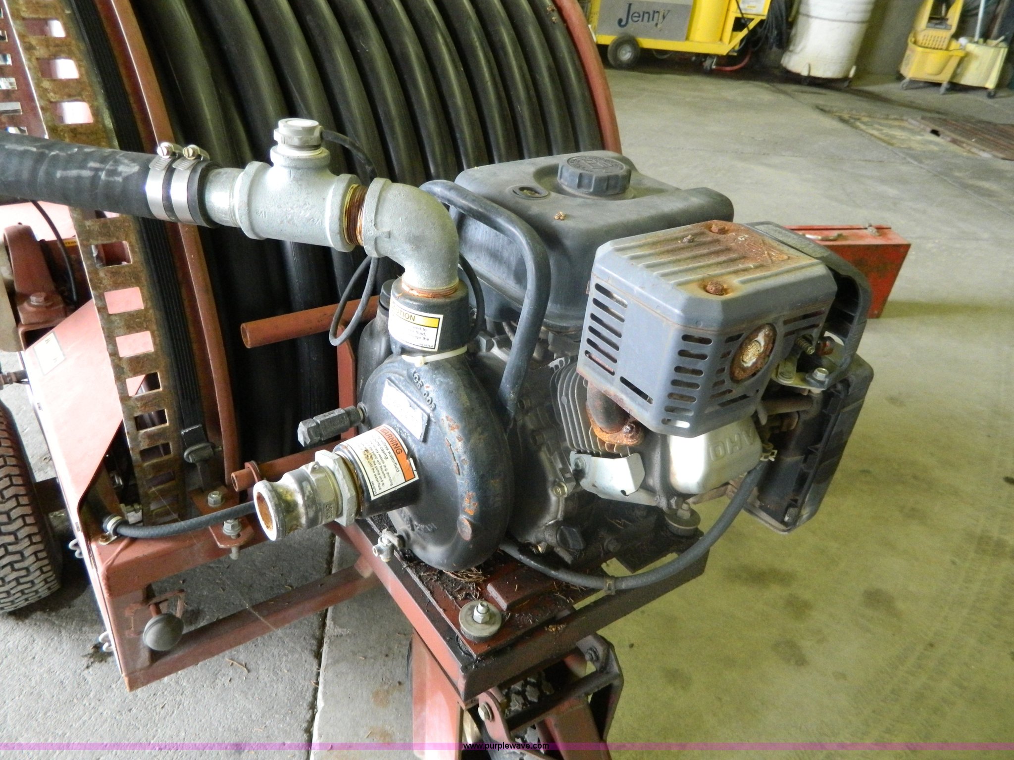 Purple Wave is selling a used Hose Reel in Kansas. This item is a Kifco B140 water reel with the following: Briggs & Stratton 115432 gas engine, Quick coupling, Approx. 300' of hose, Monarch ACGF-5V pump