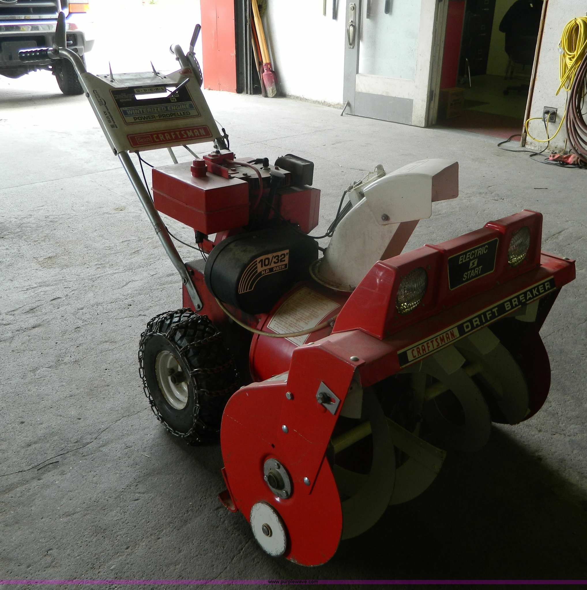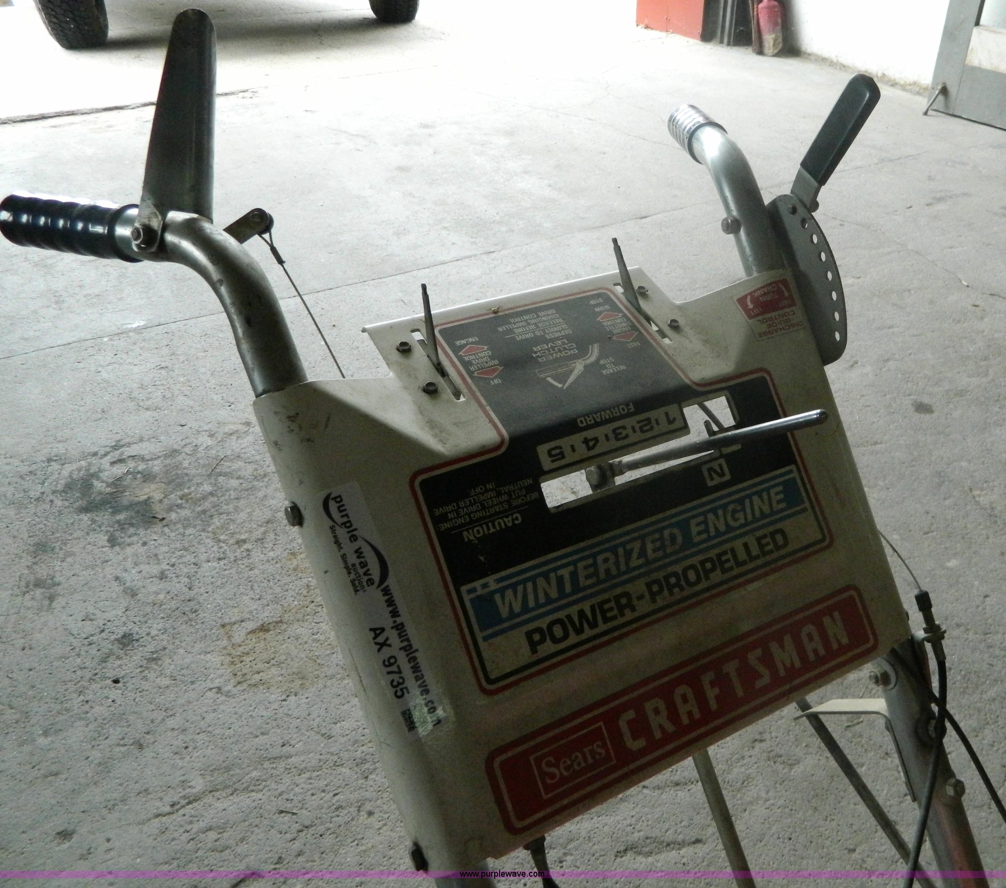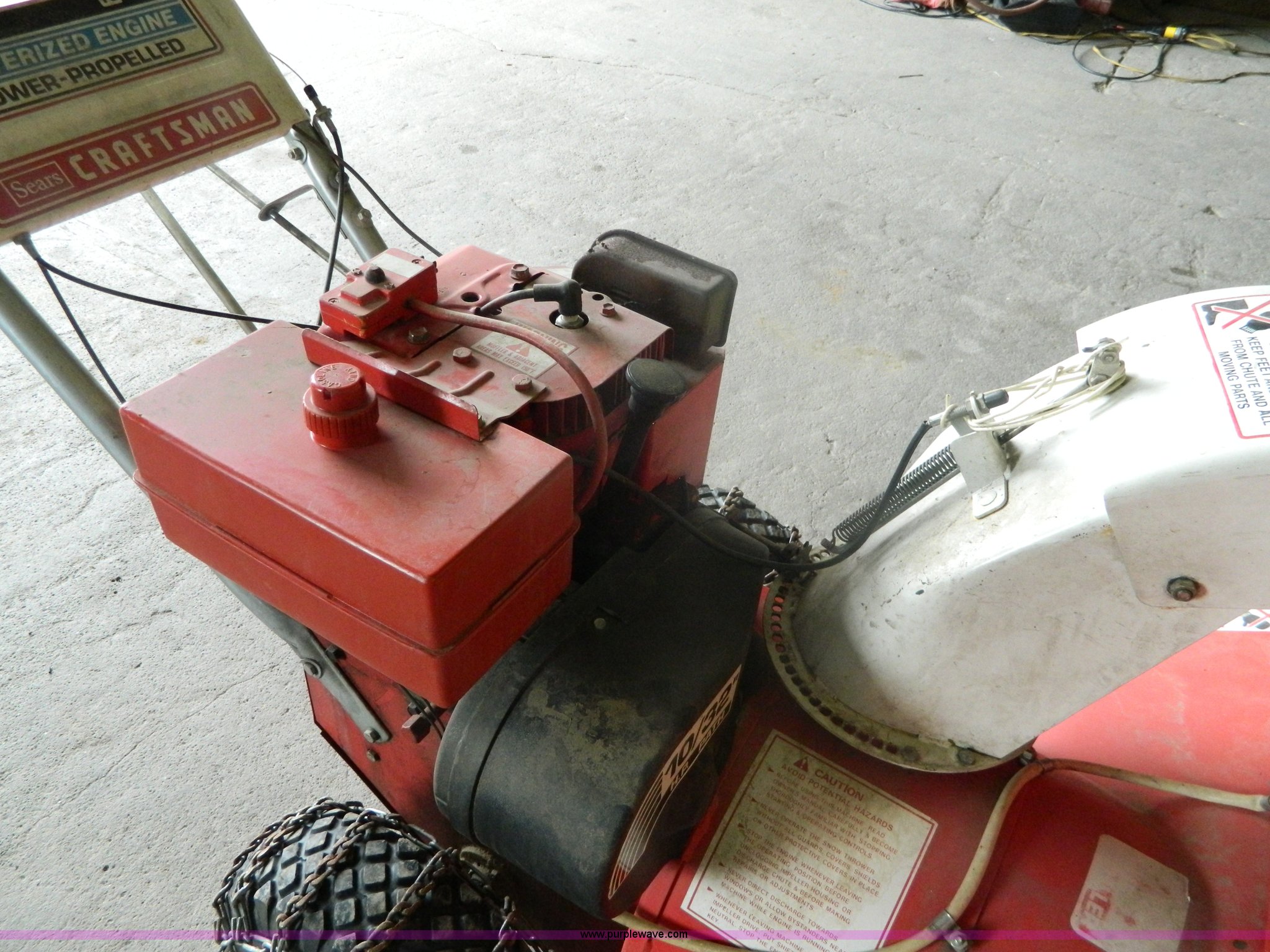 Purple Wave is selling a used Commercial Turf Mower in Kansas. This item is a Sears 32" snow blower with the following: 10 HP gas engine, Five speeds, Tire chains, Serial 536.918500