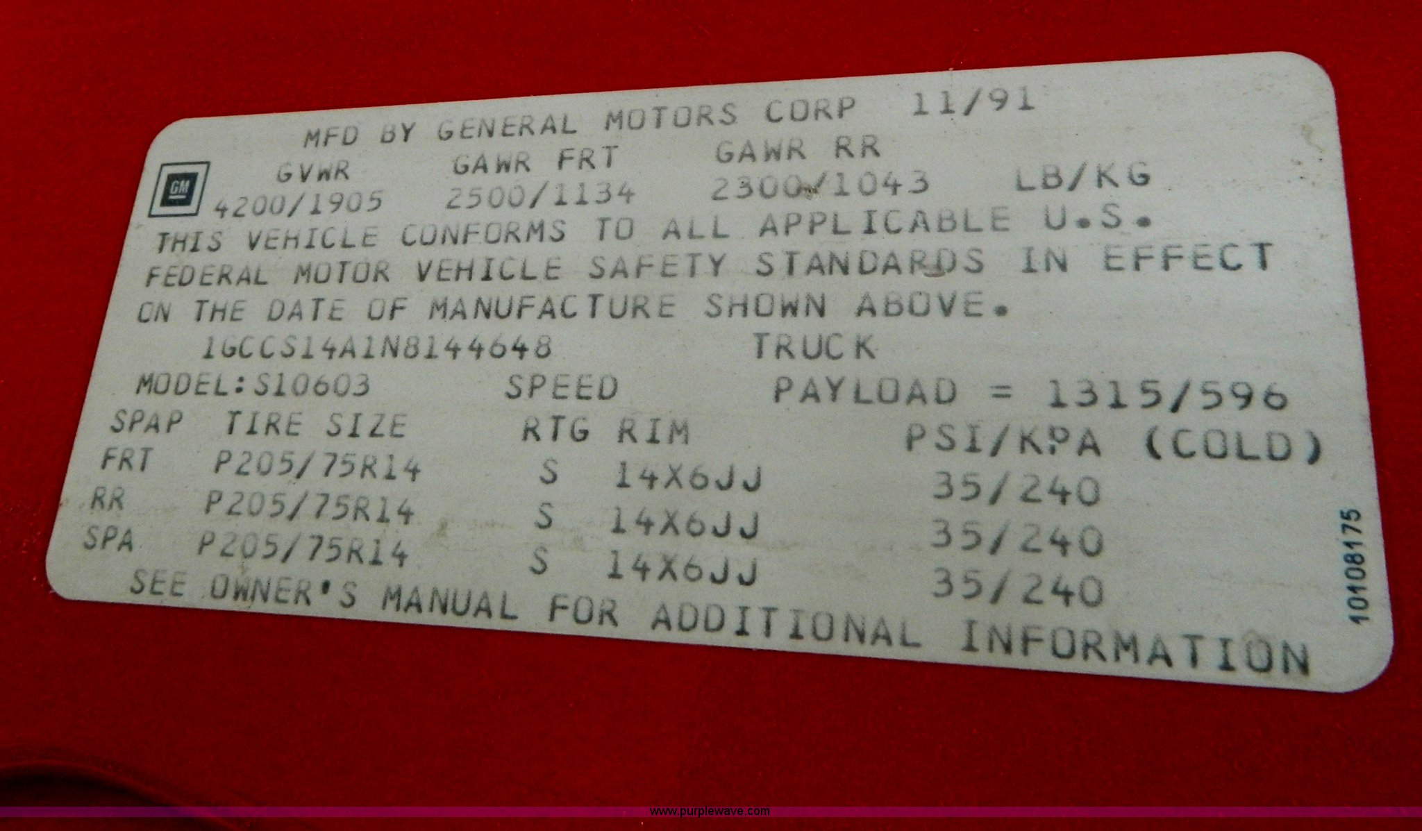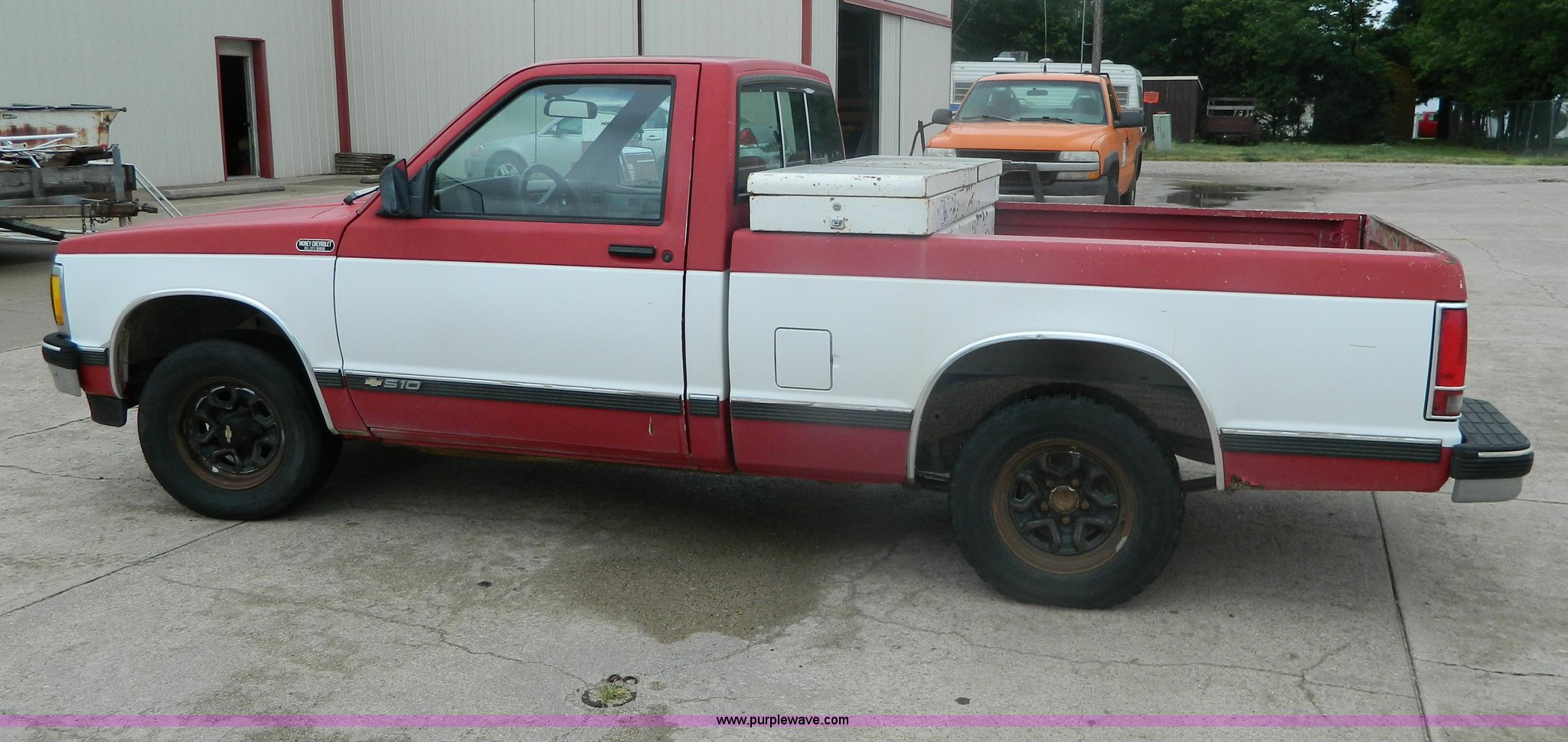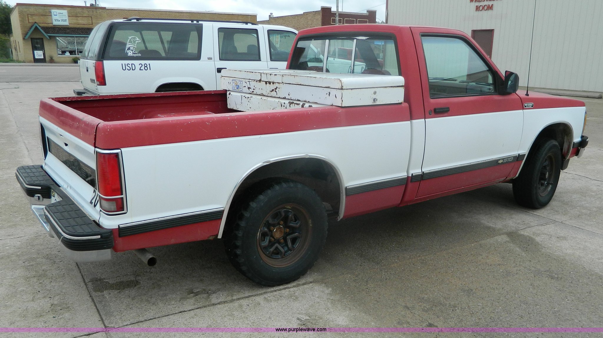 Purple Wave is selling a used Compact Pickup or Van in Kansas. This item is a 1992 Chevrolet S10 pickup truck with the following: 62,402 miles on odometer, 2.5L L4 OHV 8V gas engine, Five speed manual transmission, AC and heat, AM/FM/cassette, Manual windows and locks, Cloth interior, P205/75R14 tires