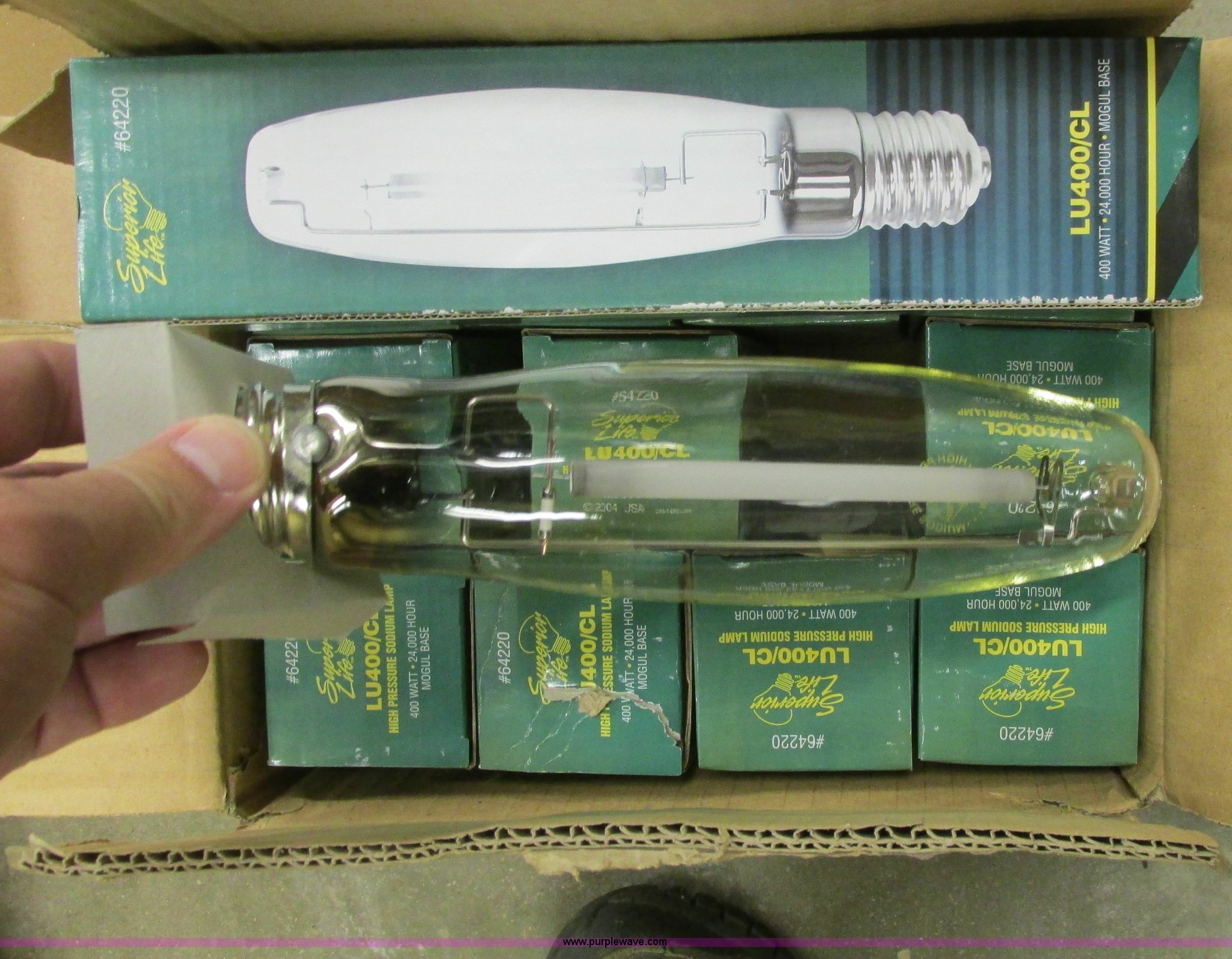 Purple Wave is selling a used Building Materials in Kansas. This item is a Assorted light fixtures and bulbs with the following: (57) Westinghouse round dome fixtures, 120V, 400 watt lamp, H33 lamp type, Twist type connector, Cosmetic damage, Unknown operating condition, Removed from gymnasium, (6) Sylvania round dome fixtures, 208V, Cosmetic damage, Unknown operating condition, Removed from gymnasium, (24) Prism P30 clear bulbs, 300W, (17) Prism PS35 frost bulbs, 300W, (12) Industrial Performance PS35 frost bulbs, E39 base reference, (12) Superior Life LU400/CL high pressure system bulbs, 400W, Mogul base