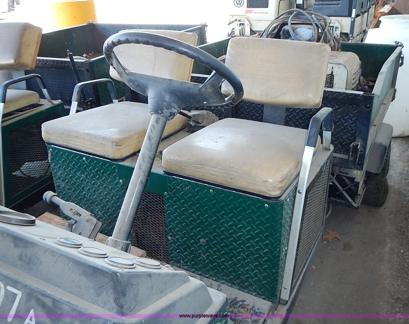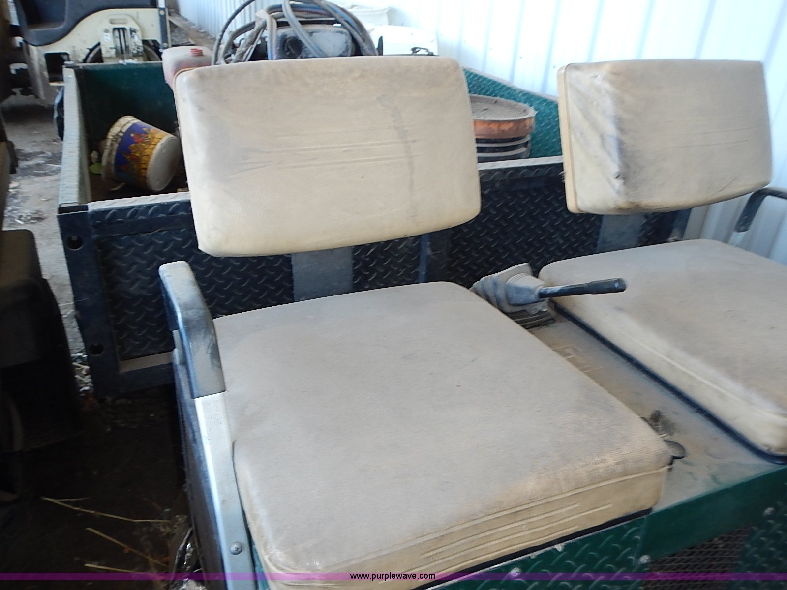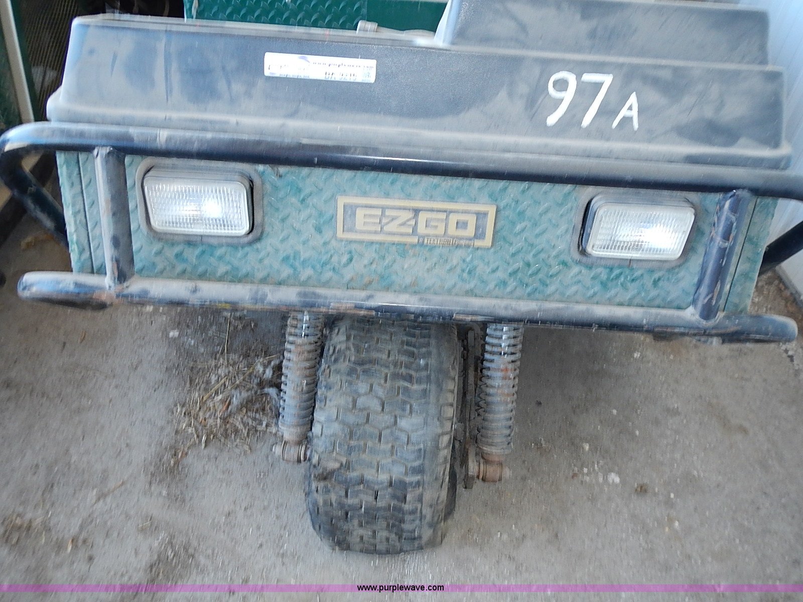 Purple Wave is selling a used Utility Vehicle in Kansas. This item is a EZ GO GXT-1500 utility cart with the following: 772 hours on meter, Onan gas engine, Five speed transmission, 55"L x 54"W bed, 1,500 lbs maximum capacity, Startall jump unit in bed, Unknown operating condition, Three flat tires, Unknown running condition, Serial 003455, Unit# 97A