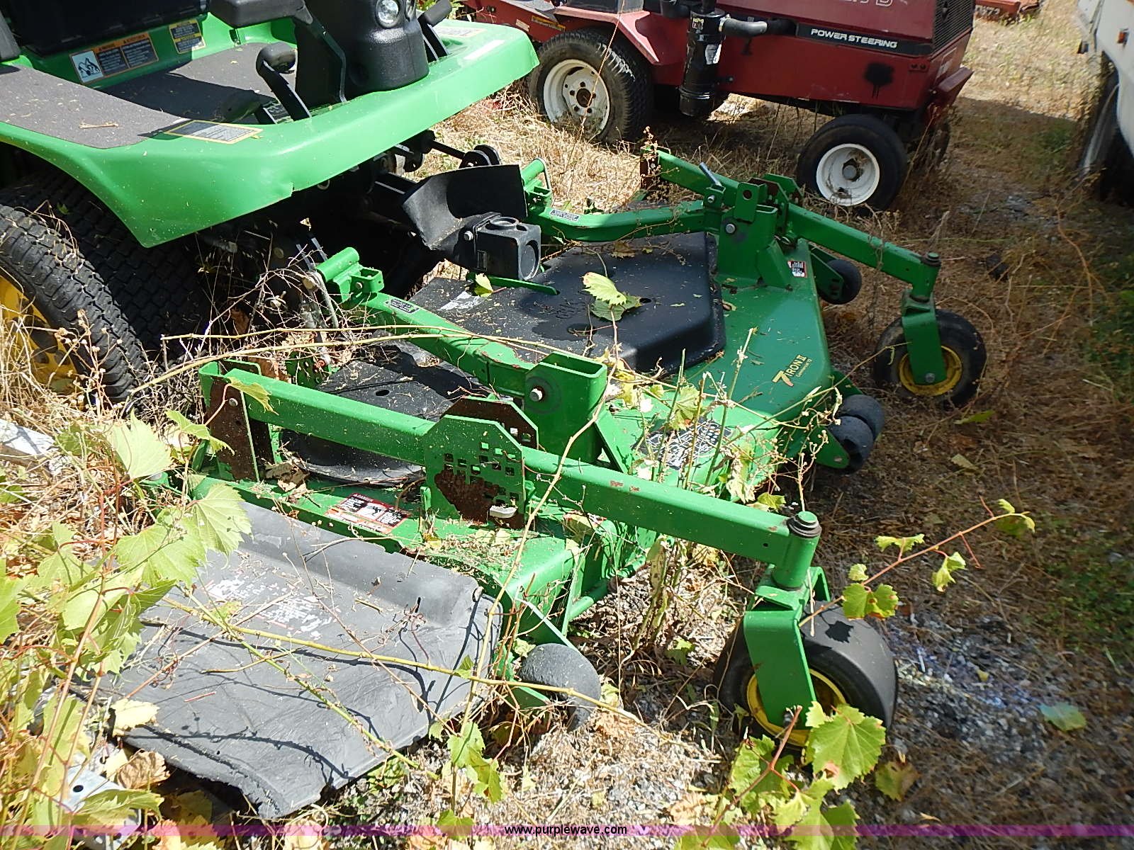 Purple Wave is selling a used Commercial Turf Mower in Kansas. This item is a John Deere 1445 mower with the following: 72"W cutting capacity, Yanmar three cylinder diesel engine, No battery, Tire and wheel missing, Mower deck drive is not hooked up, Unknown operating condition
