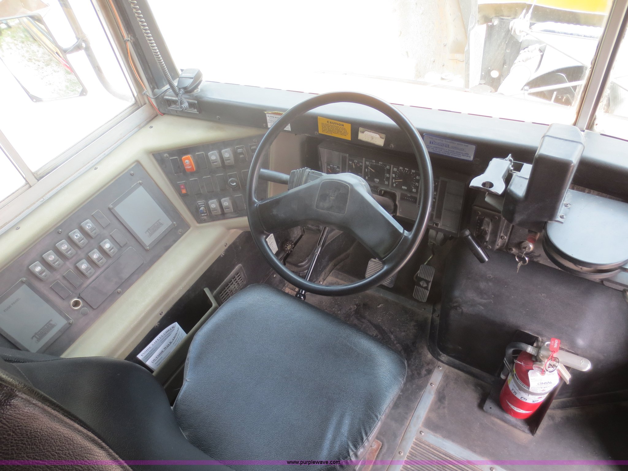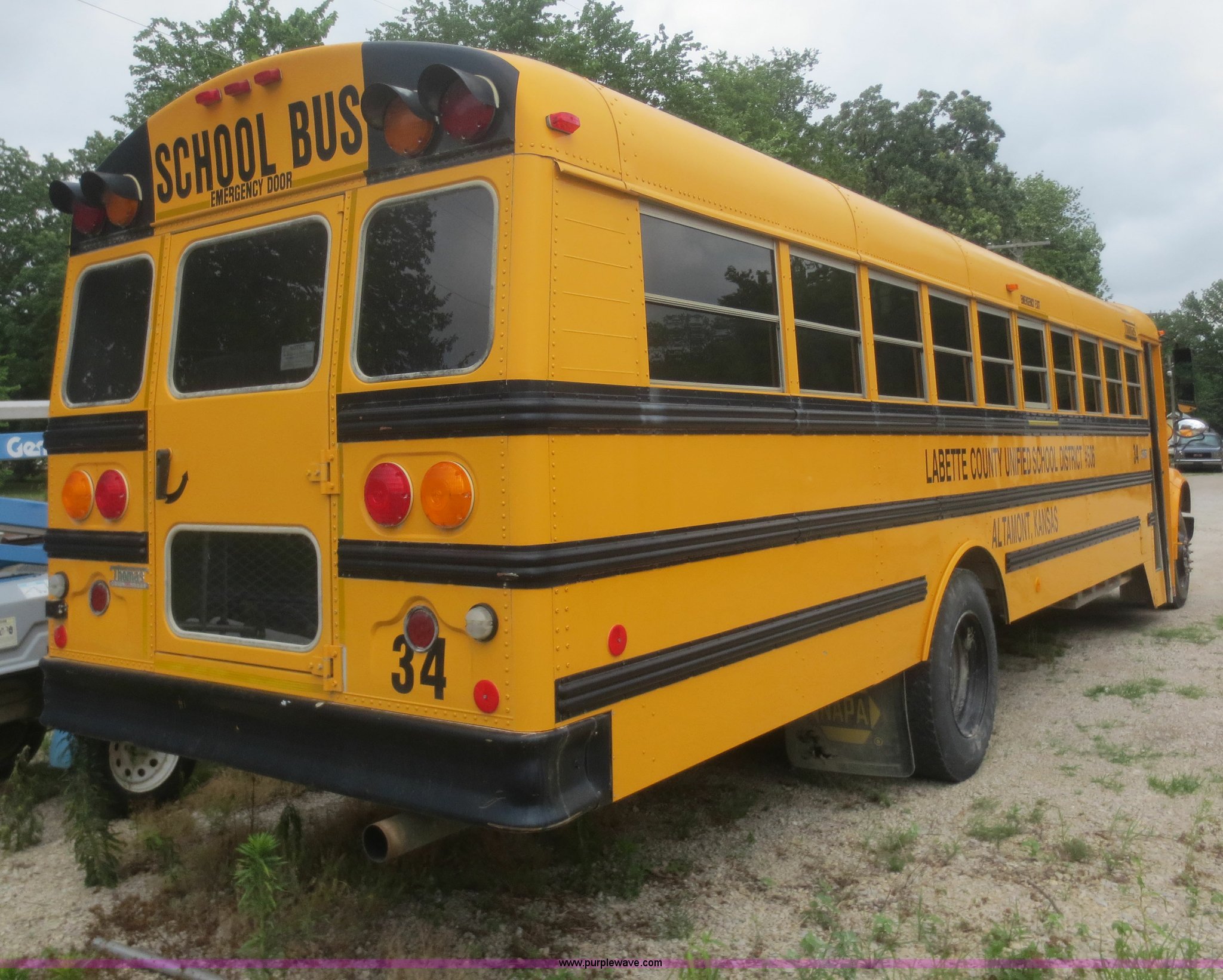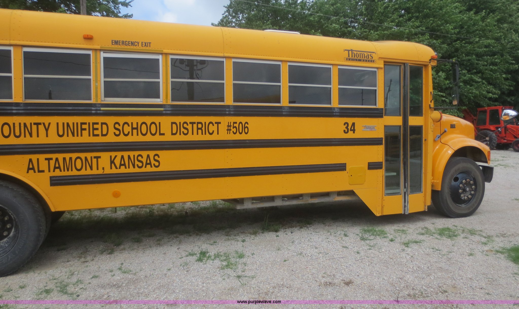 Purple Wave is selling a used Bus in Kansas. This item is a 1999 International 3800 school bus with the following: 188,940 miles on odometer, 6,895 hours on meter, International DT466E 7.6L L6 turbo diesel engine, Automatic transmission, Heat, 60 passenger capacity, Thomas body, Spring suspension, Hydraulic brakes, 10R22.5 tires, GVWR 27,500 lbs, FAWR 10,000 lbs, RAWR 17,500 lbs, Paint peeling on hood, Two-way radio not included, Unit# 34